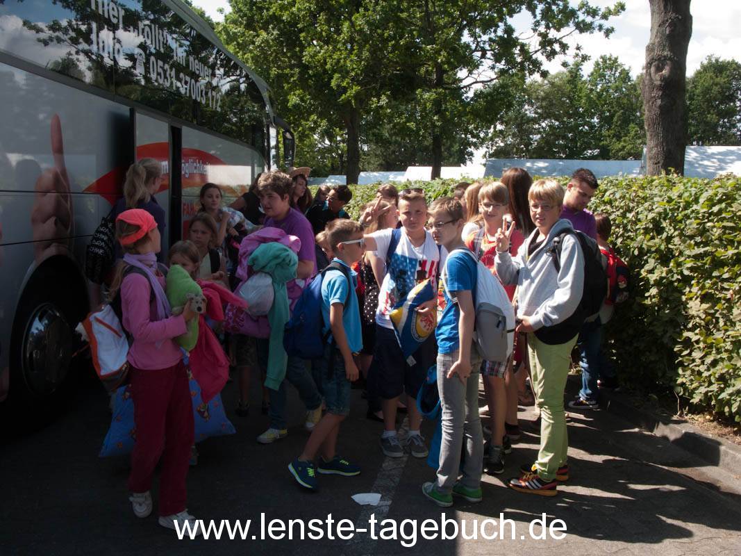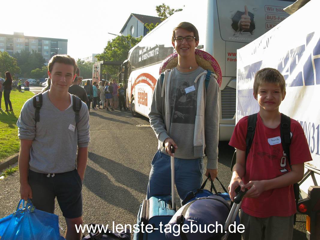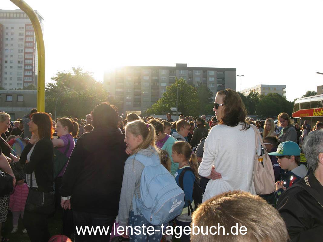Ein großer Haufen Kinder, Eltern, Geschwister, Großeltern und Freunde versammelten sich am Thüringplatz um die diesjährigen Teilnehmer der Lenste-Freizeit zu verabschieden.