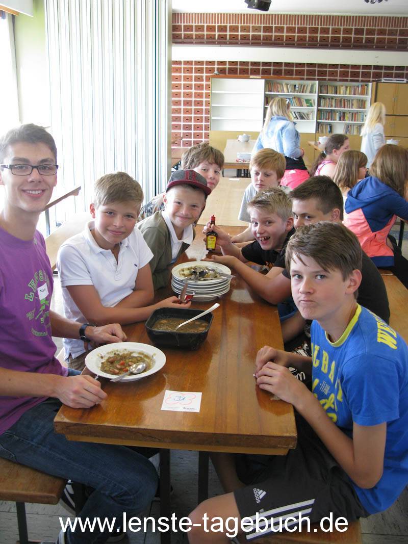 Wer nicht noch vom Reise-Proviant satt war, konnte sich an der leckeren Linsensuppe satt essen.