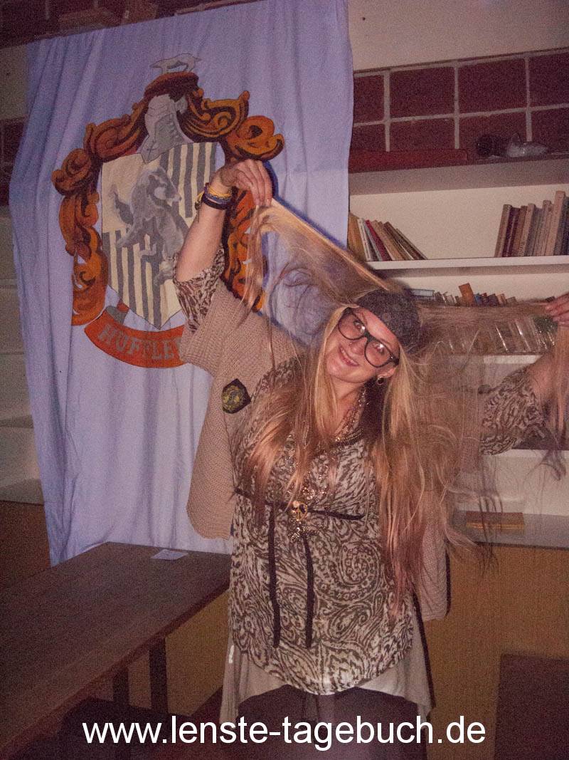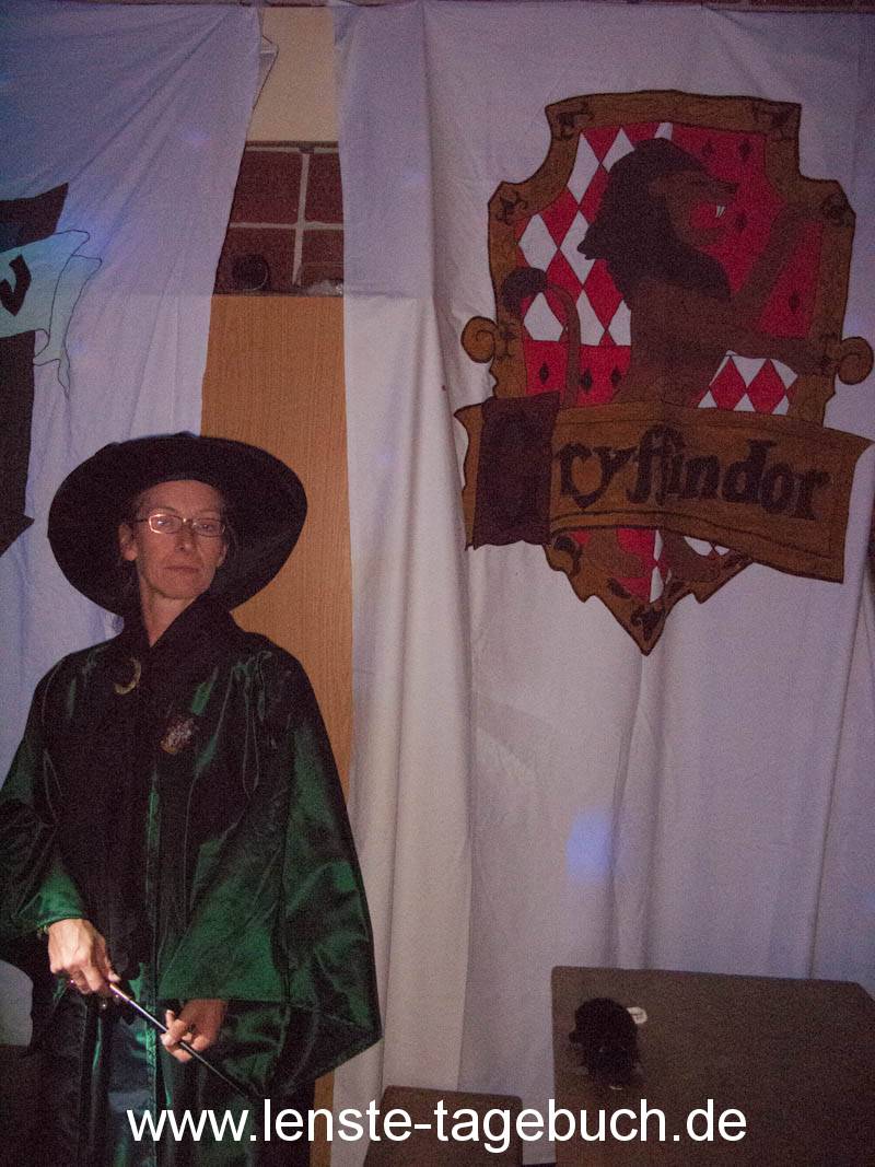 Der sprechende Hut verteilte die Betreuer der Zelte auf die Ostwarts-Häuser Gryffindor, Hufflepuff, Ravenclaw und Slytherin. Endsprechend der zugehörigen Farbe des Hauses bekam auch jeder ein Knicklicht-Armband.