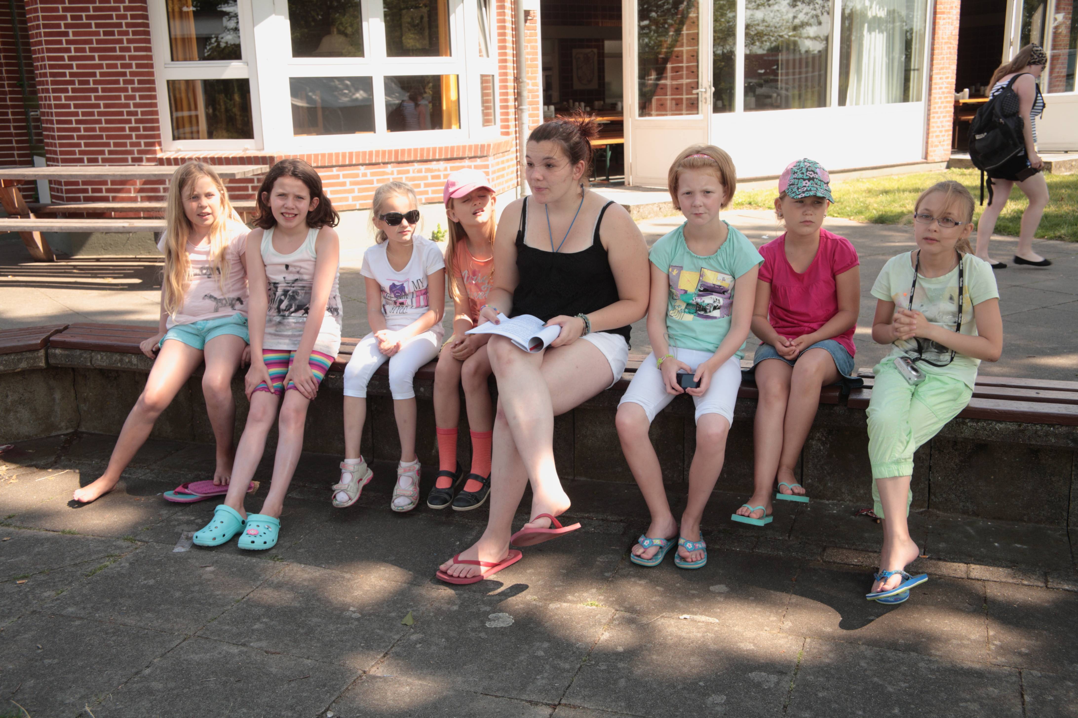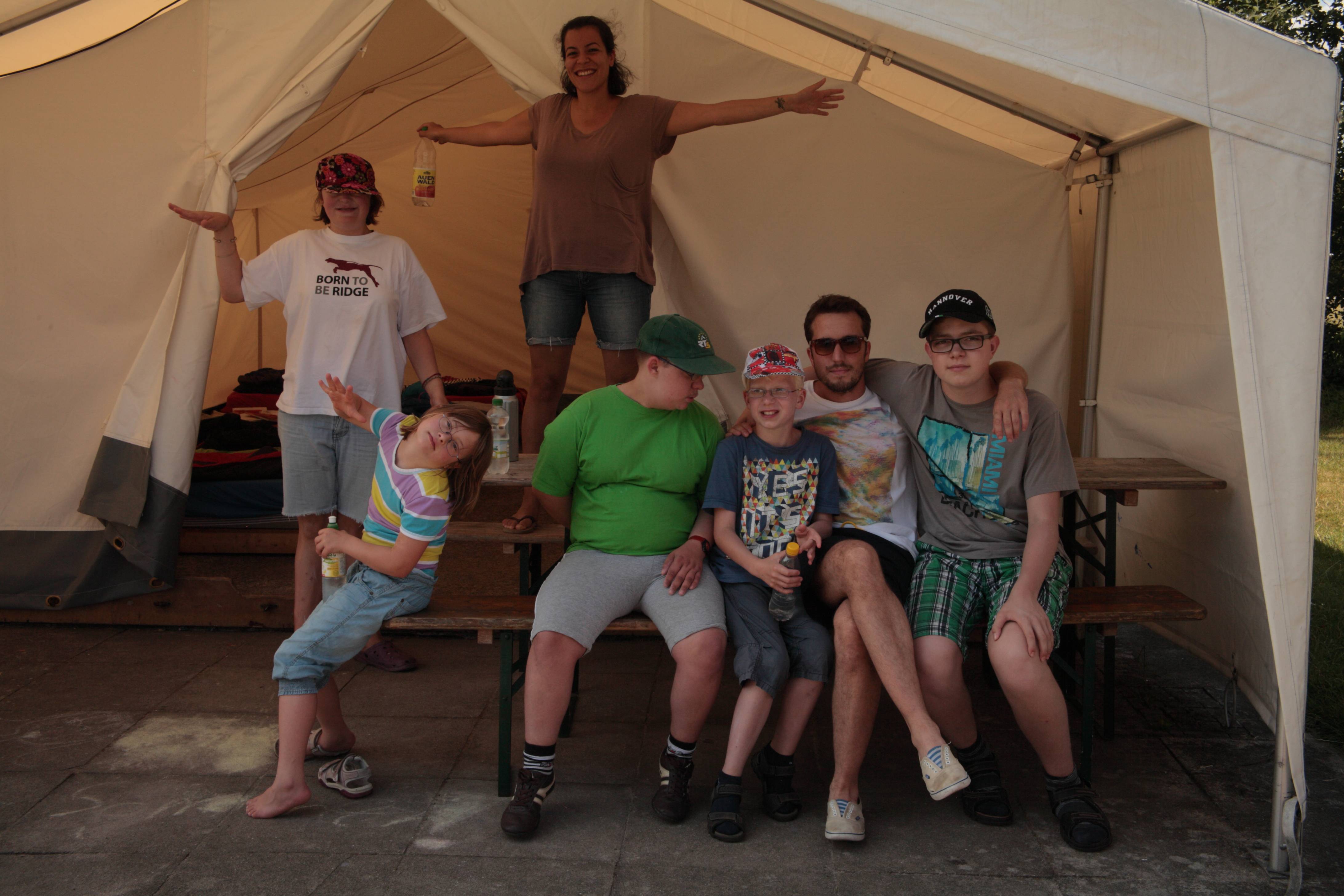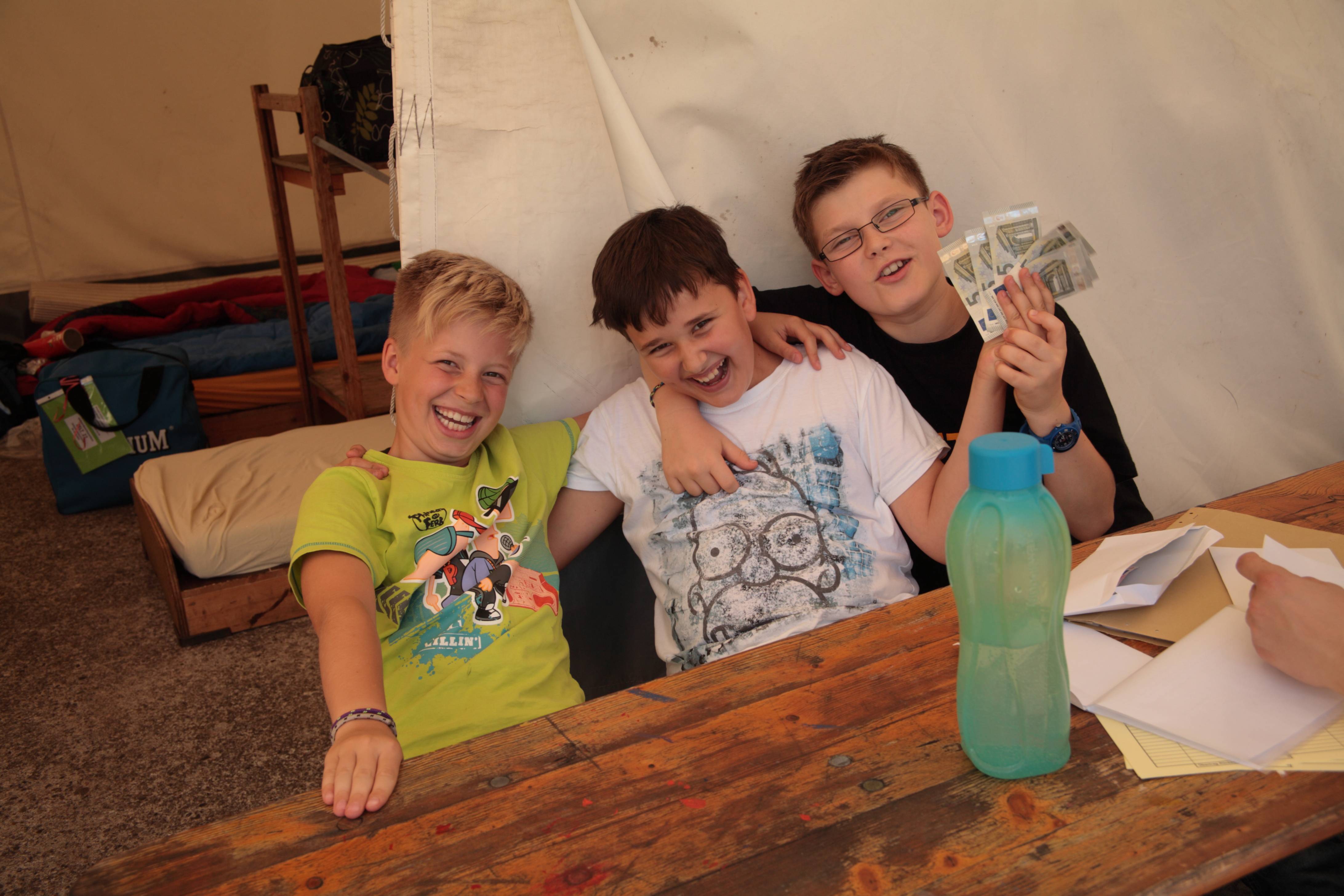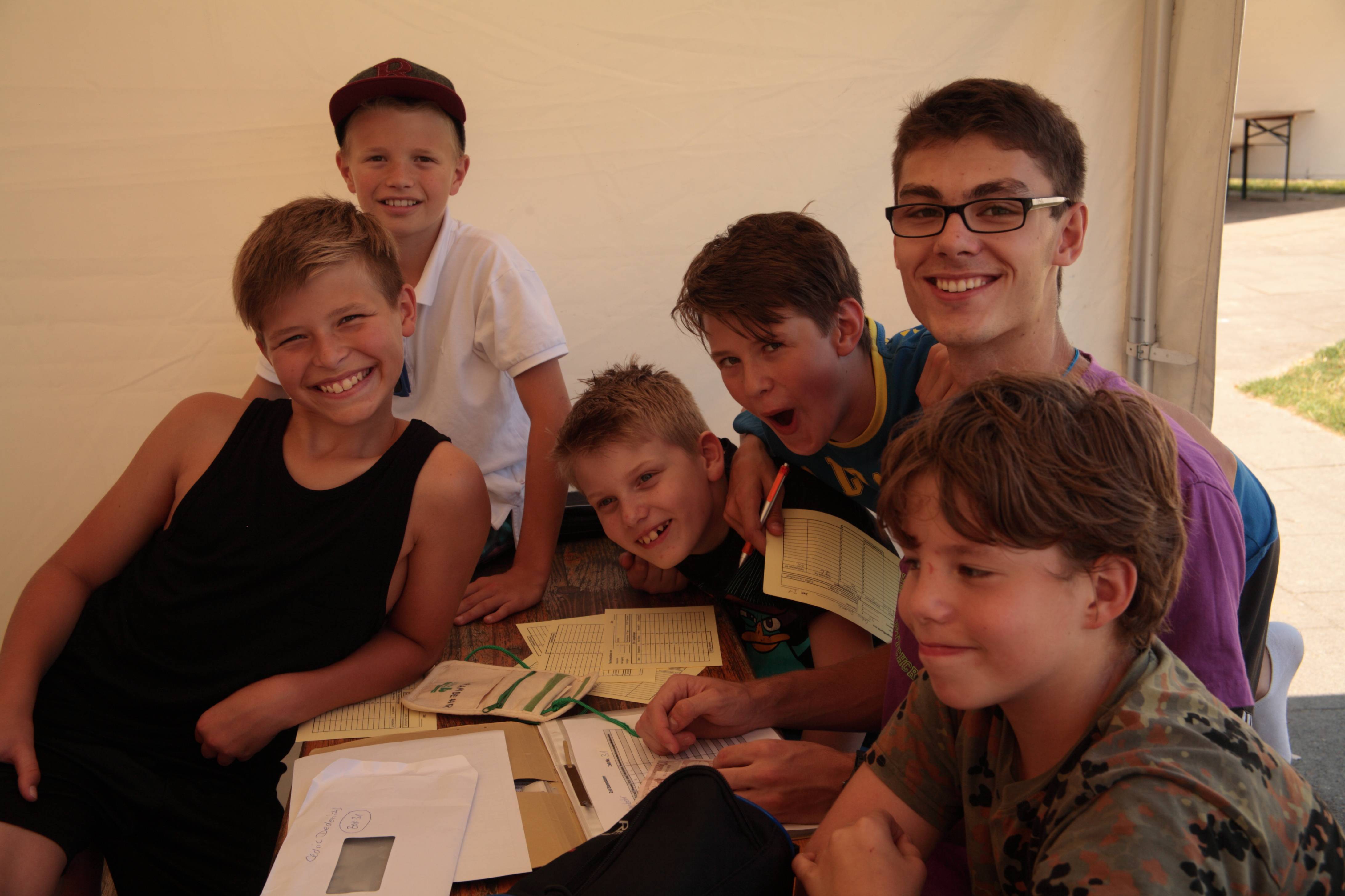 Es folgte die Platzbegehung (Wo sind die Toiletten? Wo ist der Bastelraum? usw.) und Platzregeln wurden besprochen (wann ist die Nachtruhe? Nicht in fremde Zelte gehen usw.).