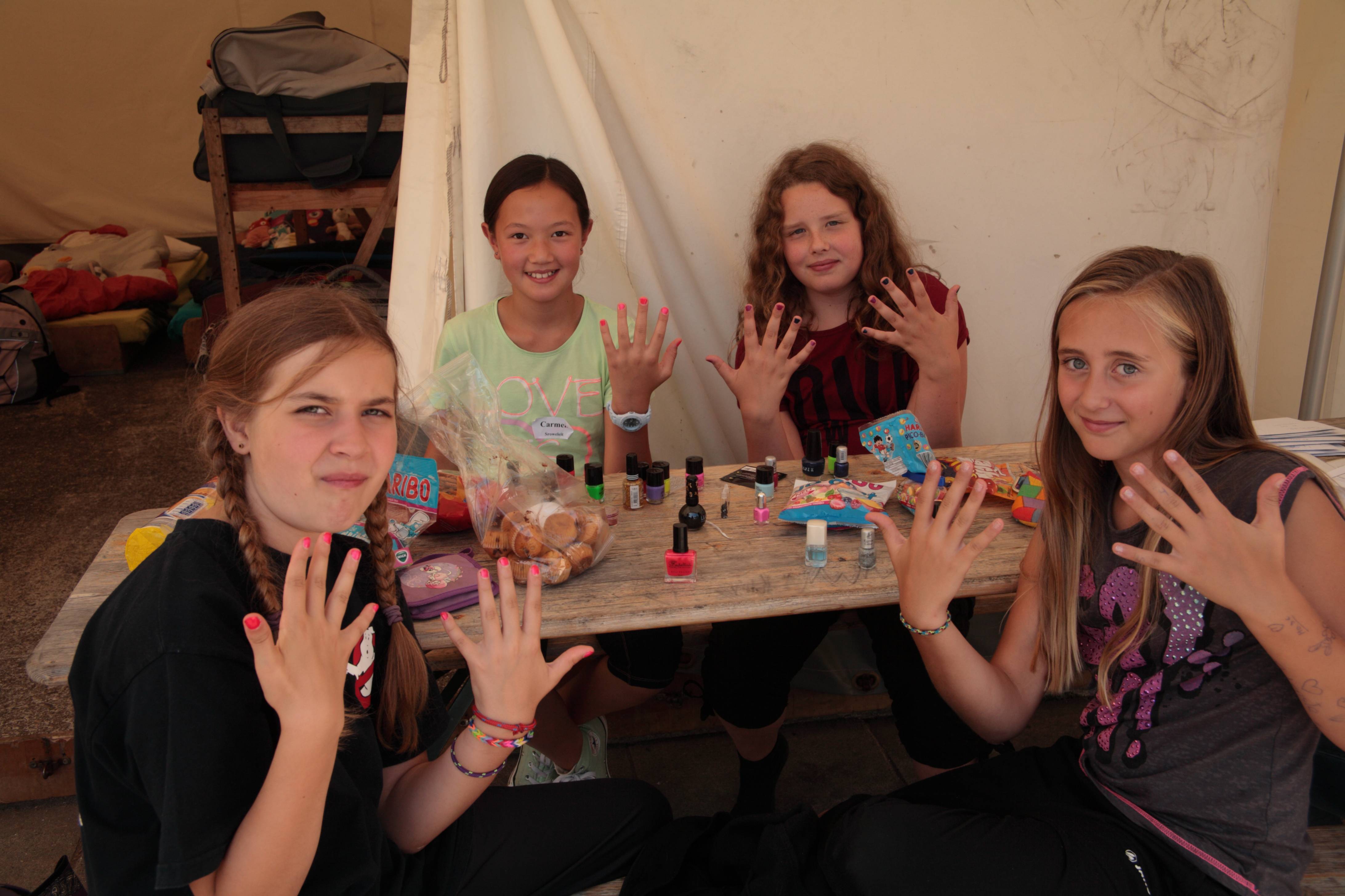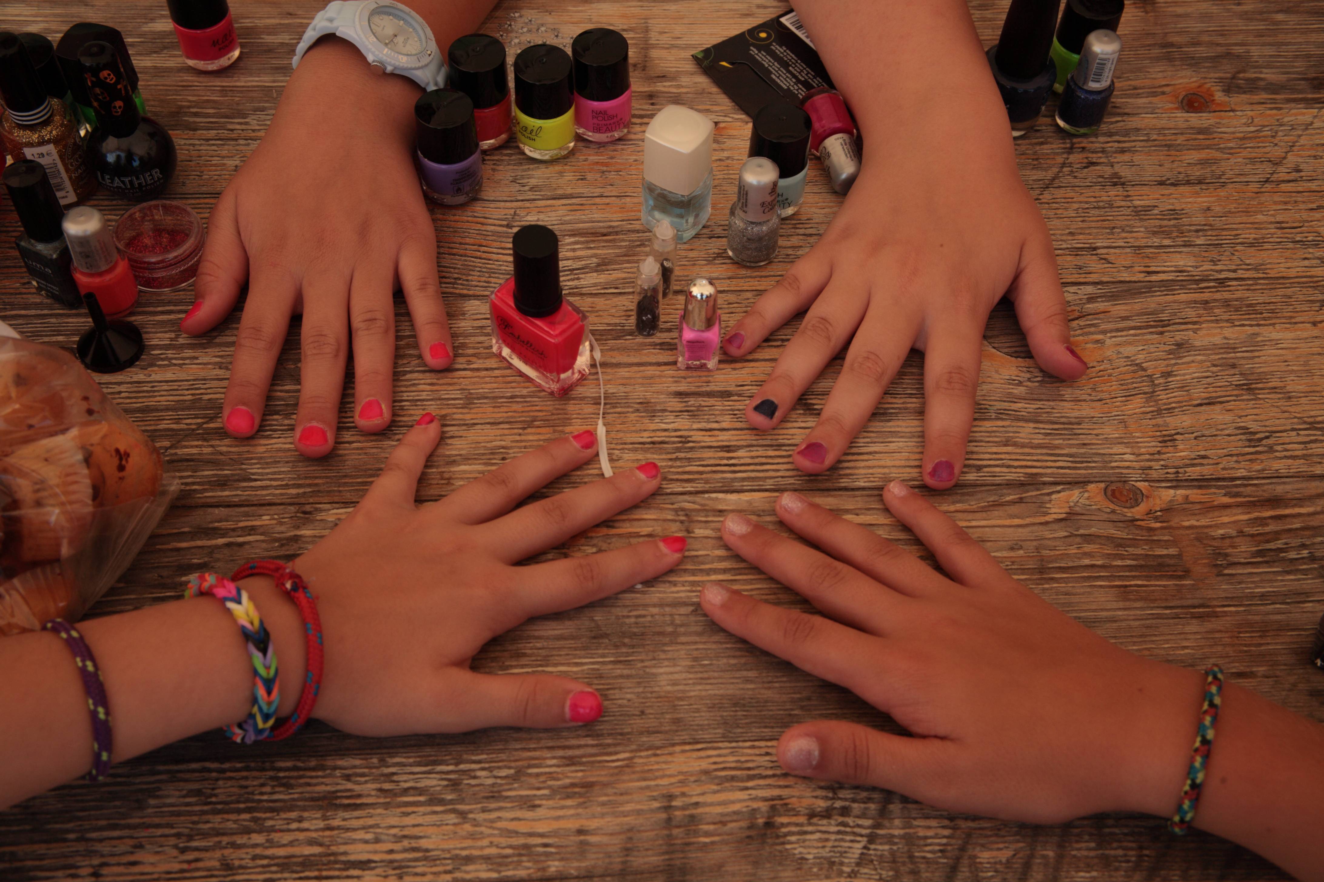 Die Mädels bevorzugten erstmal eine Maniküre: In den neuen trendigen Sommerfarben Pink und Glitzer. 😉
