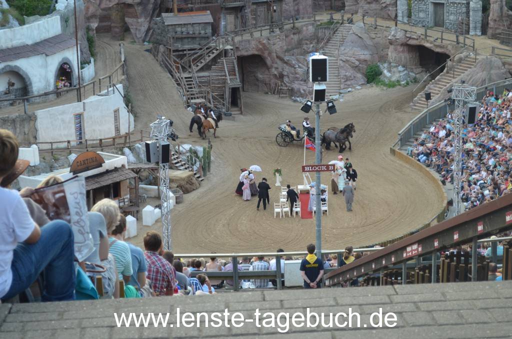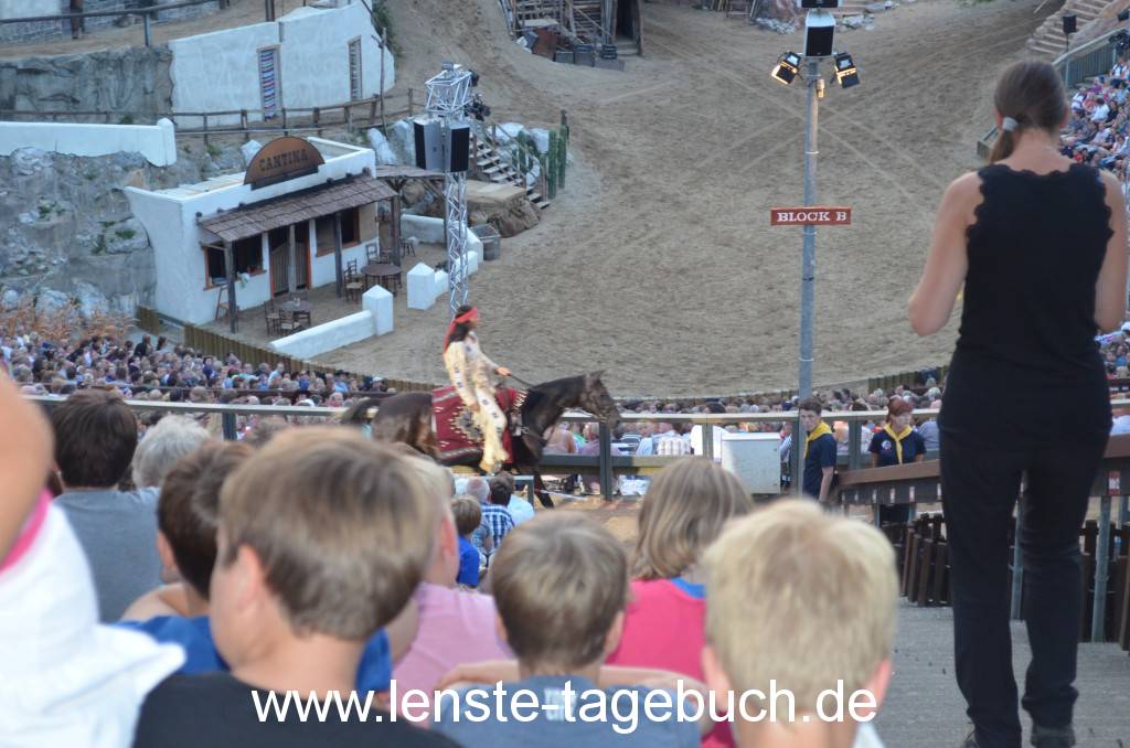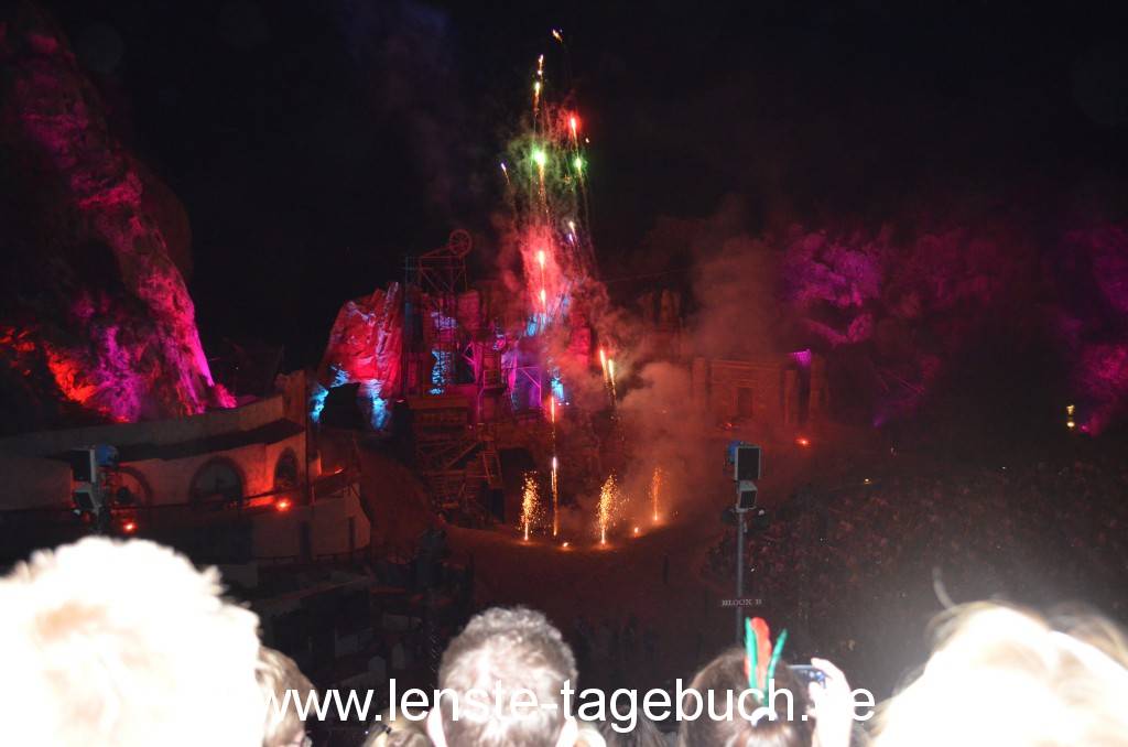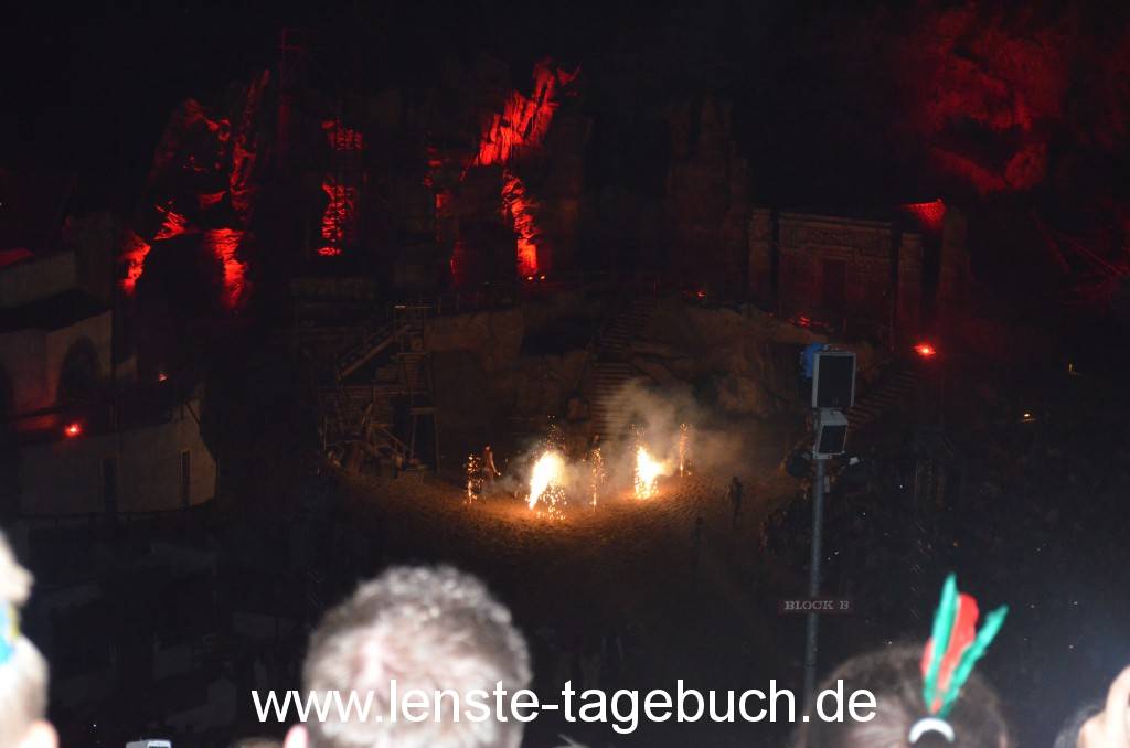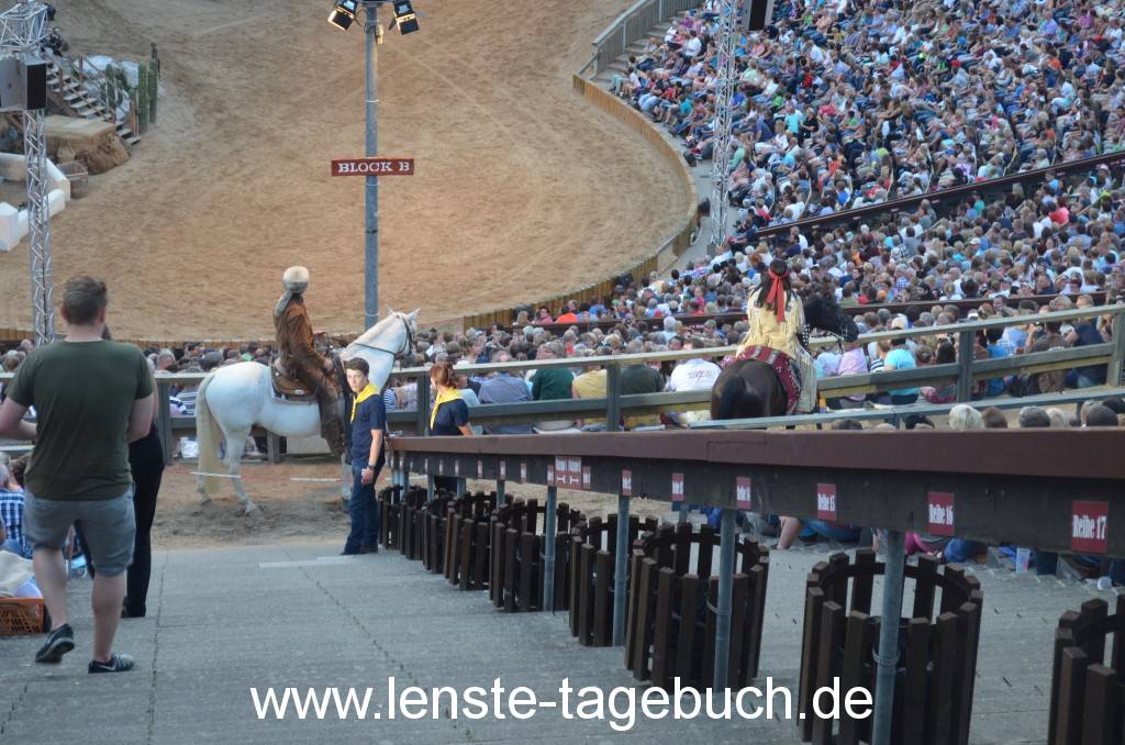 Abends haben dann rund 80 Lenstix-Bewohnerinnen und Bewohner unsere Dörfer verlassen und wagten den Zeitsprung aus der Antike in den Wilden Westen! Bei den Karl-May-Festspielen in Bad Segeberg hießen die Helden nicht etwas Majestix oder Miraculix, sondern Winnetou und Old Firehand … Feuerwerk inklusive!