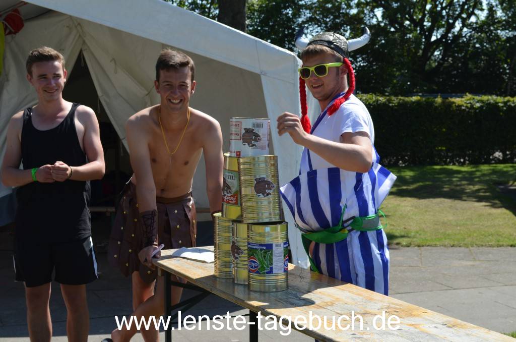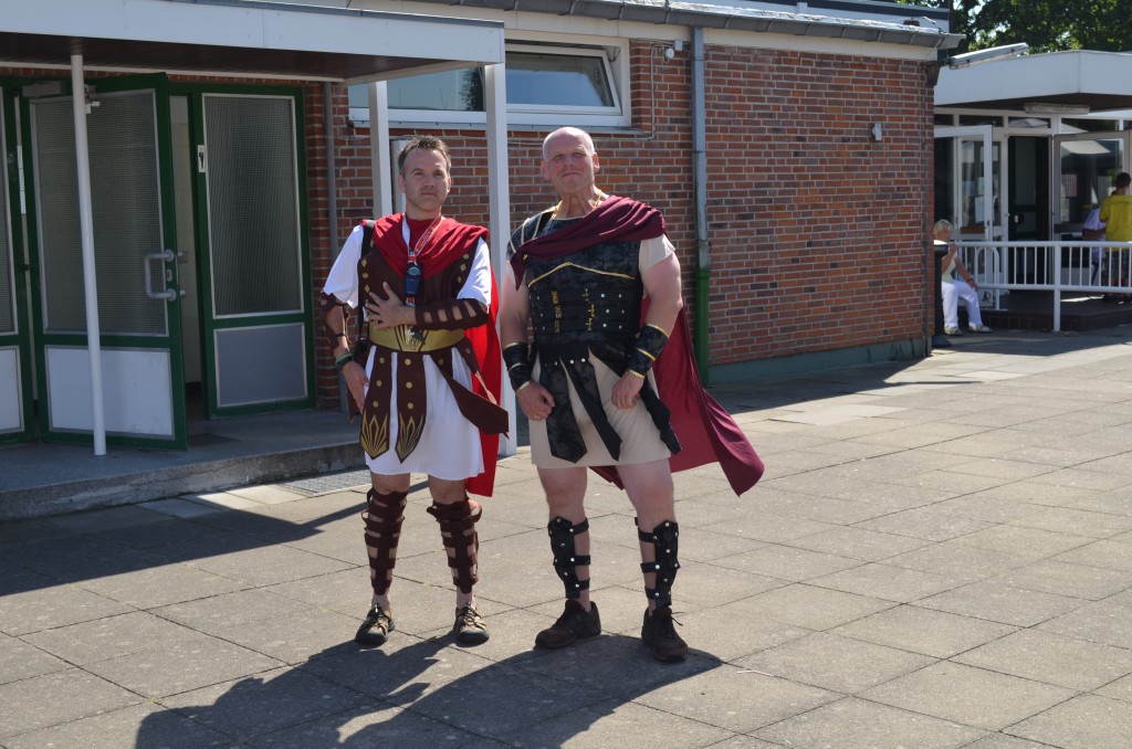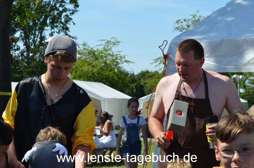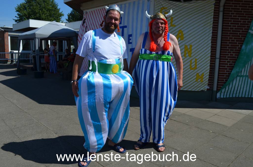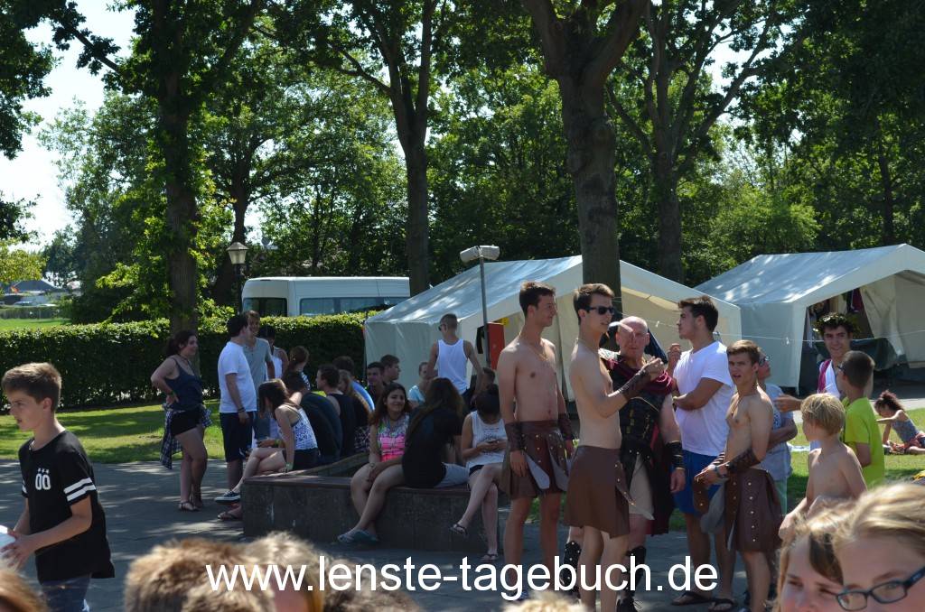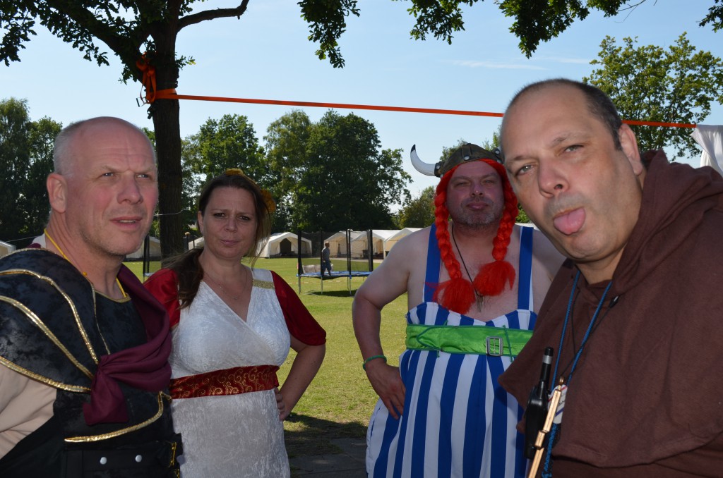 Wetter: Was für ein tropischer Tag – stark schien die Sonne über unserem Gallischen Lenstix. Stark bauten sich einige Wolken am Himmel auf. Kurzum: Schwüle Hitze bei bis zu 27° C. Nur gut, dass wir bei unserem „Budenzauber“ genug Zaubertrank hatten, der nicht nur übermenschliche Kräfte verleiht, sondern auch eistee(chnisch) erfrischt.