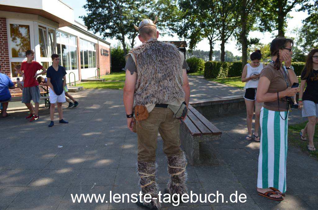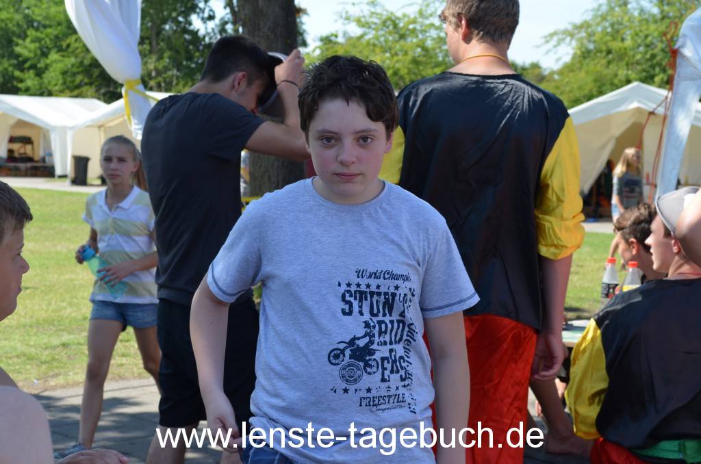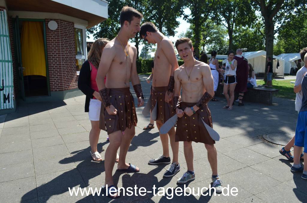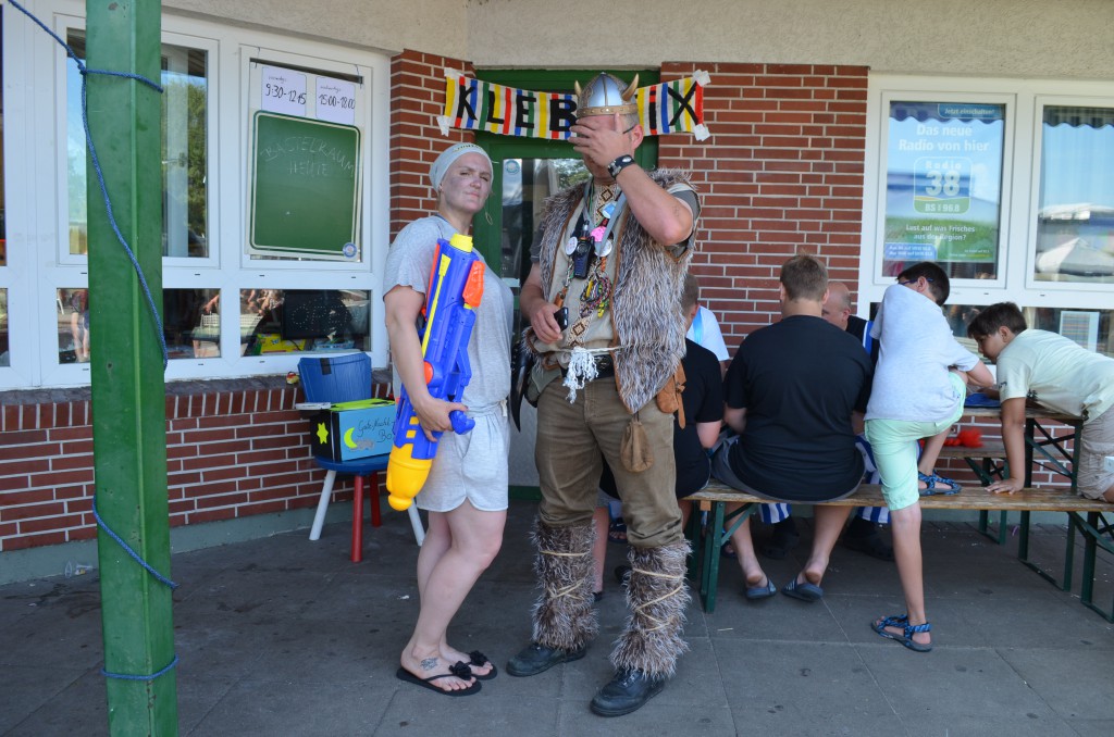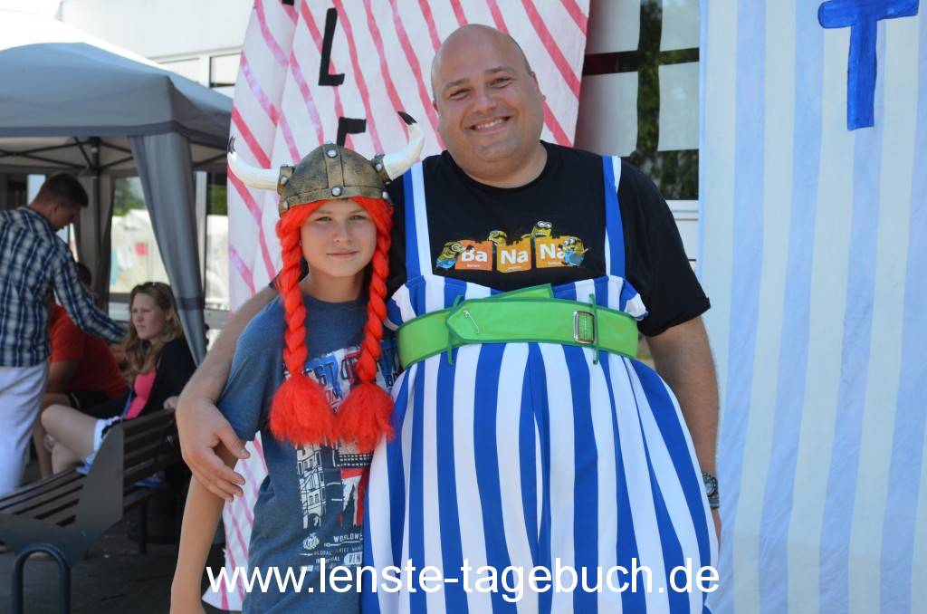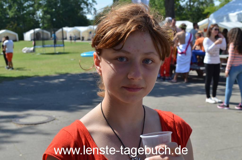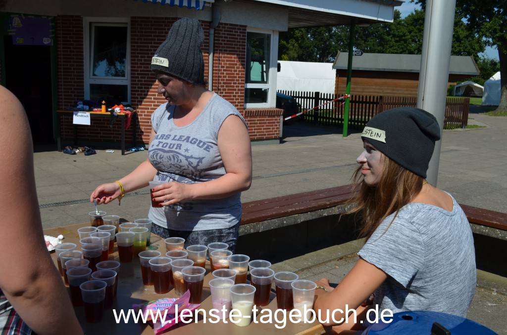 Wetter: Was für ein tropischer Tag – stark schien die Sonne über unserem Gallischen Lenstix. Stark bauten sich einige Wolken am Himmel auf. Kurzum: Schwüle Hitze bei bis zu 27° C. Nur gut, dass wir bei unserem „Budenzauber“ genug Zaubertrank hatten, der nicht nur übermenschliche Kräfte verleiht, sondern auch eistee(chnisch) erfrischt.