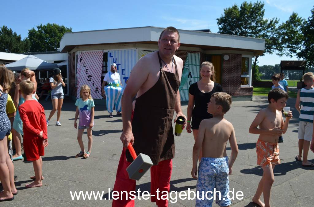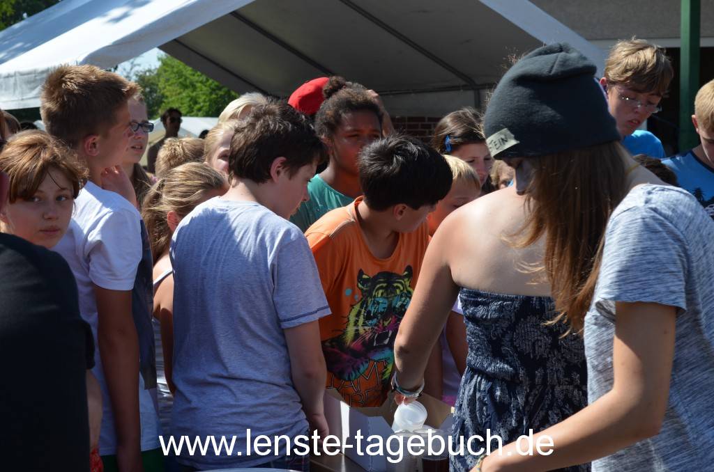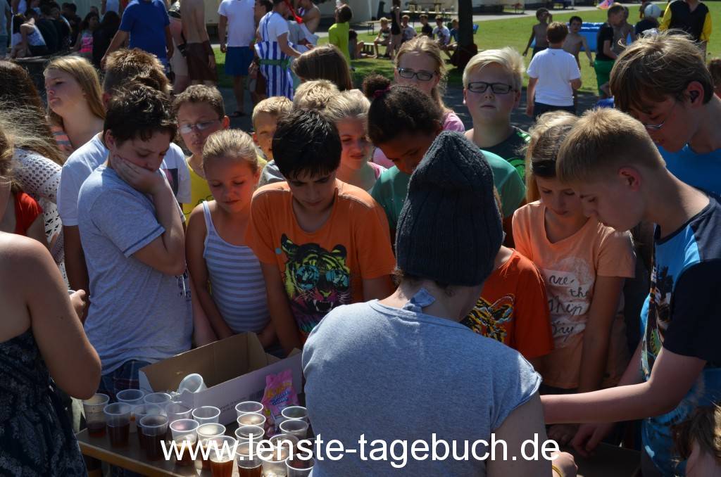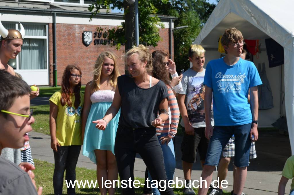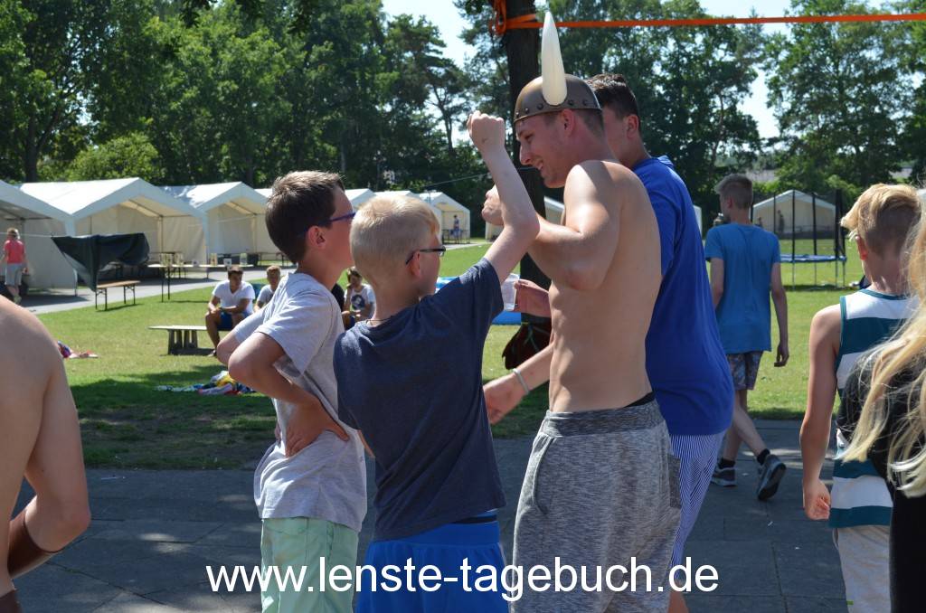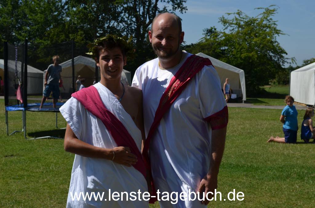 Wetter: Was für ein tropischer Tag – stark schien die Sonne über unserem Gallischen Lenstix. Stark bauten sich einige Wolken am Himmel auf. Kurzum: Schwüle Hitze bei bis zu 27° C. Nur gut, dass wir bei unserem „Budenzauber“ genug Zaubertrank hatten, der nicht nur übermenschliche Kräfte verleiht, sondern auch eistee(chnisch) erfrischt.