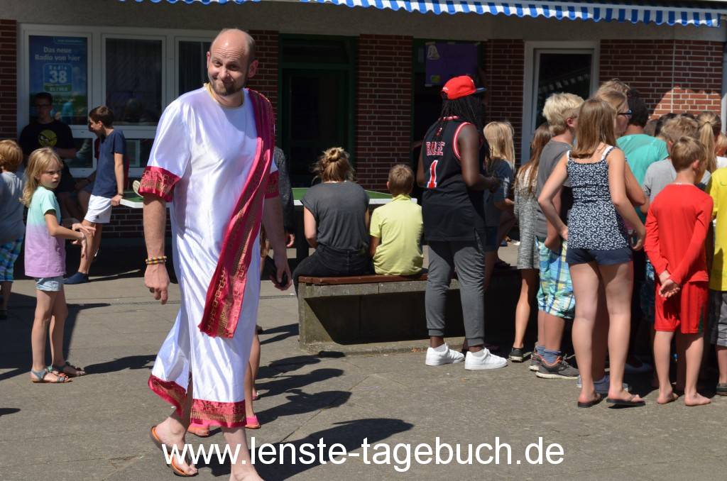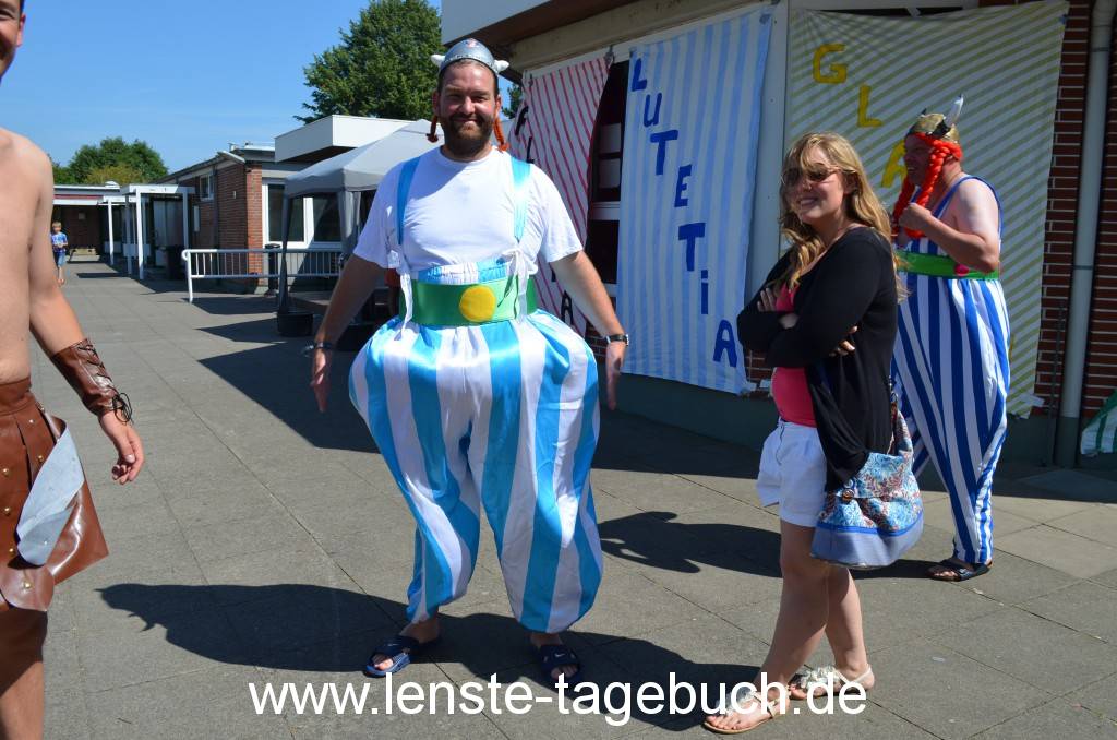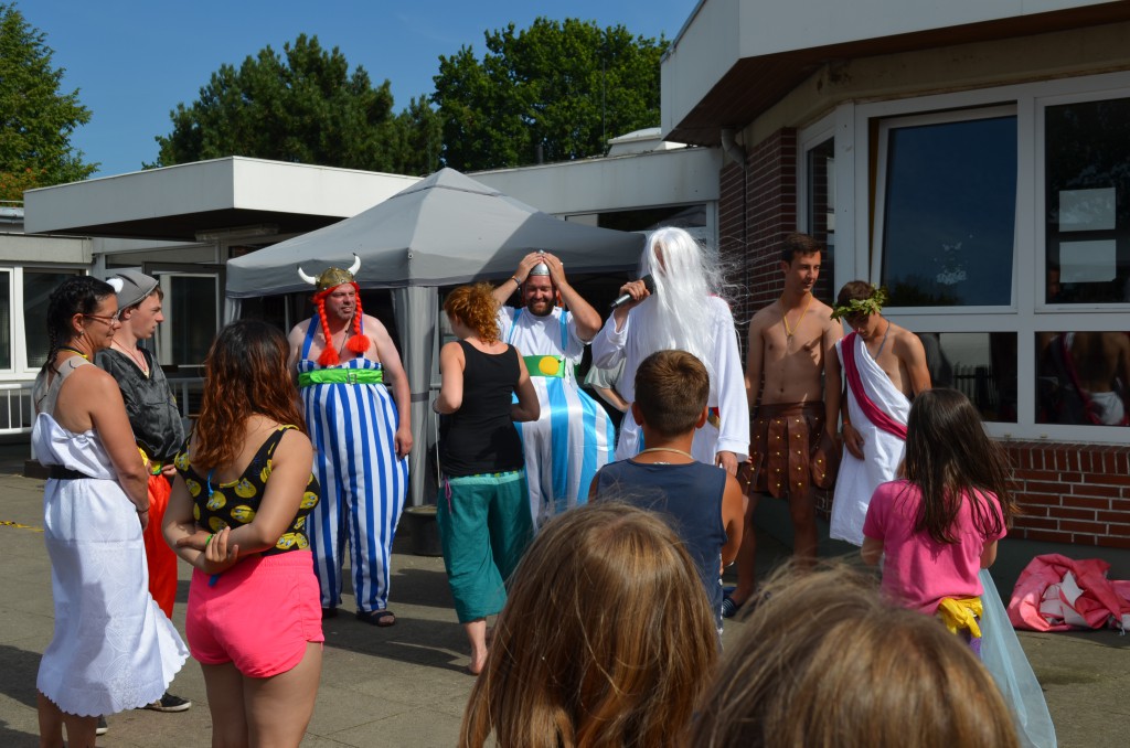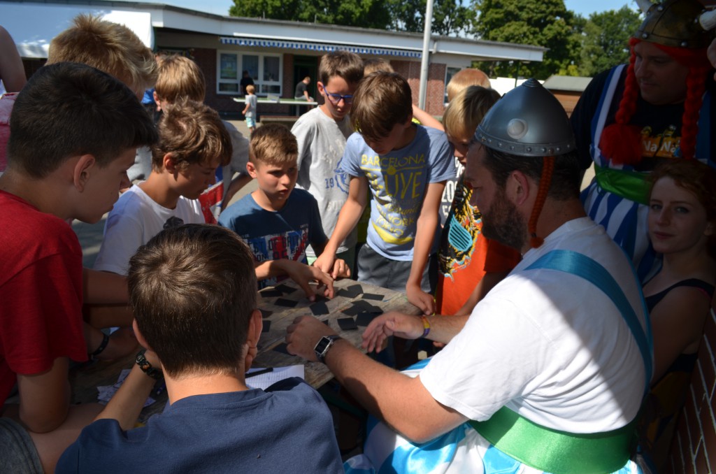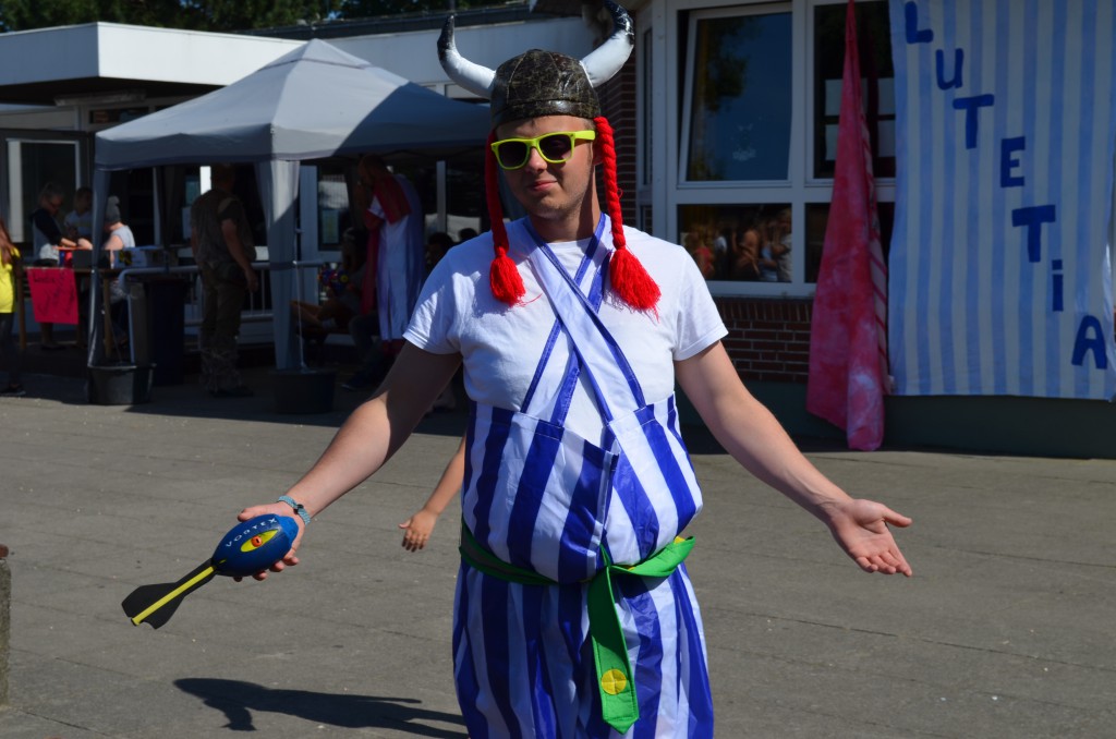 Heute hatten wir einen sehr bunten und zauberhaften Lenstix-Tag: Bei strahlendem Sonnenschein wurden unsere kleinen Gallierinnen und Gallier zum „Budenzauber“ geladen. Viele Asterixe und Obelixe, aber auch Römerinnen, Römer und Gladiatoren forderten zum Dosenwerfen-Wettkampf, Hinkelstein-Lauf, oder Pantomime-Raten auf. Zur Stärkung gab es zuvor – na klar – für alle (außer für Obelix) eine Extra-Portion Zaubertrank. Es gab soooo viel zu sehen und zu erleben, dass wir uns gedacht haben: Wir lassen einfach jede Menge Fotos sprechen. Viel Spaß!