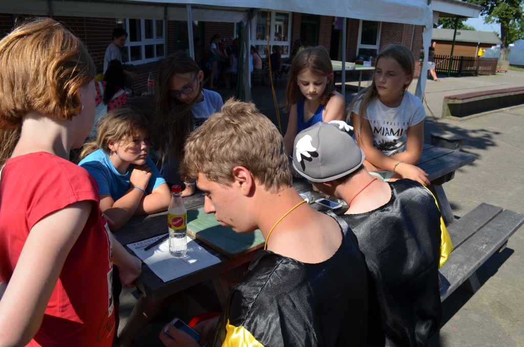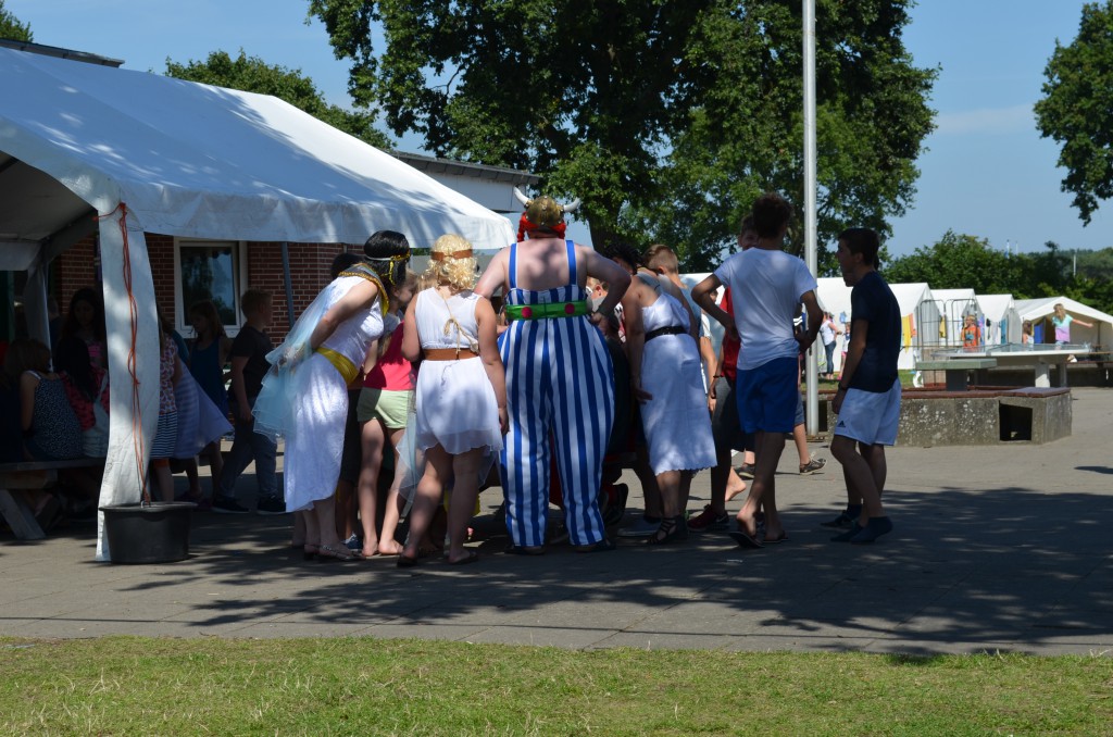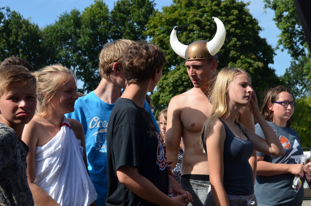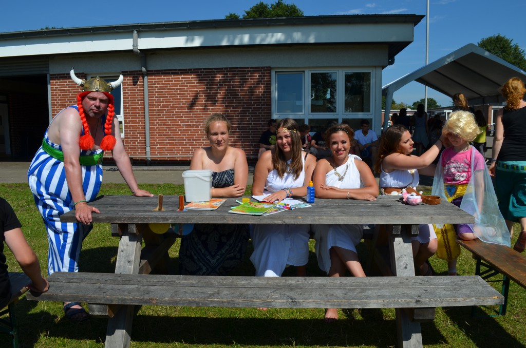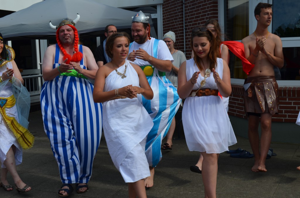 Heute hatten wir einen sehr bunten und zauberhaften Lenstix-Tag: Bei strahlendem Sonnenschein wurden unsere kleinen Gallierinnen und Gallier zum „Budenzauber“ geladen. Viele Asterixe und Obelixe, aber auch Römerinnen, Römer und Gladiatoren forderten zum Dosenwerfen-Wettkampf, Hinkelstein-Lauf, oder Pantomime-Raten auf. Zur Stärkung gab es zuvor – na klar – für alle (außer für Obelix) eine Extra-Portion Zaubertrank. Es gab soooo viel zu sehen und zu erleben, dass wir uns gedacht haben: Wir lassen einfach jede Menge Fotos sprechen. Viel Spaß!