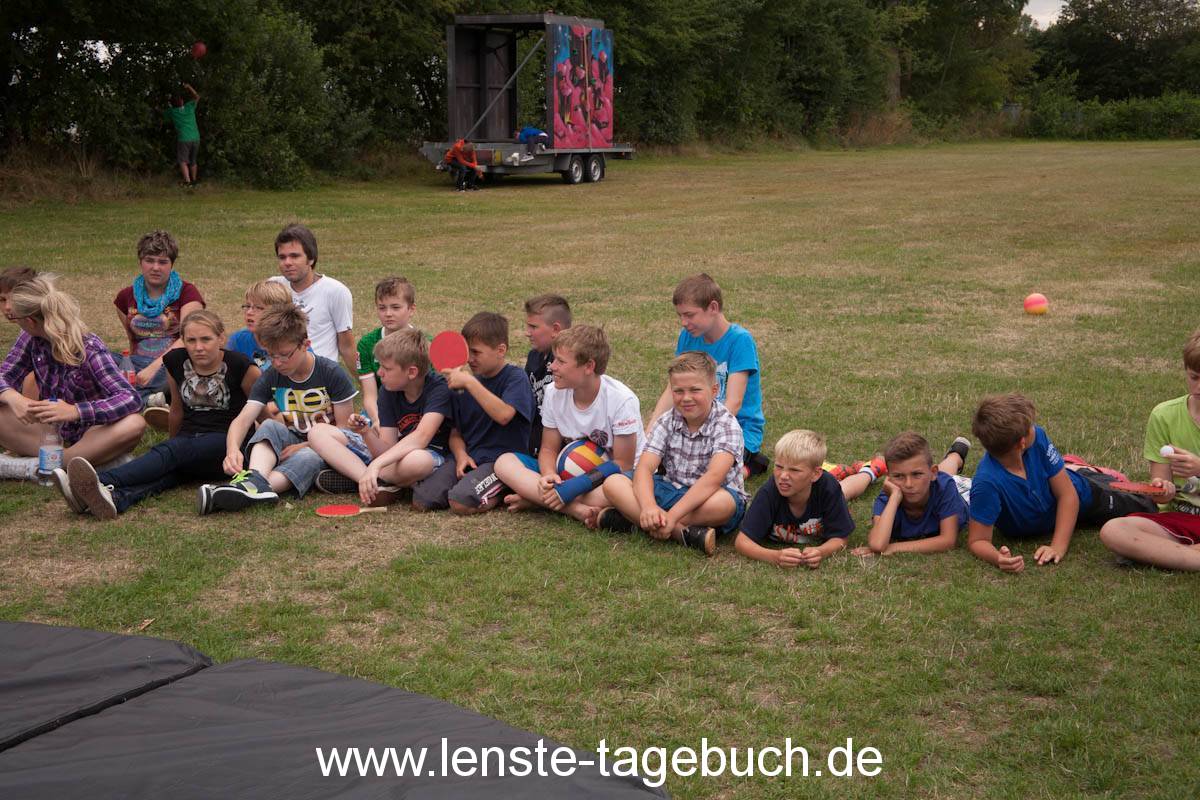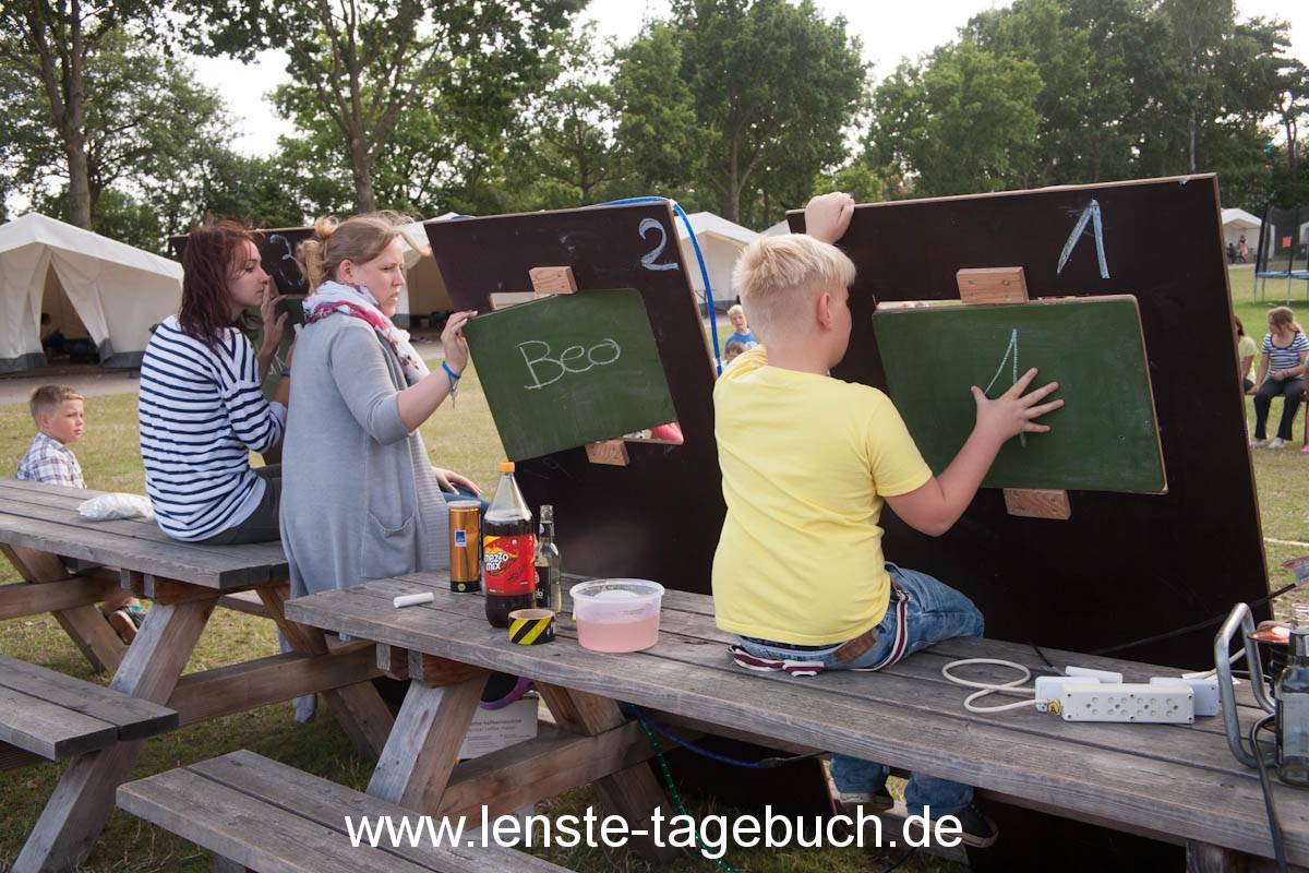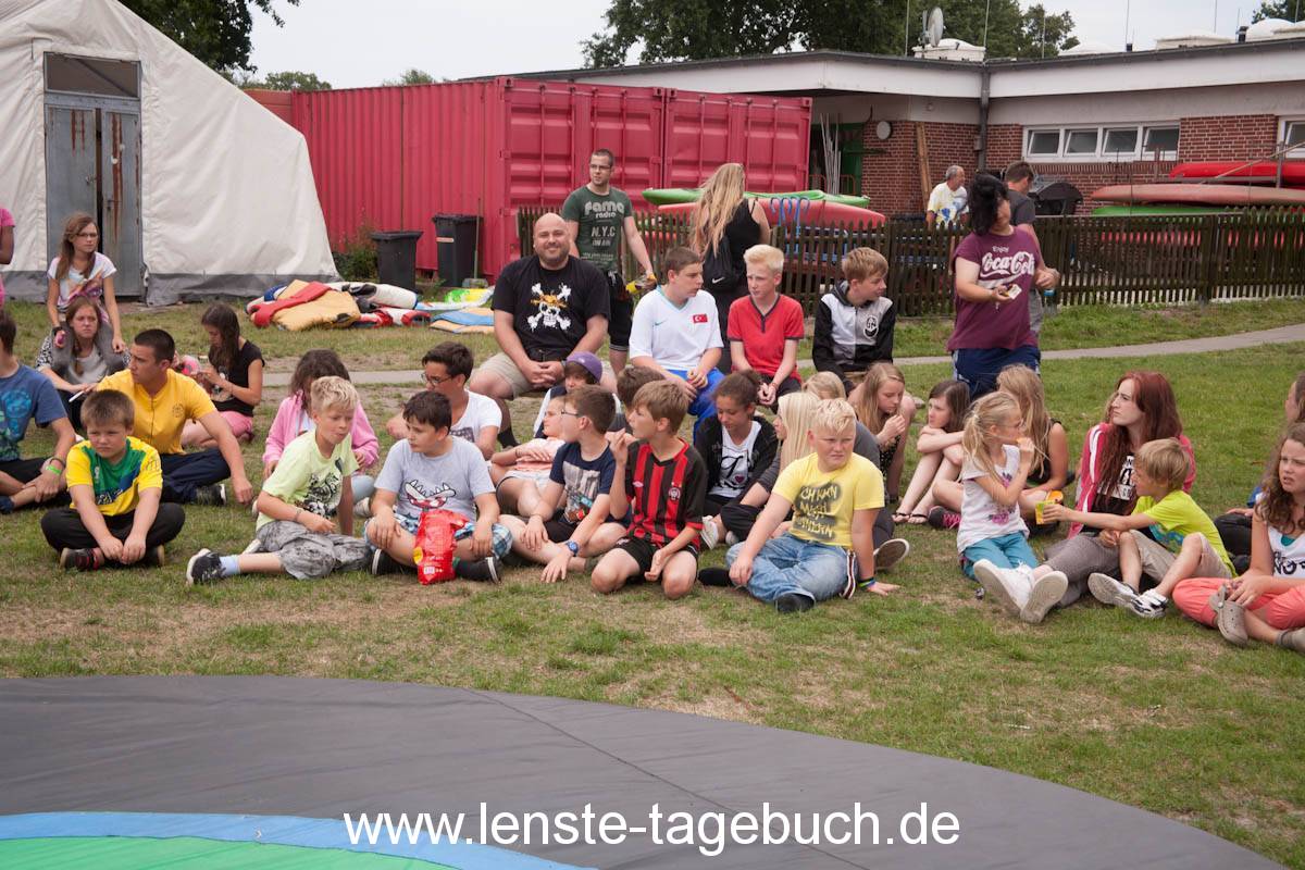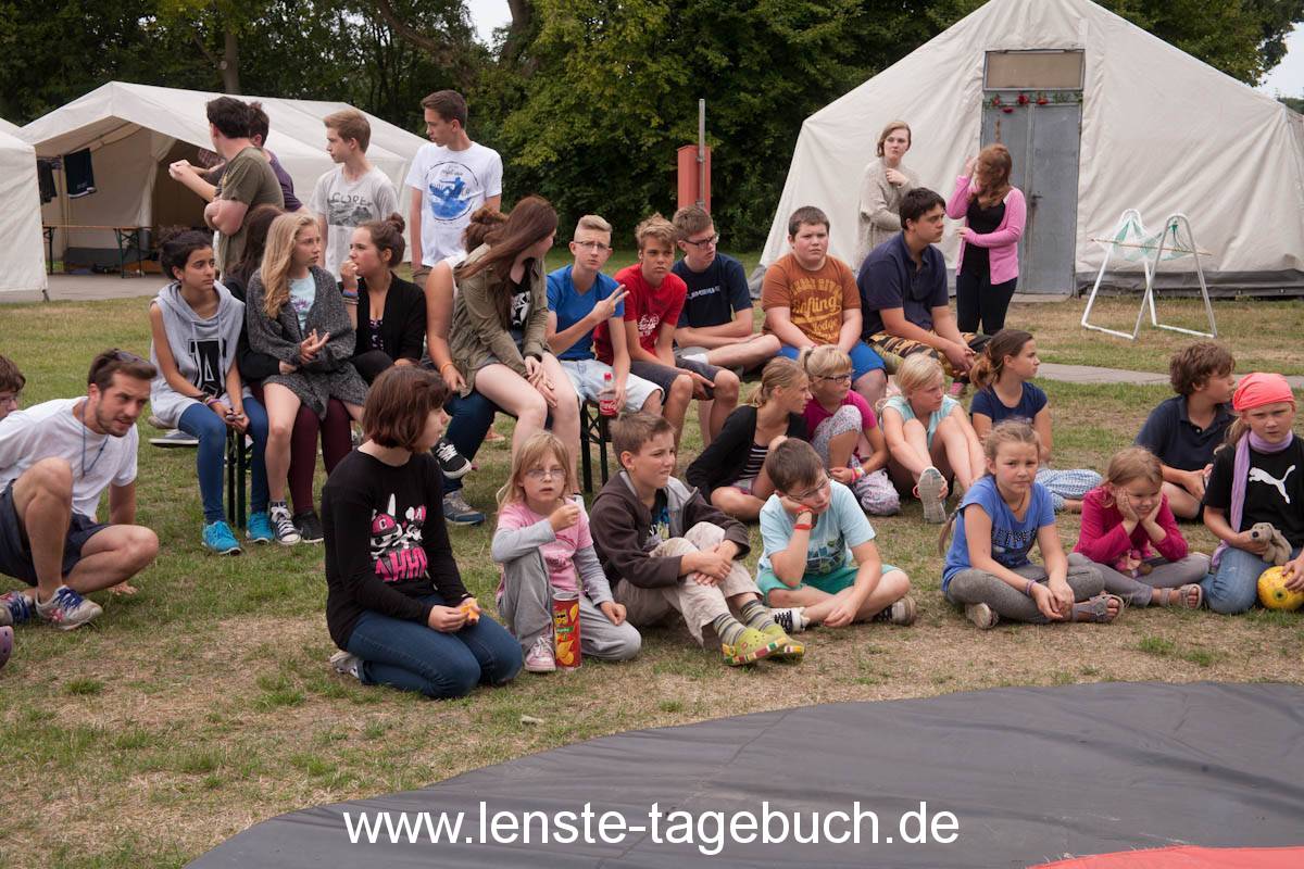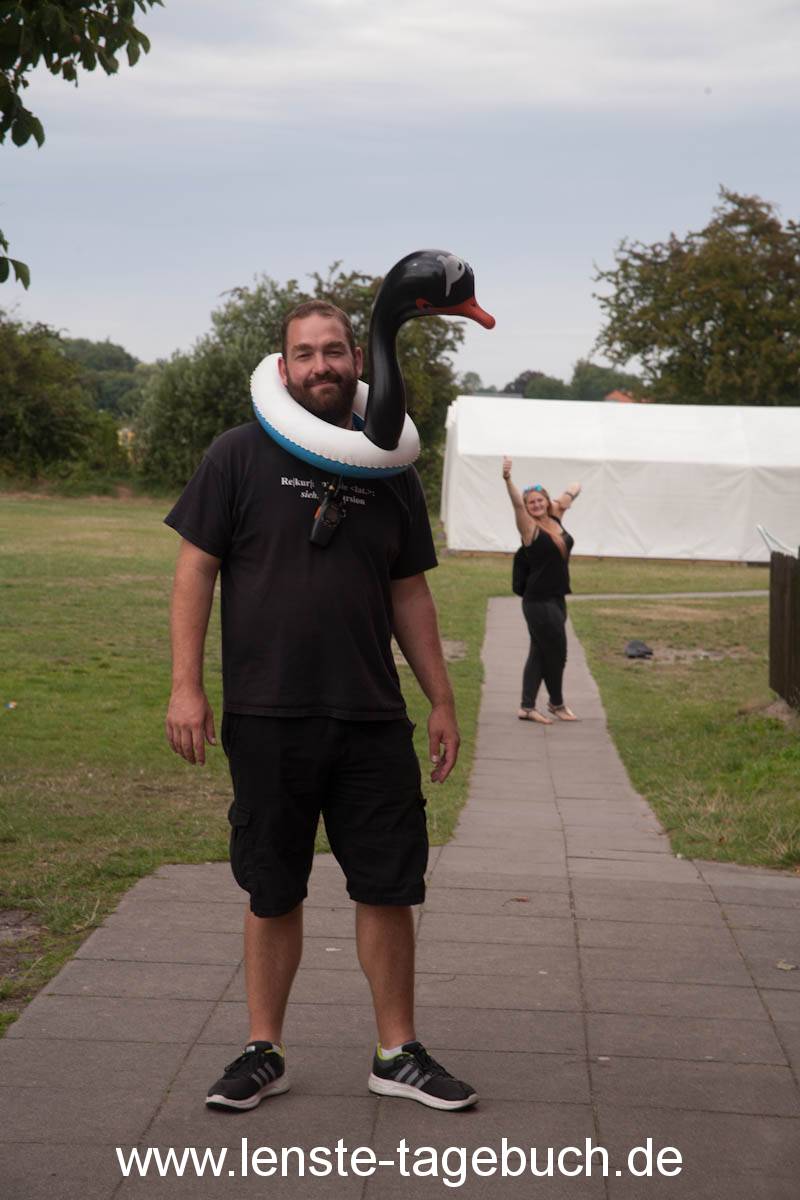 Jeannine aus dem Ü-16 Zelt forderte unseren Fahrbereitschafts-Neigi zum Ringen auf. In den ersten beiden Runden mit Sumoringer-Kostüm ging es Unentschieden aus. Die letzte und entscheidende Runde in normaler Sport-Kleidung konnte Jeannine für sich entscheiden. Herzlichen Glückwunsch!! 🙂