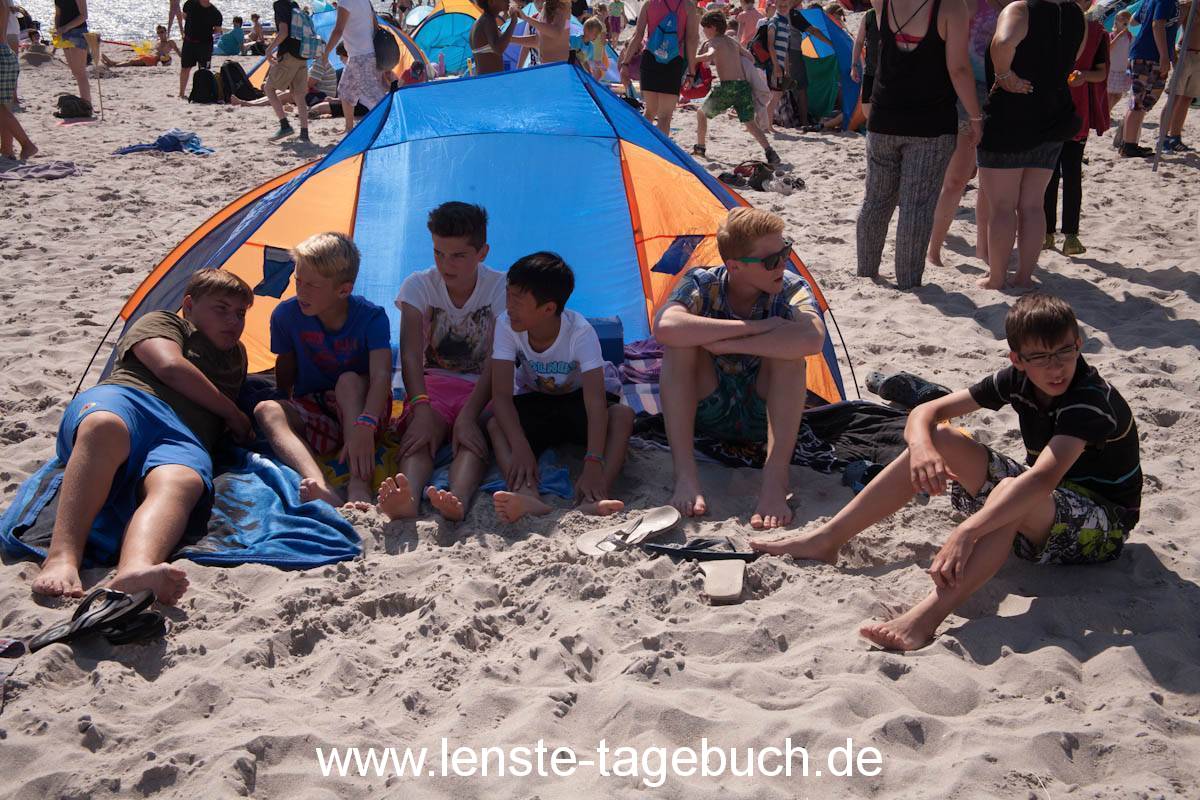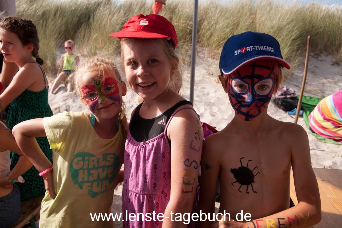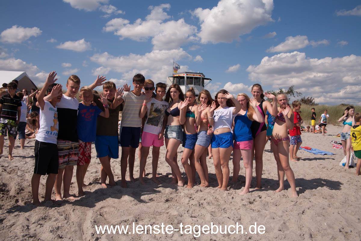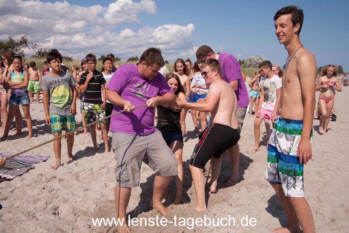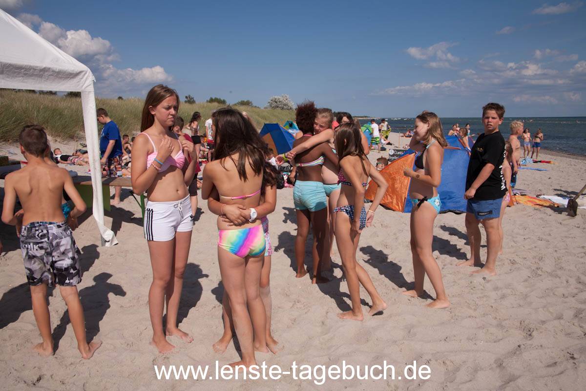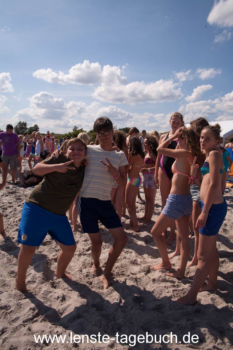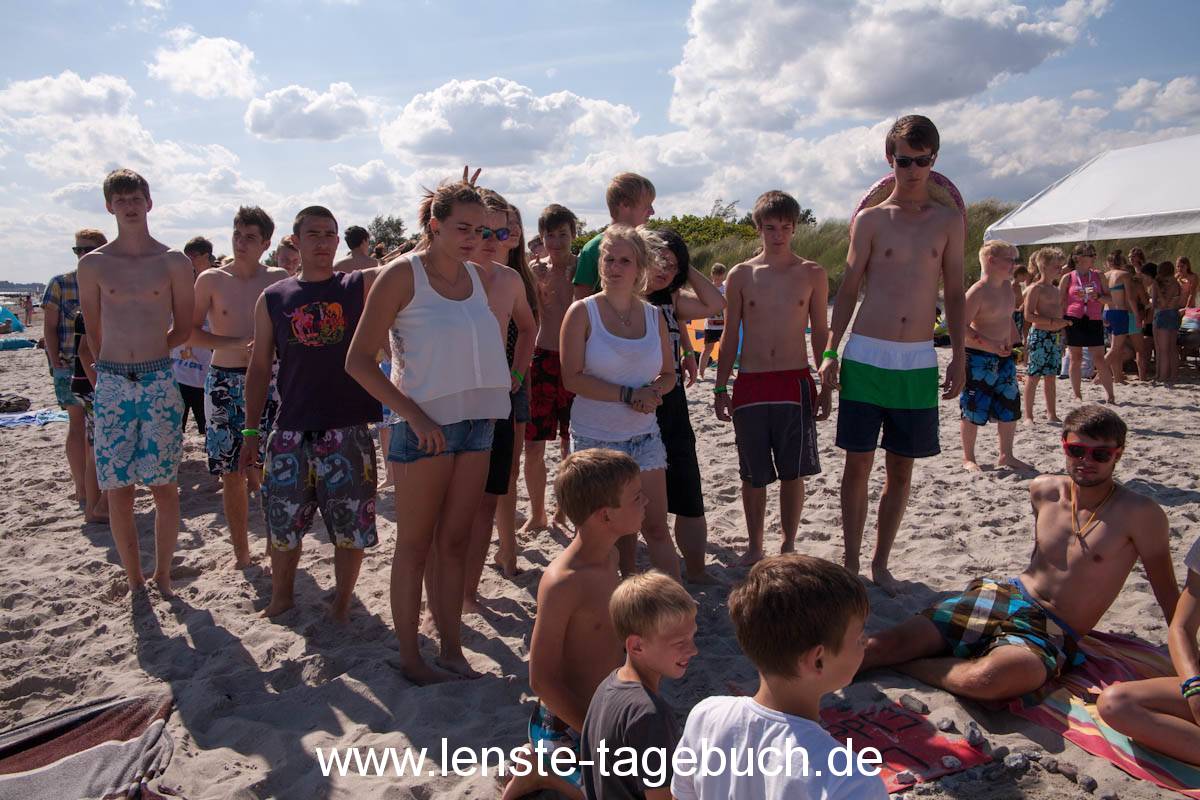 Die Strandparty war bei diesem Wetter genau das Richtige. Bei strahlendem Sonnenschein und 22 °C wurden den Kids viel Unterhaltung geboten. An sieben verschiedene Stationen traten die Teilis Zeltweise an um Punkte für ihr Haus zu holen.