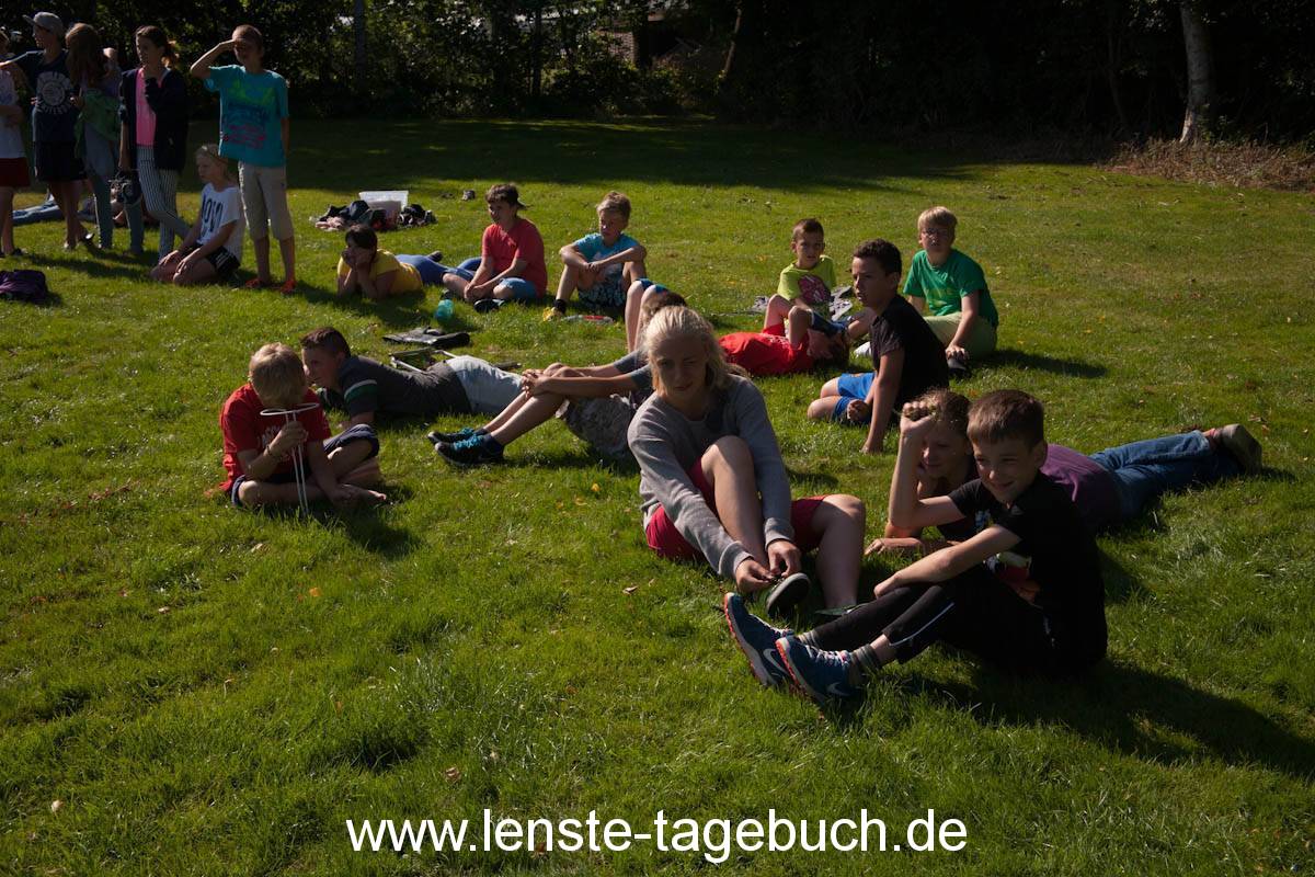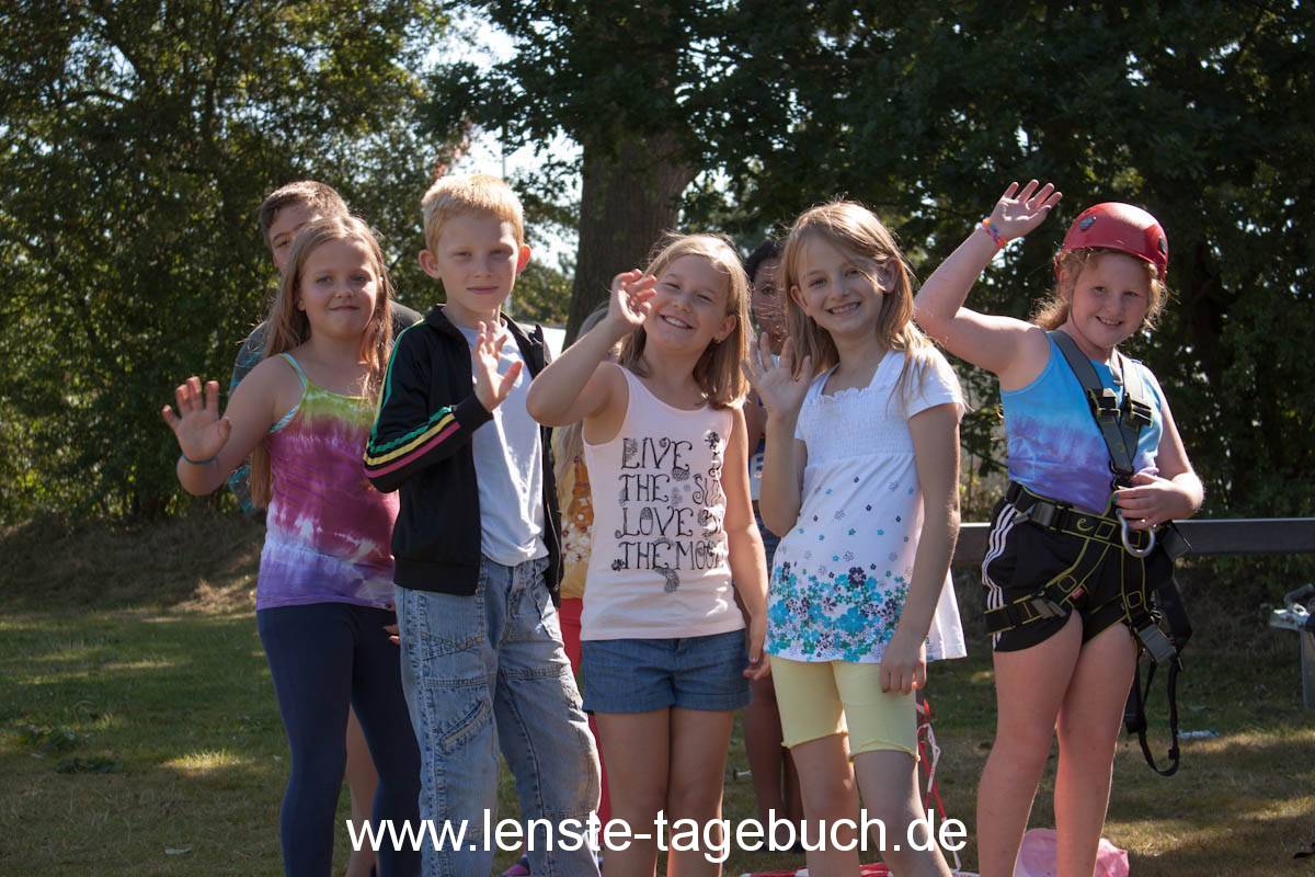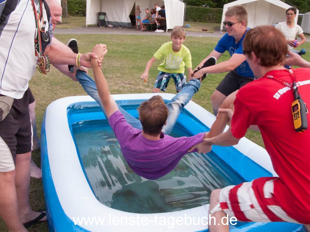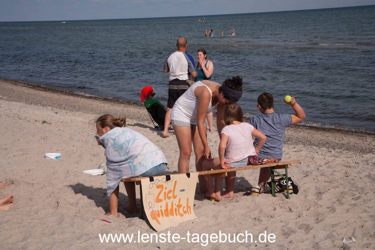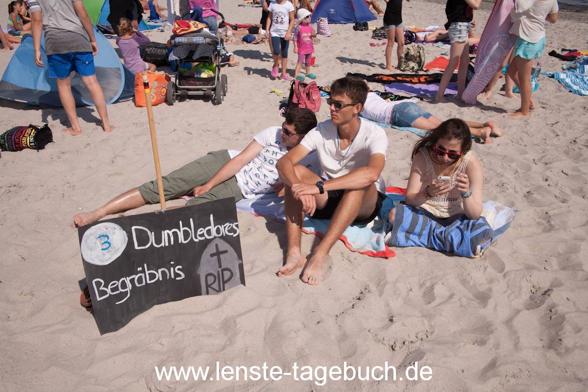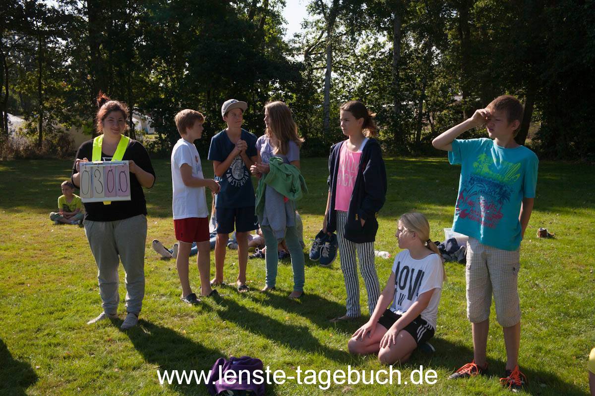 Die Strandparty war bei diesem Wetter genau das Richtige. Bei strahlendem Sonnenschein und 22 °C wurden den Kids viel Unterhaltung geboten. An sieben verschiedene Stationen traten die Teilis Zeltweise an um Punkte für ihr Haus zu holen.