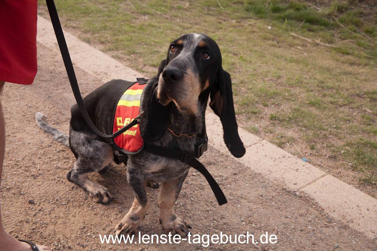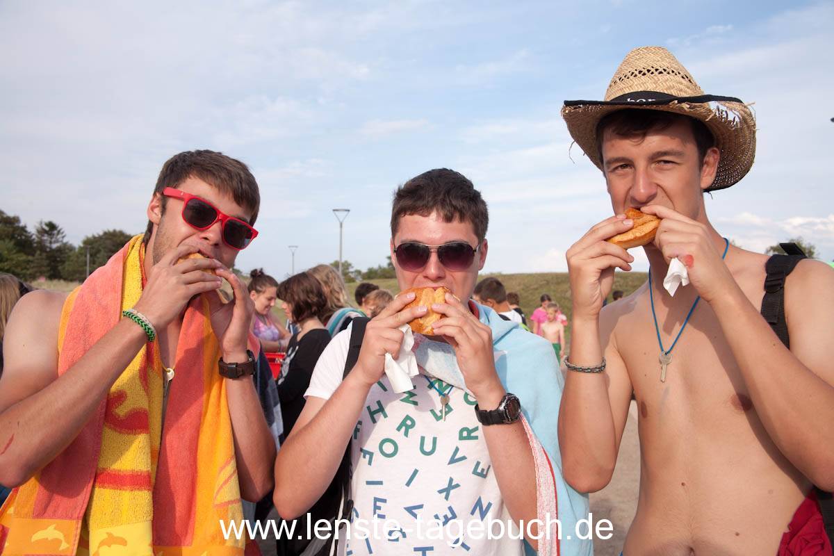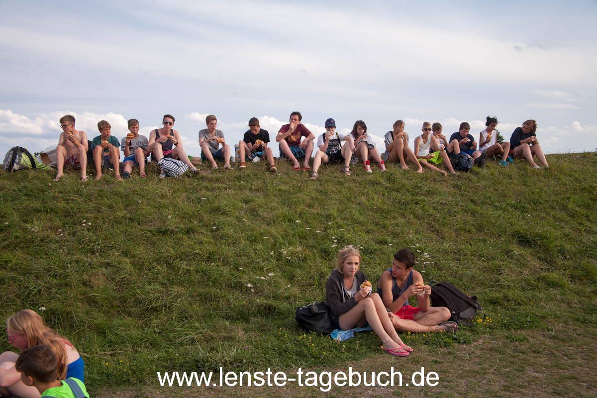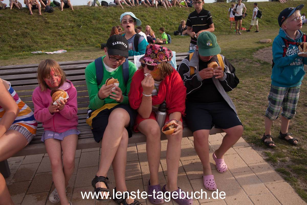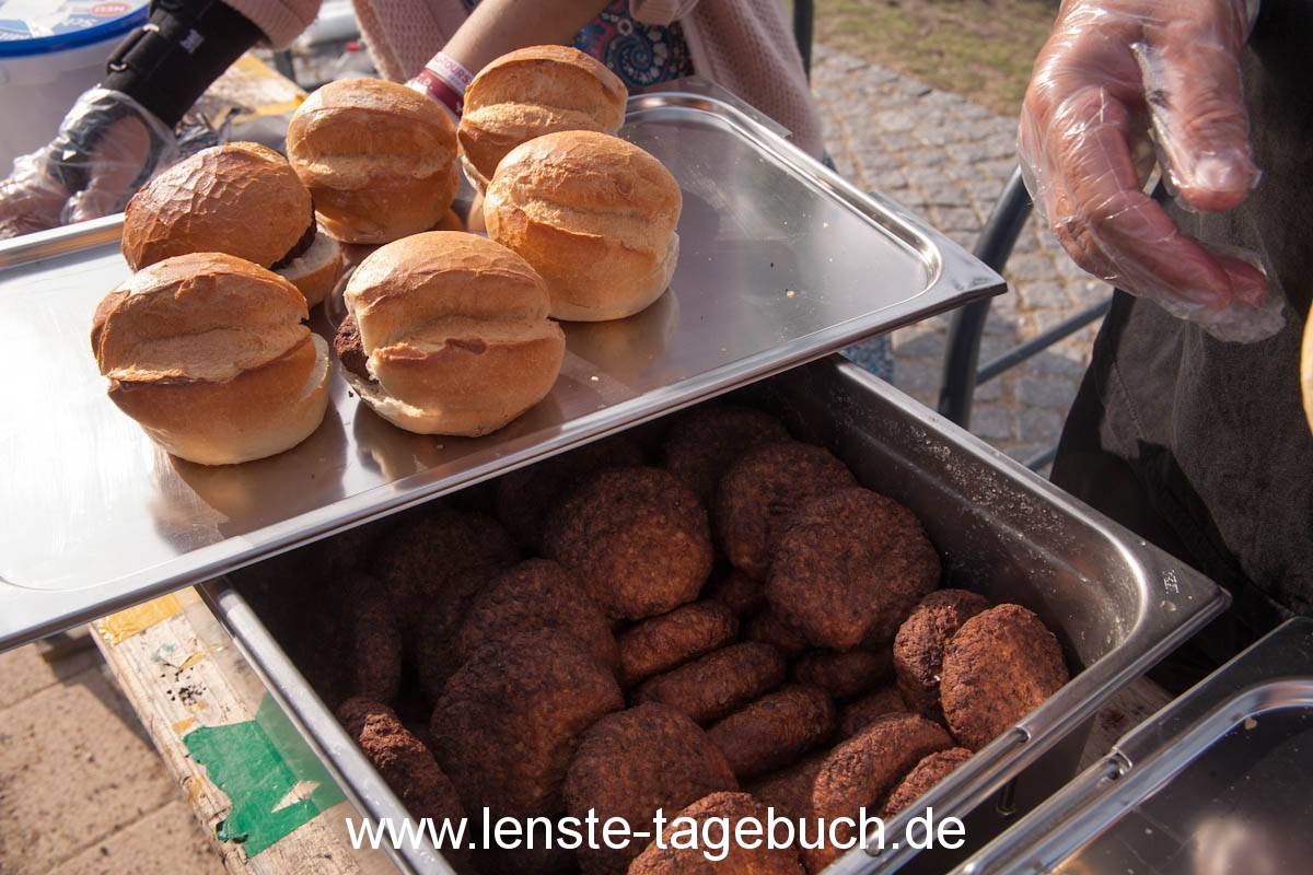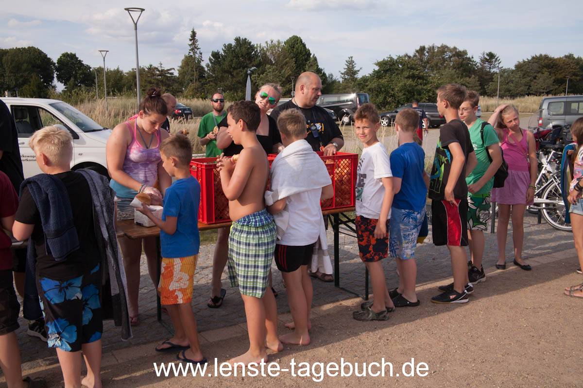 Zum Abendessen gab es Bouletten im Brötchen. Der kleine DLRG-Hund hätte vermutlich auch gerne was davon abhaben wollen. 😉