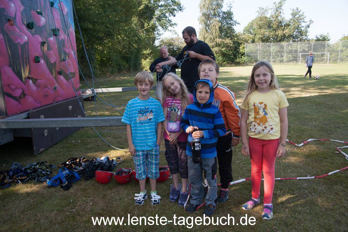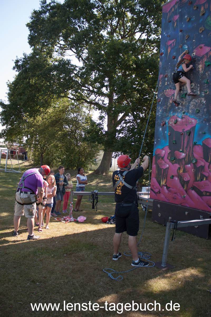 Heute konnten die Kids ihren Mut an der Kletterwand beweisen. Abgesichert durch ausgebildete Betreuer kletterten einige Teilis sogar bis zum oberen Rand der Wand.