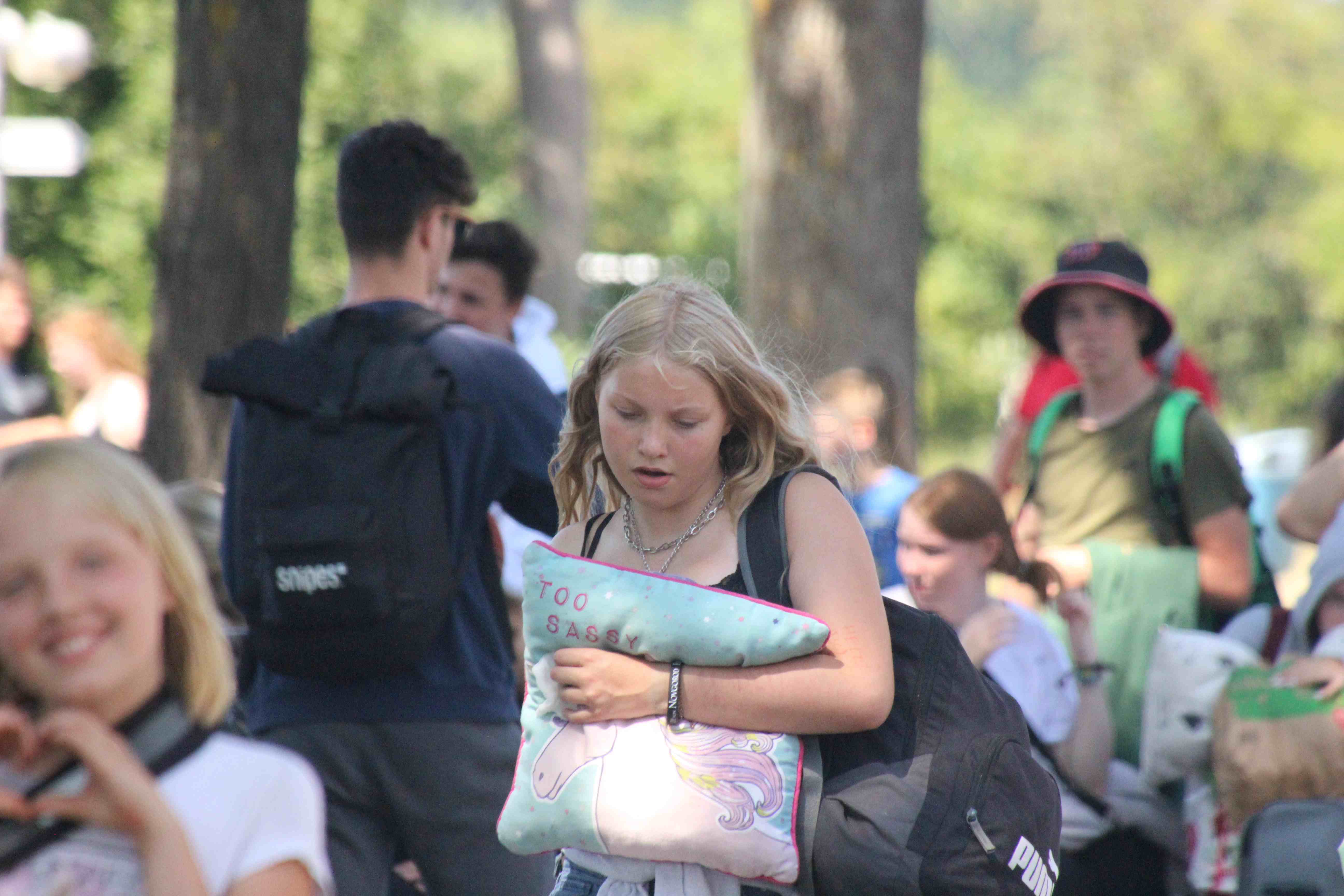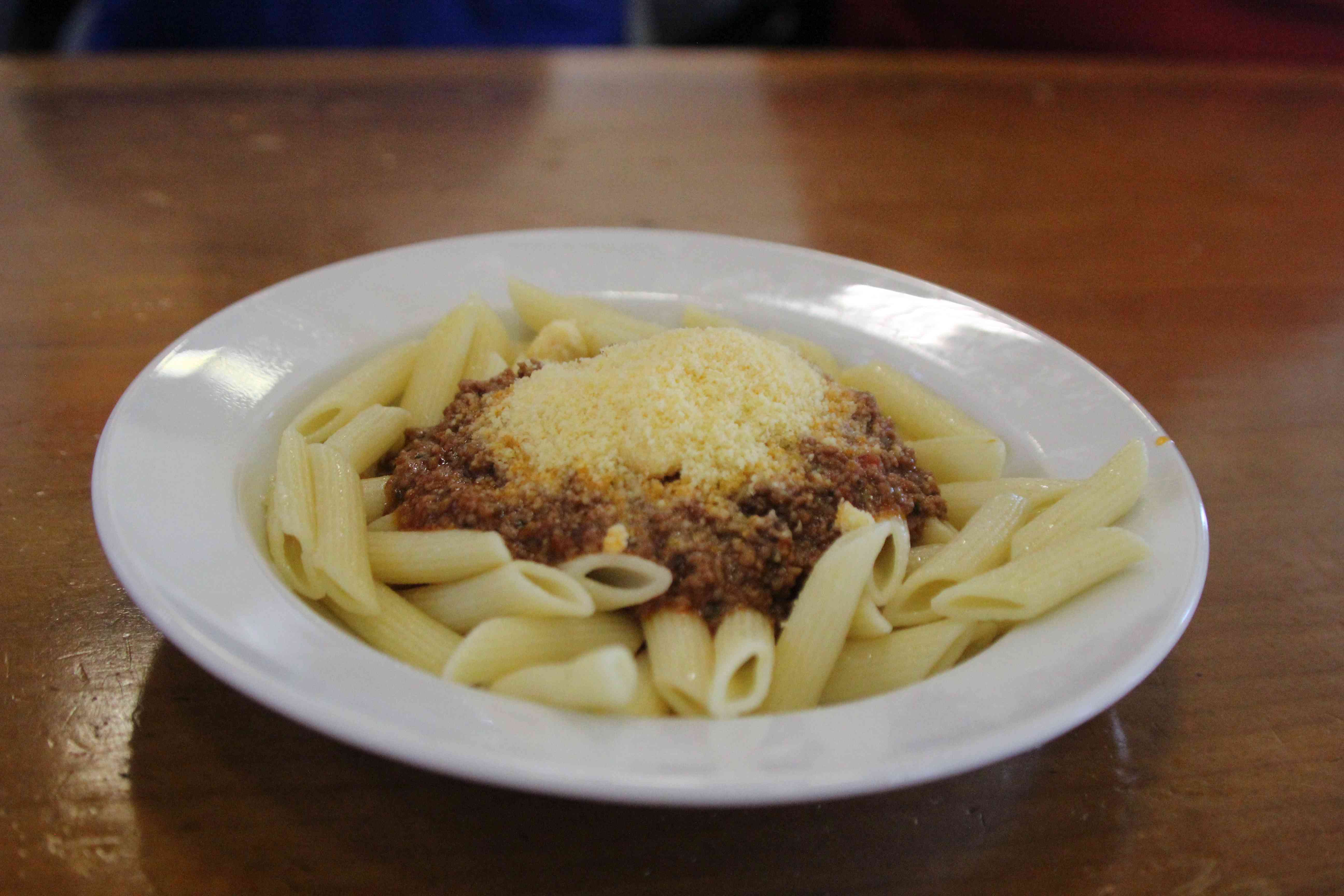 Nach dem Mittagessen, Nudeln mit Bolognesesauce, kamen die Busse an, die uns nach Hause bringen sollten.