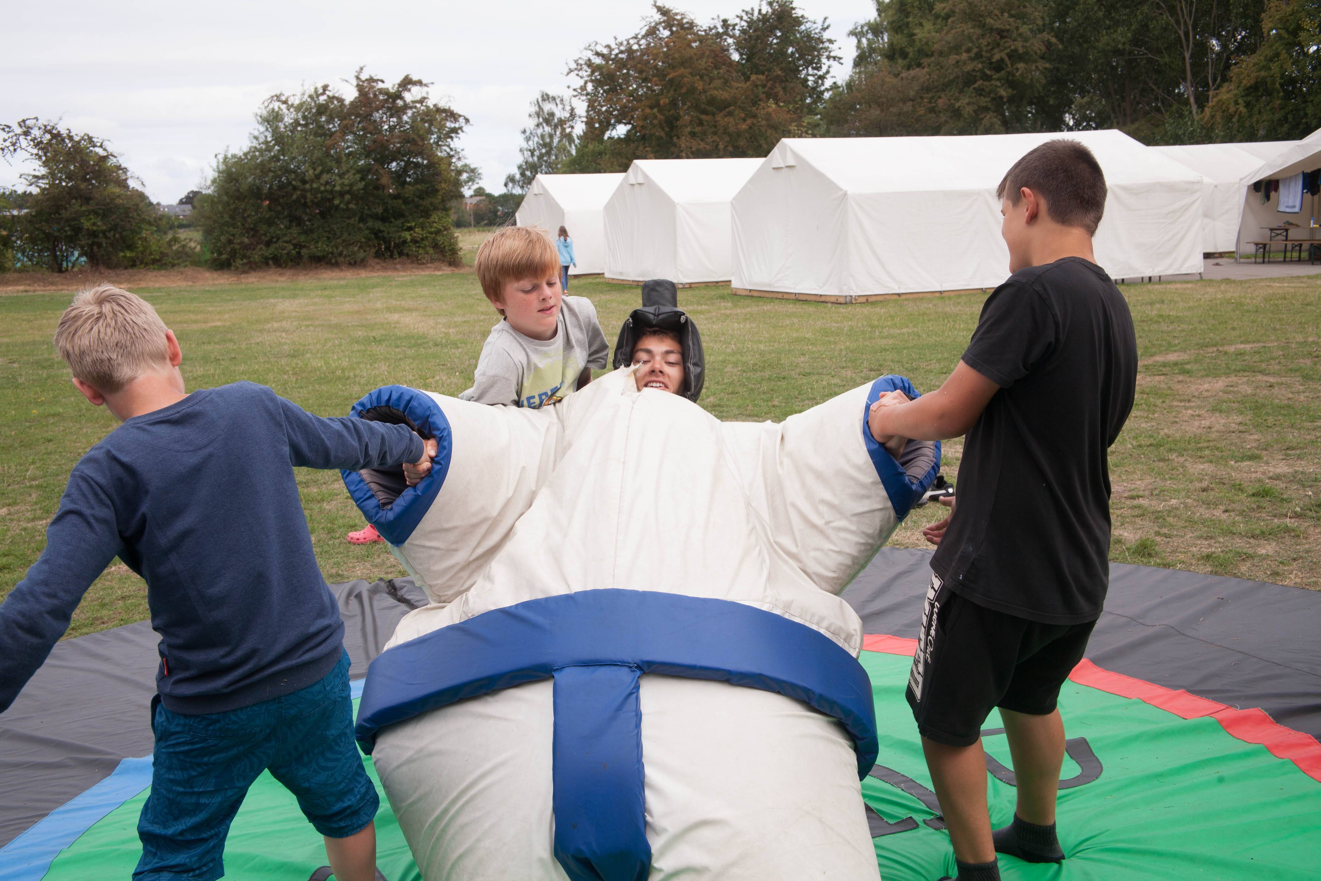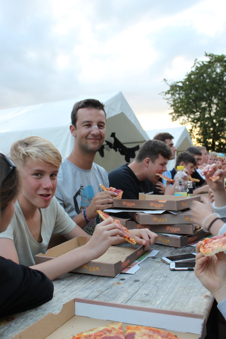 Anschließend traten die Six-Pack Zelte gegen die Betreuer und Ü-16 Zelte beim Fußball an. Schnappi, der überraschend zu Besuch kam, feuerte alle an! 😀