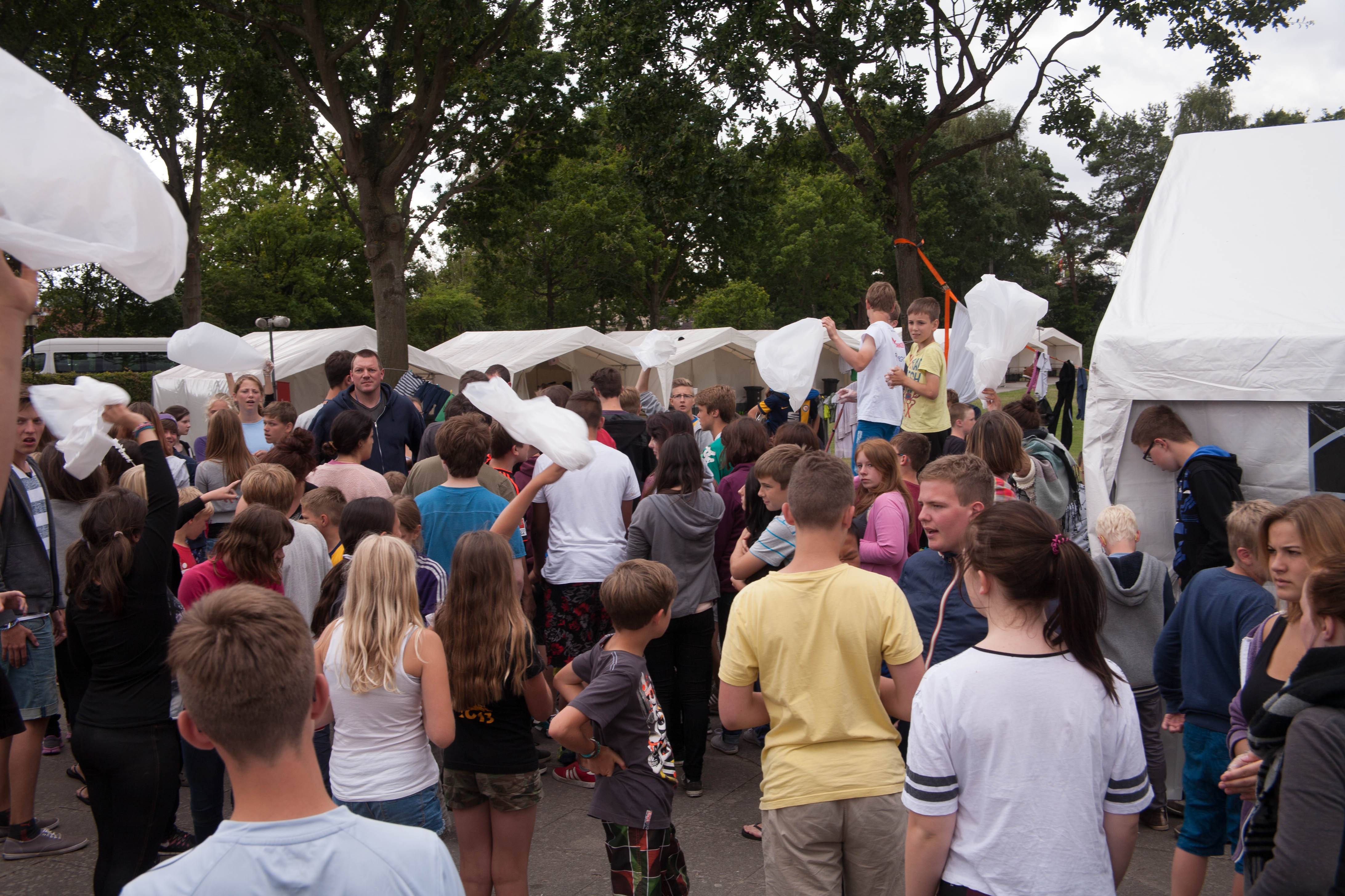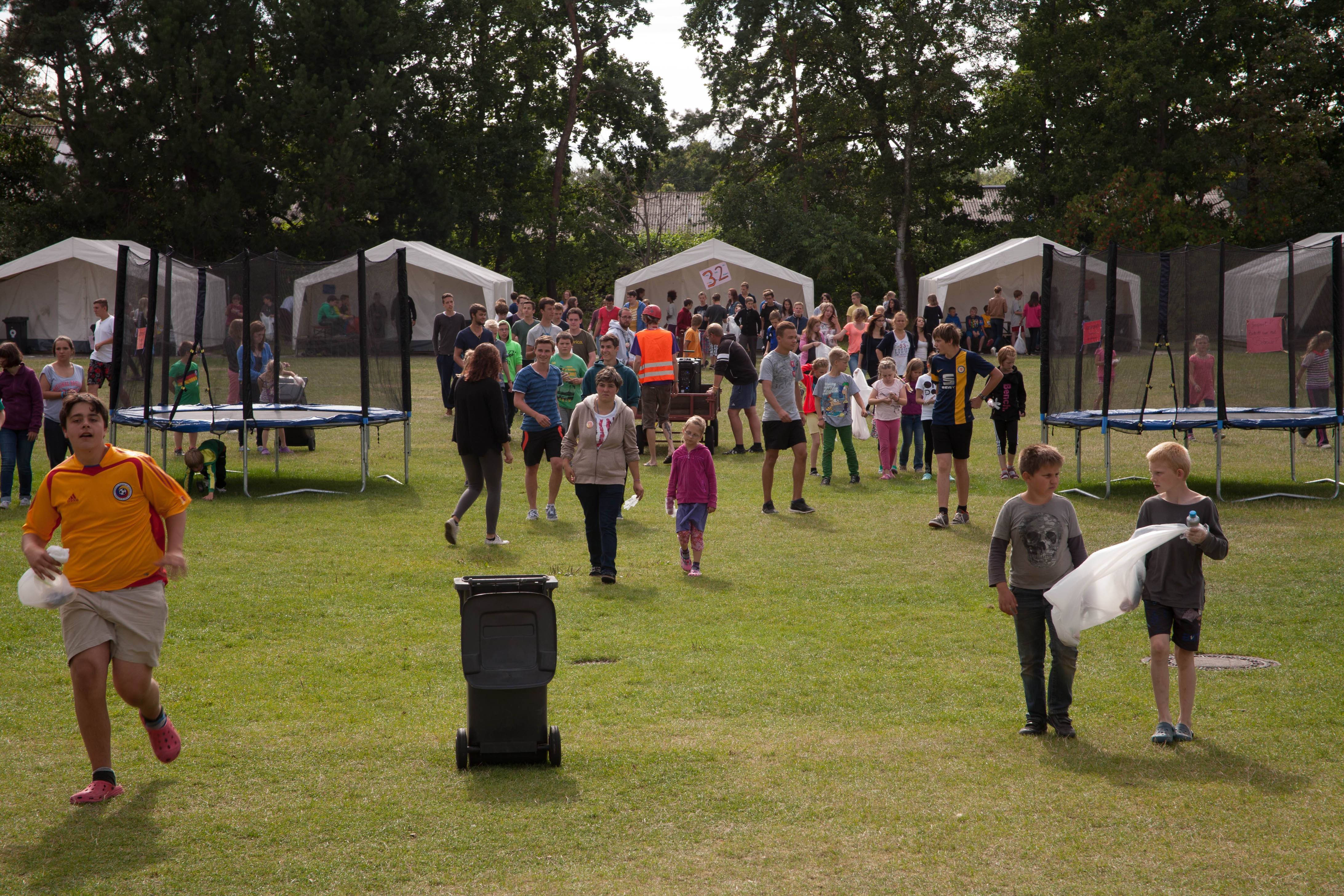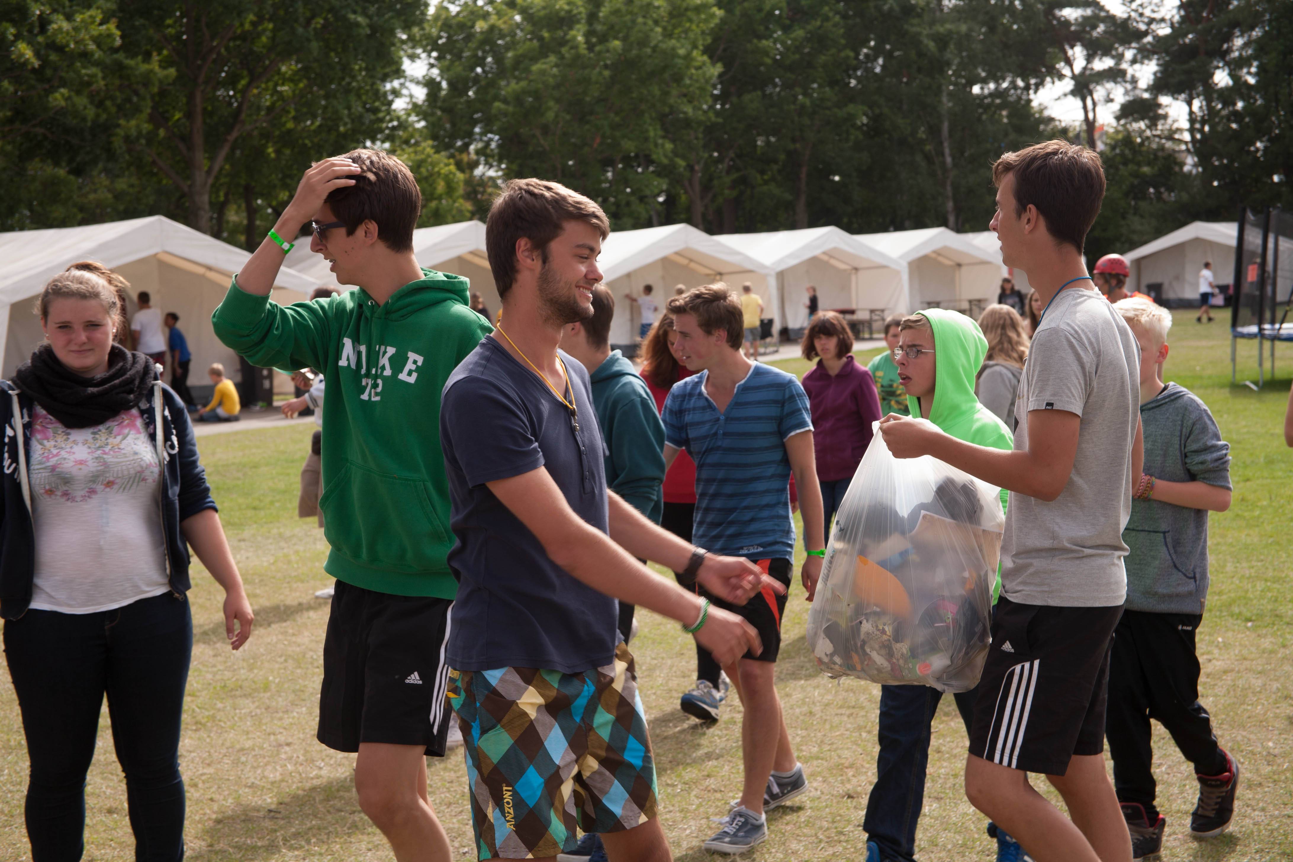 Um 15 Uhr trafen sich alle am Fahnenmast um gemeinsam den Zeltplatz aufzuräumen. Alle Zelte bekamen Mülltüten und Handschuhe und los ging’s.
