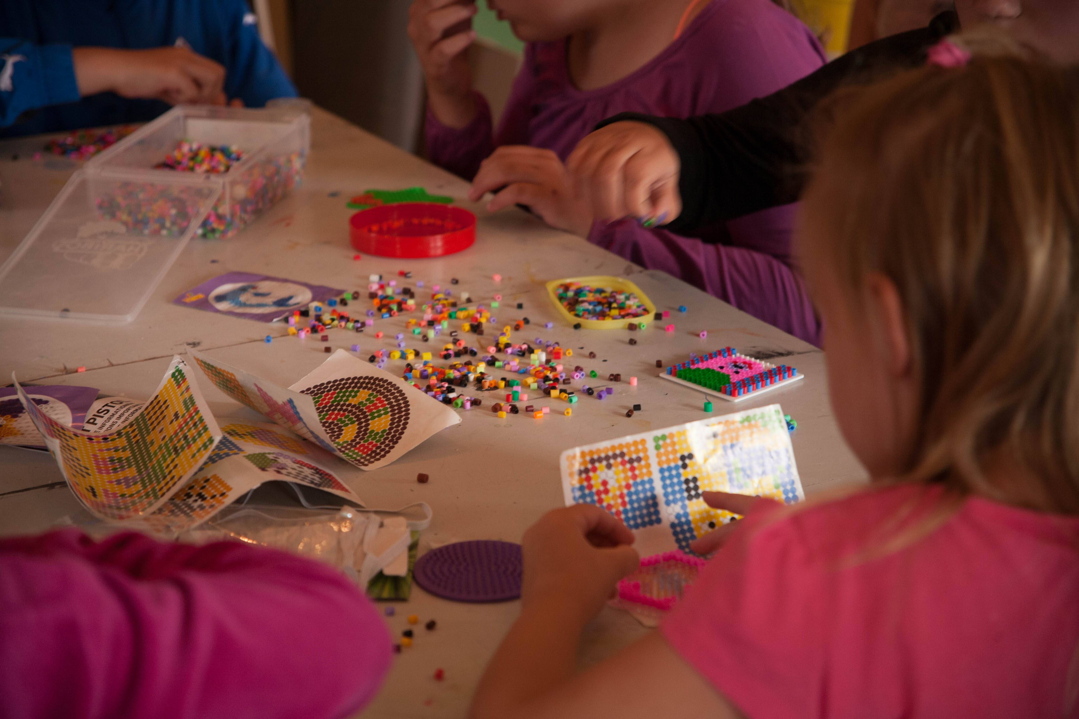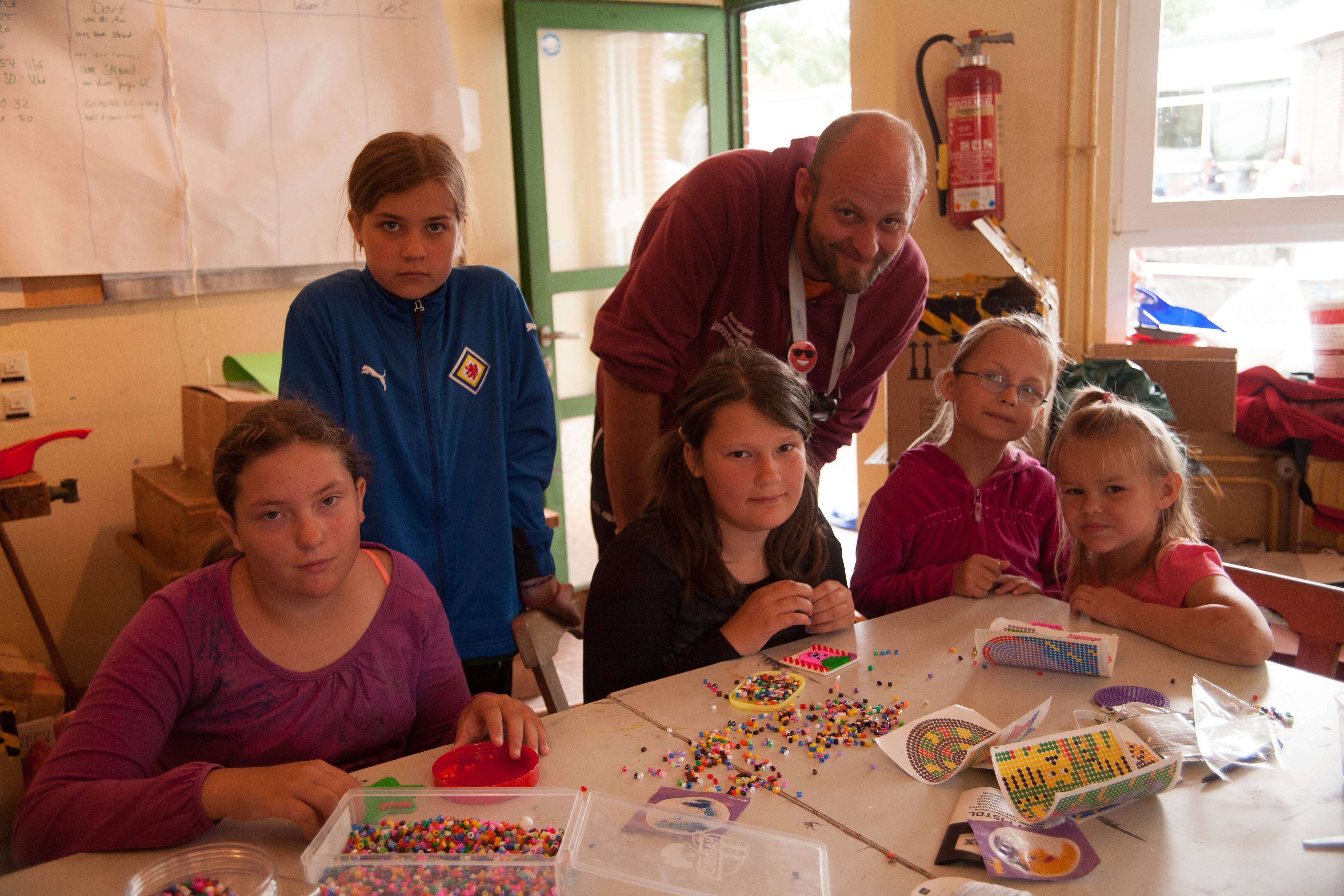 Heute morgen waren unsere Teilis mal wieder sehr aktiv. Die einen lernten einen neuen Tanz, „Cha Cha Slide“ genannt, andere verbrachten ihren Vormittag mit Beach-Soccer. Gebastelt wurde natürlich auch wieder: Heute wurden Perlenbilder angeboten.