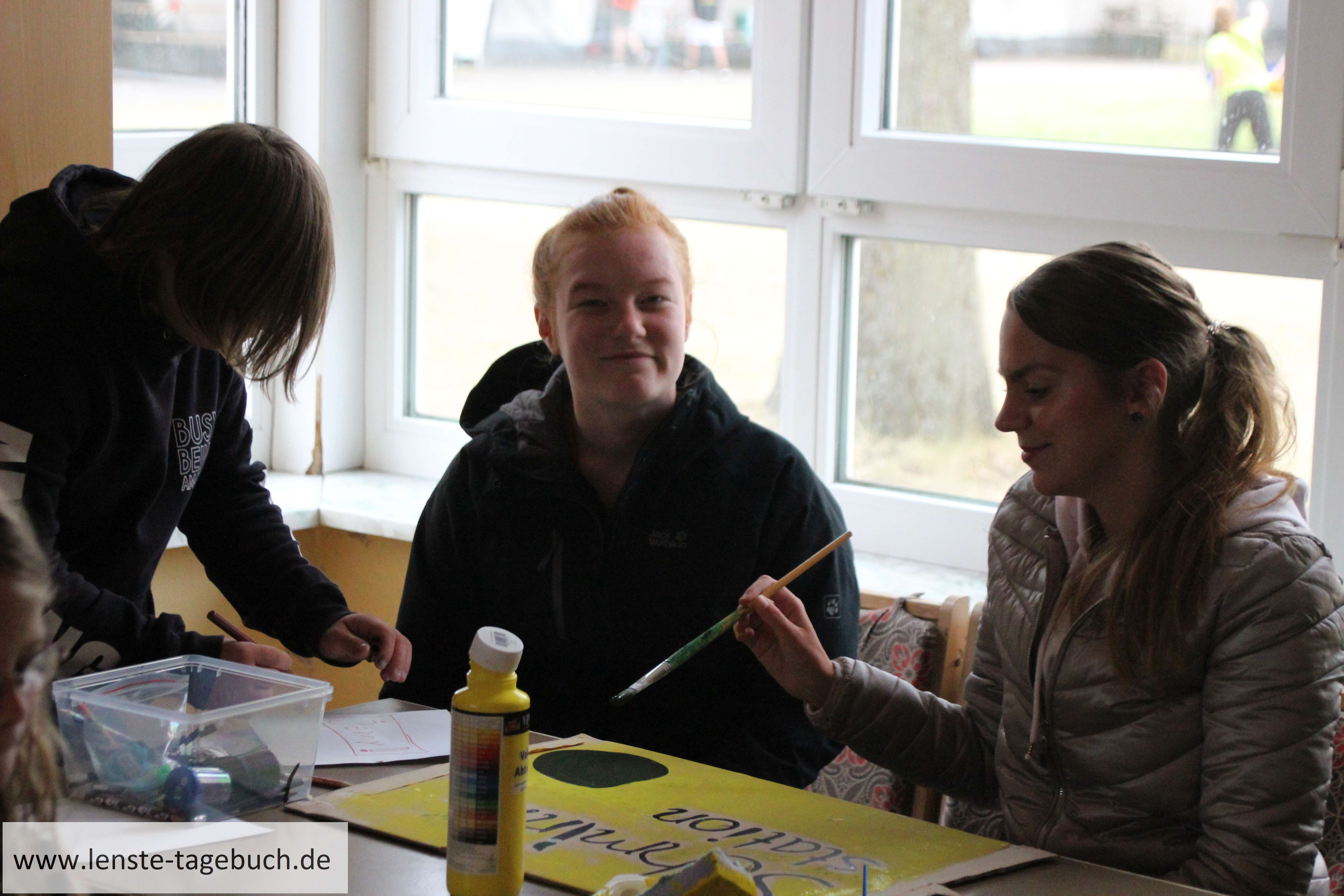 Nachdem die Edelleute von FreiLei befreit wurden begann der Tag mit einem reichhaltigen Frühstück für alle. Im Anschluss hieran startete ein Vormittag zur freien Gestaltung. Der Bastelraum hat wieder geöffnet in dem Banner bemacht wurden.