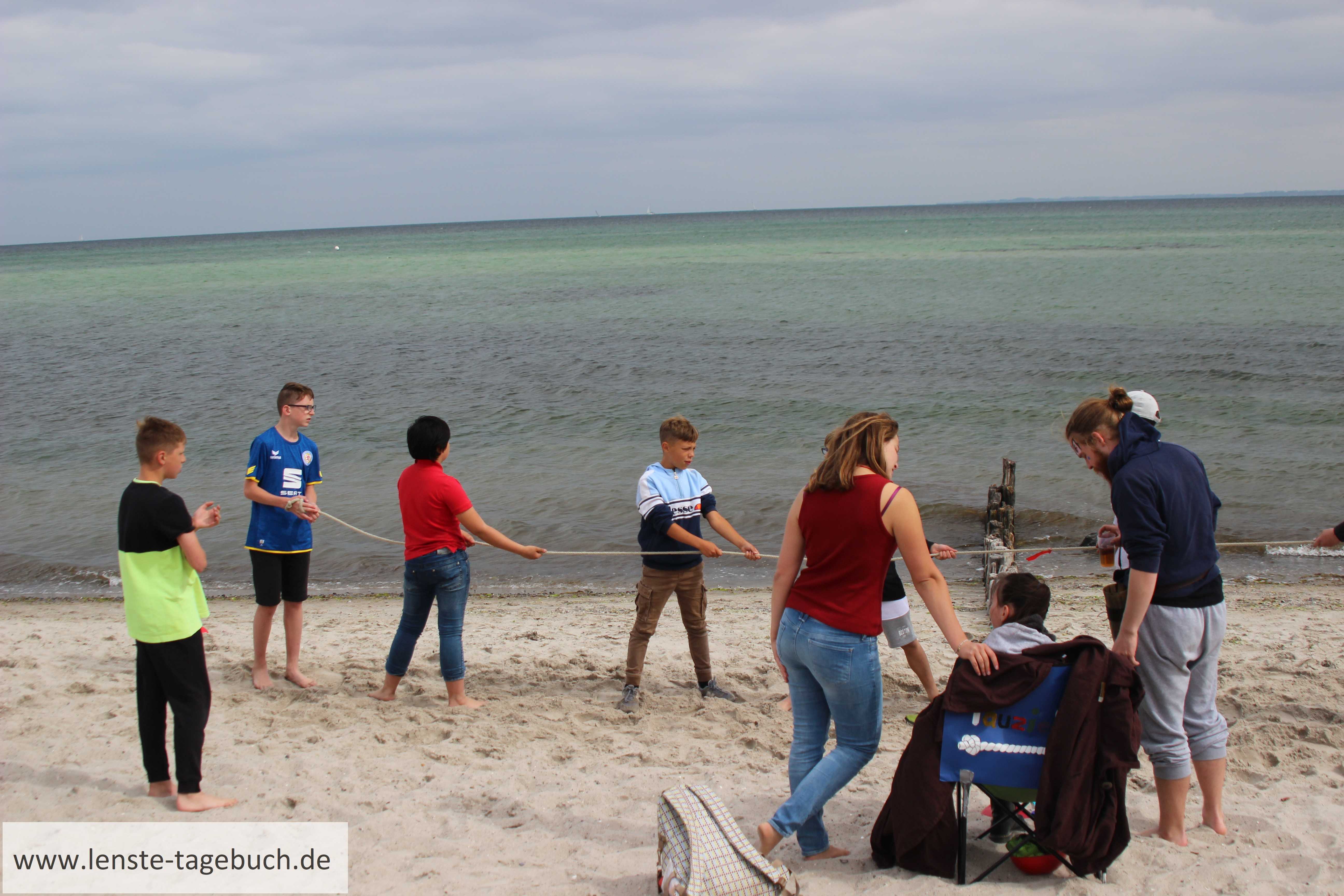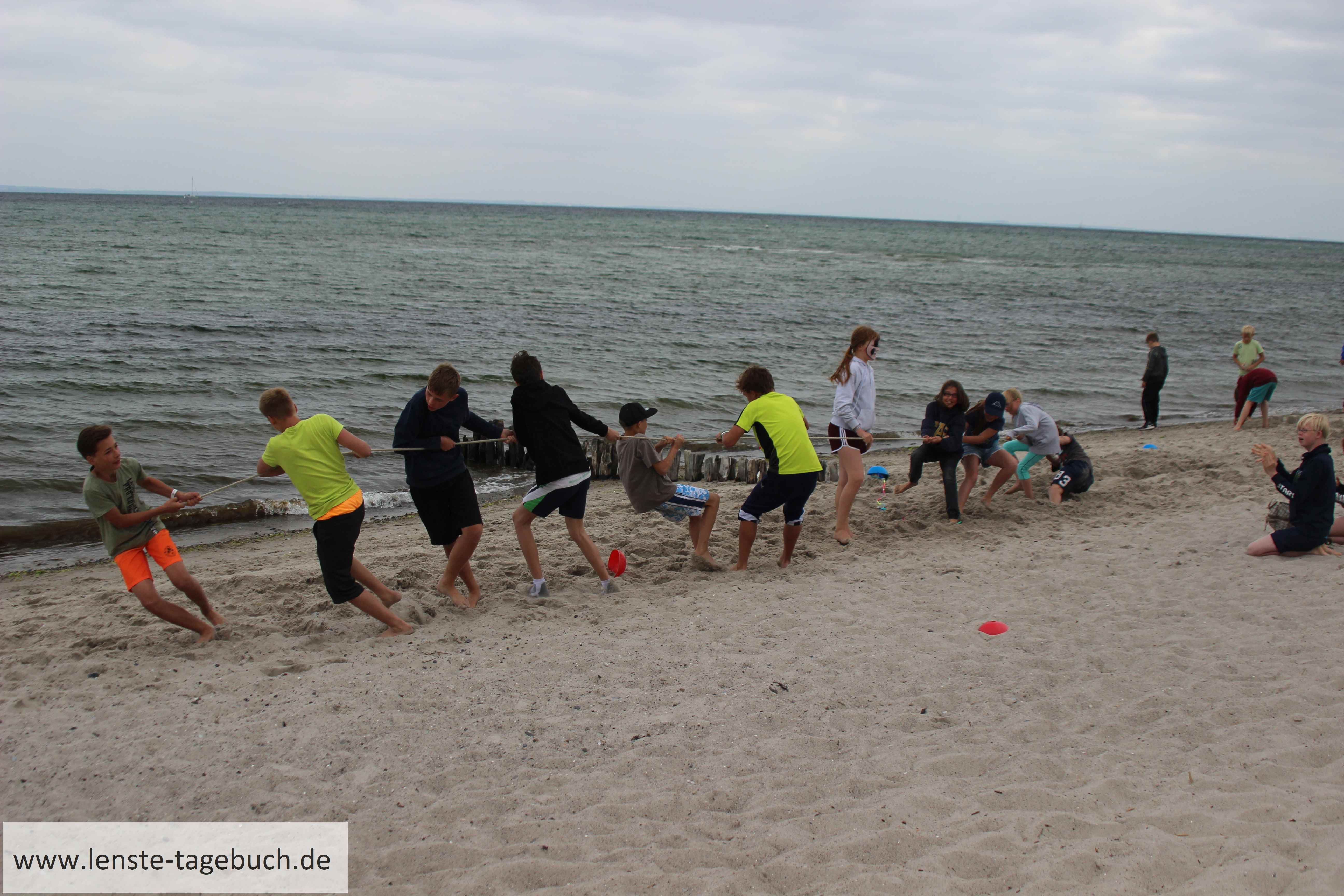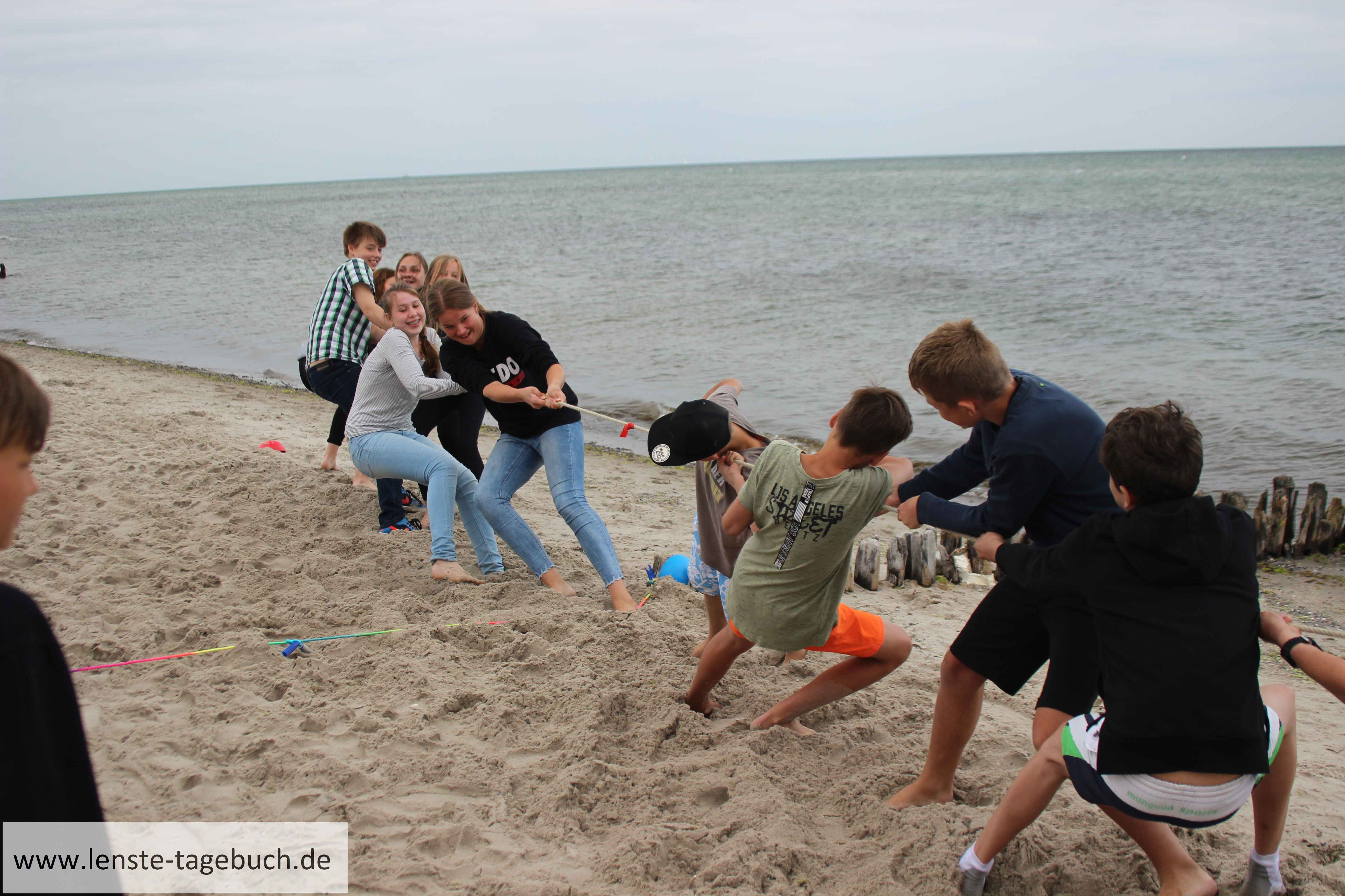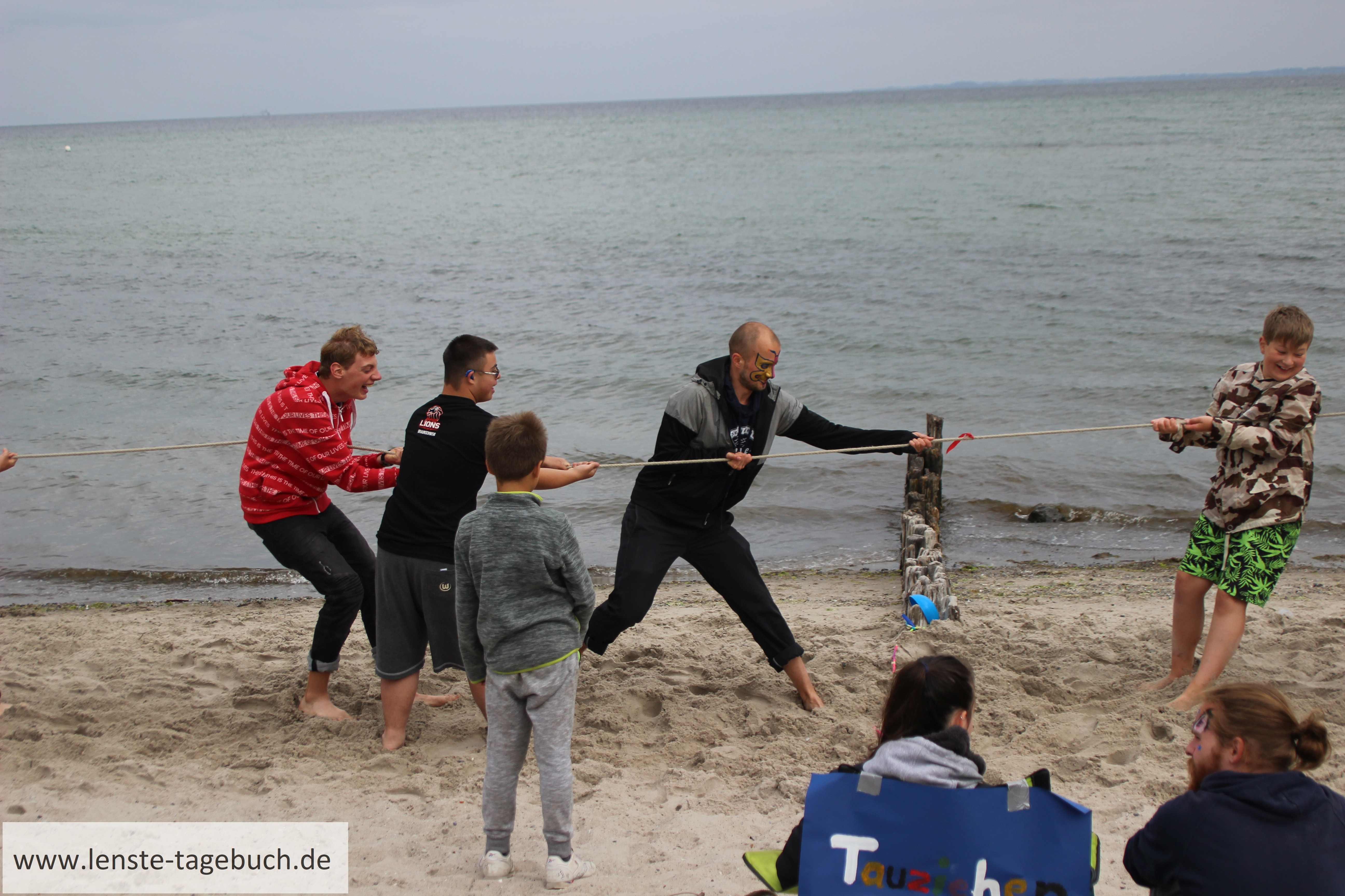 Nachmittags stieg die größte Strandparty der Freizeit mit viele verschiedenen Spielen.
