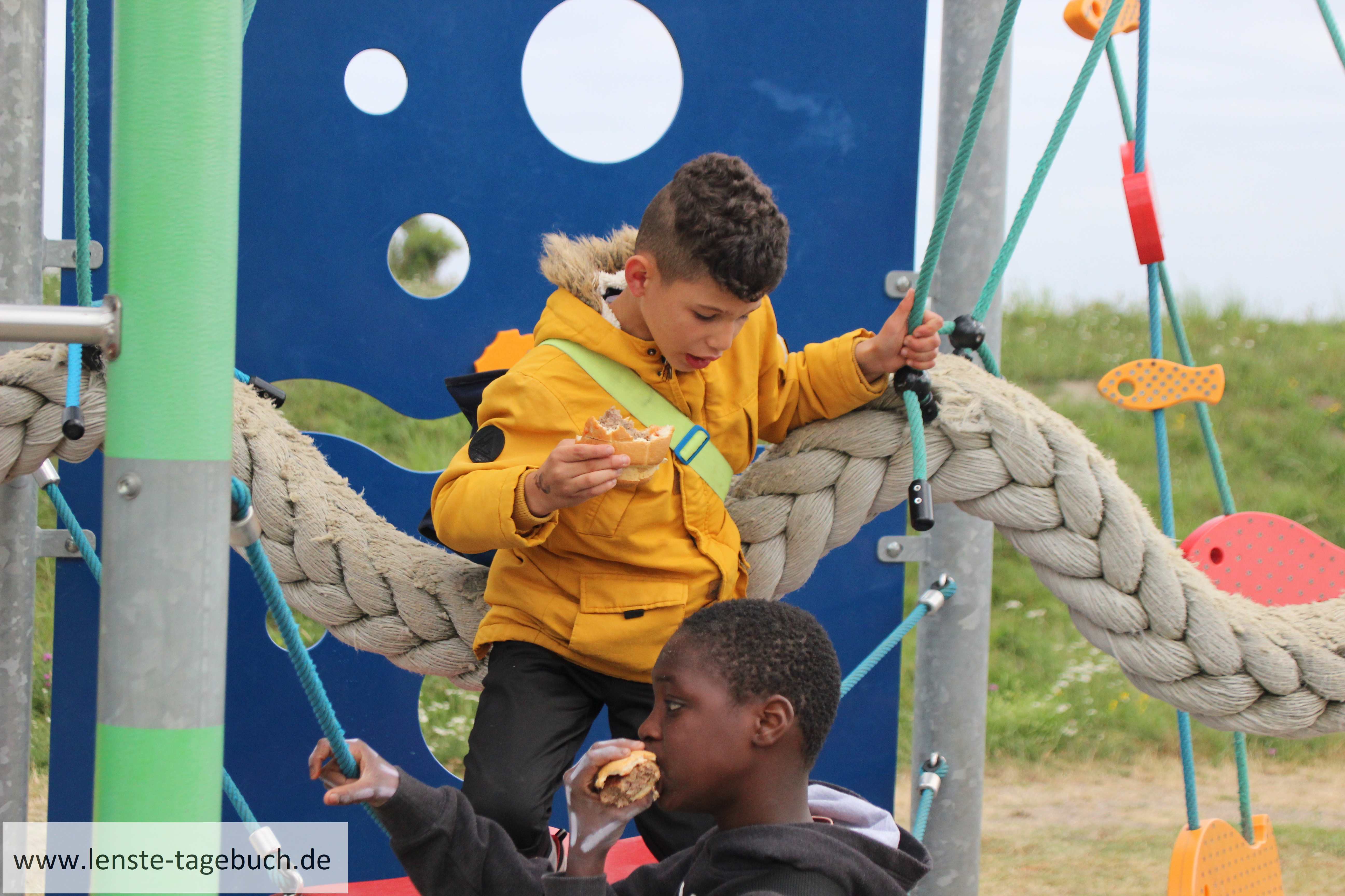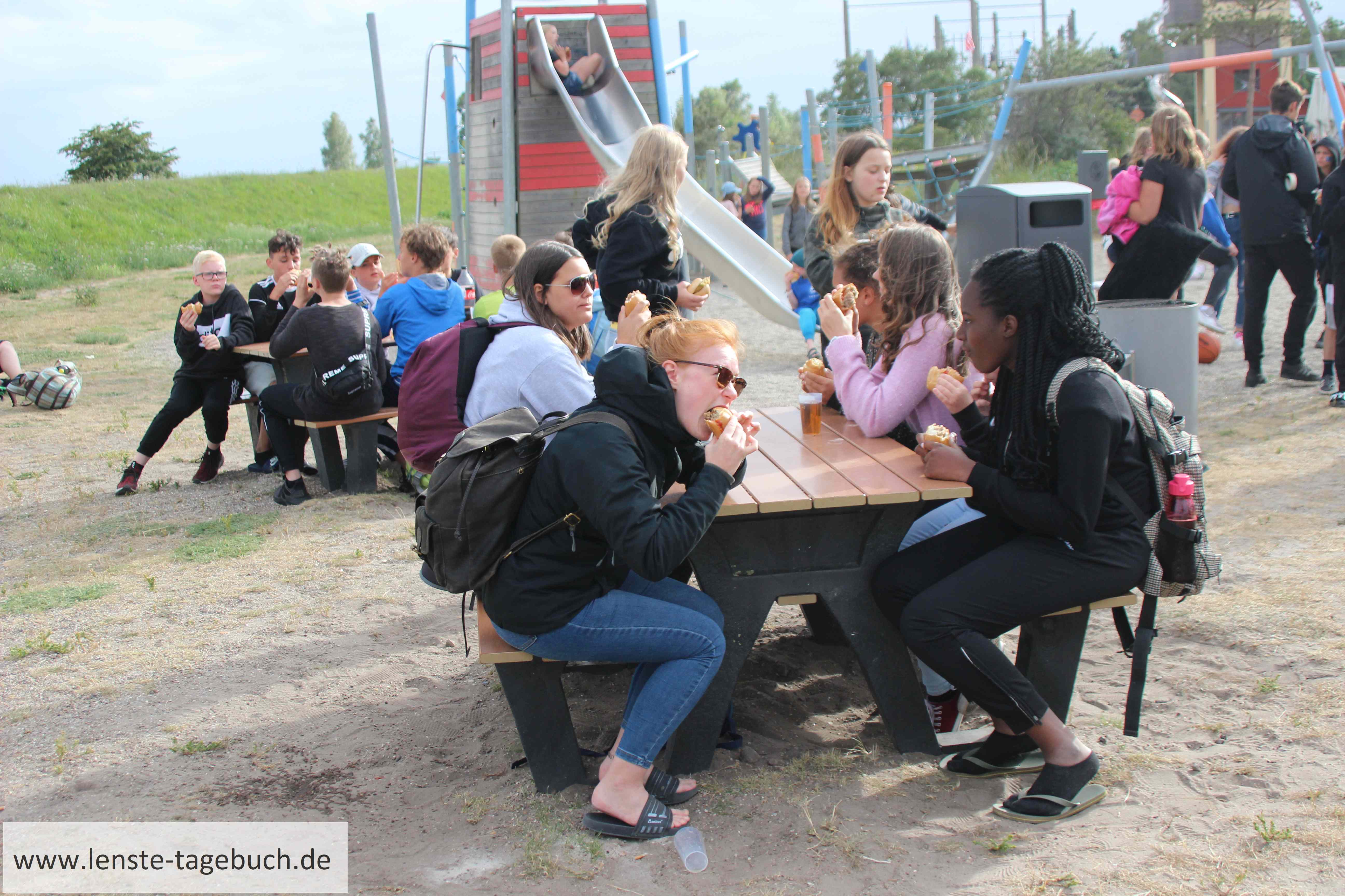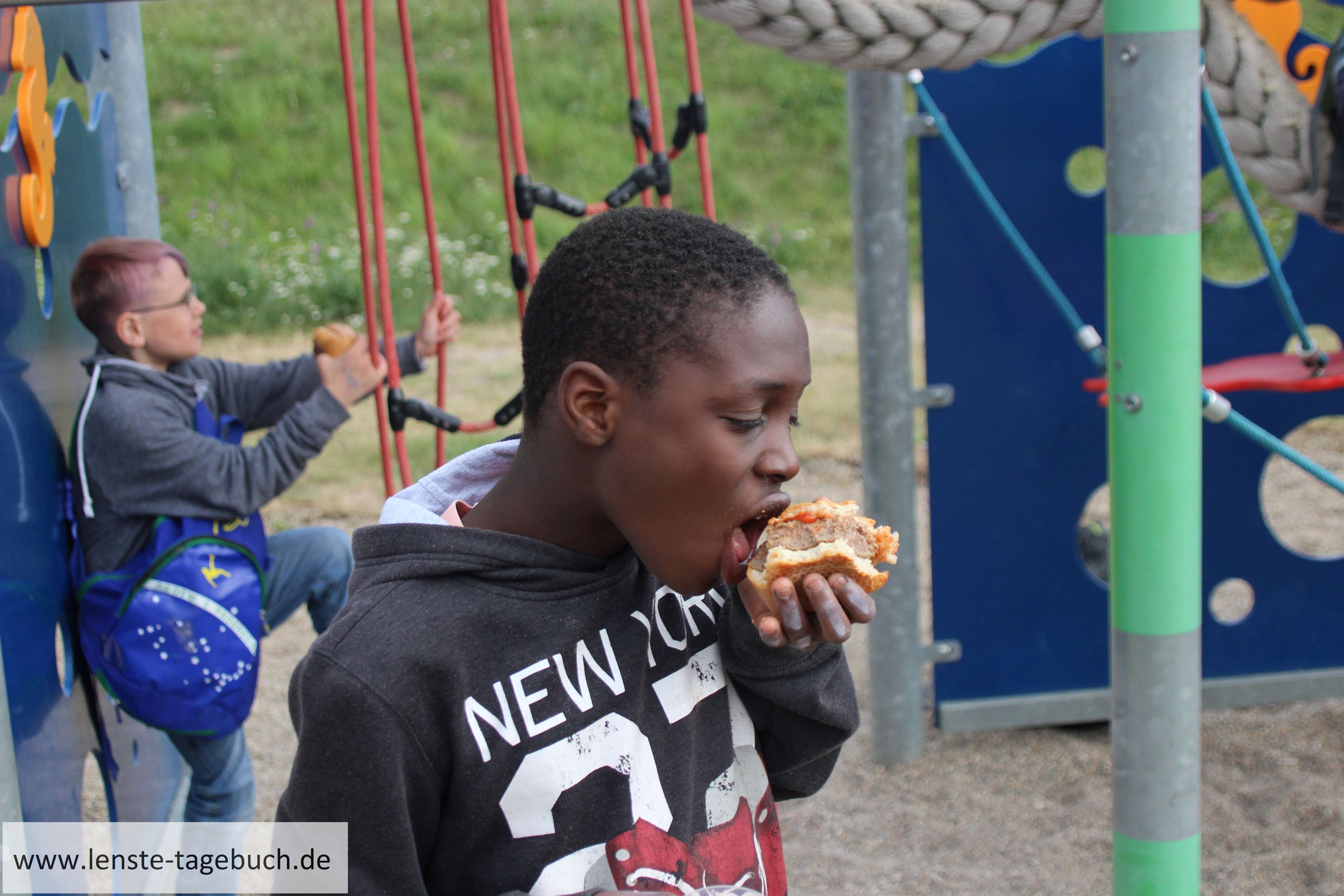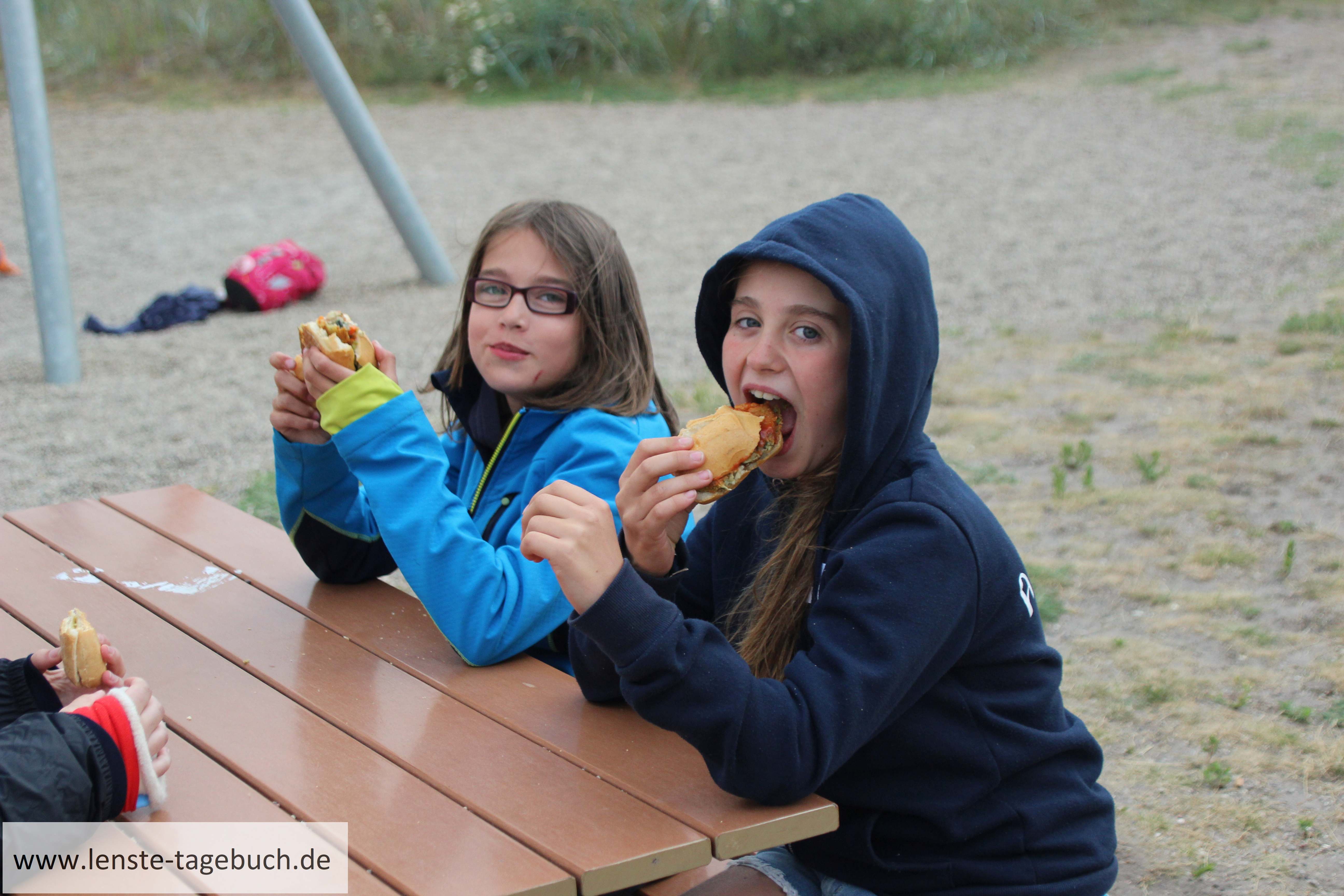 Zum Abendessen gab es Burger, welche wir am Strand aßen.