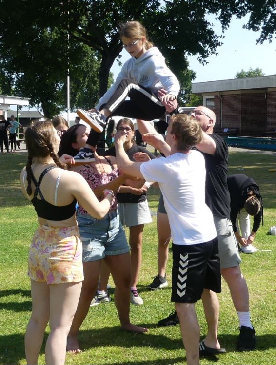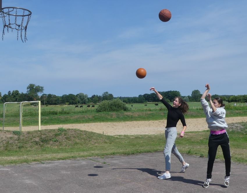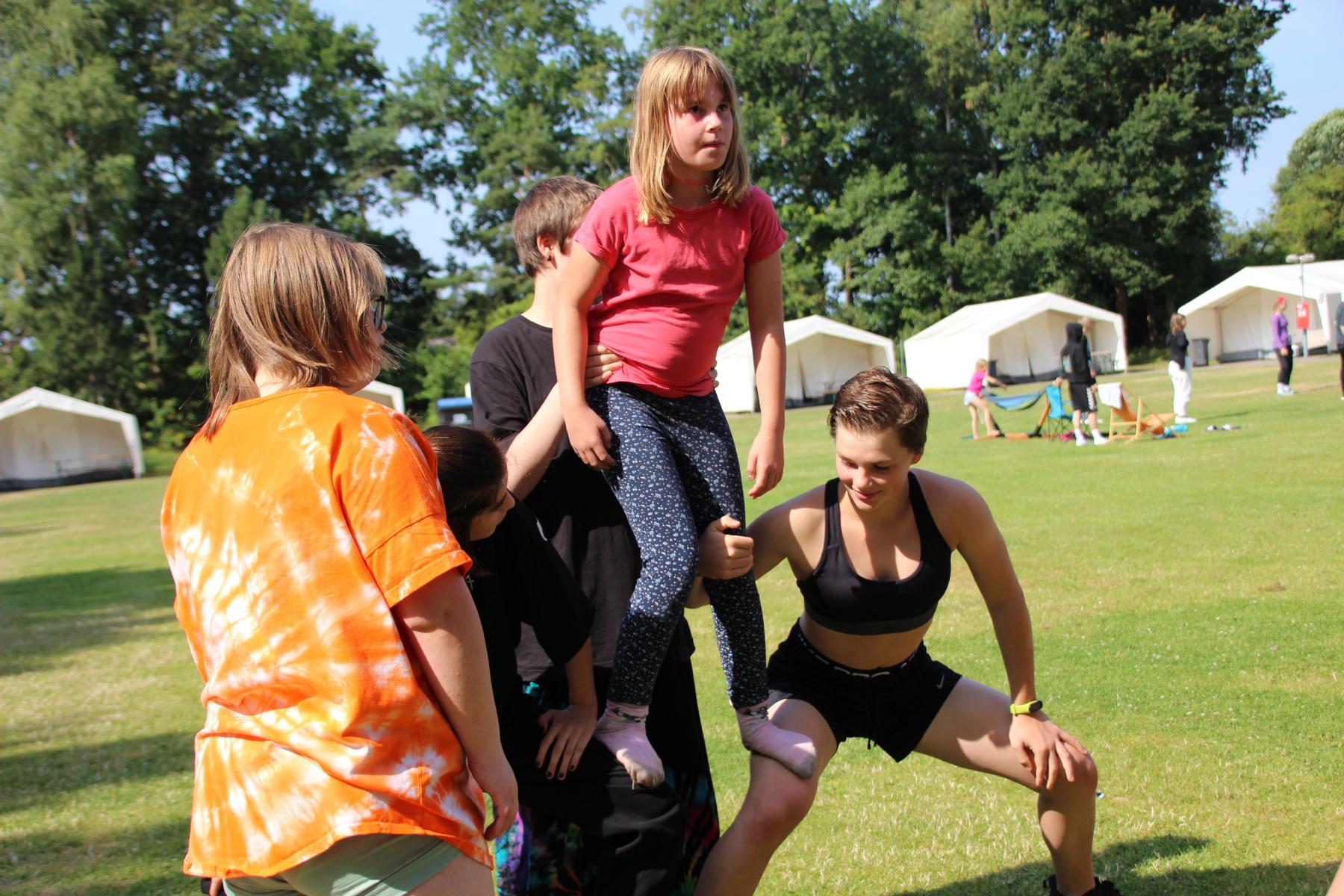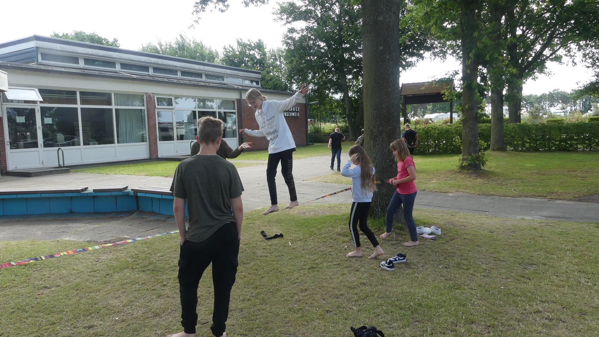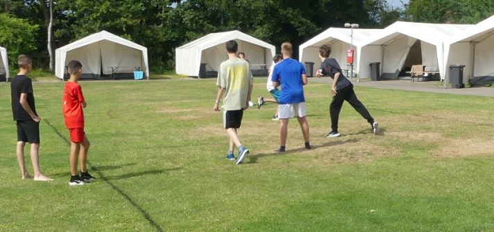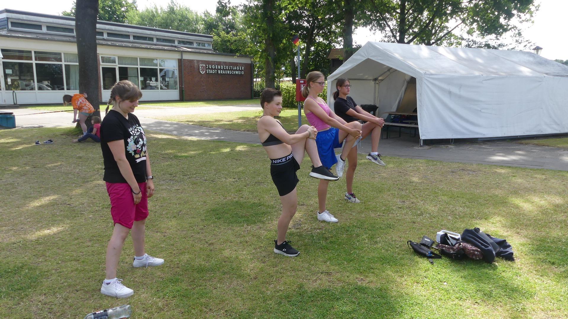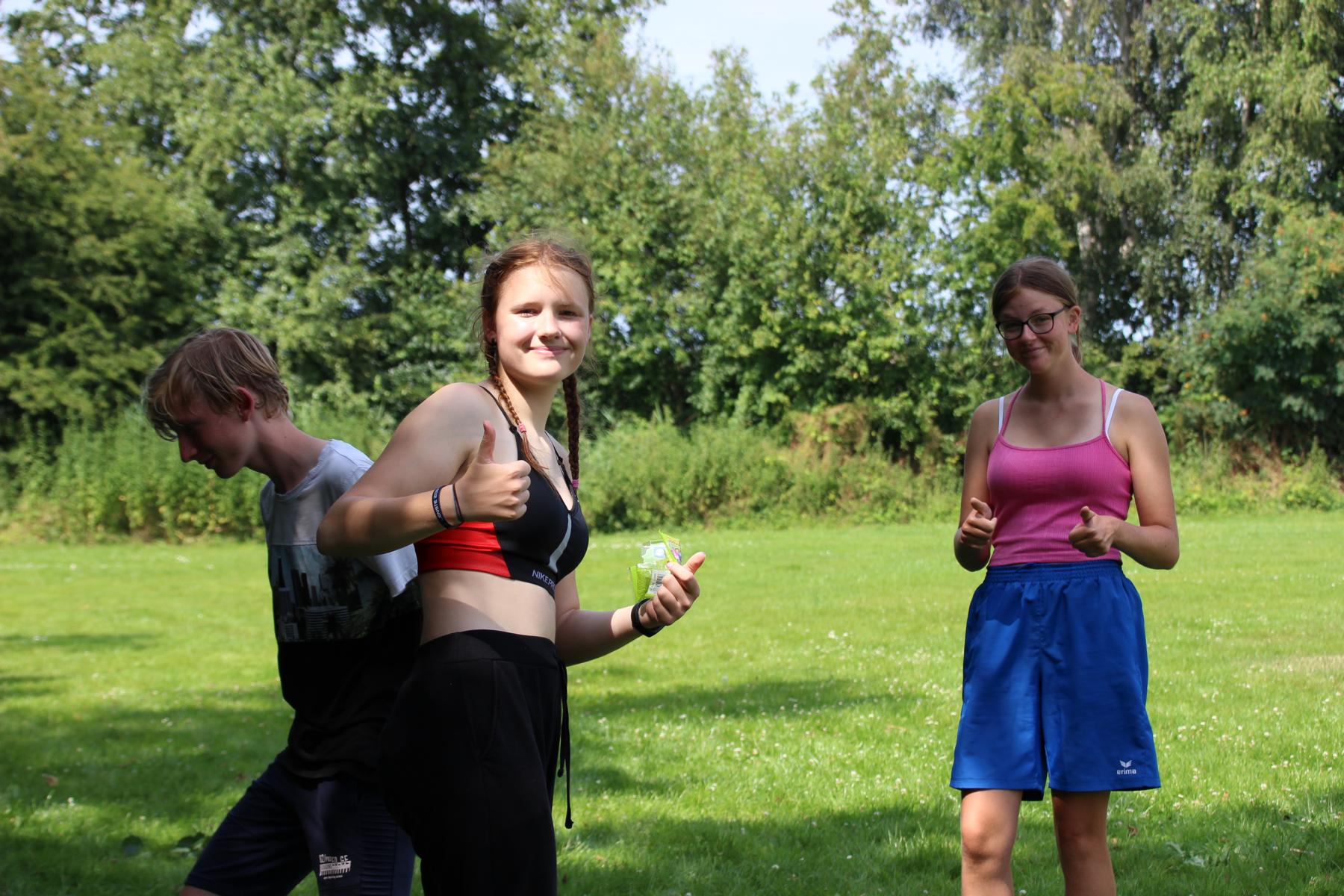 Nach dem Frühstück begann das Sporttraining. Das Gleichgewicht konnte auf der Slagline geschult werden. Auch beim Cheerleading war es möglich sein Gleichgewicht, den festen Stand und das verhalten in der Luft zu optimieren. Durch Fußball, Basketball, Badminton und Volleyball konnte man seine Agilität, Geschwindigkeit und Geschicklichkeit verbessern.