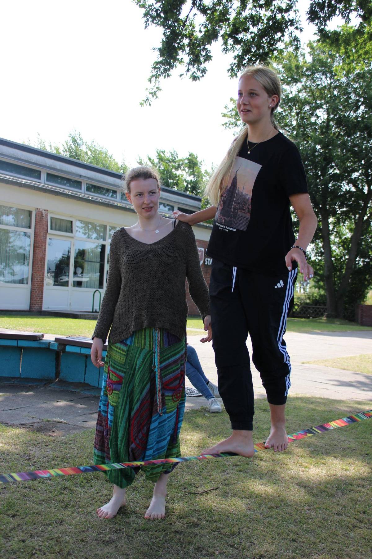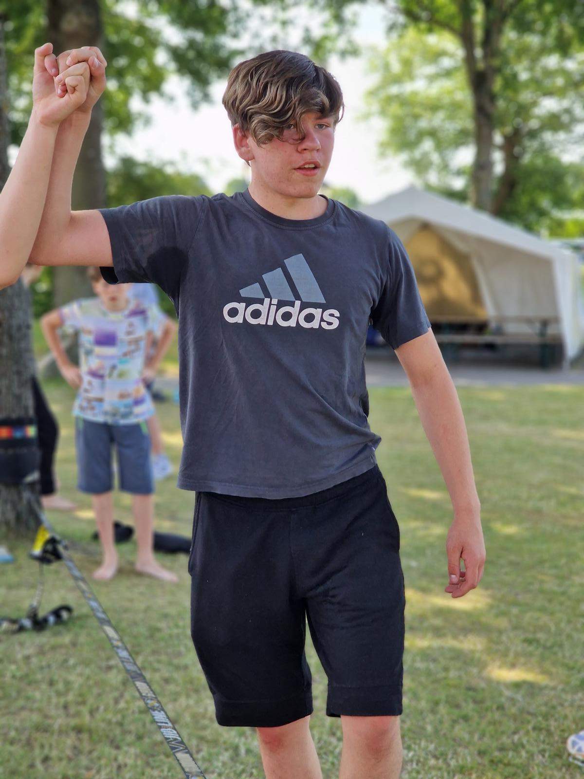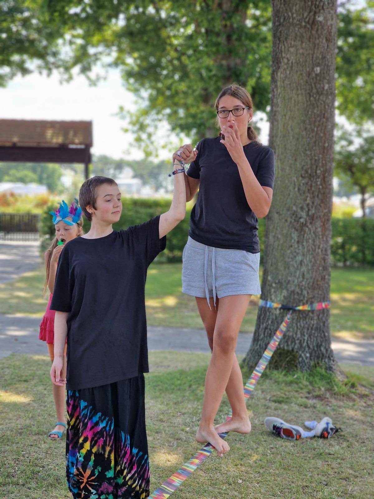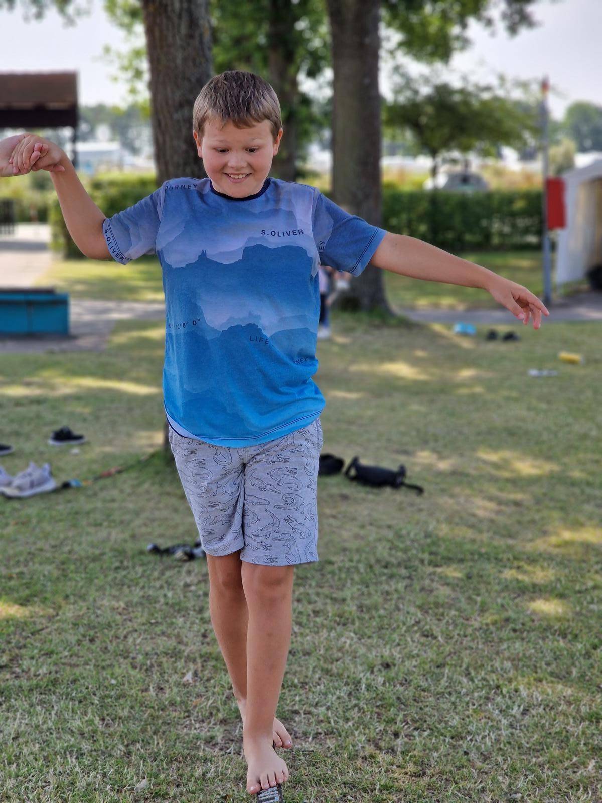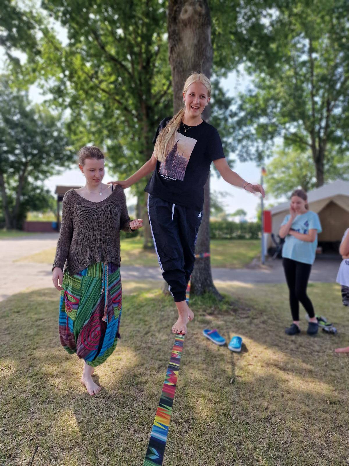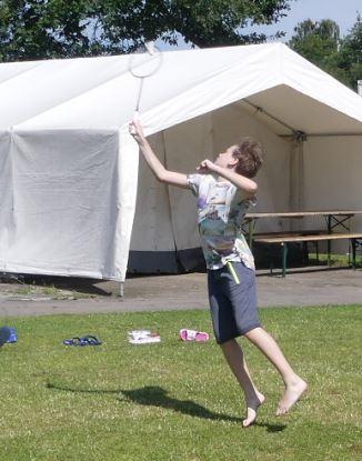 Nach dem Frühstück begann das Sporttraining. Das Gleichgewicht konnte auf der Slagline geschult werden. Auch beim Cheerleading war es möglich sein Gleichgewicht, den festen Stand und das verhalten in der Luft zu optimieren. Durch Fußball, Basketball, Badminton und Volleyball konnte man seine Agilität, Geschwindigkeit und Geschicklichkeit verbessern.