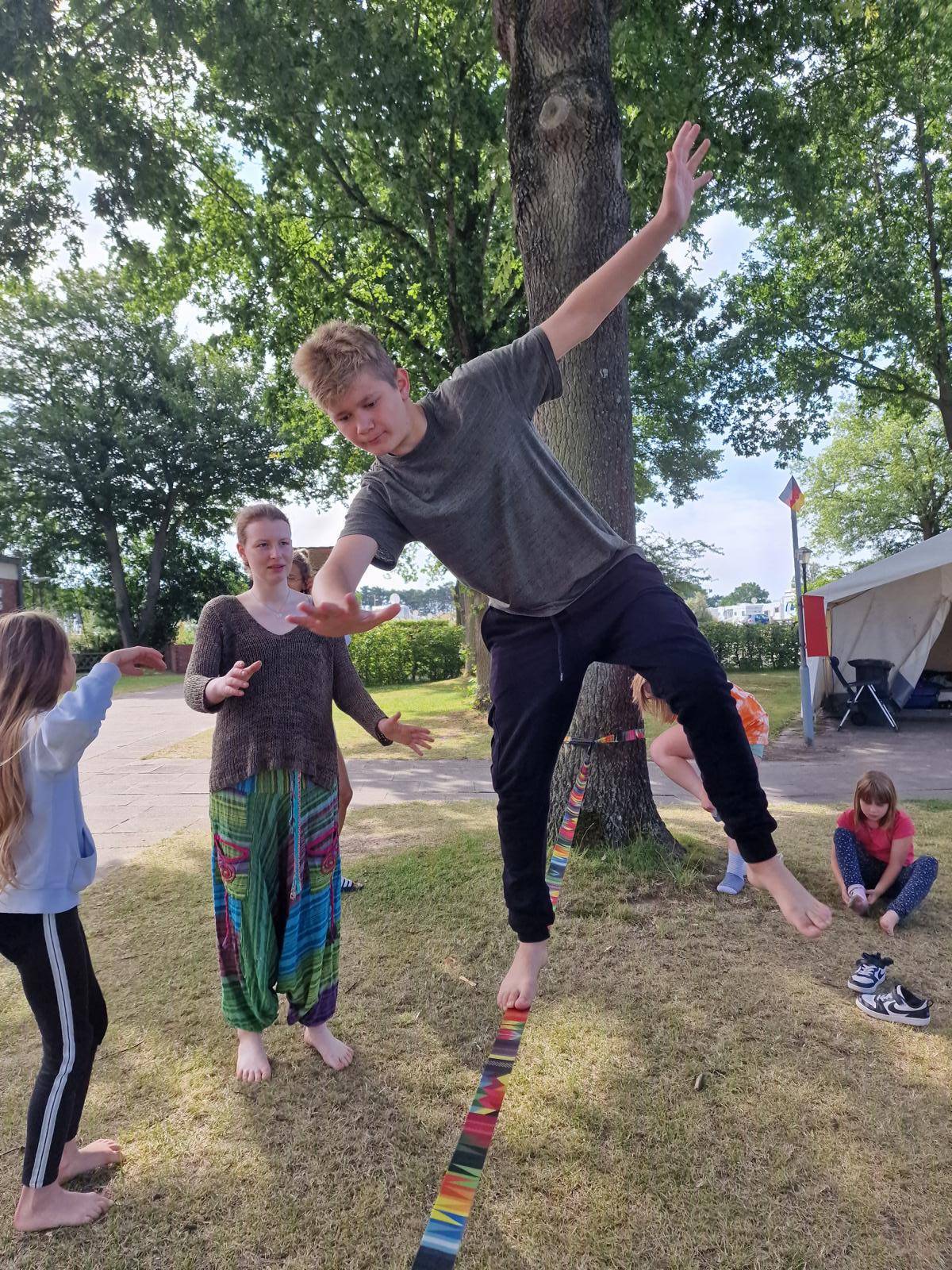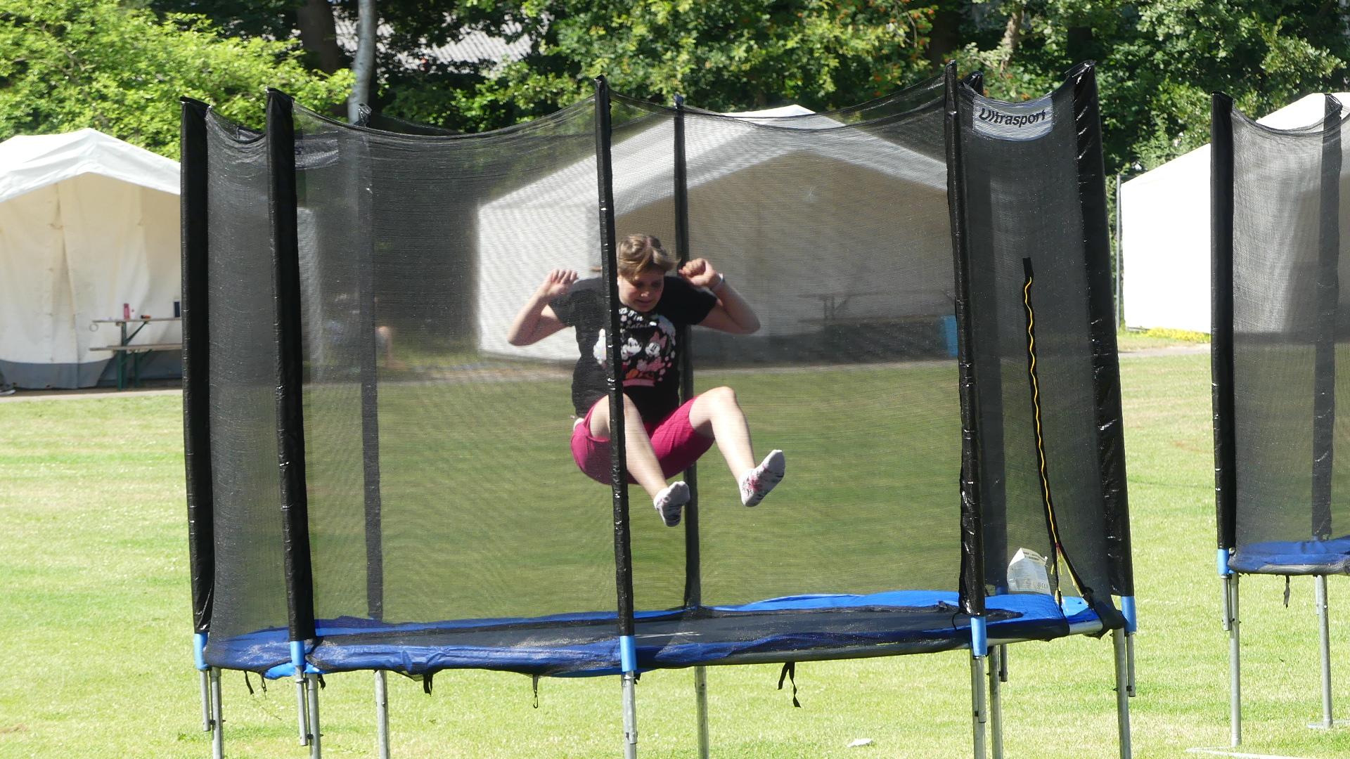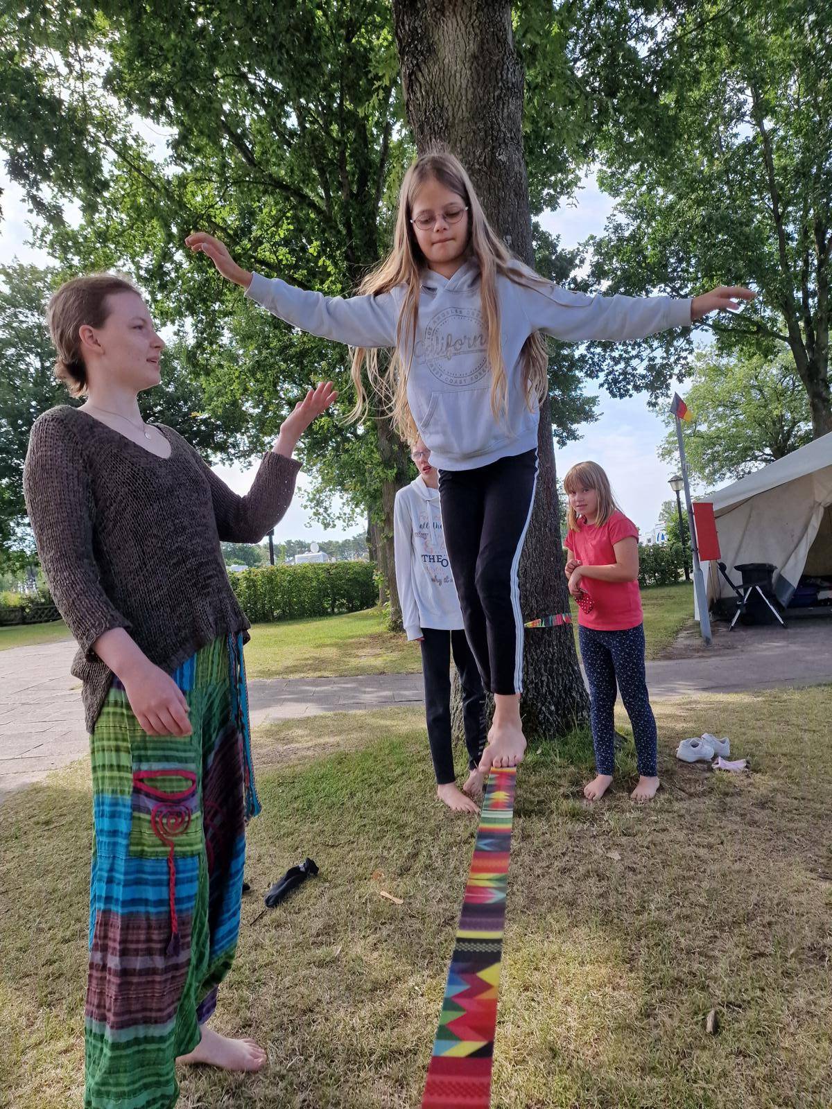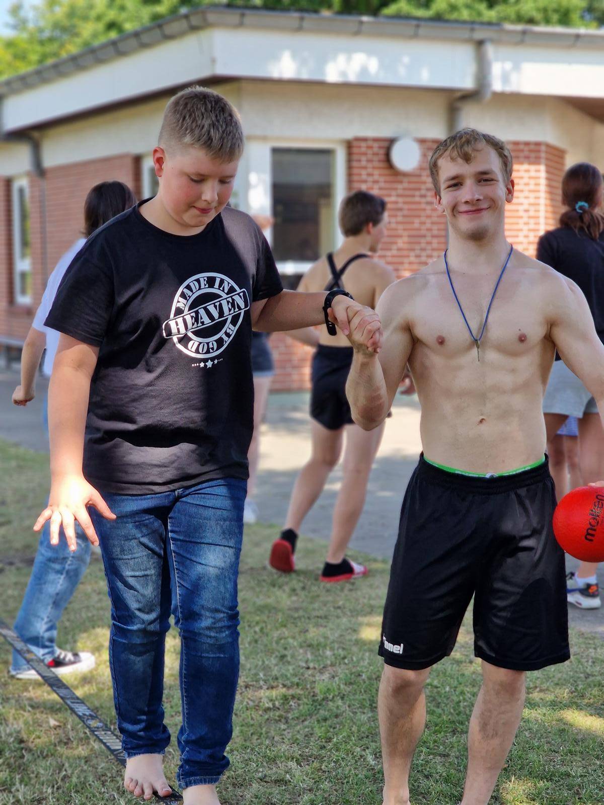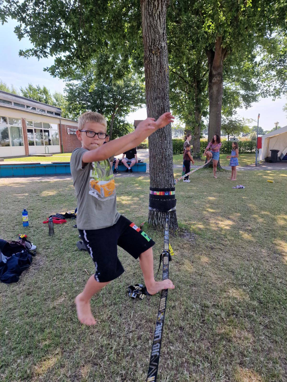 Nach dem Frühstück begann das Sporttraining. Das Gleichgewicht konnte auf der Slagline geschult werden. Auch beim Cheerleading war es möglich sein Gleichgewicht, den festen Stand und das verhalten in der Luft zu optimieren. Durch Fußball, Basketball, Badminton und Volleyball konnte man seine Agilität, Geschwindigkeit und Geschicklichkeit verbessern.