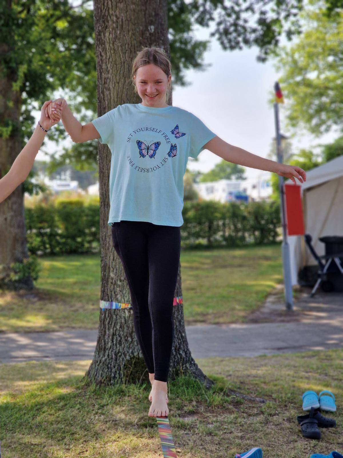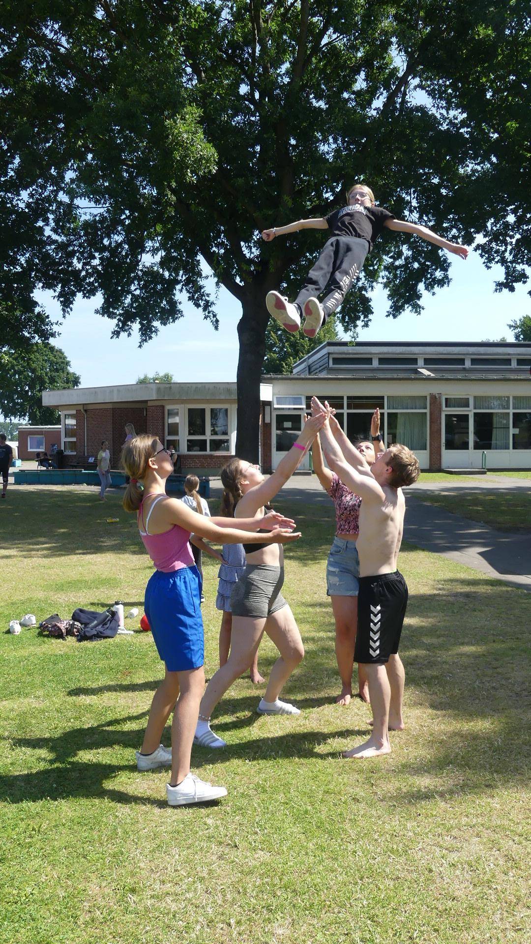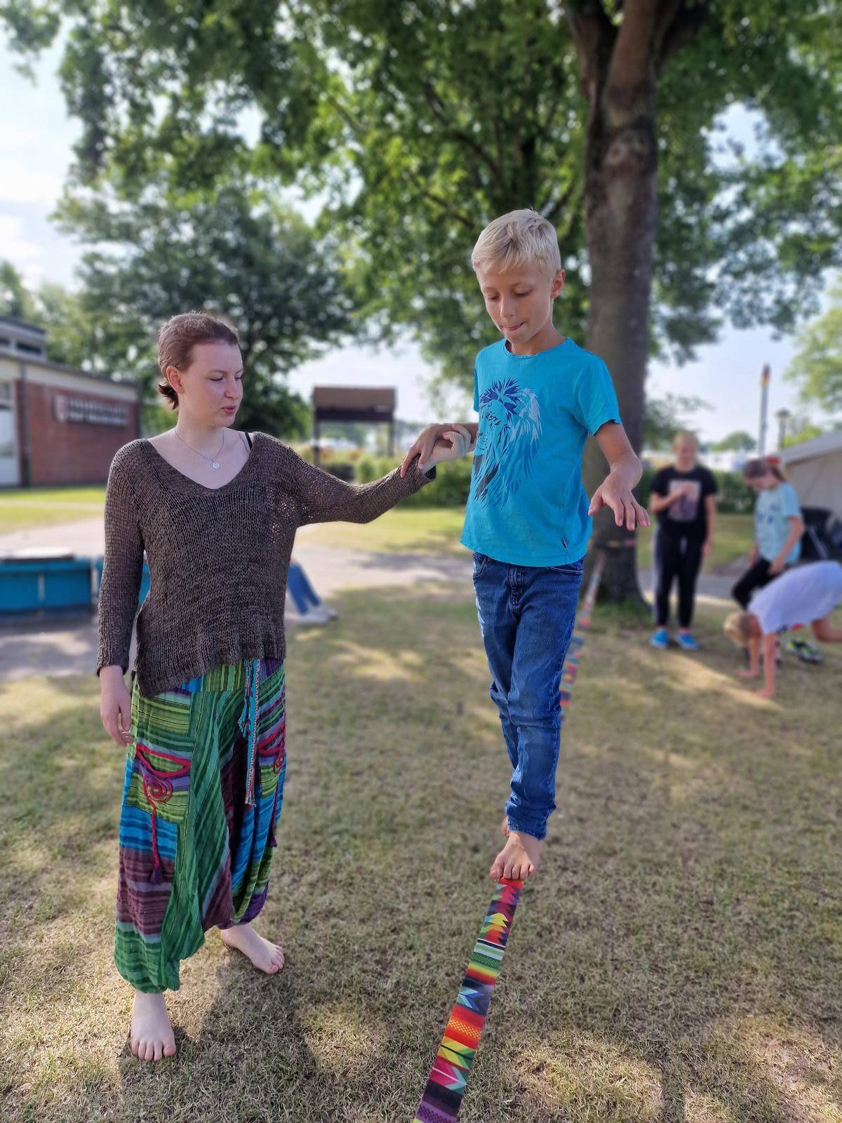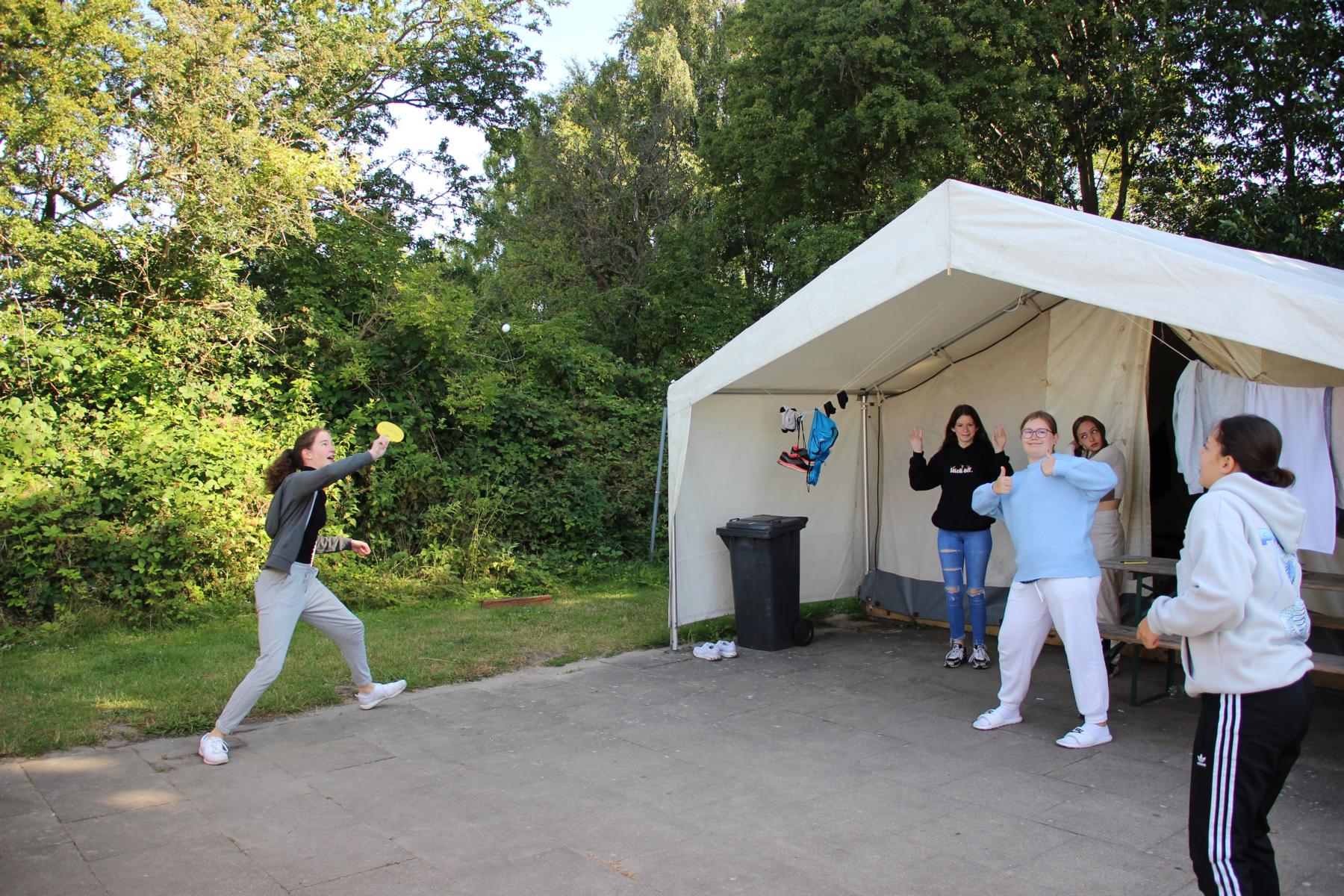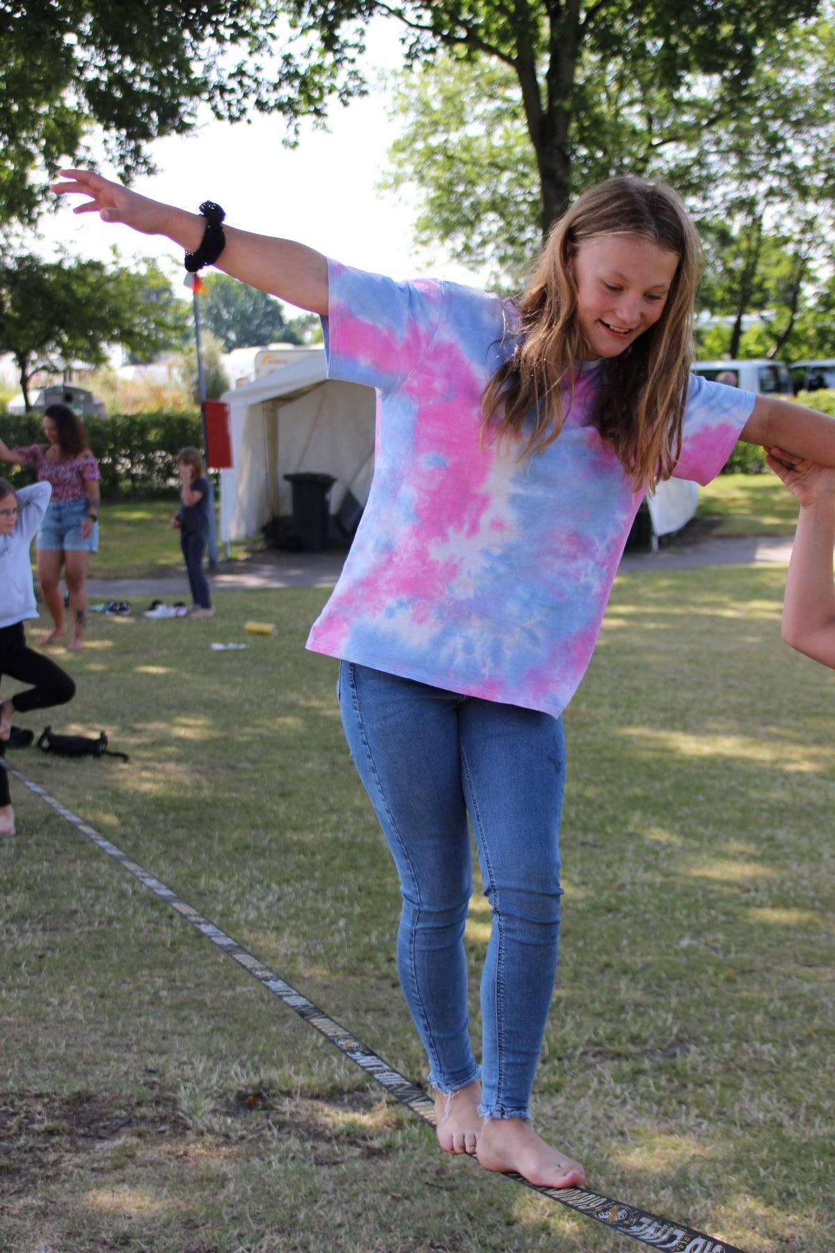 Nach dem Frühstück begann das Sporttraining. Das Gleichgewicht konnte auf der Slagline geschult werden. Auch beim Cheerleading war es möglich sein Gleichgewicht, den festen Stand und das verhalten in der Luft zu optimieren. Durch Fußball, Basketball, Badminton und Volleyball konnte man seine Agilität, Geschwindigkeit und Geschicklichkeit verbessern.