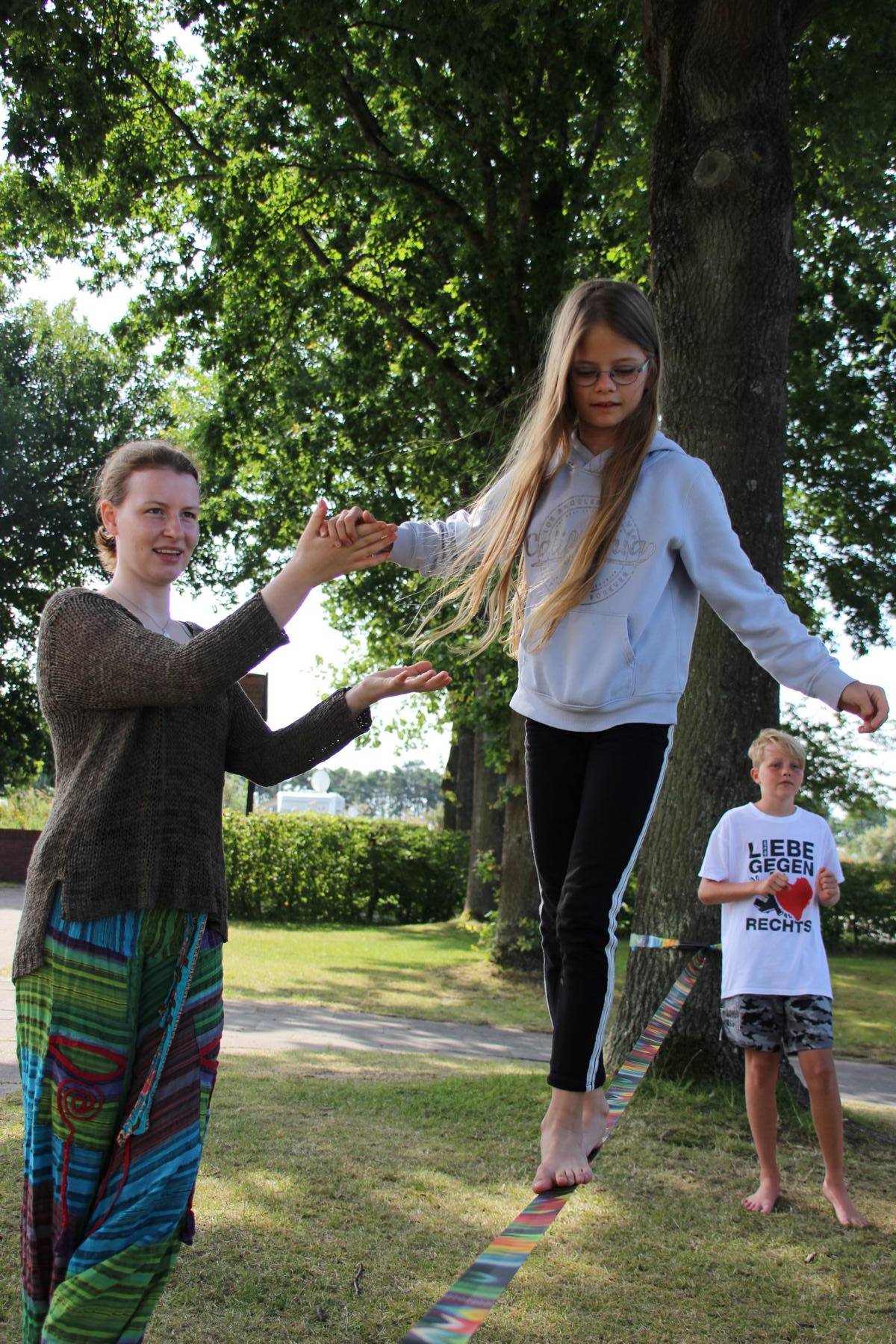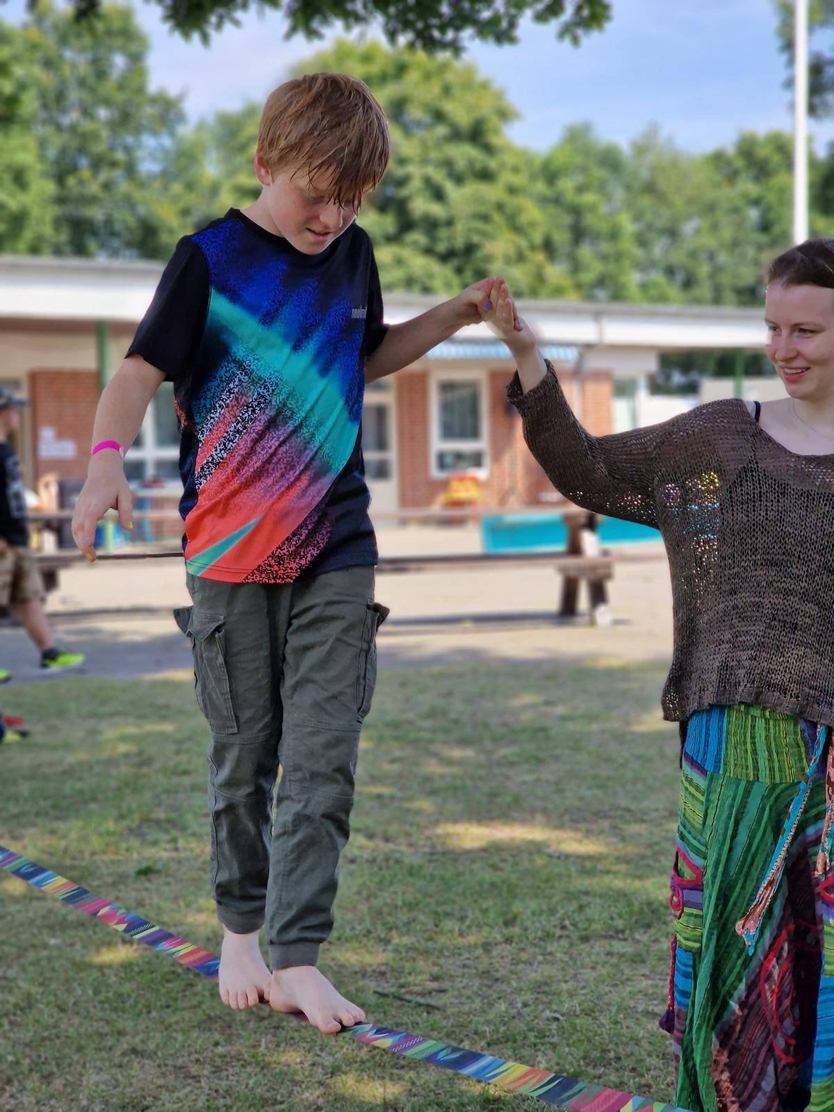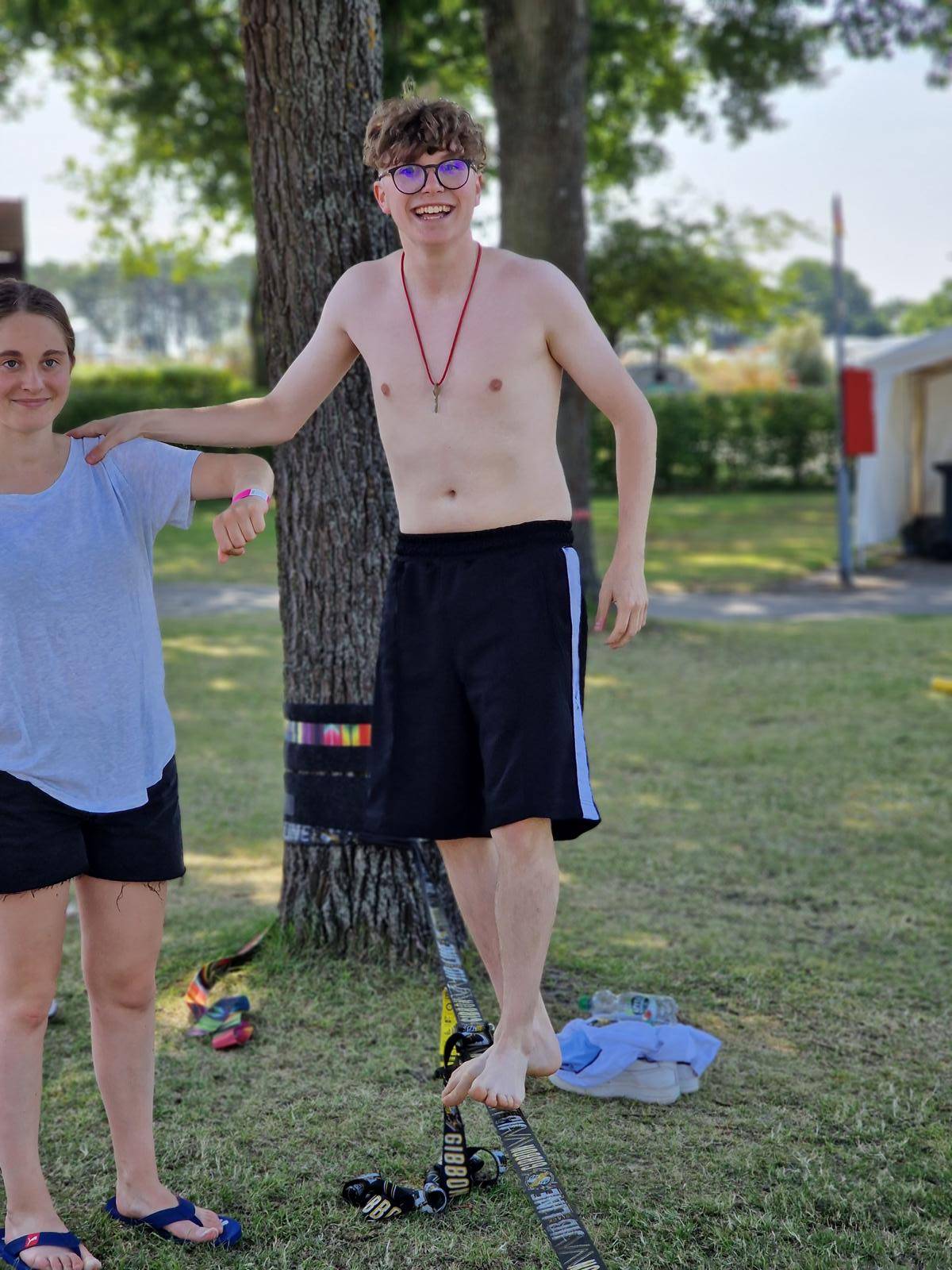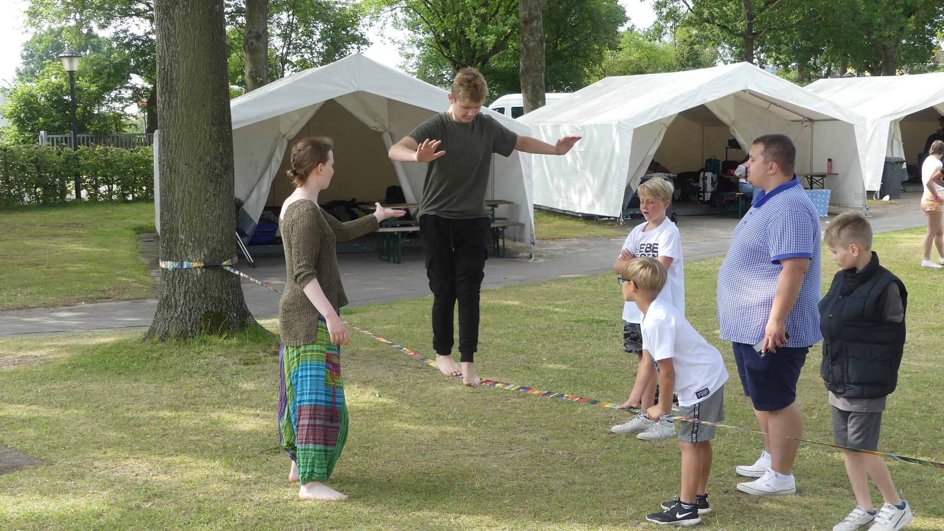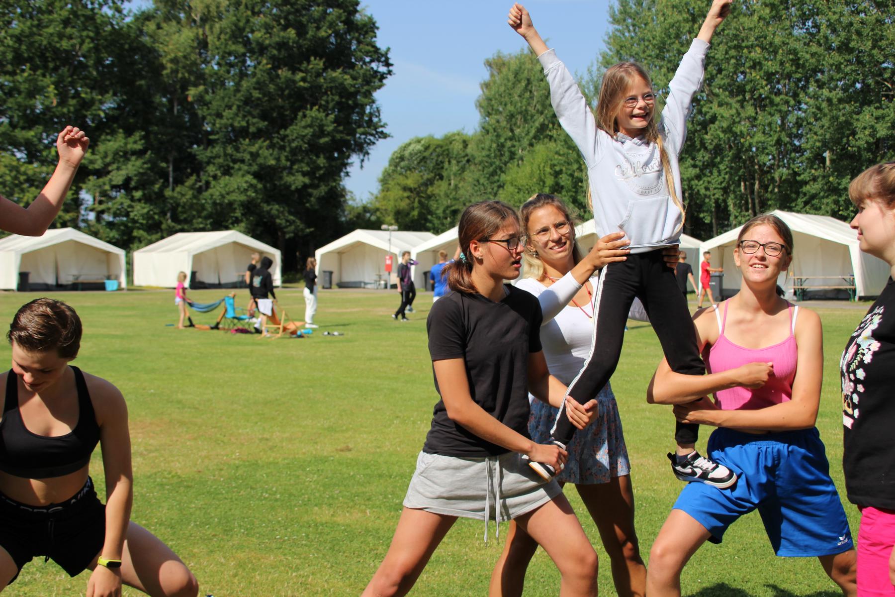 Nach dem Frühstück begann das Sporttraining. Das Gleichgewicht konnte auf der Slagline geschult werden. Auch beim Cheerleading war es möglich sein Gleichgewicht, den festen Stand und das verhalten in der Luft zu optimieren. Durch Fußball, Basketball, Badminton und Volleyball konnte man seine Agilität, Geschwindigkeit und Geschicklichkeit verbessern.