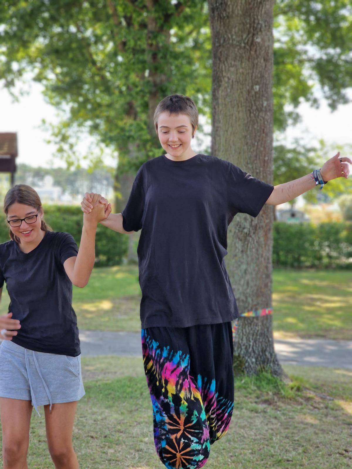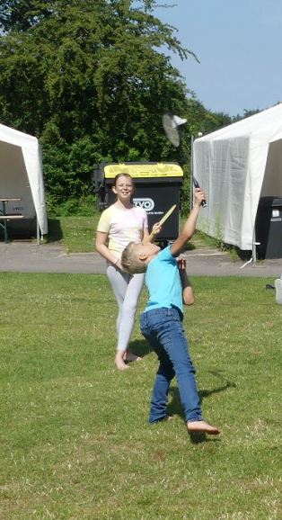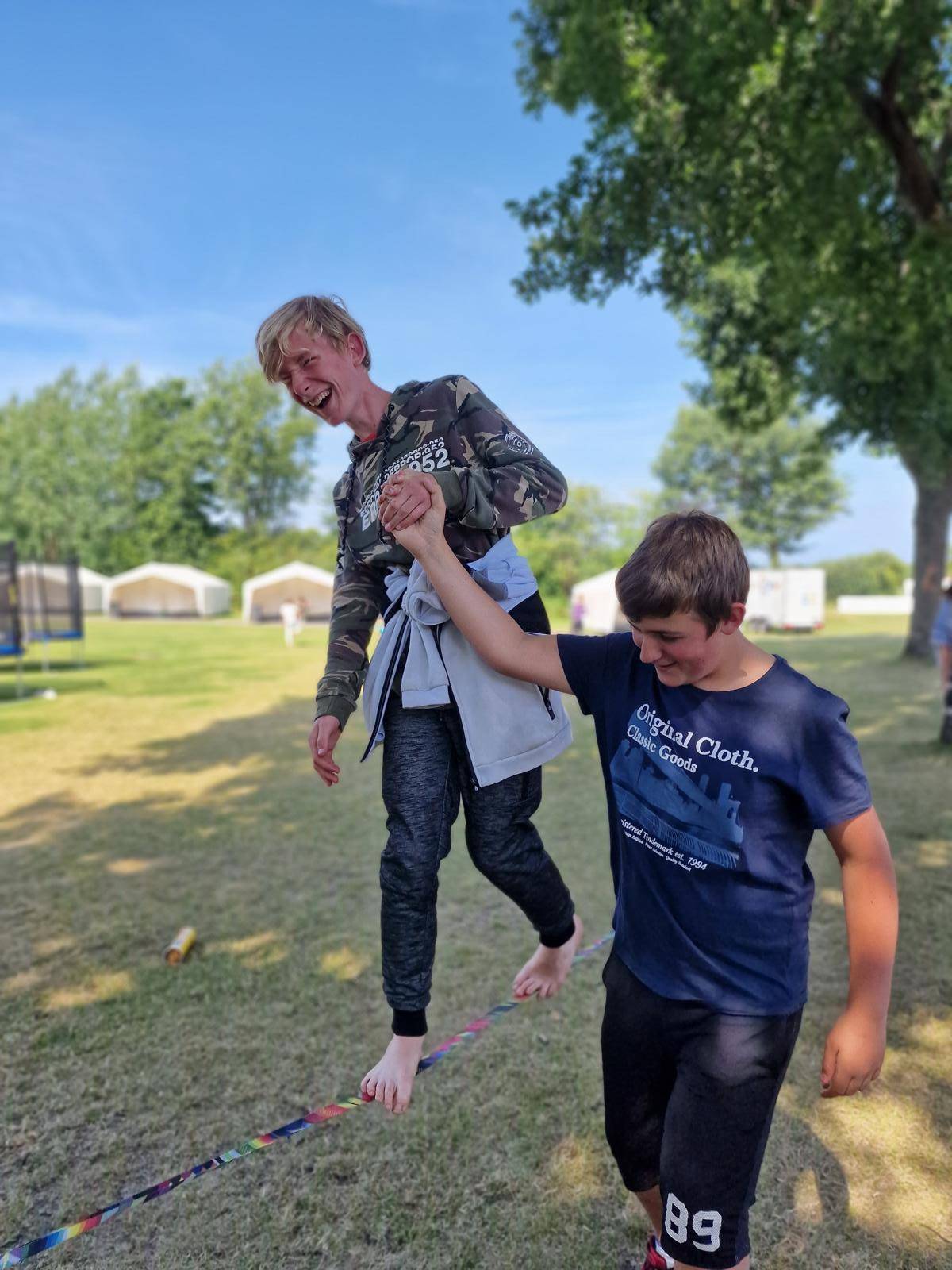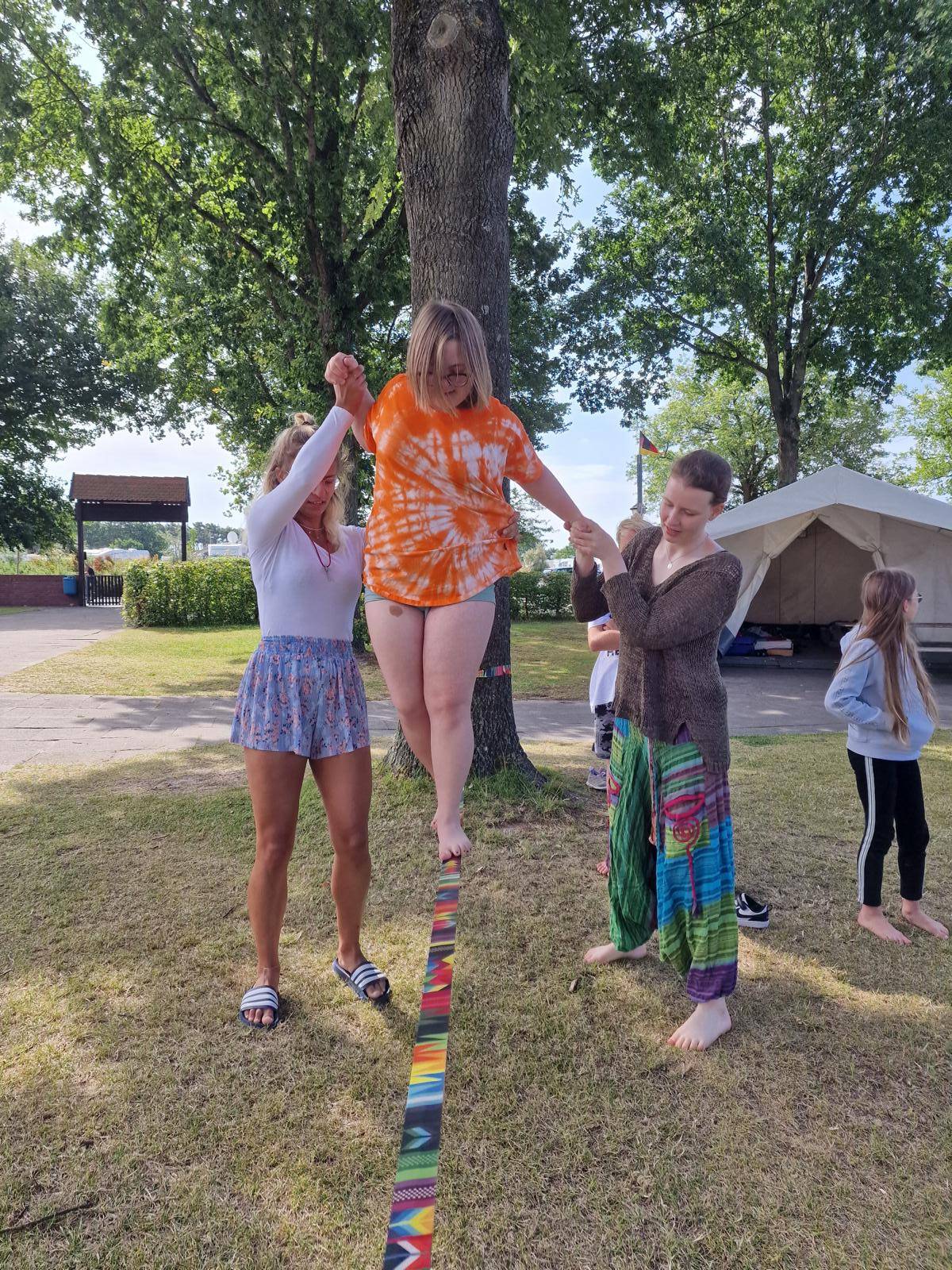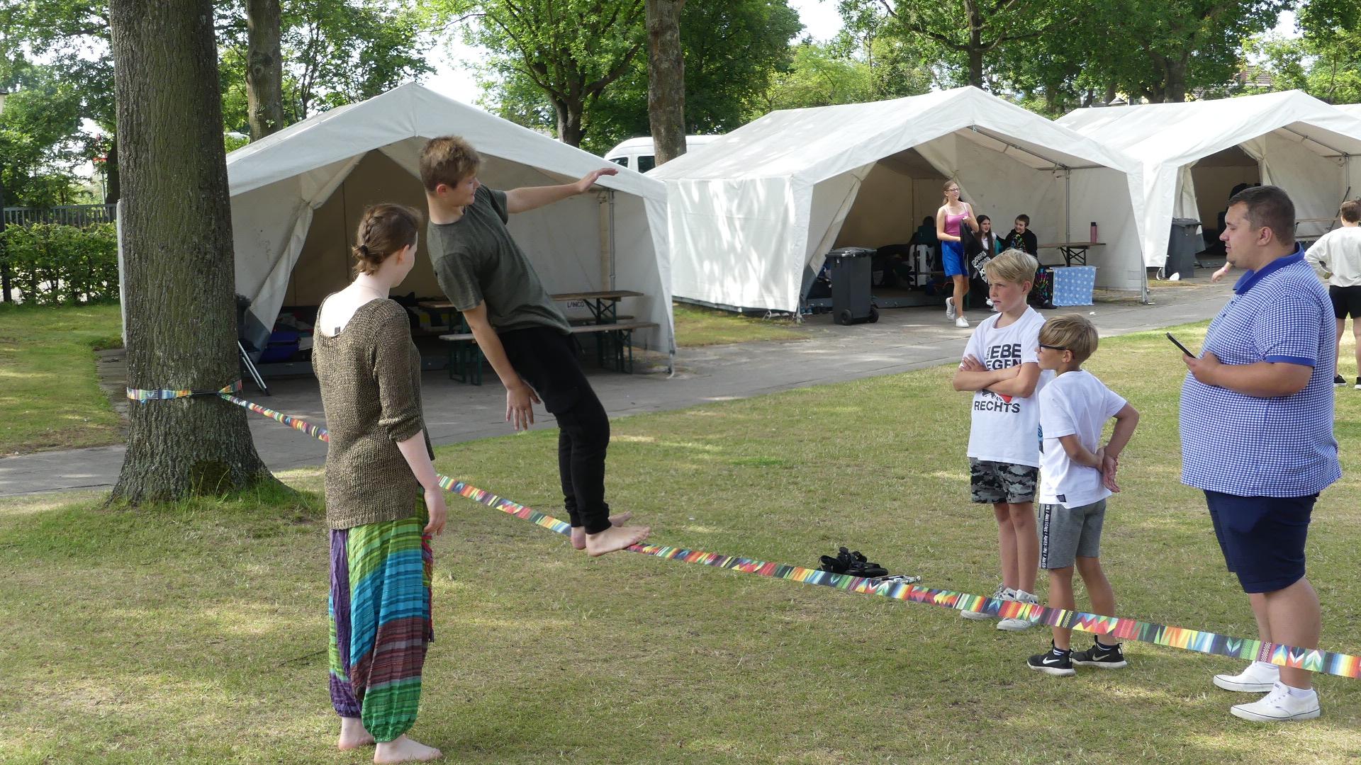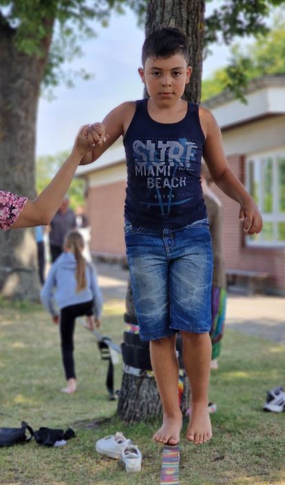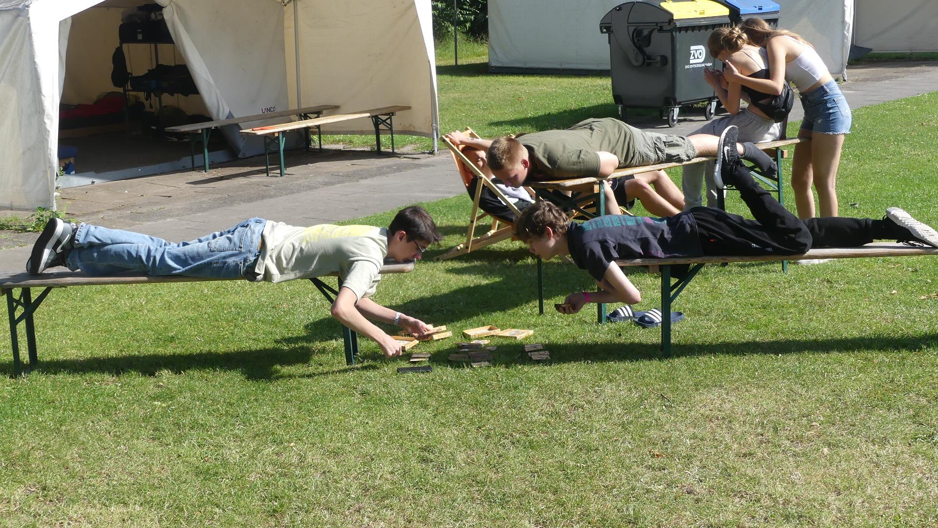 Nach dem Frühstück begann das Sporttraining. Das Gleichgewicht konnte auf der Slagline geschult werden. Auch beim Cheerleading war es möglich sein Gleichgewicht, den festen Stand und das verhalten in der Luft zu optimieren. Durch Fußball, Basketball, Badminton und Volleyball konnte man seine Agilität, Geschwindigkeit und Geschicklichkeit verbessern.