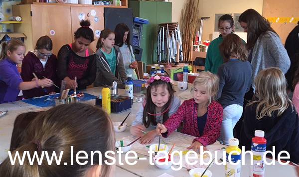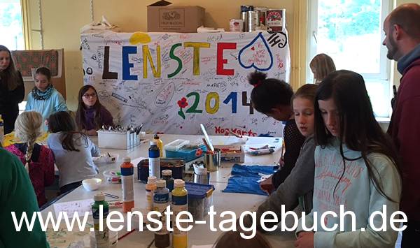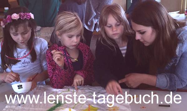Im Bastelraum haben Carola und Aik die „Zeltflaggen-Produktion“ angeschmissen.