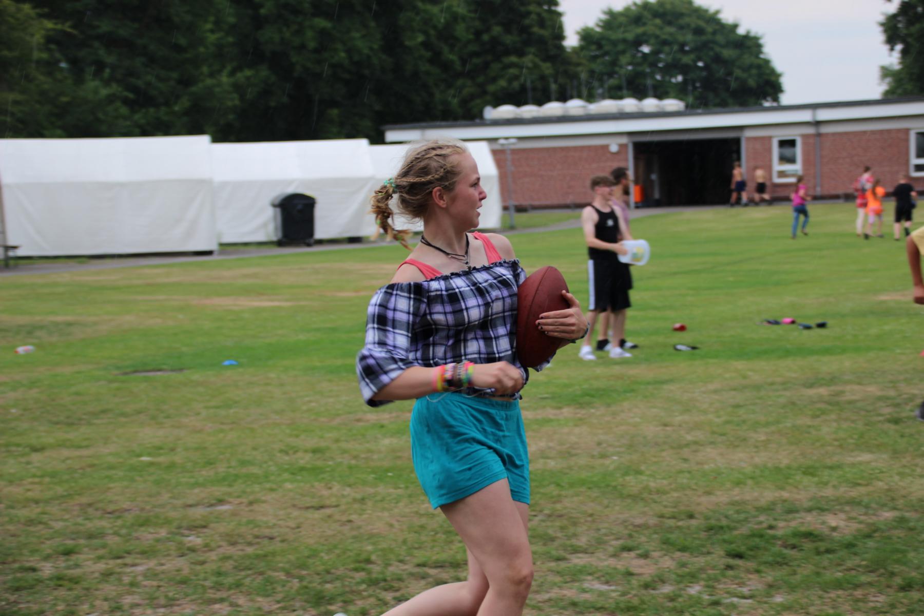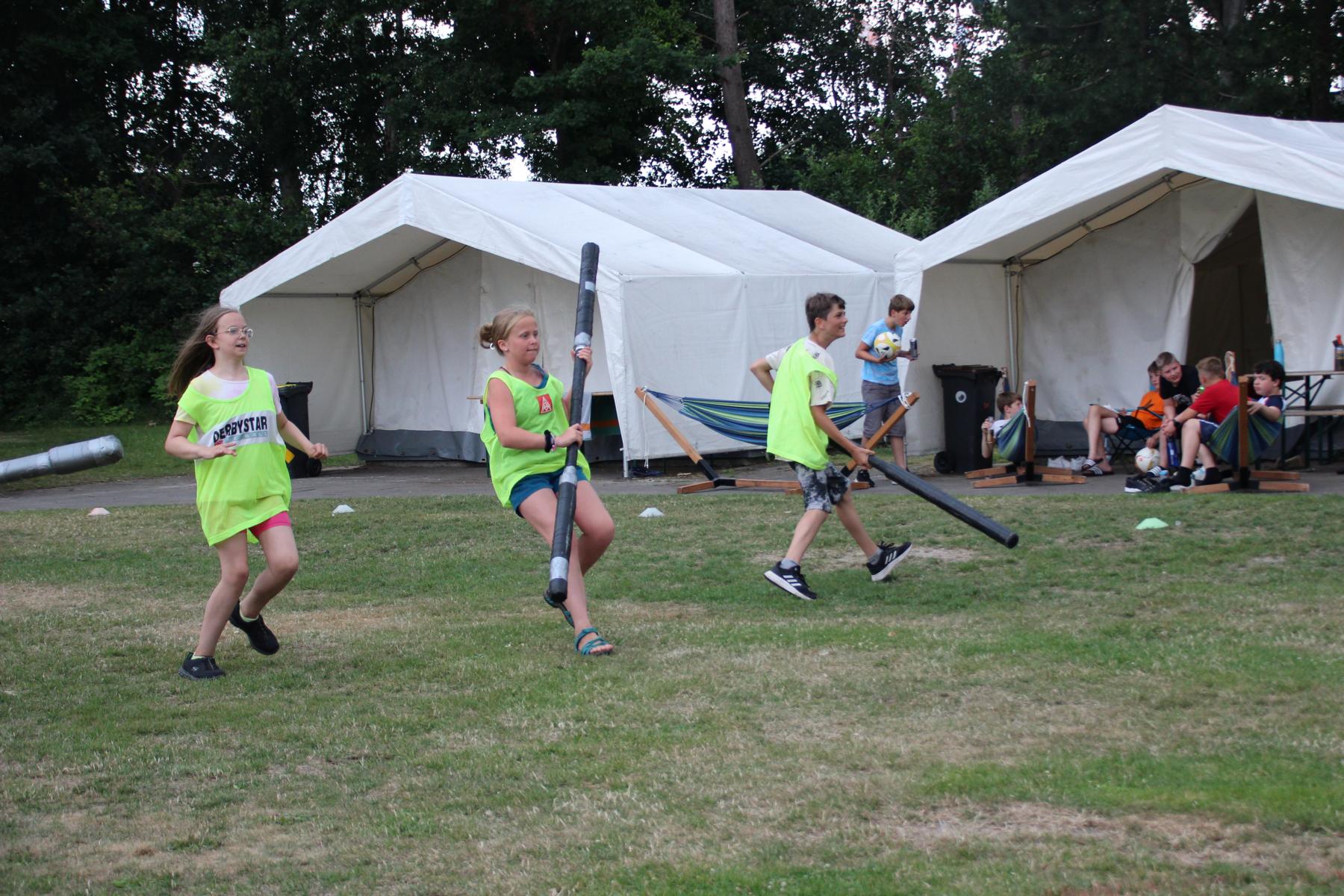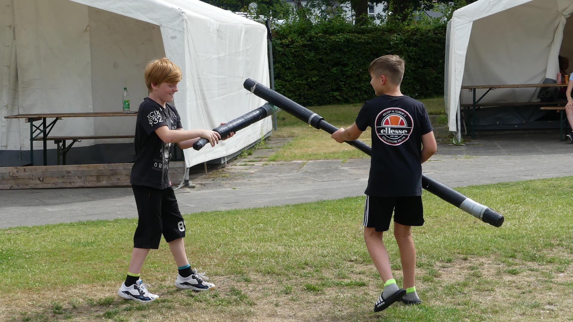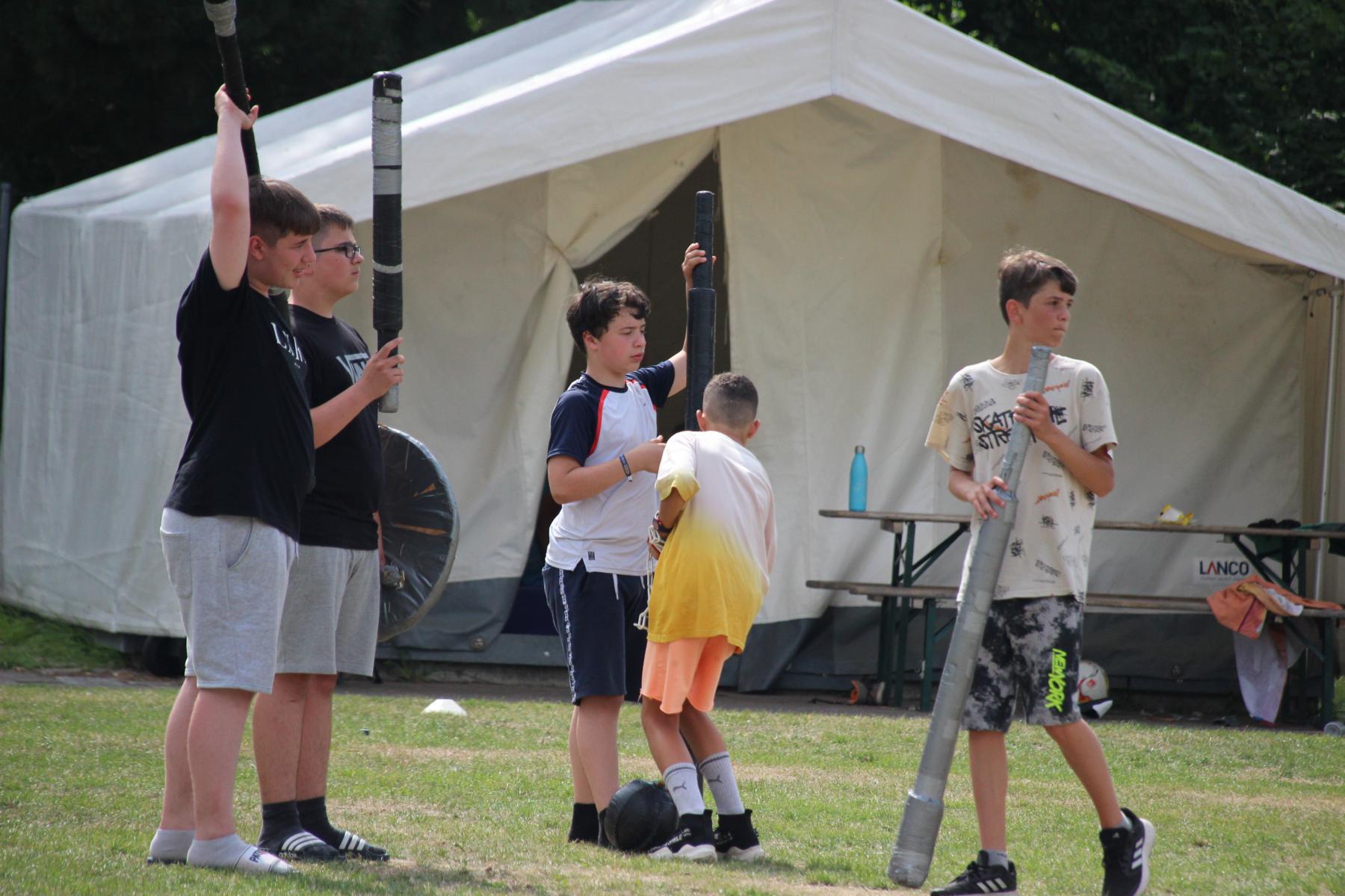 In der Mittagspause stiegen die Temperaturen und der Nachmittag war abgesehen von einer kurzen Erfrischung von Oben trocken. Zu dieser Zeit wurden viele Projekte angeboten. Hier konnte man zum Beispiel eine Lagerzeitung schreiben. Mitten auf dem großen Zeltplatz war Jugger (ein mittelalterliches Capture the Flag) aufgebaut. Hier konnten Teams gegeneinander antreten und mit mittelalterlichen Polsterwaffen um einen Schatz zu kämpfen.