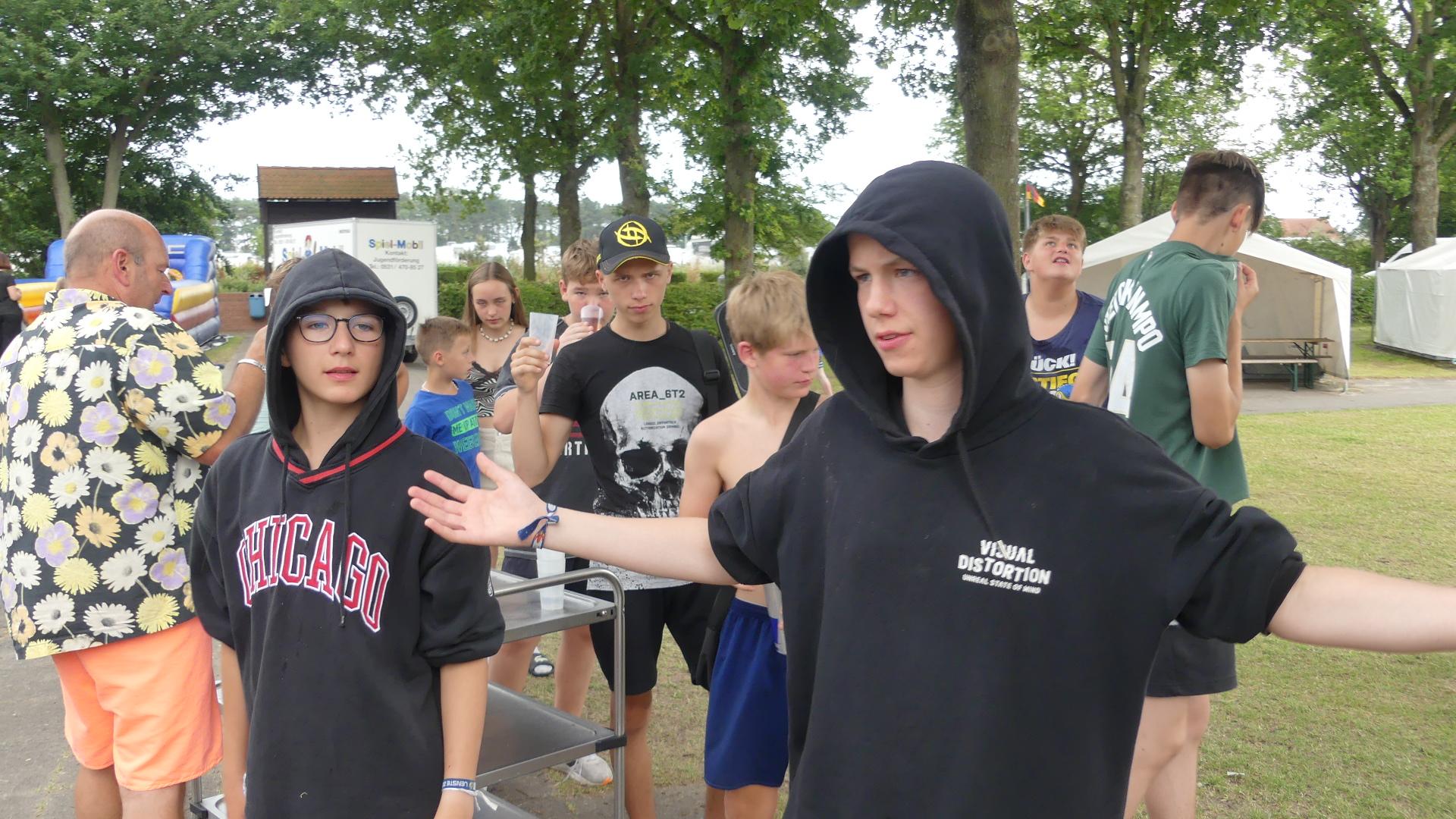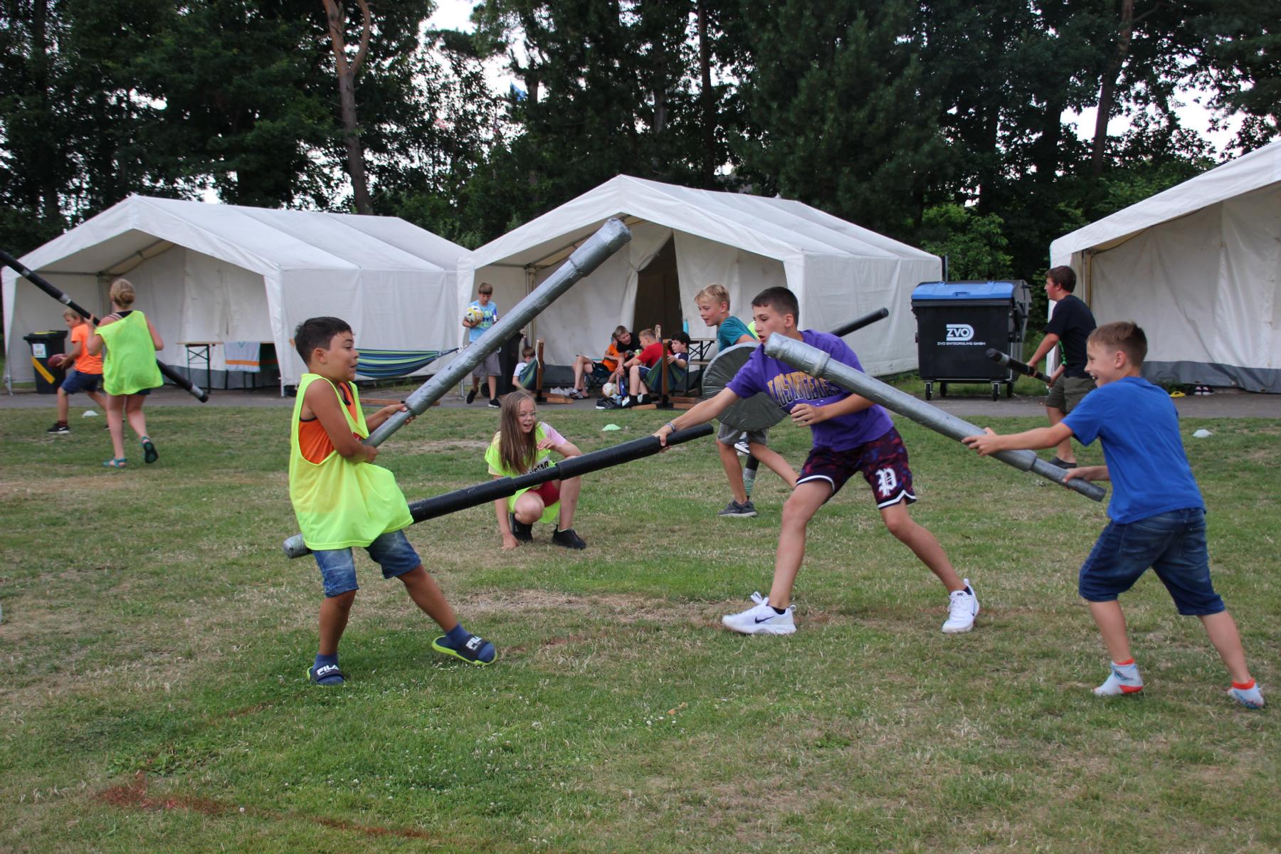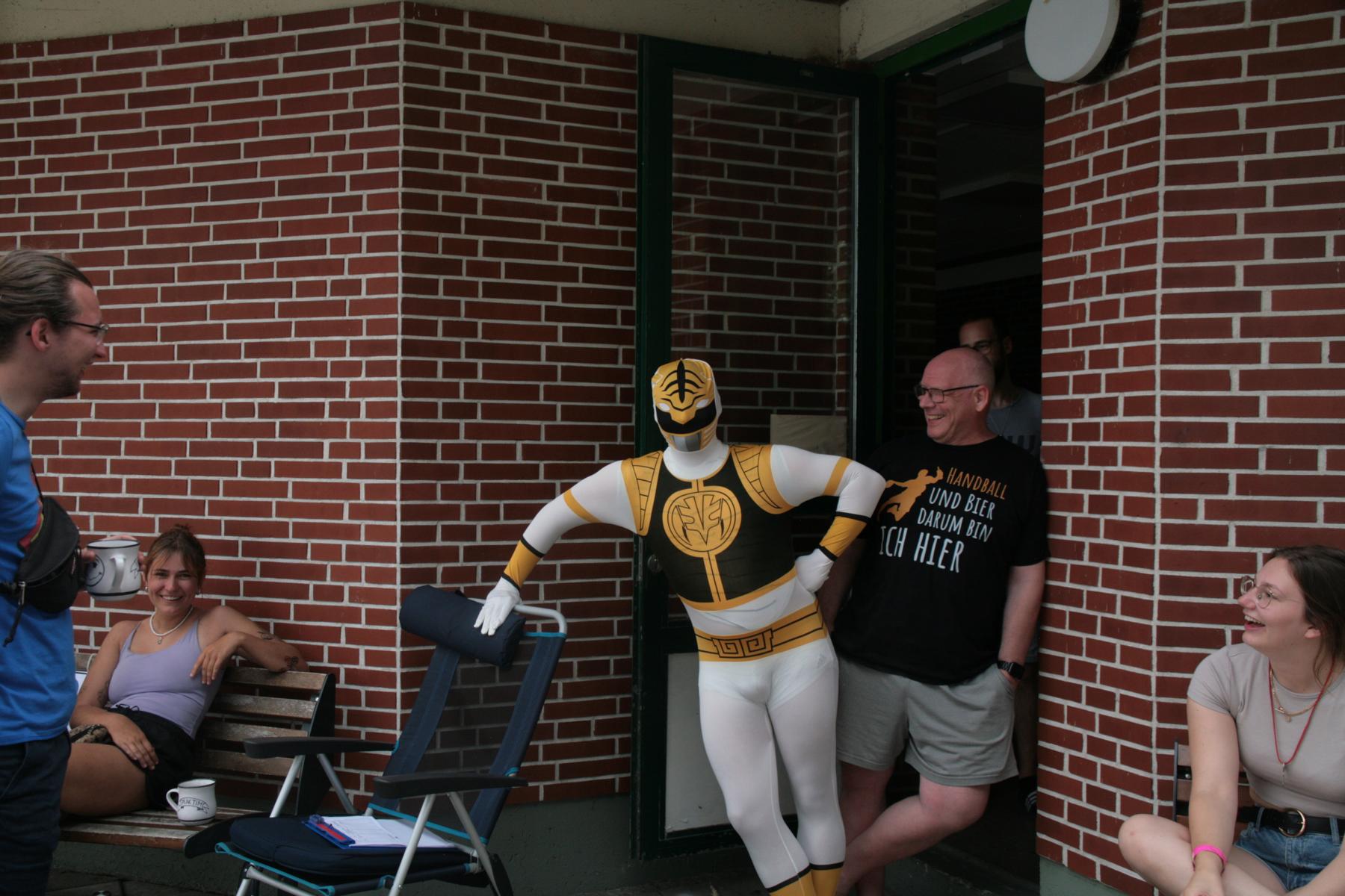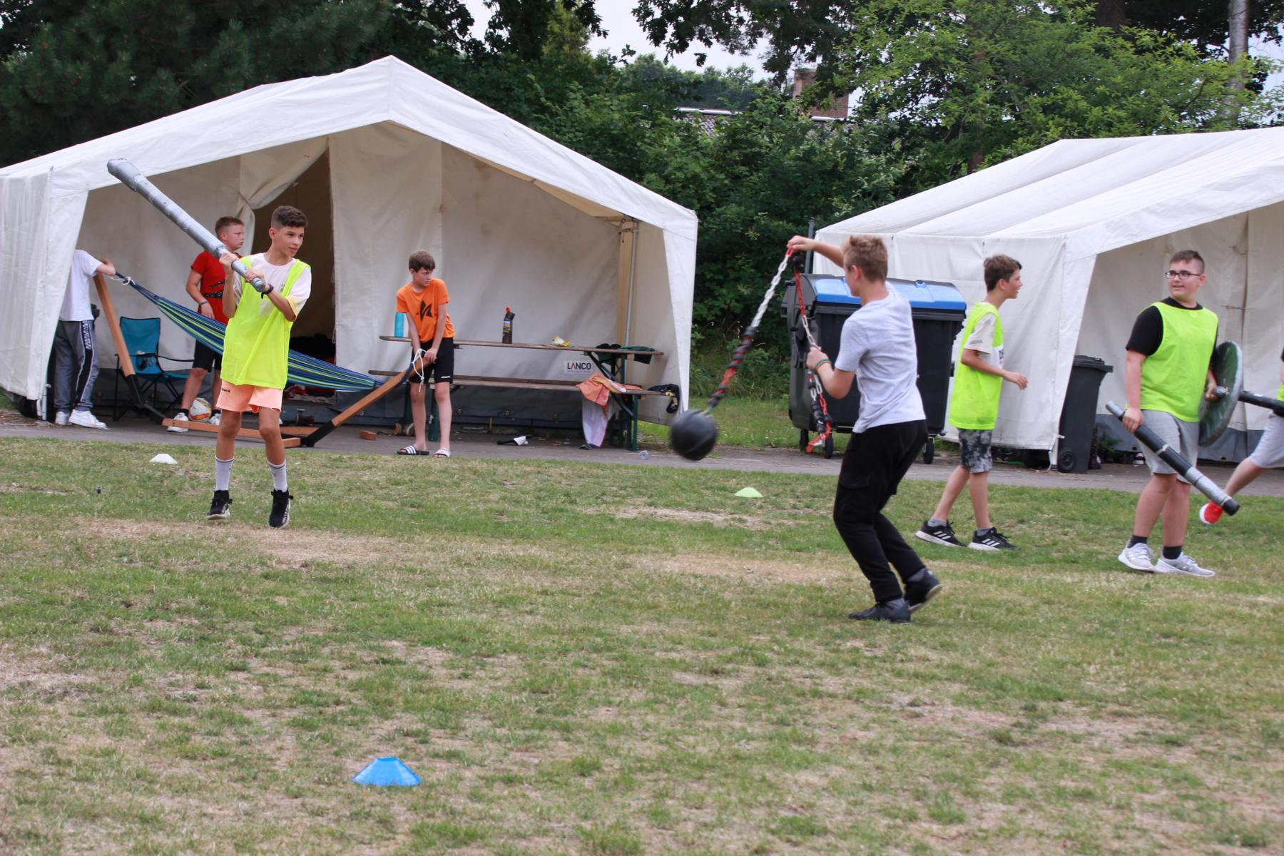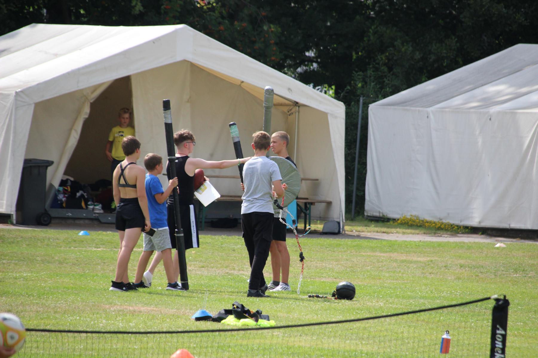 In der Mittagspause stiegen die Temperaturen und der Nachmittag war abgesehen von einer kurzen Erfrischung von Oben trocken. Zu dieser Zeit wurden viele Projekte angeboten. Hier konnte man zum Beispiel eine Lagerzeitung schreiben. Mitten auf dem großen Zeltplatz war Jugger (ein mittelalterliches Capture the Flag) aufgebaut. Hier konnten Teams gegeneinander antreten und mit mittelalterlichen Polsterwaffen um einen Schatz zu kämpfen.