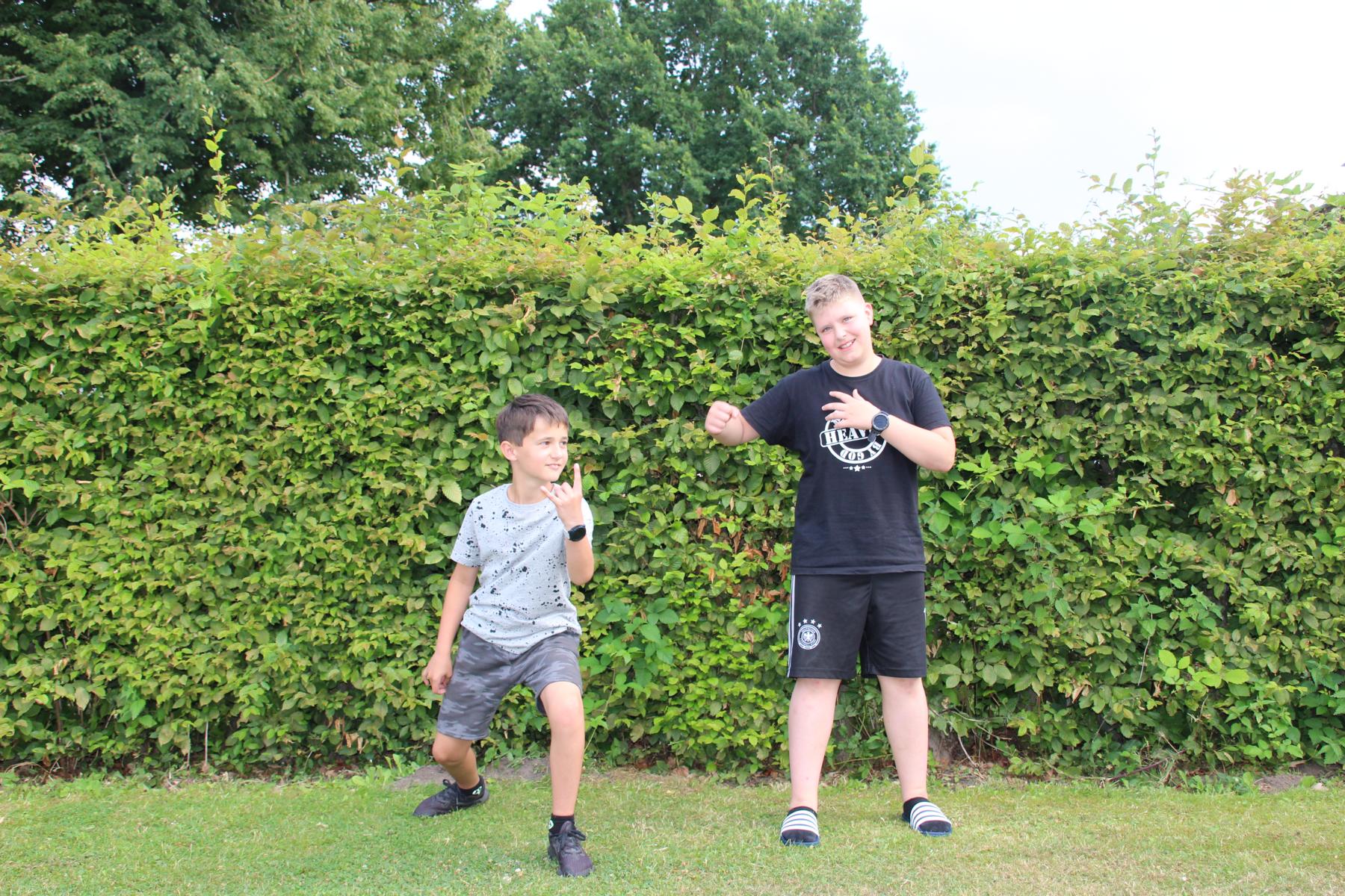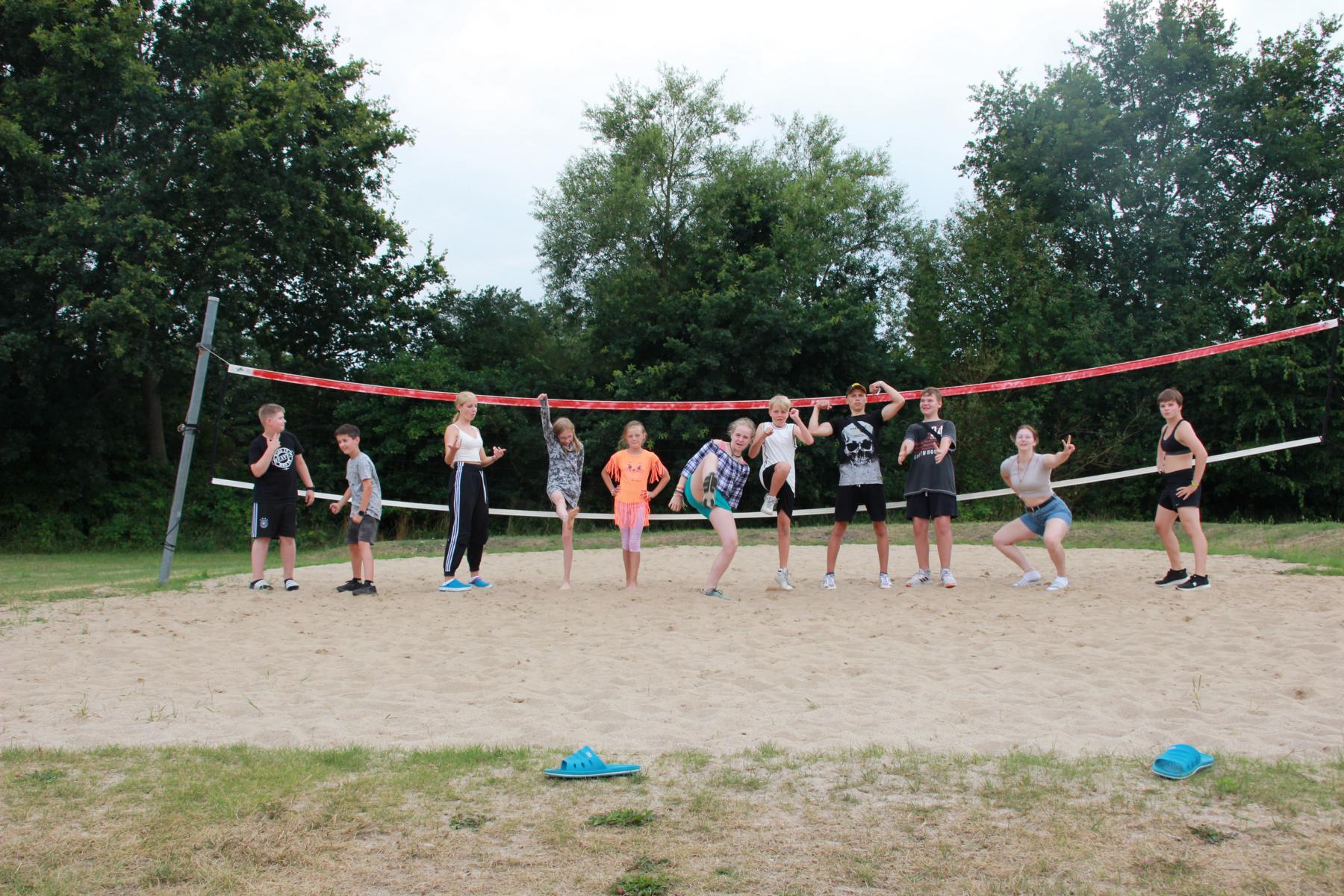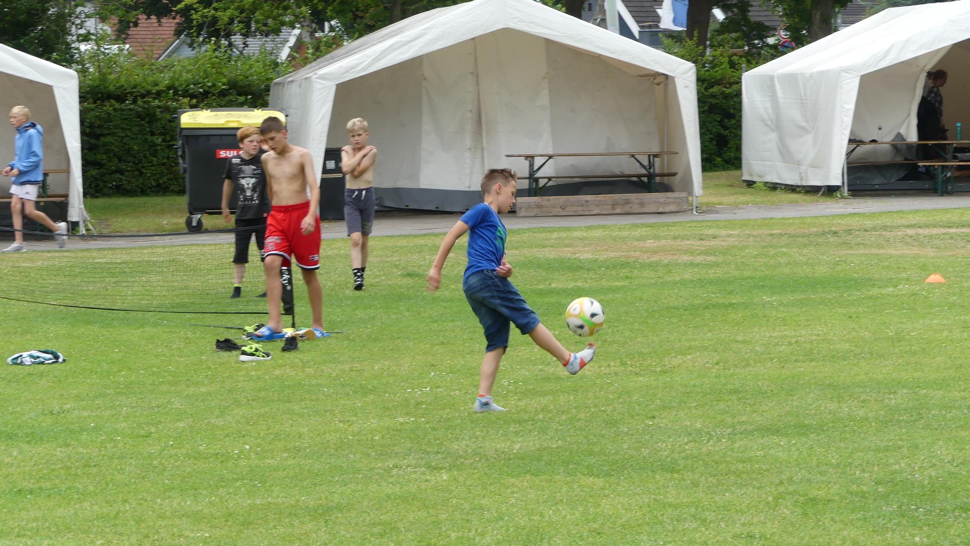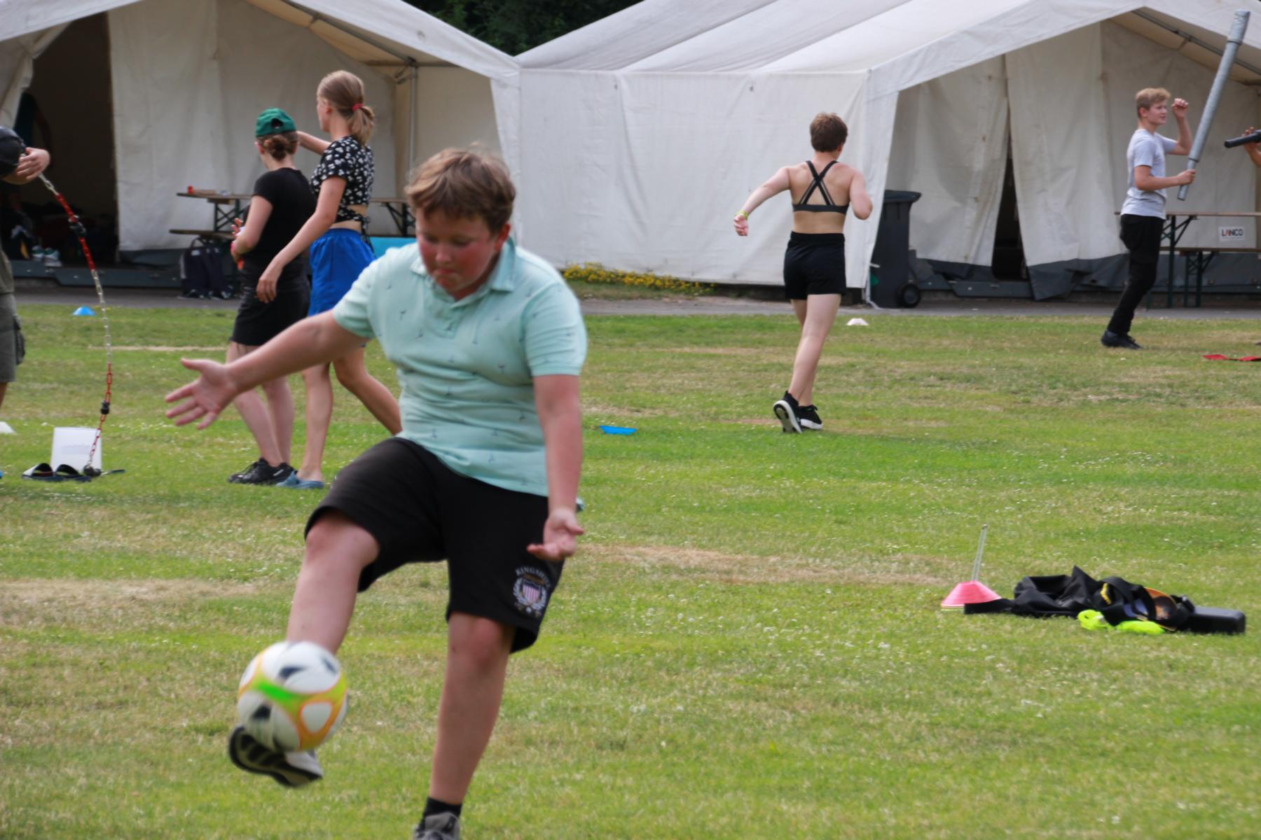 Mit dem Fuß einen Ball über das Netz zu bringen, ist die Aufgabe beim Fußballtennis gewesen.