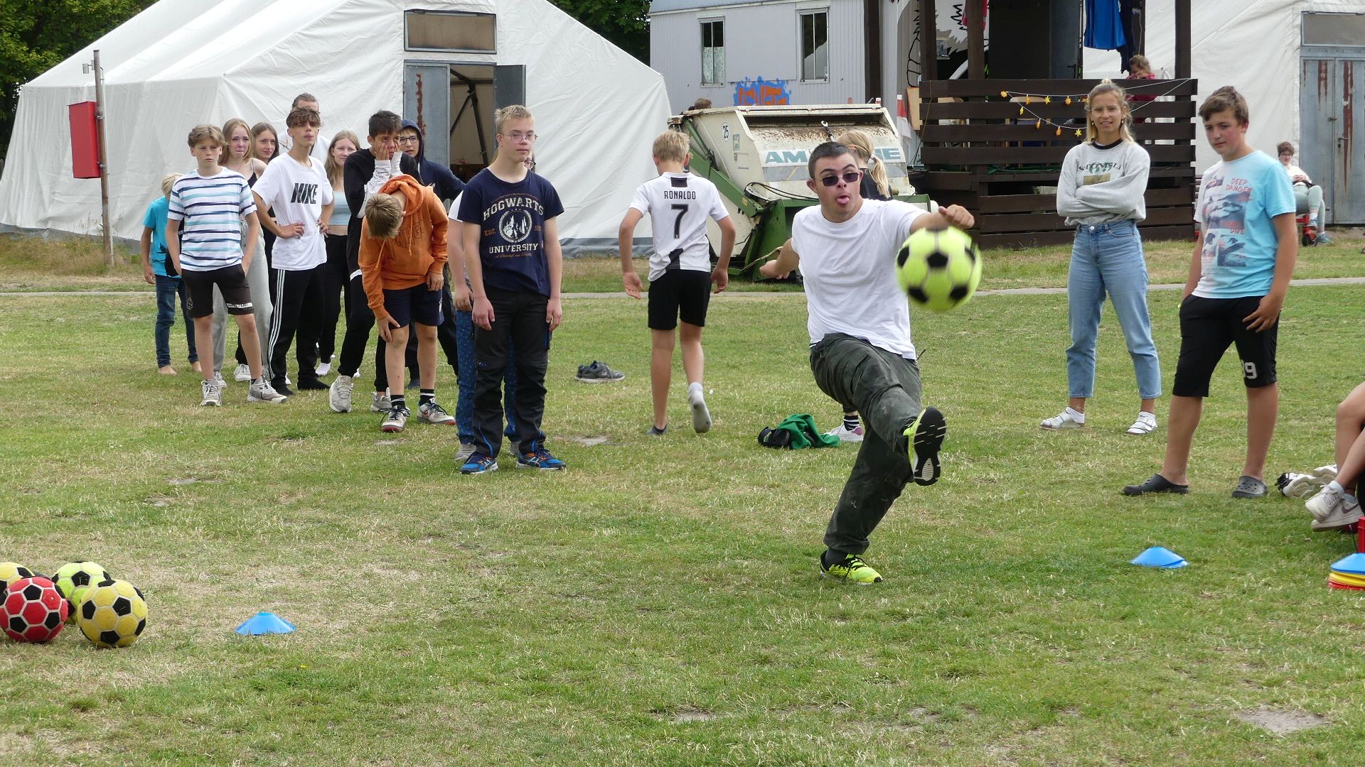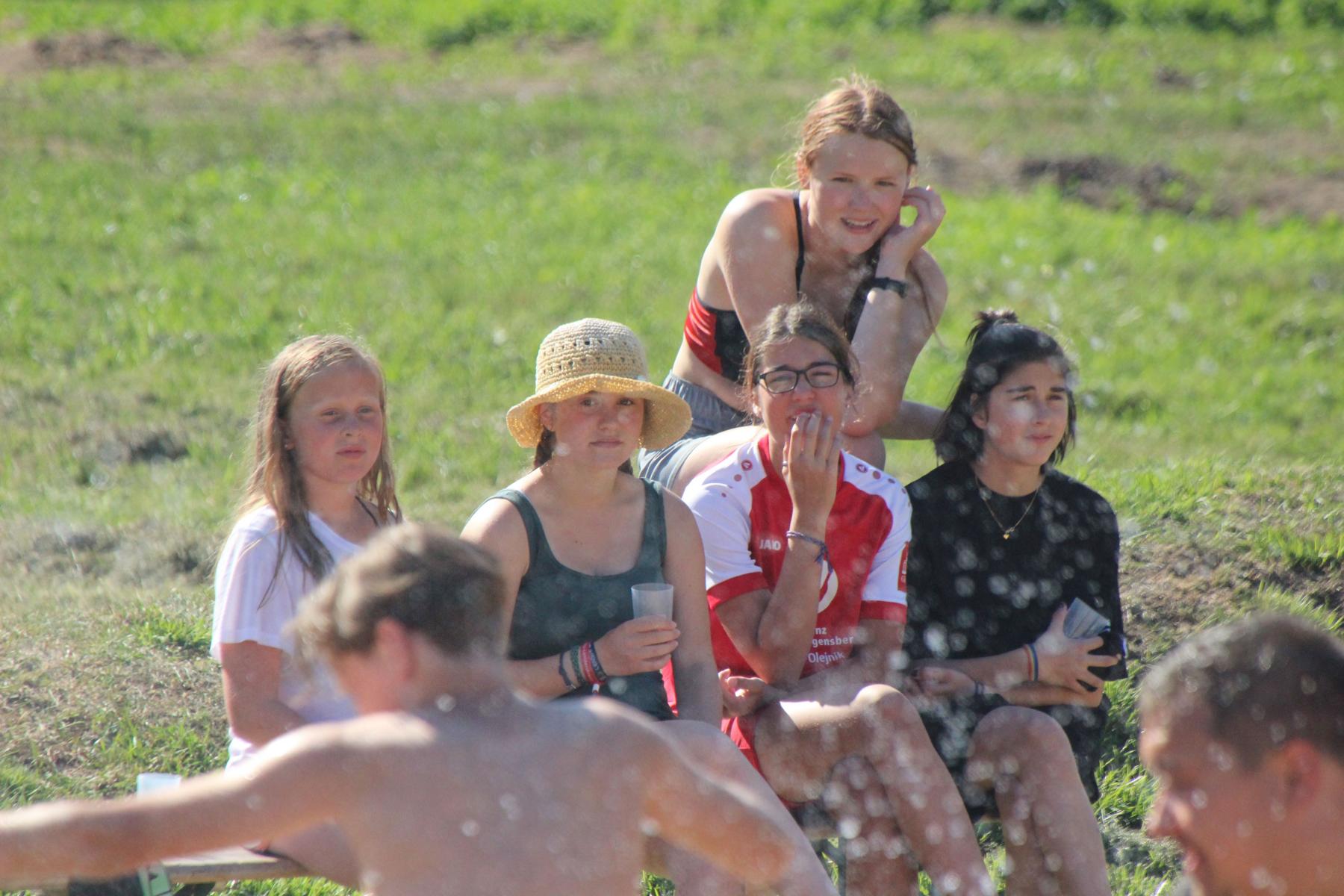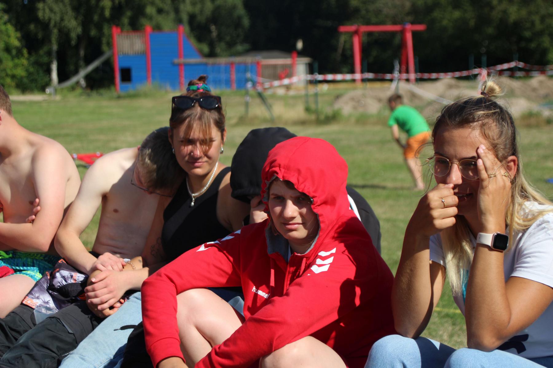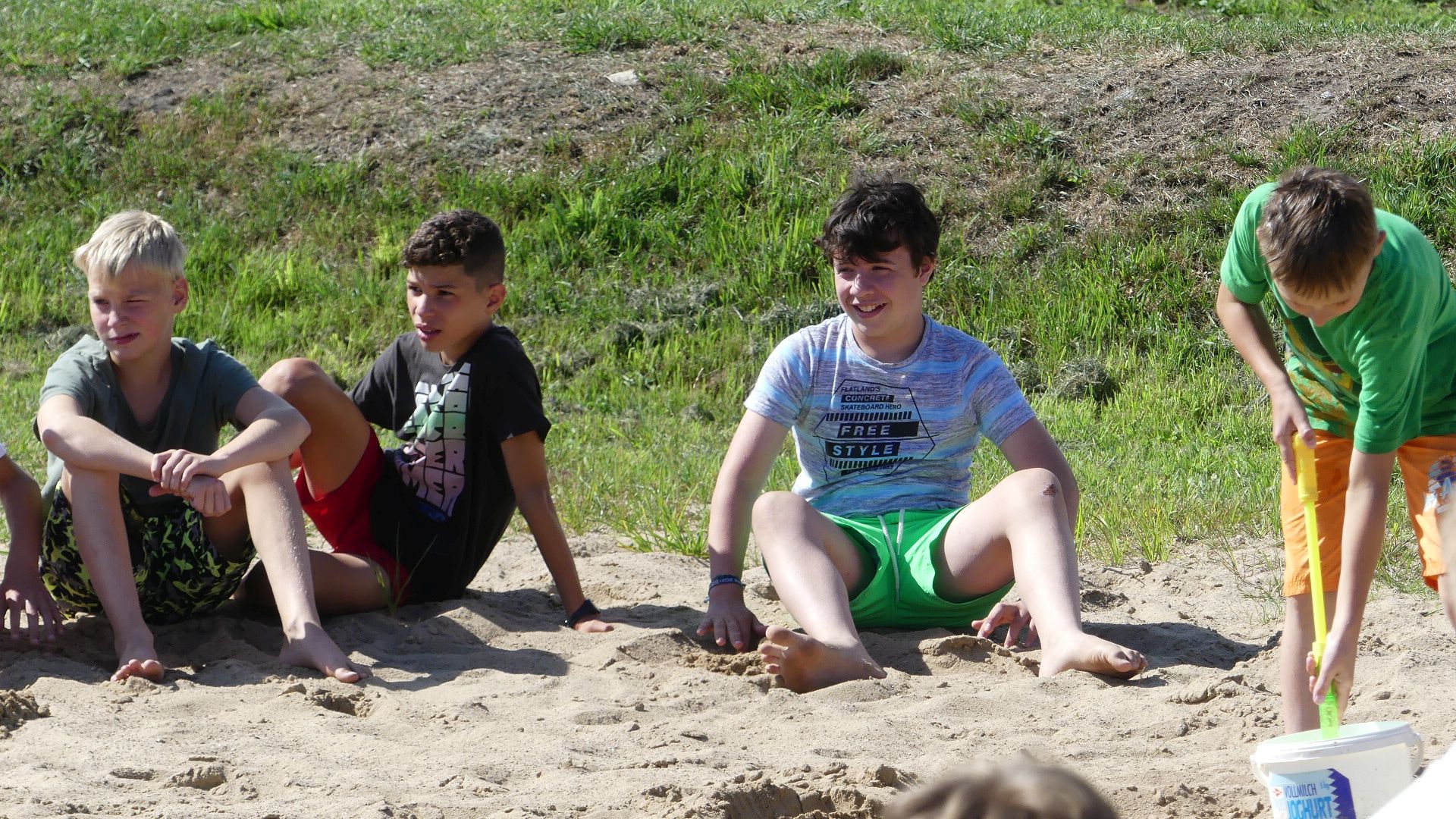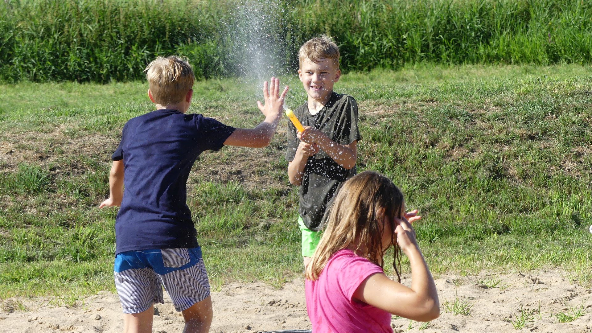 Der Nachmittag stand ganz im Zeichen der Beachparty. Diese fand dieses Jahr auf dem Beachhandballfeld statt. Hier wurde ein Spiel gespielt, bei dem es darum ging, die Betreuer eines anderen Zeltes möglichst nass zu machen. Das Zelt des Betreuers hatte die Aufgabe, ihren Betreuer möglichst gut vor dem Wasser zu schützen. Nach 90 Sekunden wurde der Bademantel des Betreuers ausgewrungen und die Rollen der Zelte wurden getauscht. Dies hat allen Kids sehr viel Spaß gemacht.