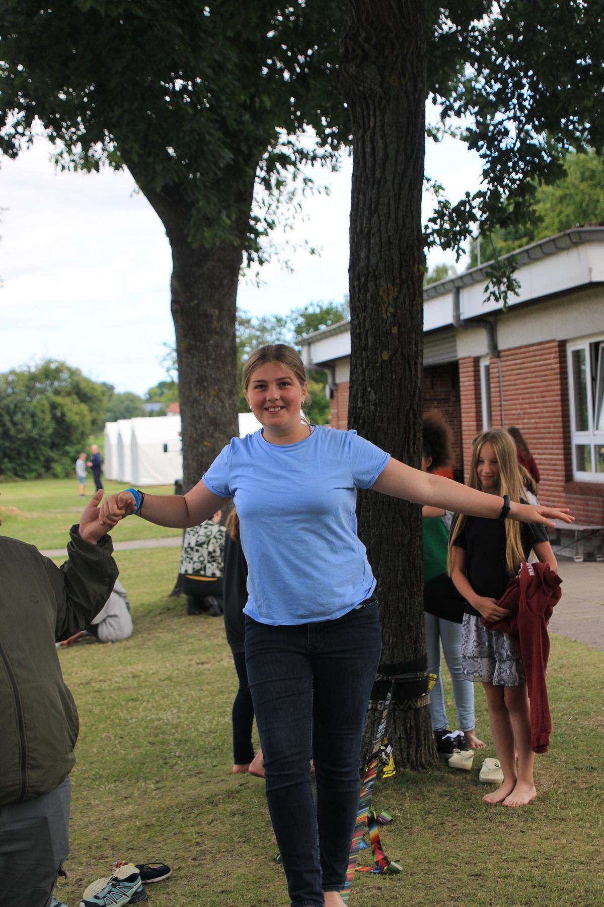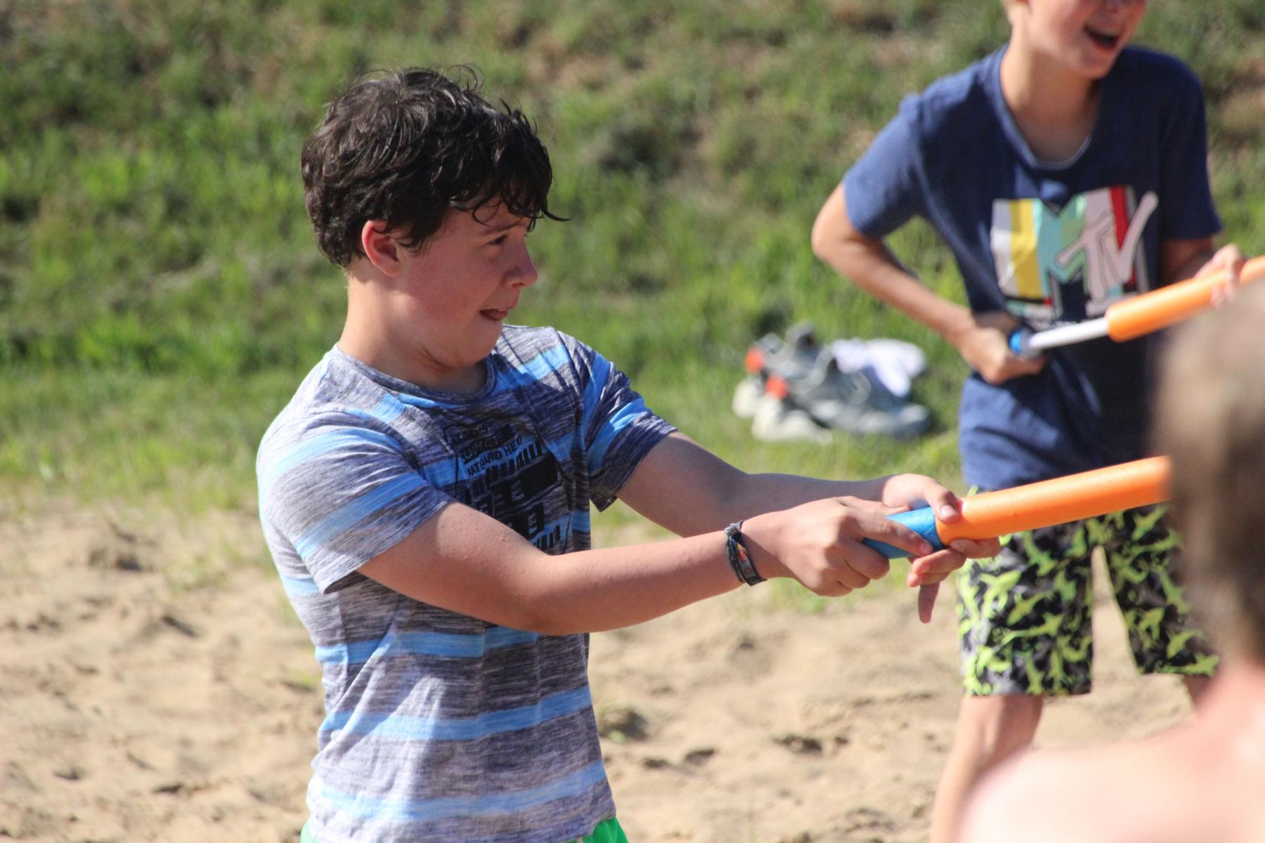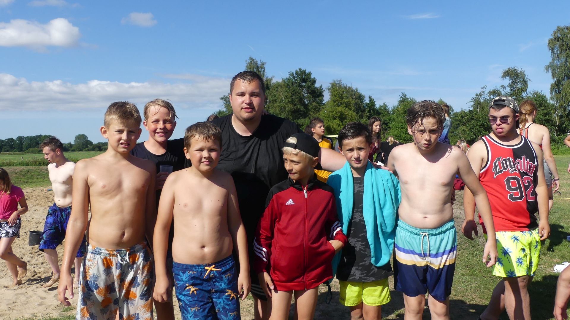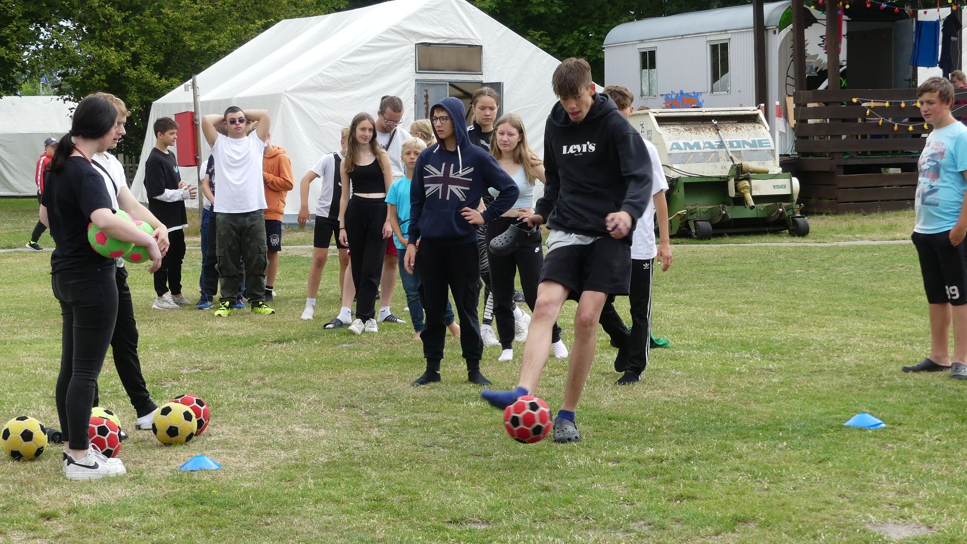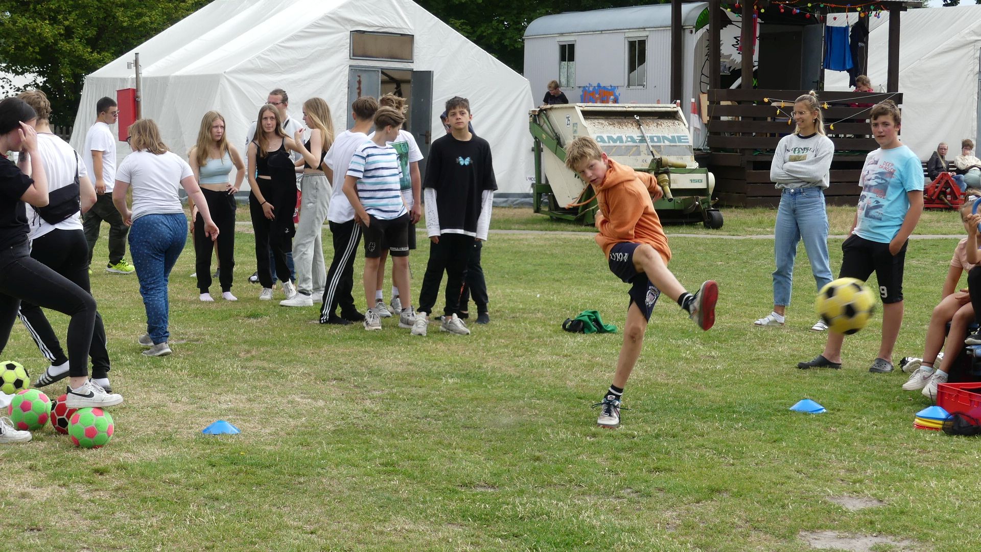 Der Nachmittag stand ganz im Zeichen der Beachparty. Diese fand dieses Jahr auf dem Beachhandballfeld statt. Hier wurde ein Spiel gespielt, bei dem es darum ging, die Betreuer eines anderen Zeltes möglichst nass zu machen. Das Zelt des Betreuers hatte die Aufgabe, ihren Betreuer möglichst gut vor dem Wasser zu schützen. Nach 90 Sekunden wurde der Bademantel des Betreuers ausgewrungen und die Rollen der Zelte wurden getauscht. Dies hat allen Kids sehr viel Spaß gemacht.