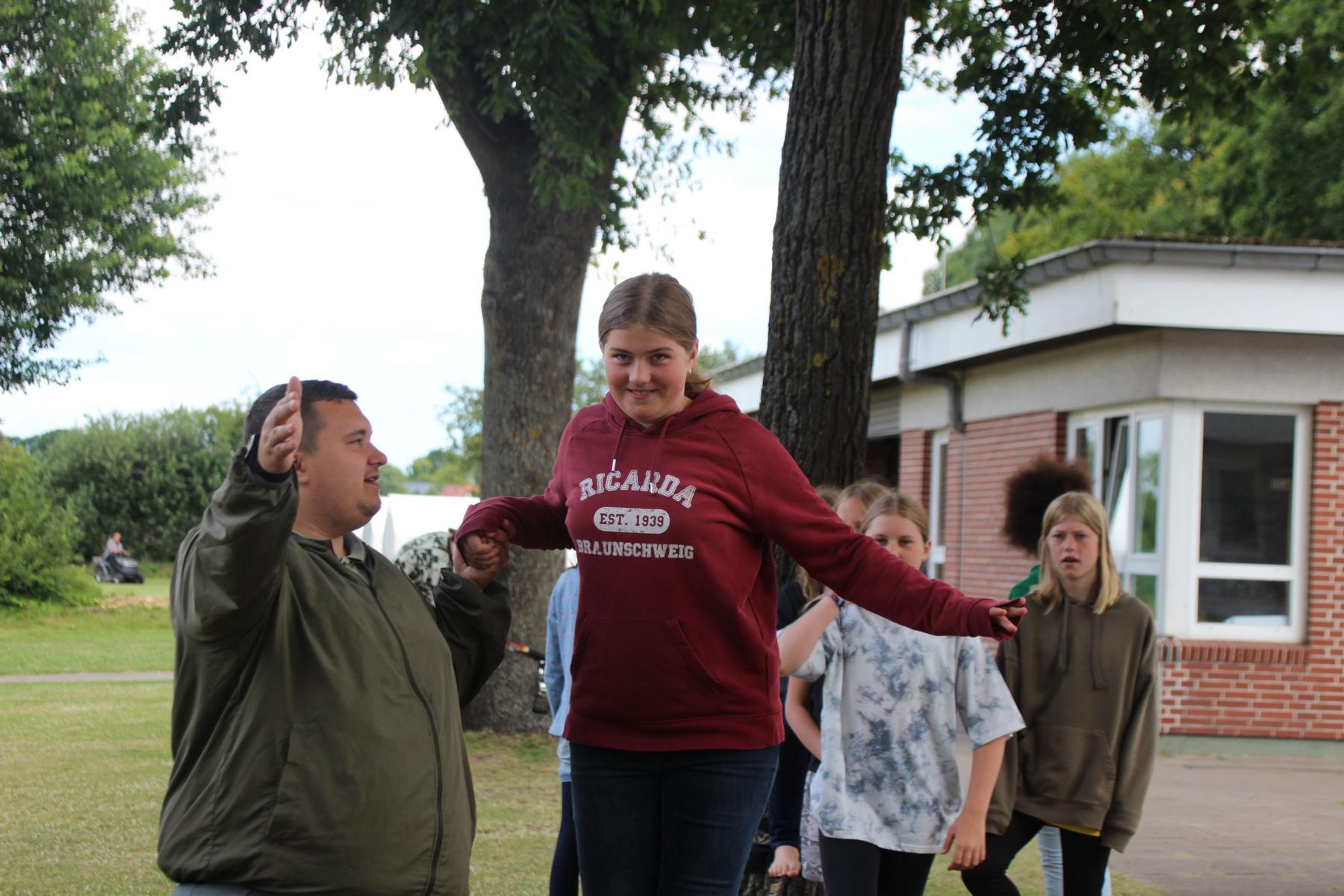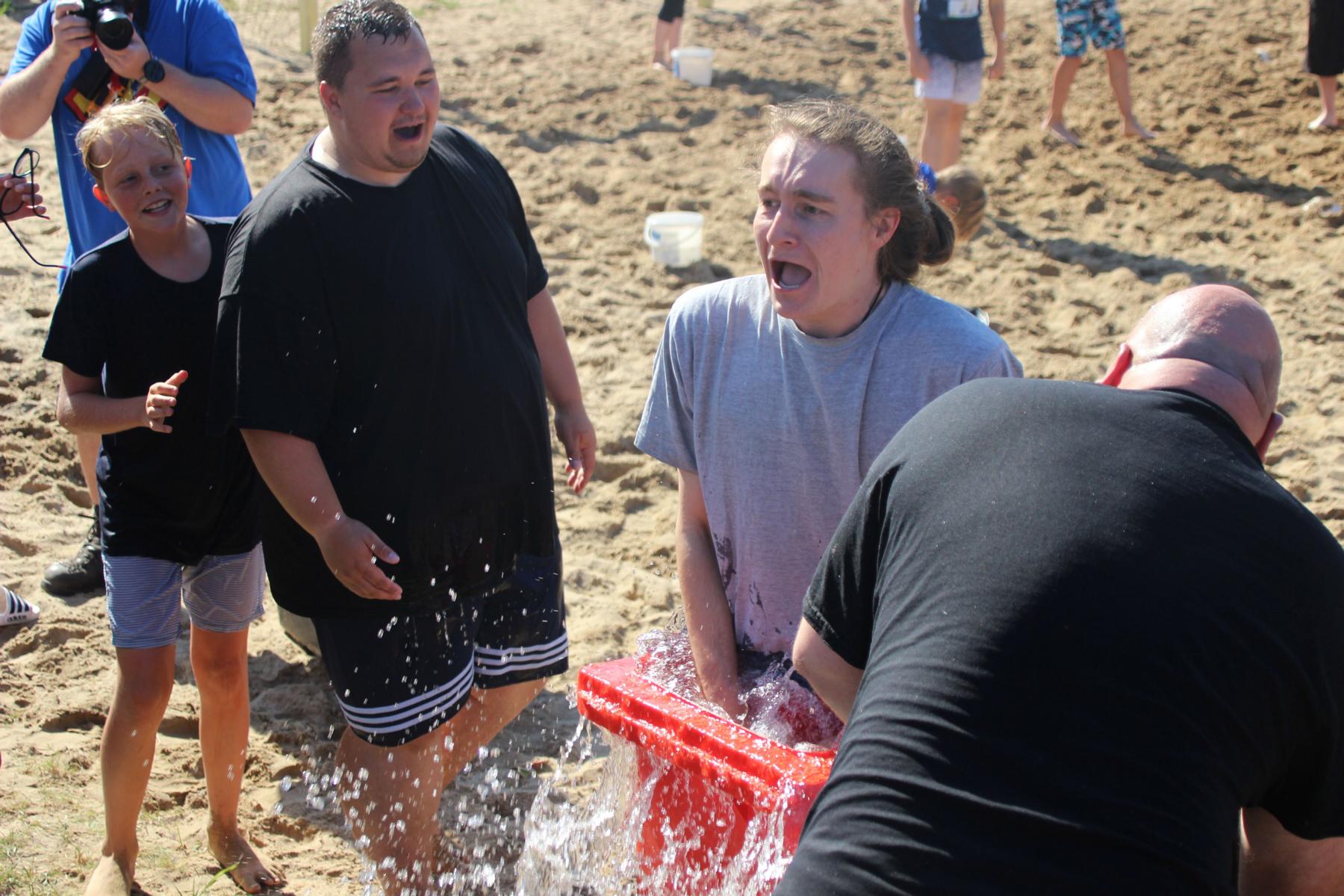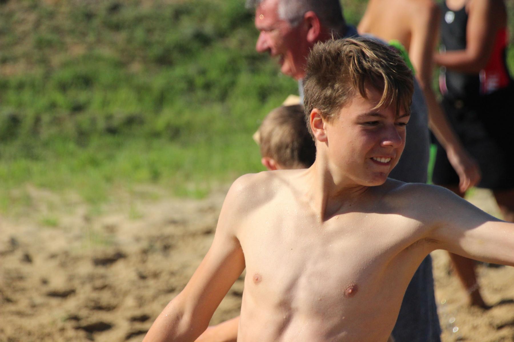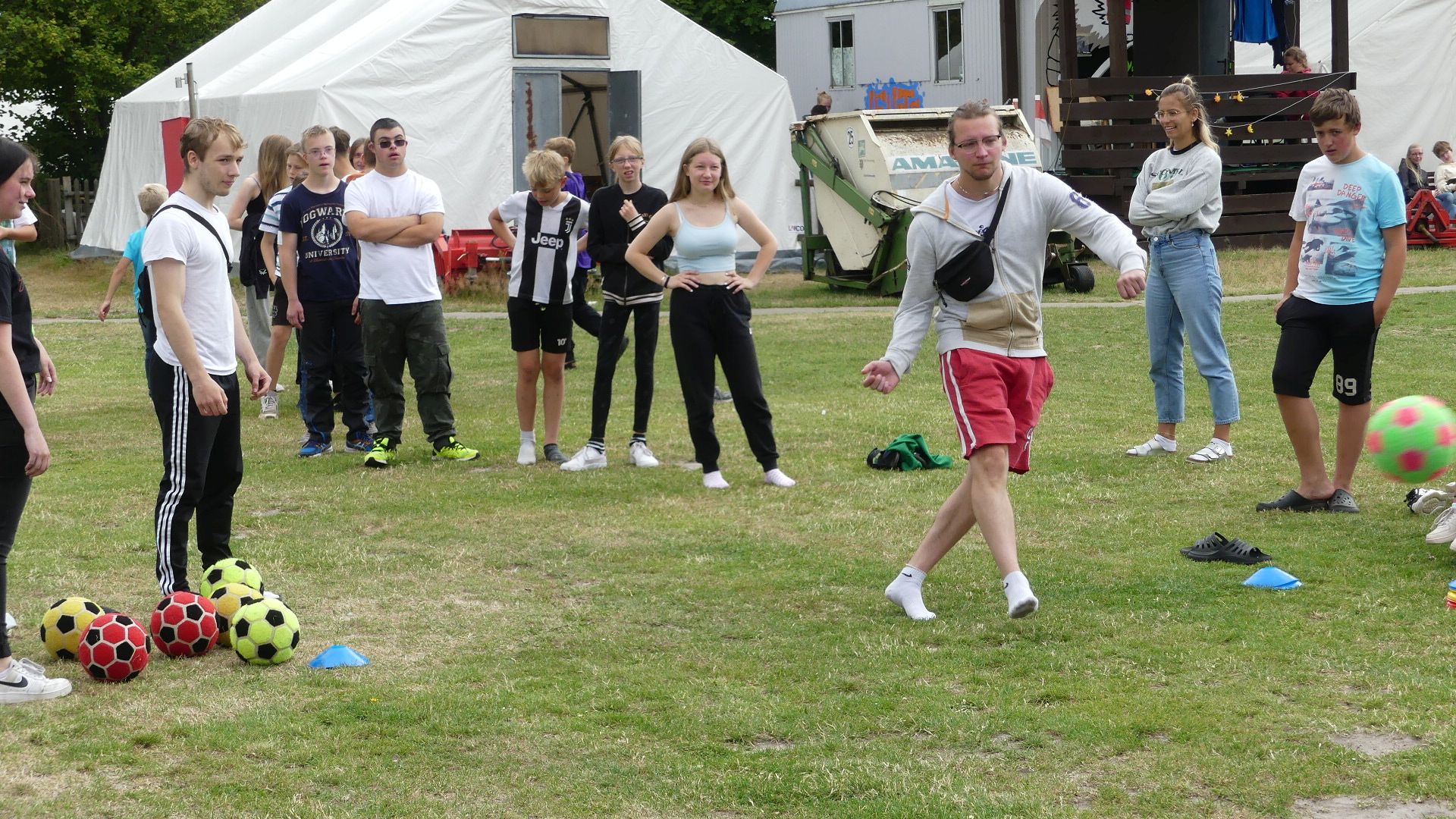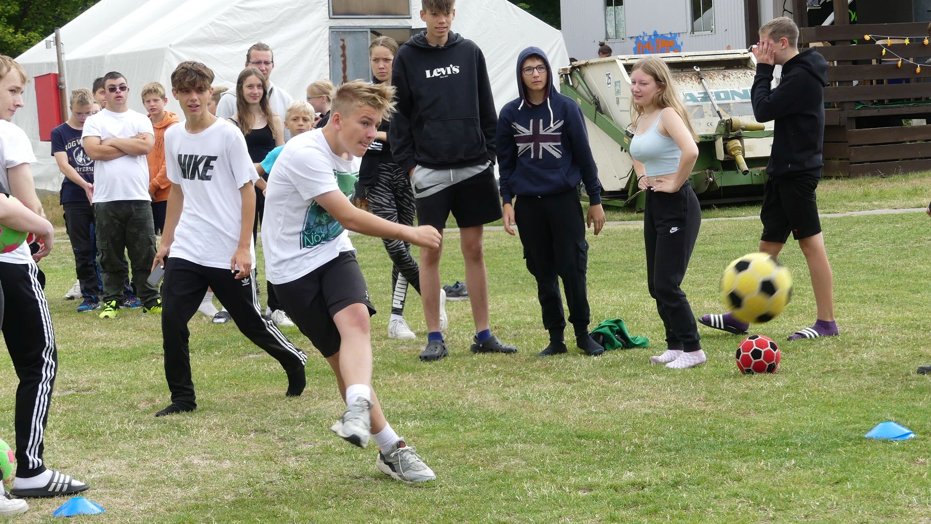 Der Nachmittag stand ganz im Zeichen der Beachparty. Diese fand dieses Jahr auf dem Beachhandballfeld statt. Hier wurde ein Spiel gespielt, bei dem es darum ging, die Betreuer eines anderen Zeltes möglichst nass zu machen. Das Zelt des Betreuers hatte die Aufgabe, ihren Betreuer möglichst gut vor dem Wasser zu schützen. Nach 90 Sekunden wurde der Bademantel des Betreuers ausgewrungen und die Rollen der Zelte wurden getauscht. Dies hat allen Kids sehr viel Spaß gemacht.