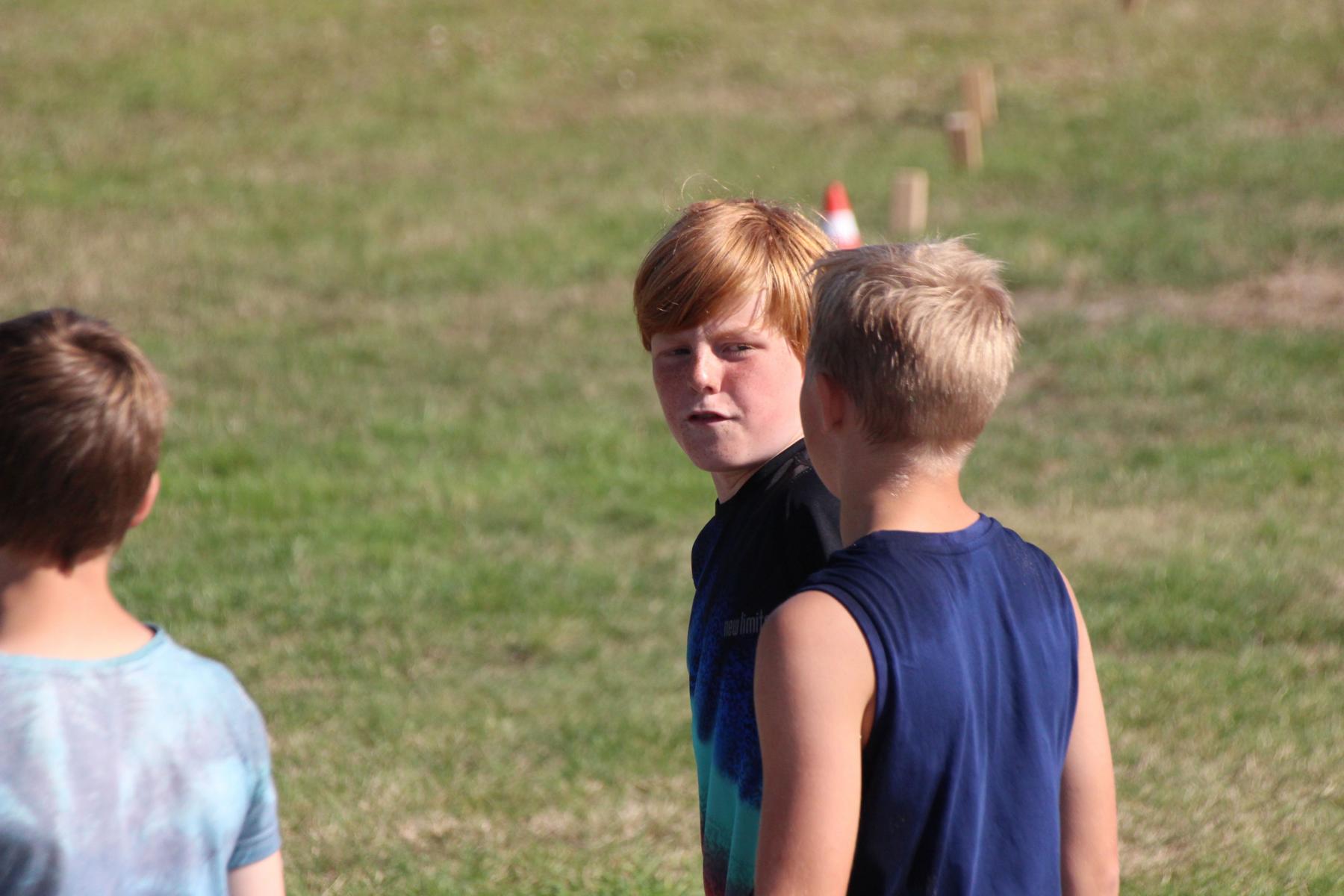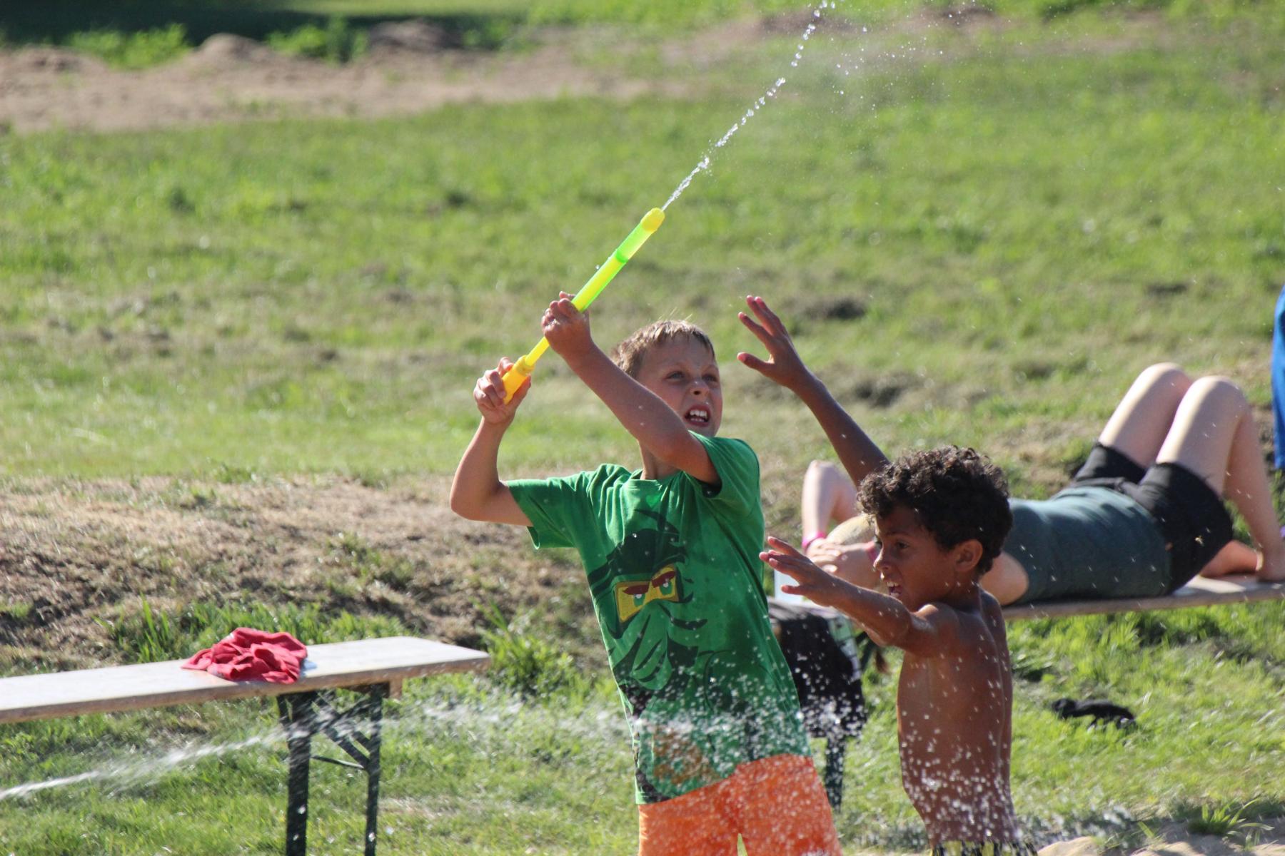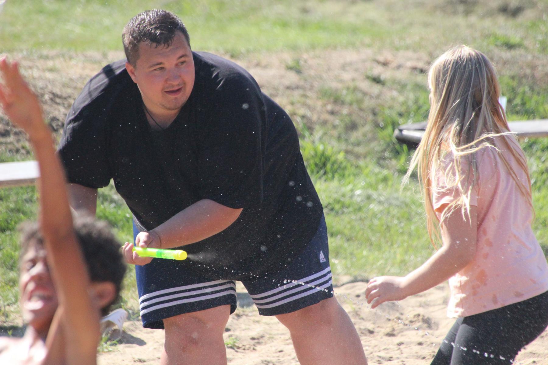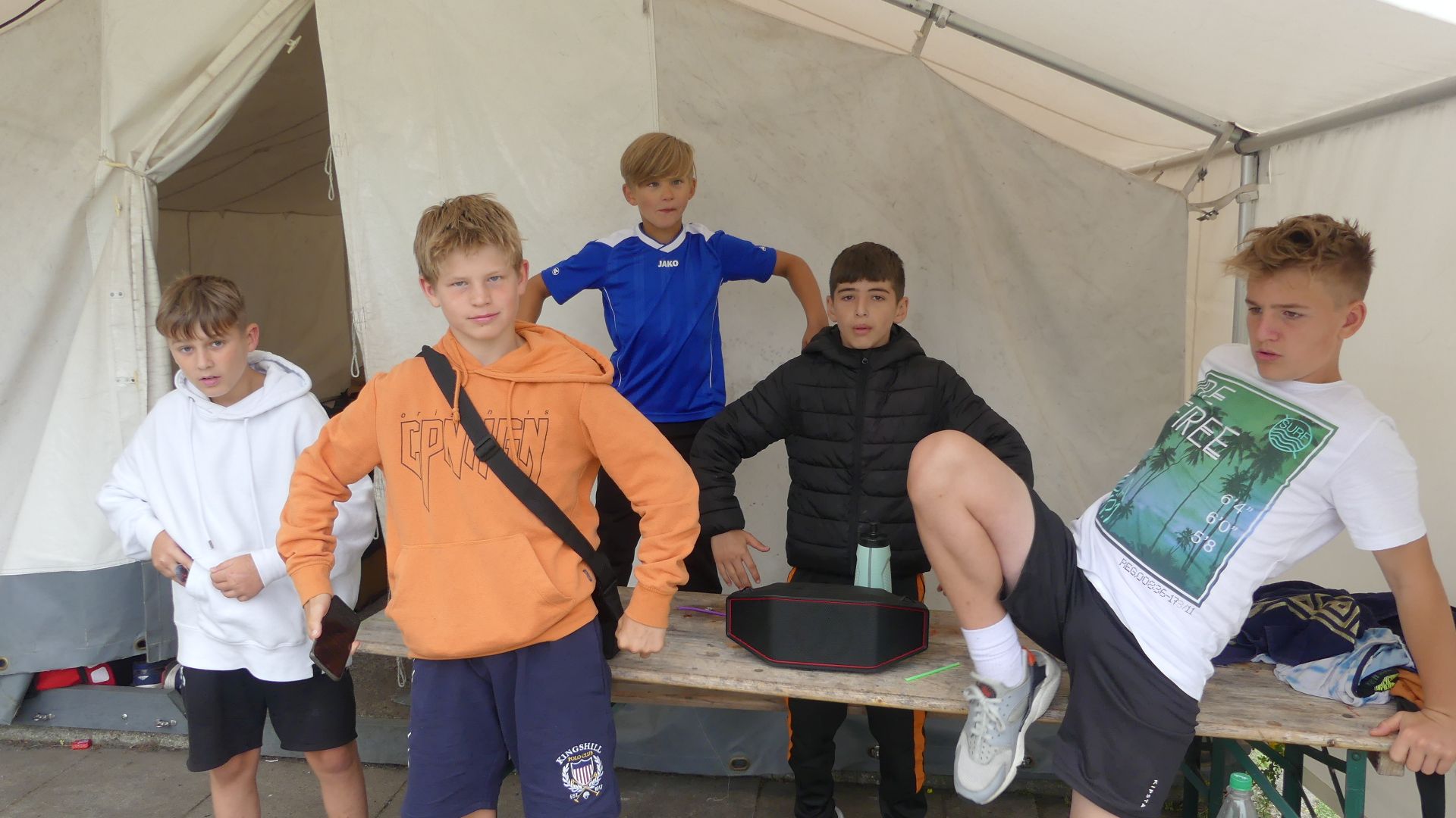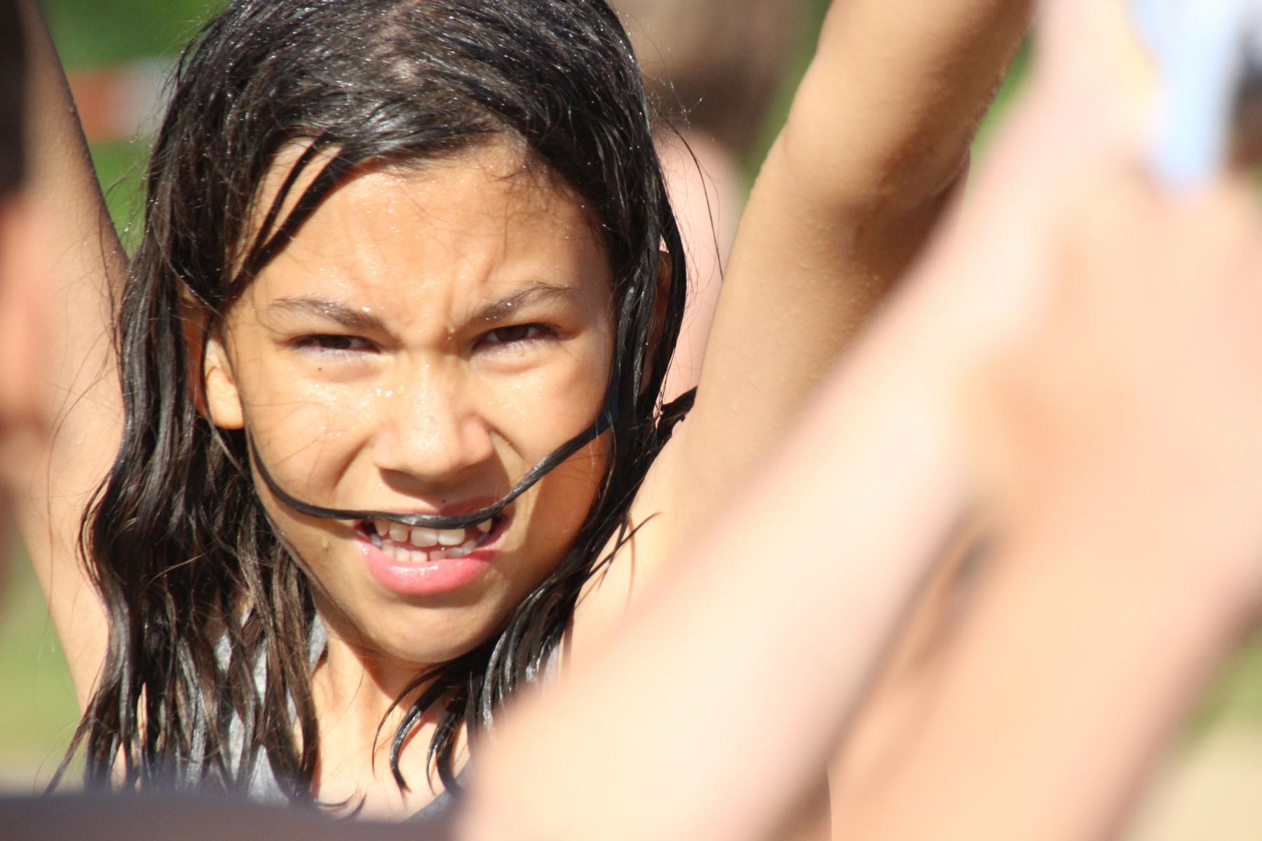 Der Nachmittag stand ganz im Zeichen der Beachparty. Diese fand dieses Jahr auf dem Beachhandballfeld statt. Hier wurde ein Spiel gespielt, bei dem es darum ging, die Betreuer eines anderen Zeltes möglichst nass zu machen. Das Zelt des Betreuers hatte die Aufgabe, ihren Betreuer möglichst gut vor dem Wasser zu schützen. Nach 90 Sekunden wurde der Bademantel des Betreuers ausgewrungen und die Rollen der Zelte wurden getauscht. Dies hat allen Kids sehr viel Spaß gemacht.