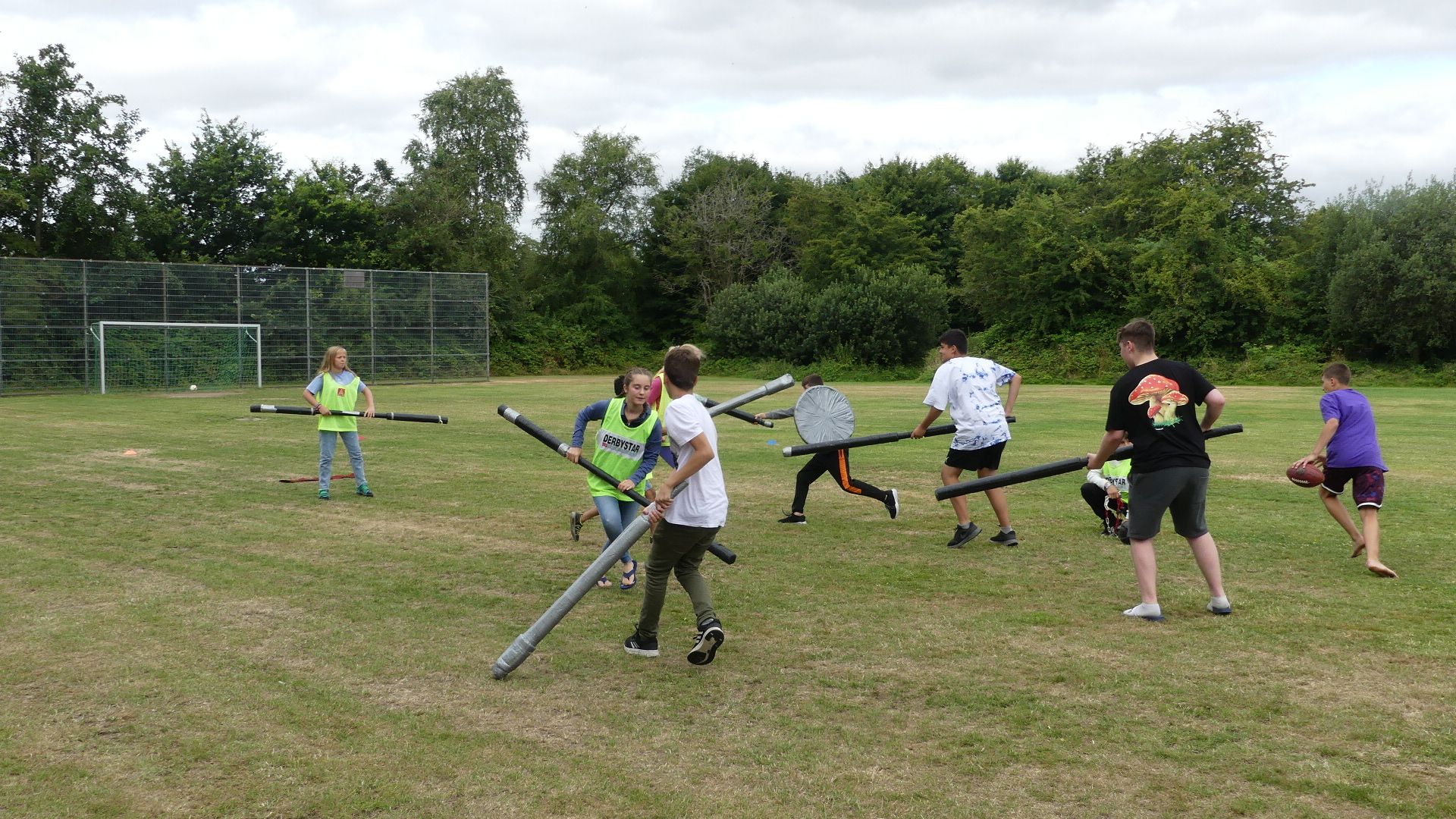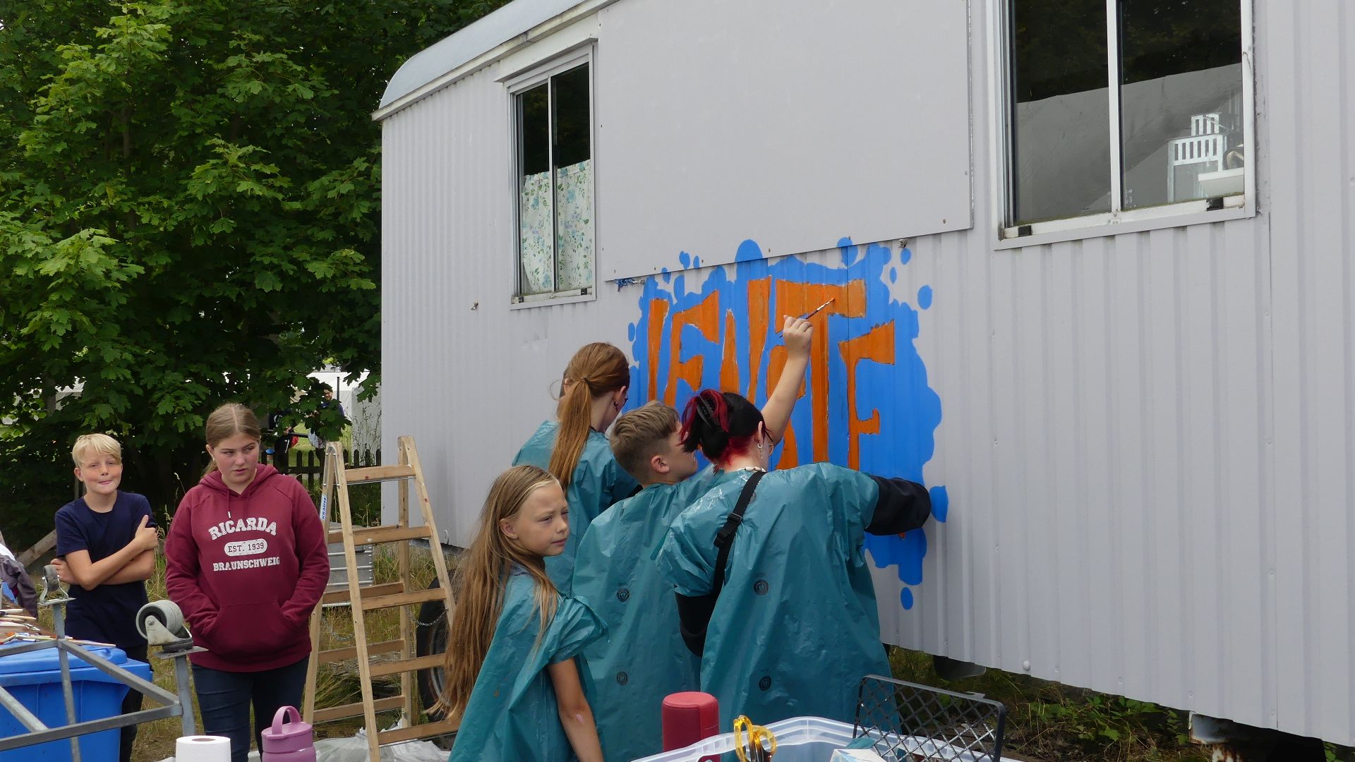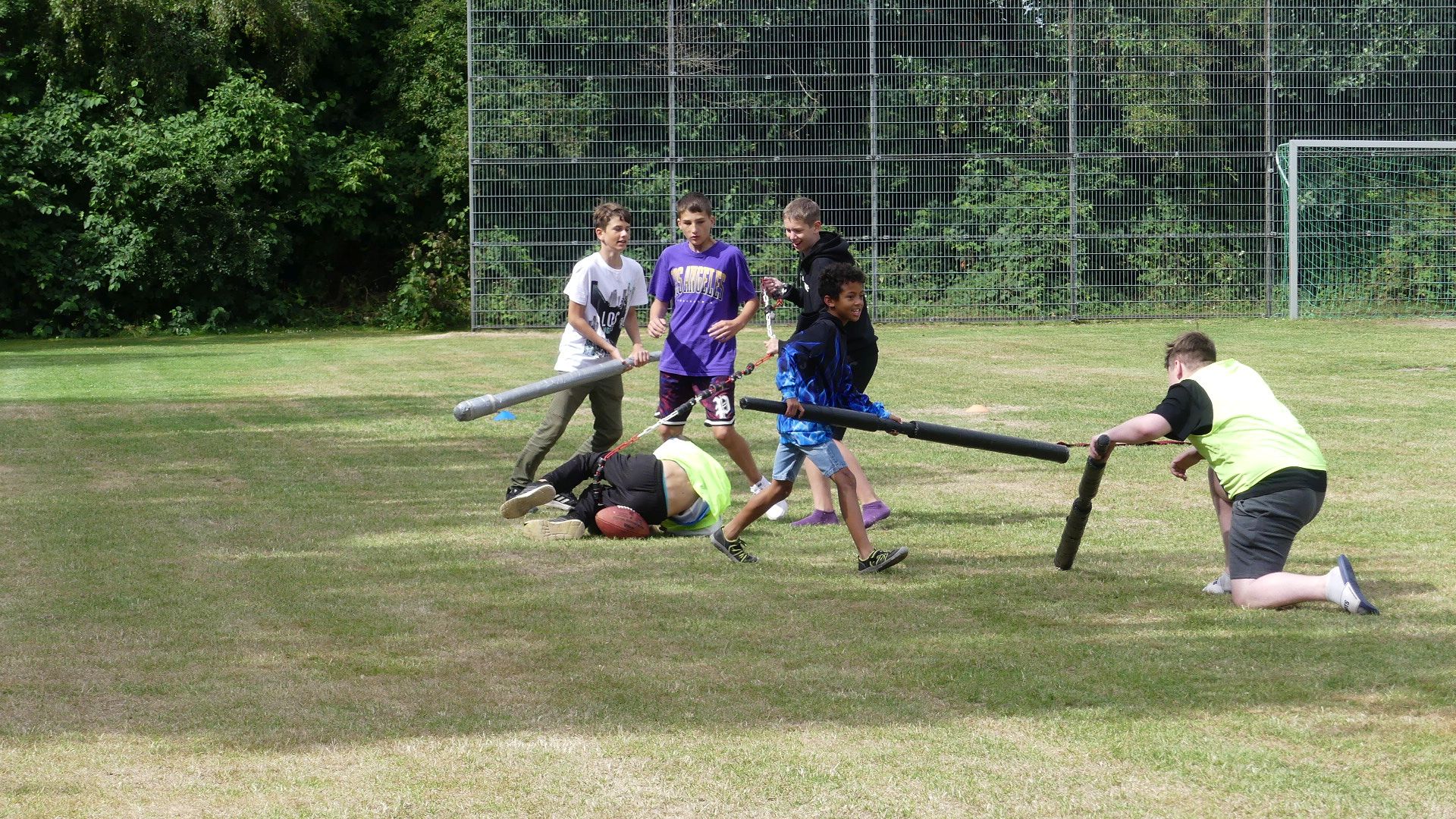 Nach der allmorgendlichen Stärkung konnten die individuellen Fähigkeiten der Kids in vielen Projekten weitergebildet werden. So war es möglich, mit Drohnen zu fliegen und somit die Spionagefähigkeiten und das Auskundschaften der Gegend zu trainieren. Das Gleichgewicht und Geschick wurden auf der Slagline gefördert. Kampfkraft und Geschwindigkeit waren die Attribute, welches beim Jugger verbessert wurden. Beim Bemalen des Bauwagens wurde die Kreativität unserer Kids trainiert. Auch wurden Wikingerschach und Badminton angeboten.