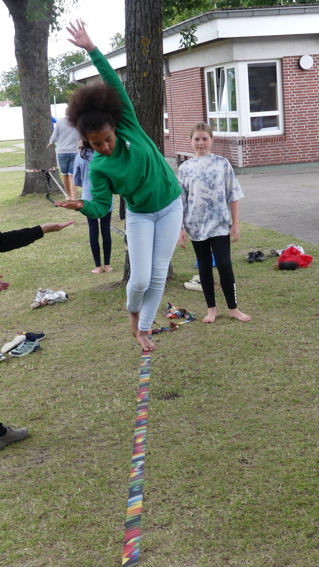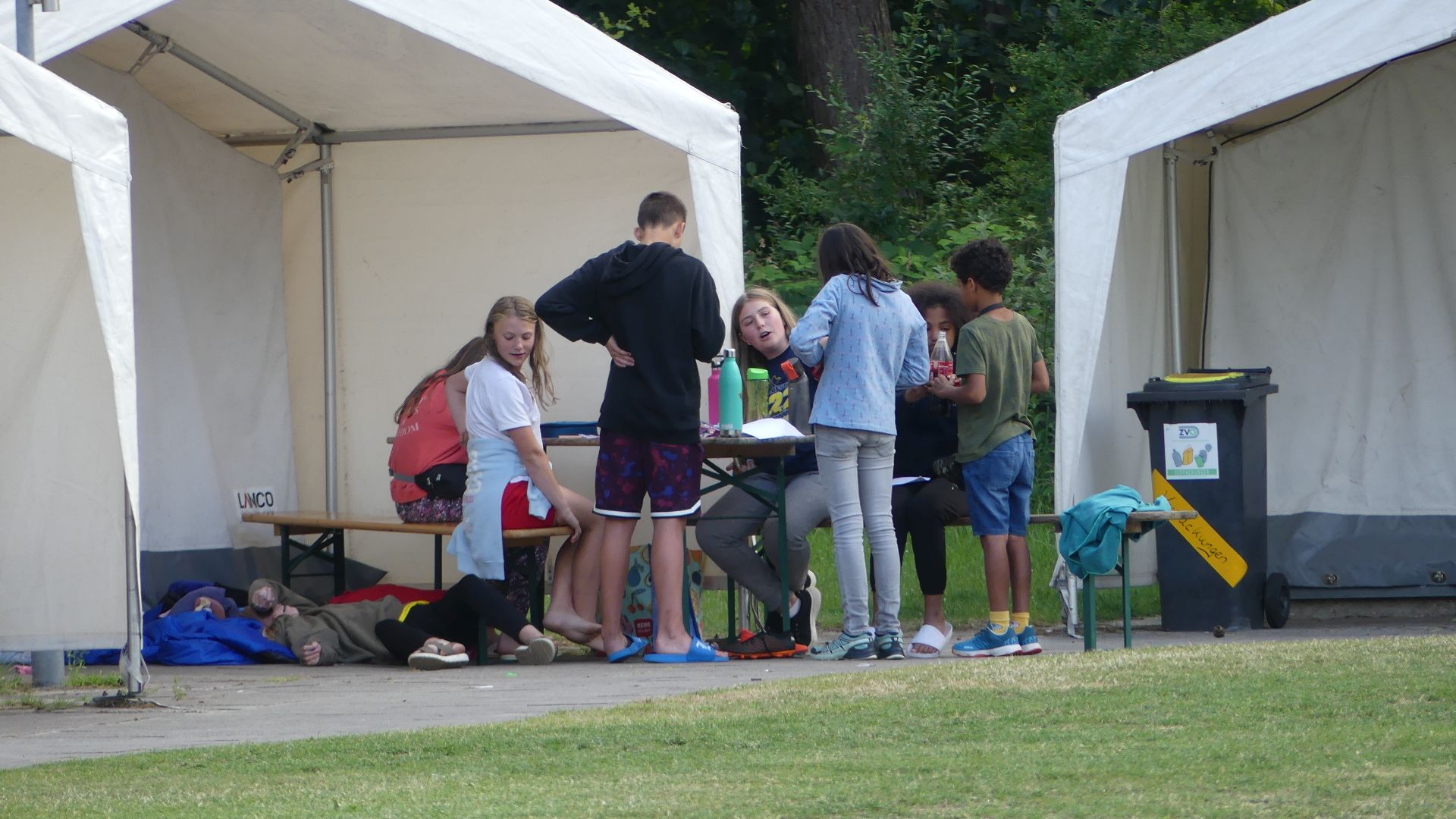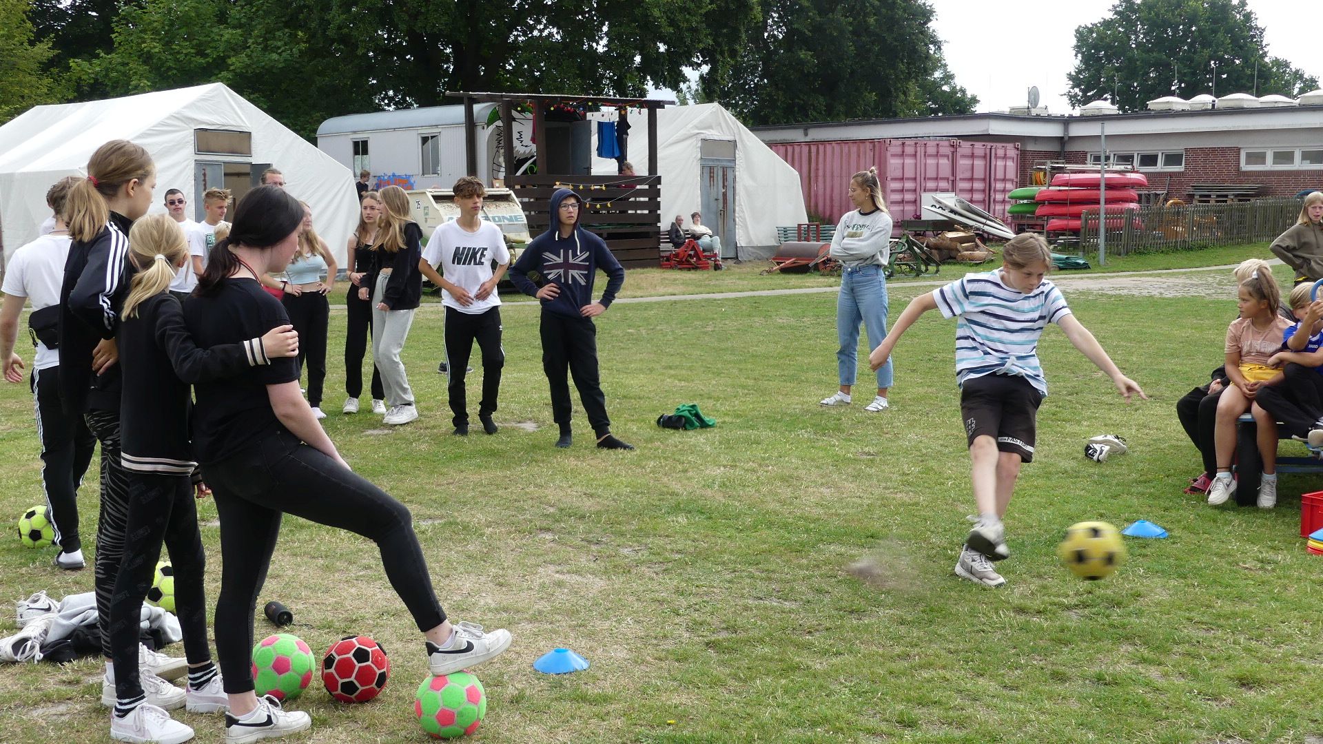 Nach der allmorgendlichen Stärkung konnten die individuellen Fähigkeiten der Kids in vielen Projekten weitergebildet werden. So war es möglich, mit Drohnen zu fliegen und somit die Spionagefähigkeiten und das Auskundschaften der Gegend zu trainieren. Das Gleichgewicht und Geschick wurden auf der Slagline gefördert. Kampfkraft und Geschwindigkeit waren die Attribute, welches beim Jugger verbessert wurden. Beim Bemalen des Bauwagens wurde die Kreativität unserer Kids trainiert. Auch wurden Wikingerschach und Badminton angeboten.