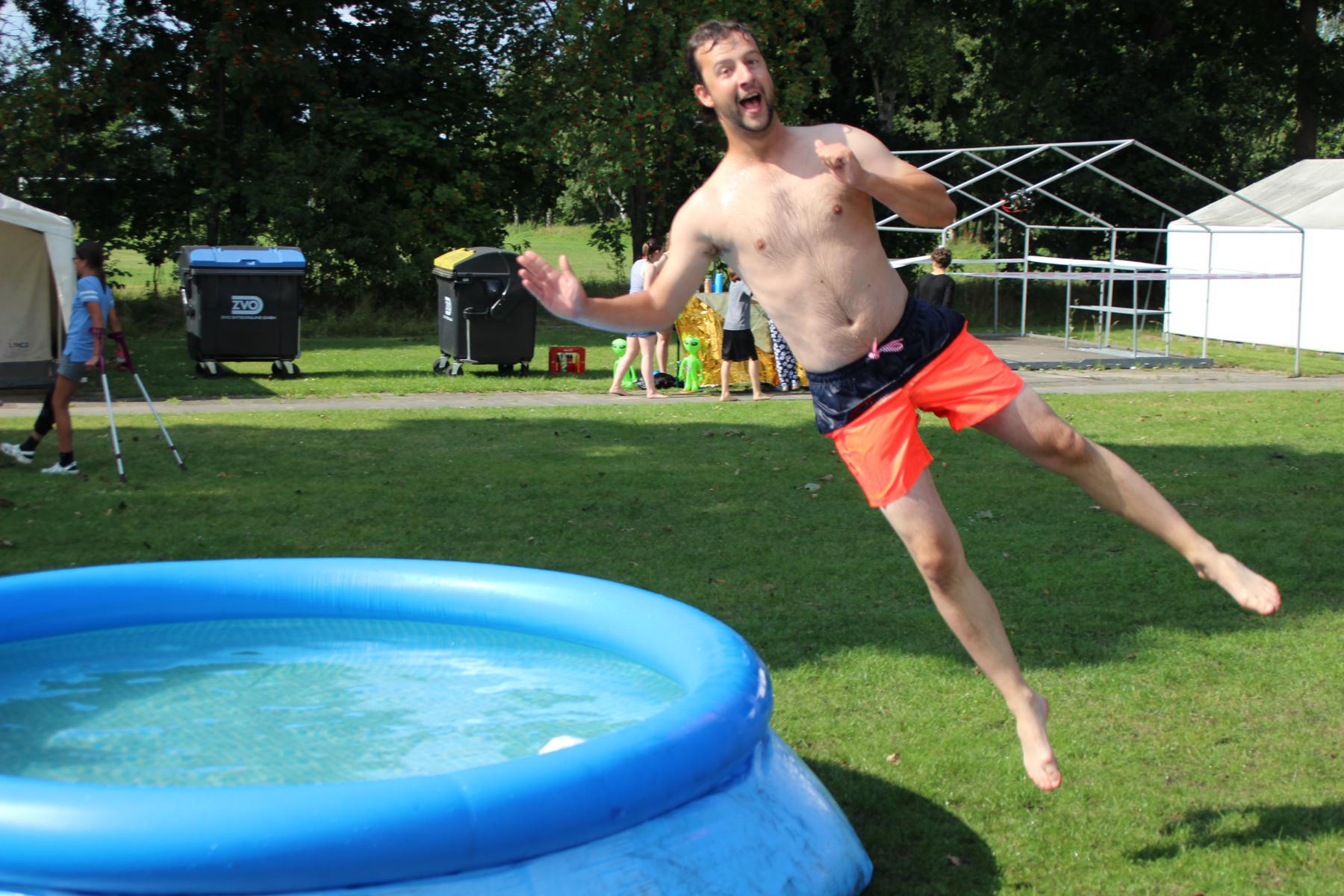 Am Nachmittag fand die Beachparty auf dem Zeltplatz statt. Hier konnte man Kometen auf Planeten schleudern (Dosenwerfen), oder seine Beweglichkeit beim Lichtschwertlimbo unter Beweis stellen. Auch war es möglich, sich als Alien schminken zu lassen und Edelsteine auf der Mondoberfläche zu suchen. Gleichzeitig zu den Spielen waren auch die Pools aufgebaut, in die auch viele mehr oder weniger freiwillig eintauchten. Nach der sehr schönen Beachparty wurde am Abend gegrillt. Im Anschluss daran wurde der Filmraum als kleiner Kinosaal genutzt.