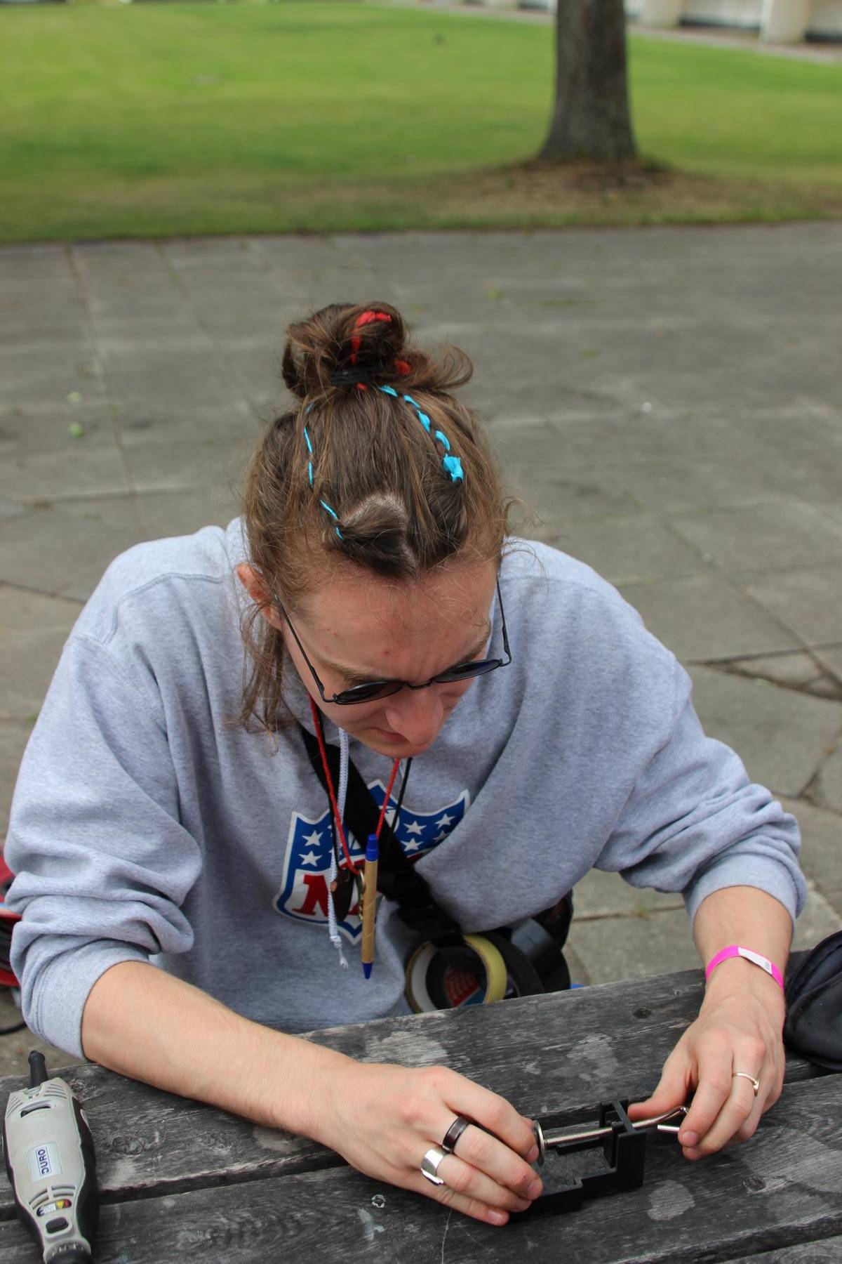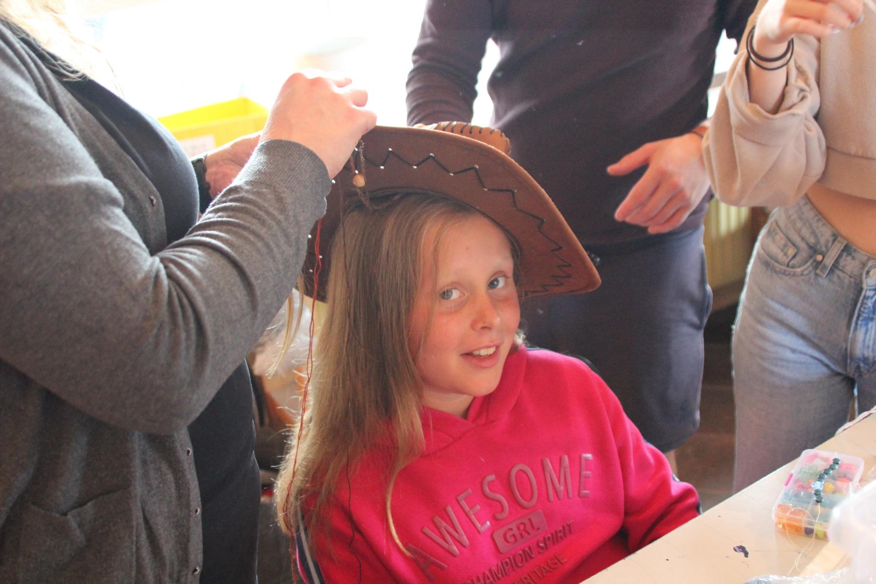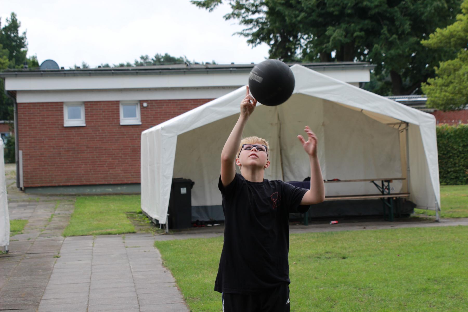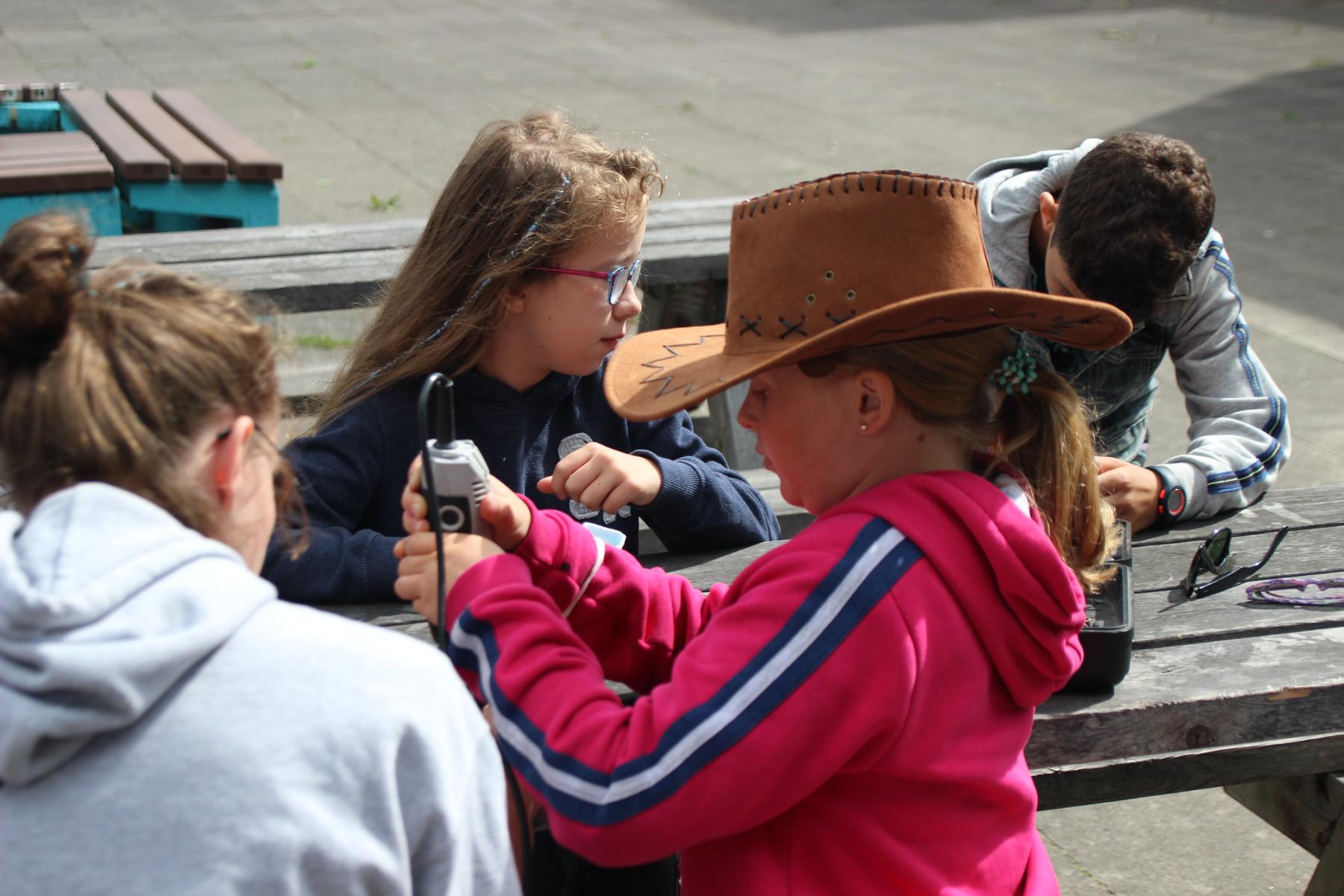 Heute ist Sonntag und somit gab es zu dem üblichen Frühstück aus Brötchen, Brot, Wurst, Käse, süßen Aufstrichen und Obst auch noch Müsli und Eier. Nach dem Frühstück konnten die Astronauten an der Tischtennisplatte den ganzen Vormittag so richtig durchstarten. Im Bastelraum wurden abgespacete Frisuren durch das Einflechten von bunten Bändern in die Haare kreiert. Auch versuchten sich einige Abenteurer daran, gemeinsam mit Betreuern Schmuck aus Mondgestein und Marskristallen herzustellen.