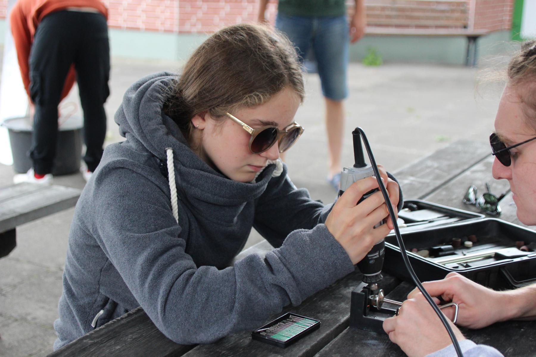 Zum Mittagessen gab es sehr gute Schnitzel mit Karotten, Kartoffeln und Sauce Hollandaise. Nach einer regnerischen Mittagspause lachte die Sonne auf den heutigen Projektnachmittag.