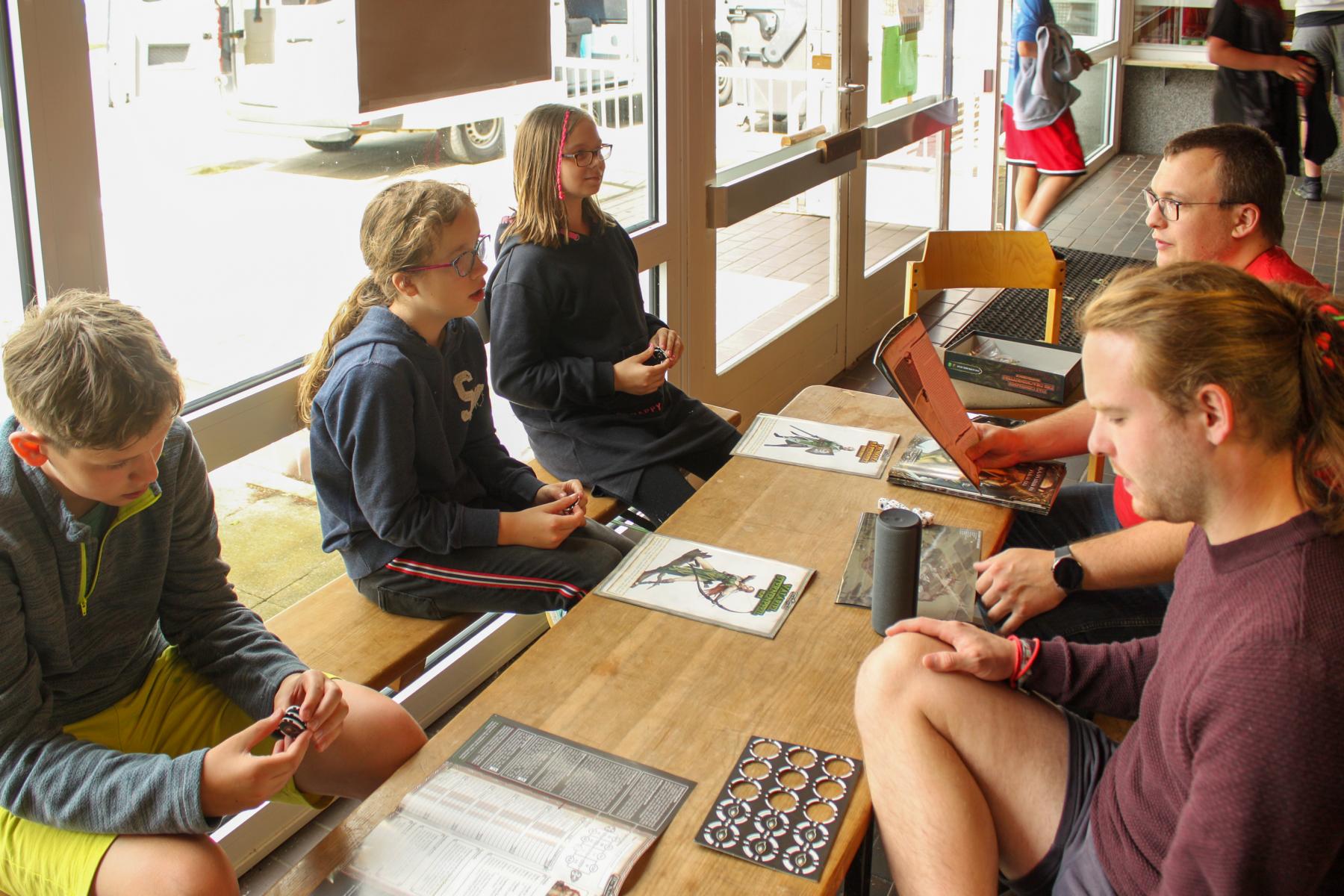 Da für heute Sonnenstürme und Asteroidenschauer vorhergesagt wurden, waren die heutigen Projekte eher für die Innenräume geplant. Im Filmraum konnten die Jungastronauten beim E-Sport ihr Geschick unter Beweis stellen. Währenddessen wurden im Filmzelt die Gesangstalente beim Singstarspielen herausgefordert. Im Vorraum vor der Kongo wurden unsere Abenteurer beim Pen & Paper Rollenspiel in die Welt von „Das Schwarzen Auge“ entführt und konnten in einer mittelalterlichen Fantasiewelt die Tochter des Grafens vor ihren Entführern retten.
