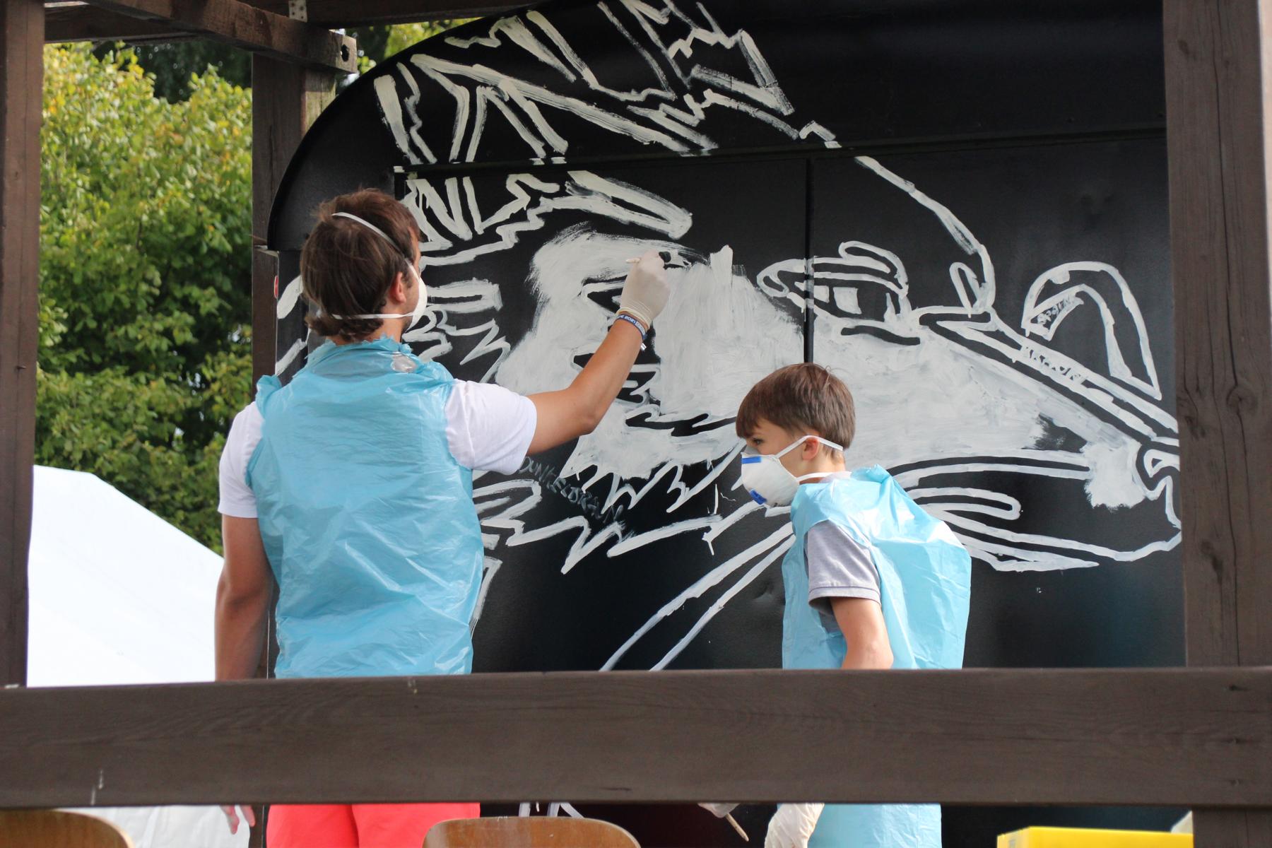 Der Vormittag wurde genutzt, um die Hotels für die Space-Insekten fertig zu stellen. Auch wurde der Bauwagen von unserer Kreativ-Crew weiter neu gestaltet. Im Bastelraum wurden die Projekte der letzten Tage abgeschlossen. Auch haben unsere kleinen Abenteurer Loom-Armbändern geknüpft. Außerdem bot sich die Chance die finanziellen Vorräte auf dem Planeten Grömitz in Versorgungsrationen einzutauschen. Am Bauwagen wurden zudem weiter an einem neuen Design gearbeitet.