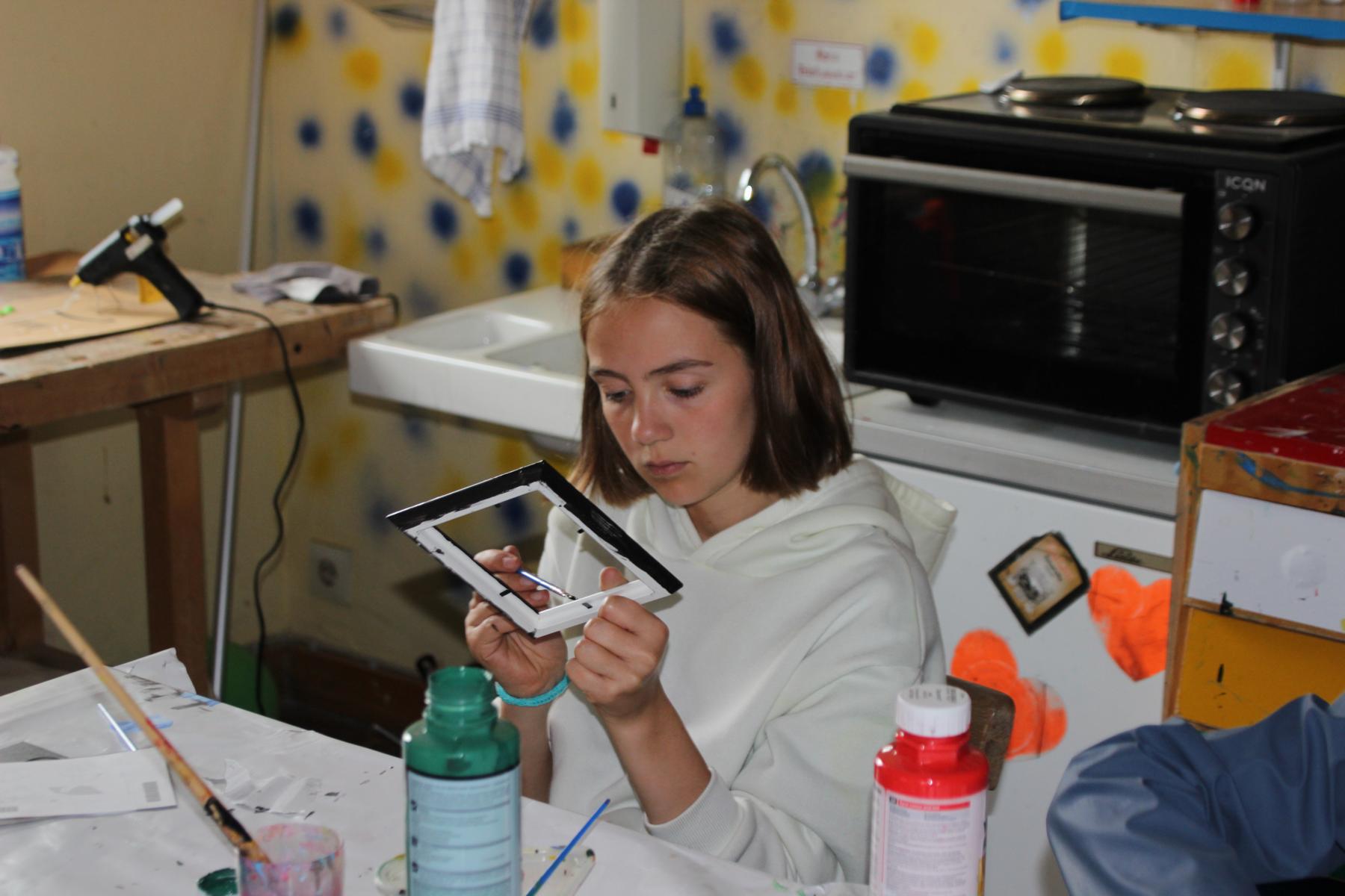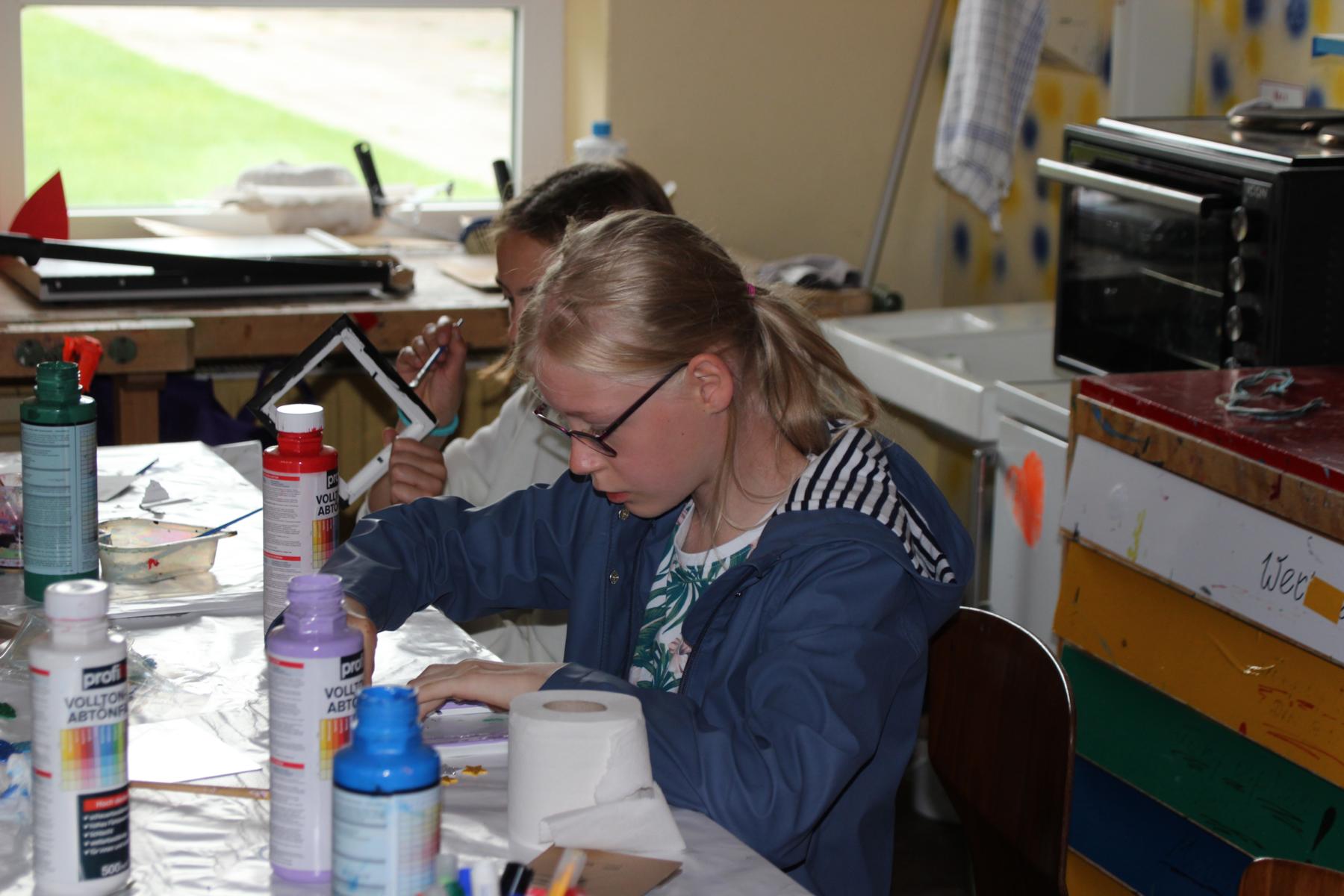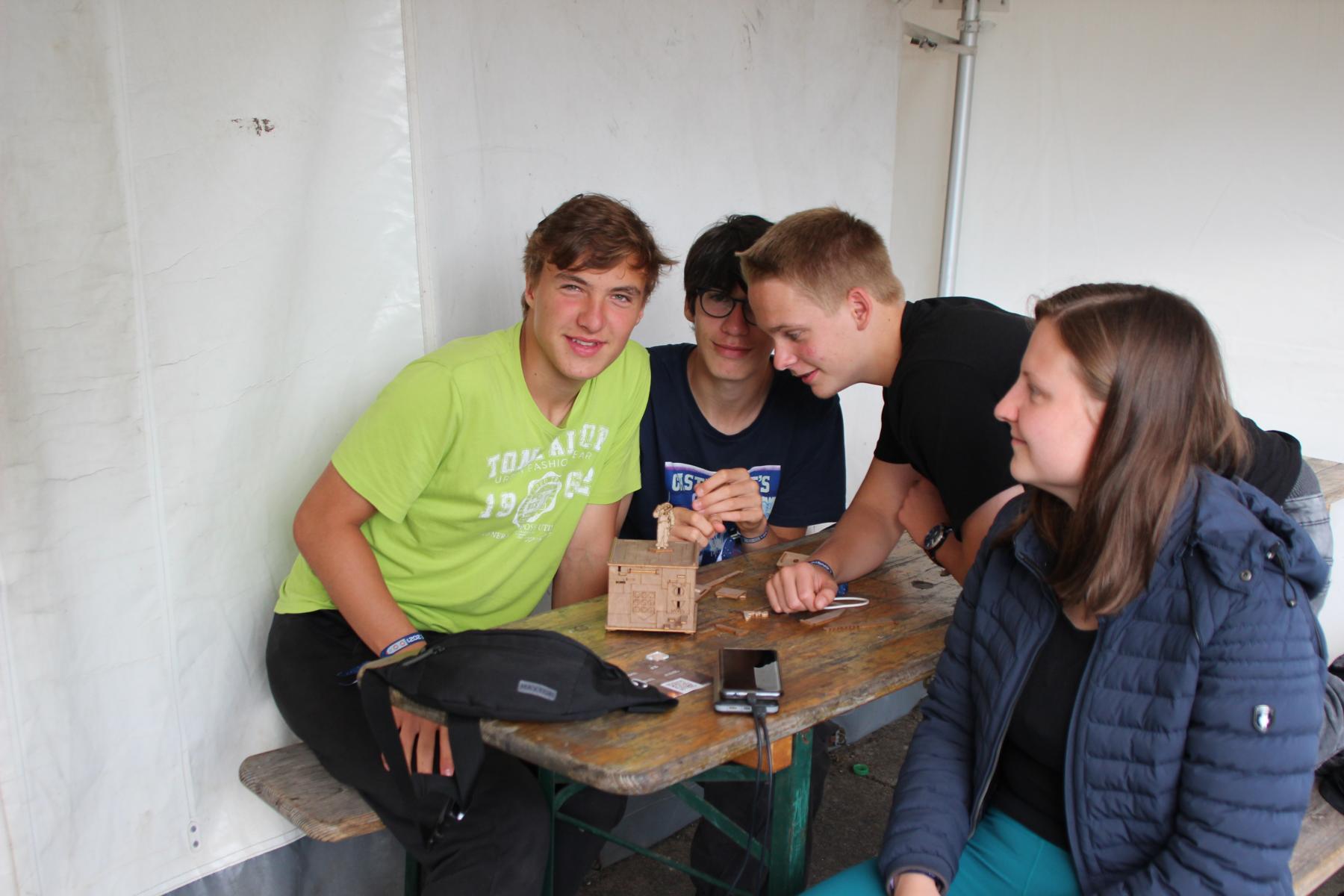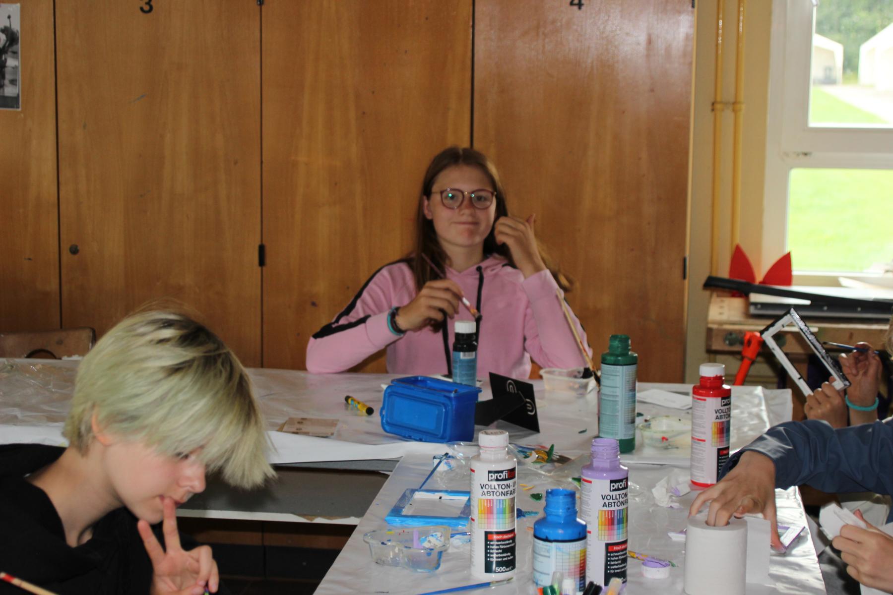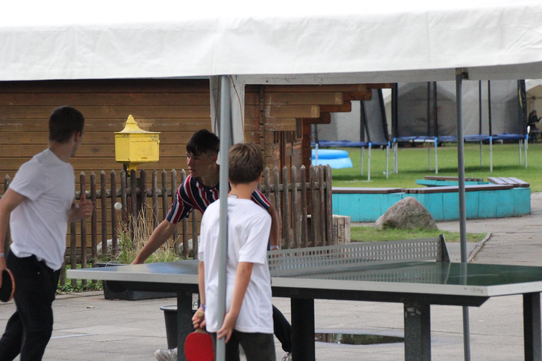 Den restlichen Nachmittag war es trocken und die Zeit konnte von den jungen Abenteurern individuell genutzt werden. Es wurde eine Traumreise angeboten und die Tischtennisplatte wurde bespielt. Auch wurde das Fußballtennis ausgiebig genutzt. Einige Zelte backten Waffeln, oder sahen einen Film. Auch war ein Actionbound (Digitales Such- und Rätselspiel) auf dem Zeltplatz vorbereitet. Im Bastelraum wurden Bilderrahmen als Erinnerung an das Zeltraumabenteuer Lenste 2021 gestaltet.