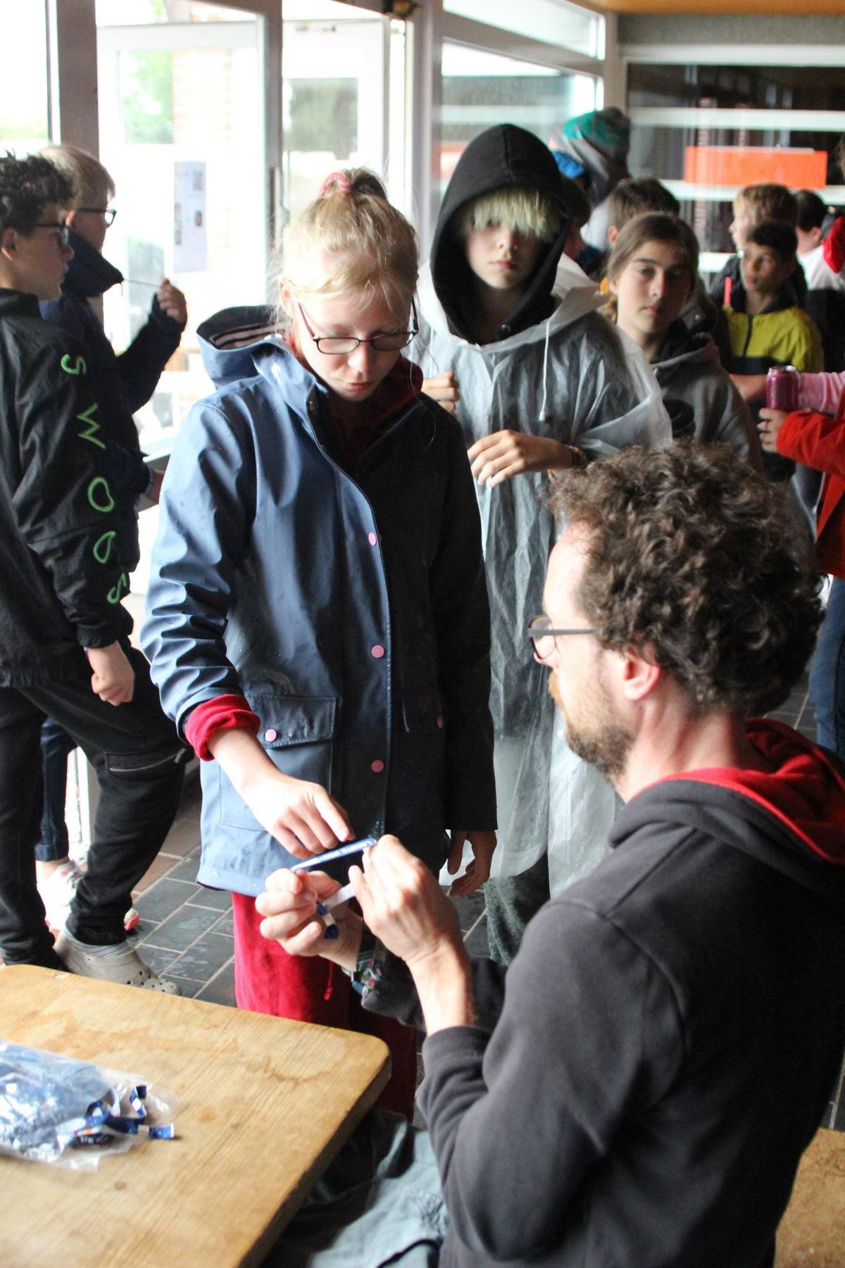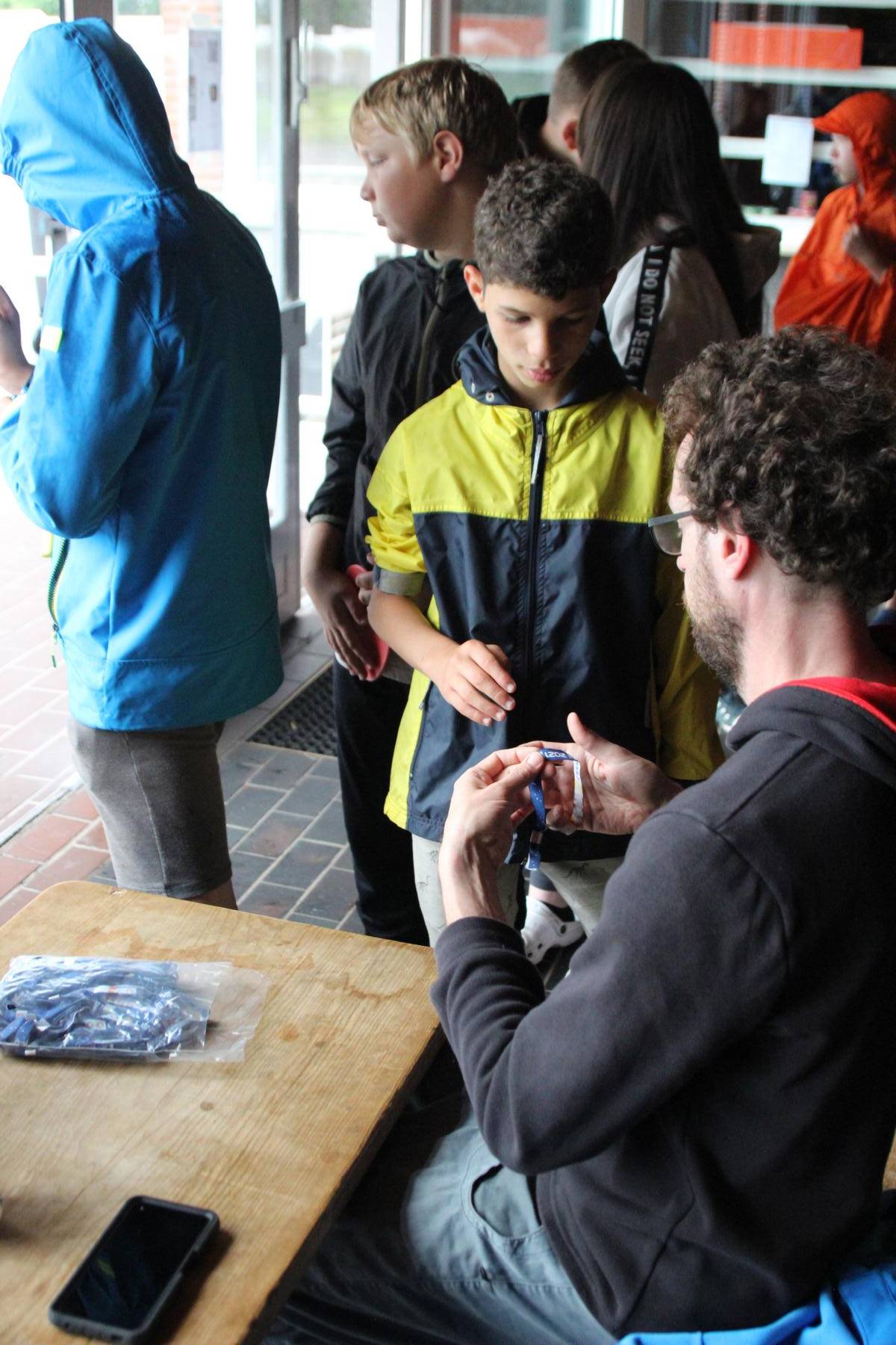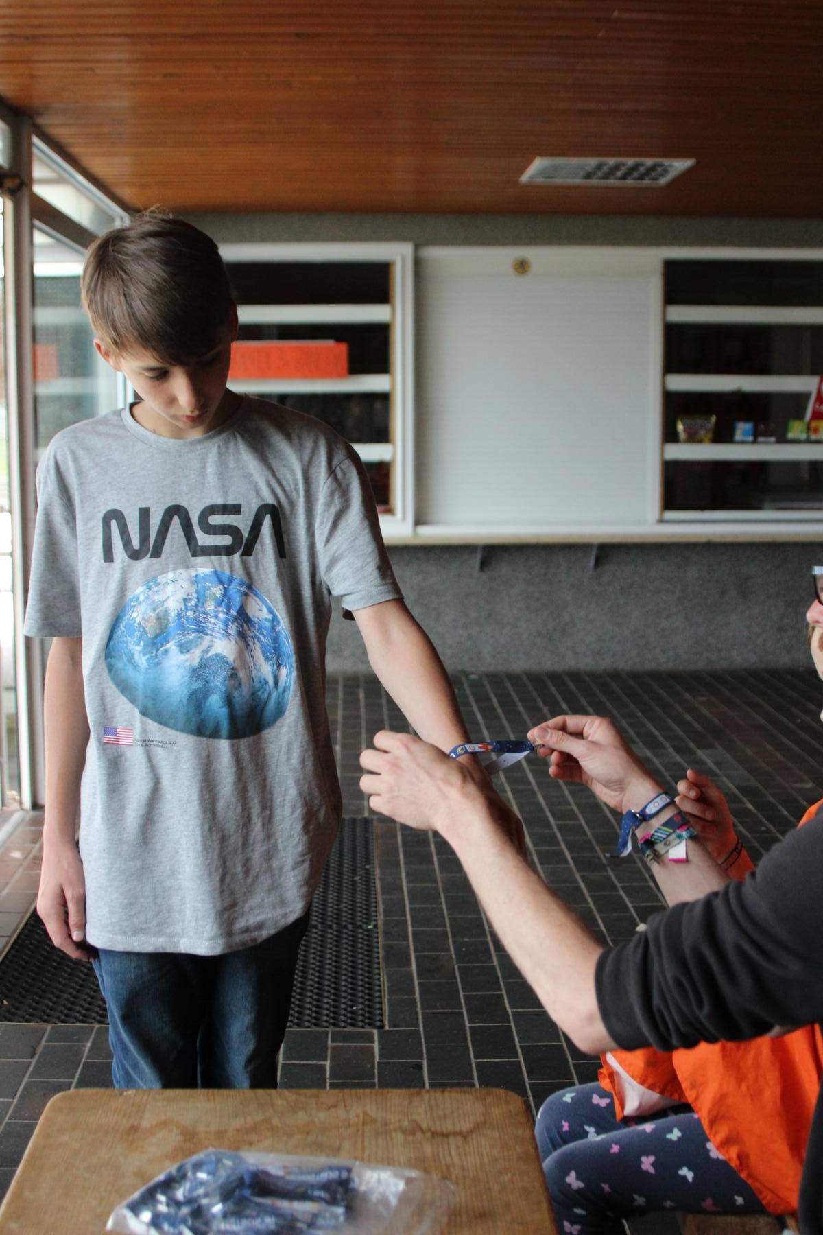 Obwohl es zwischenzeitlich etwas regnete, begann der Nachmittag mit vielen strahlenden Jungastronauten. Zu diesem Zeitpunkt wurden die Space-Armbänder ausgegeben, um allen Jungastronauten ein schönes Souvenir mit auf ihre zukünftigen Reisen zu geben.