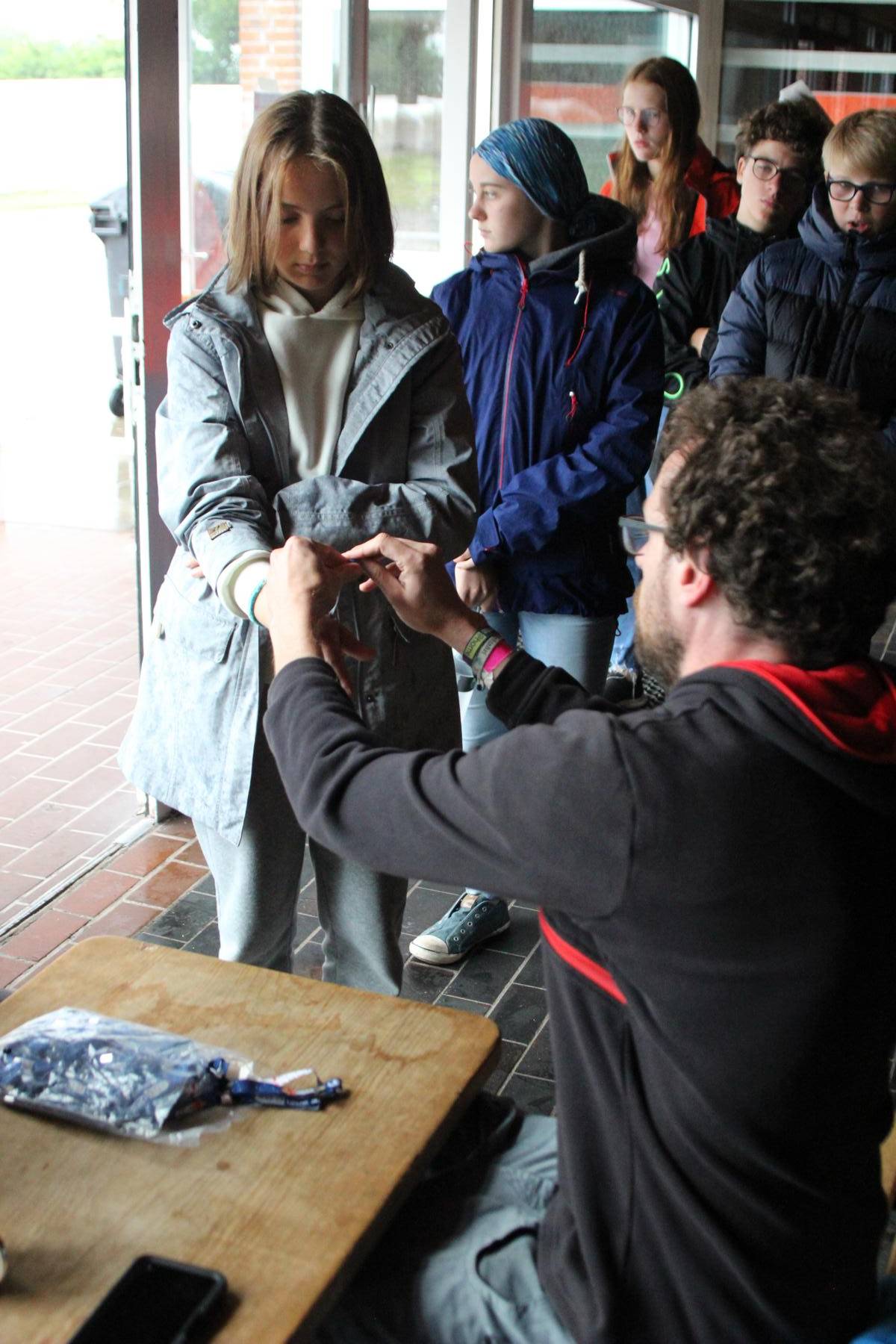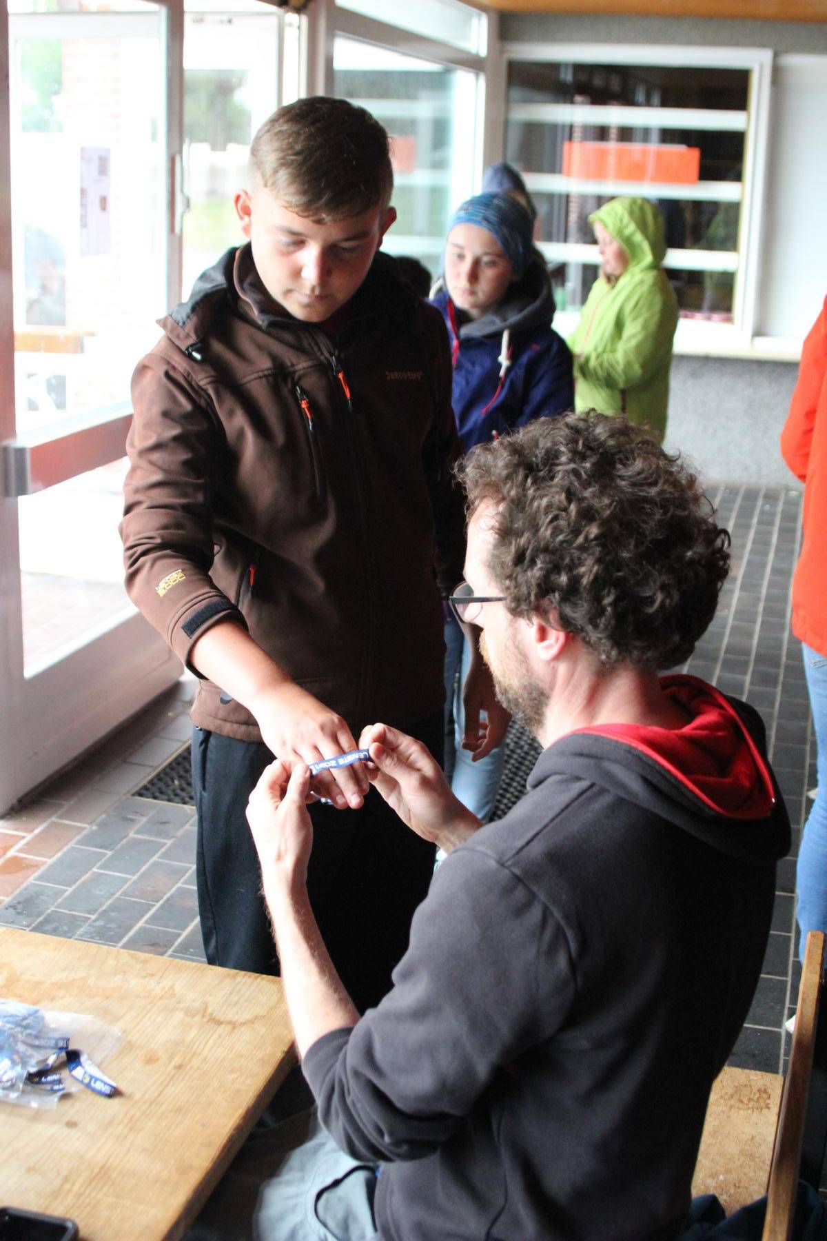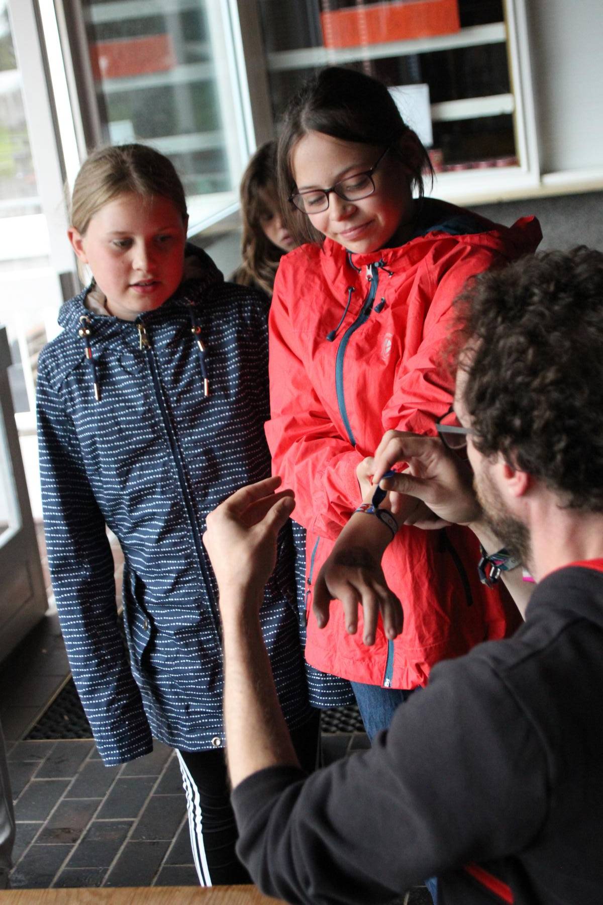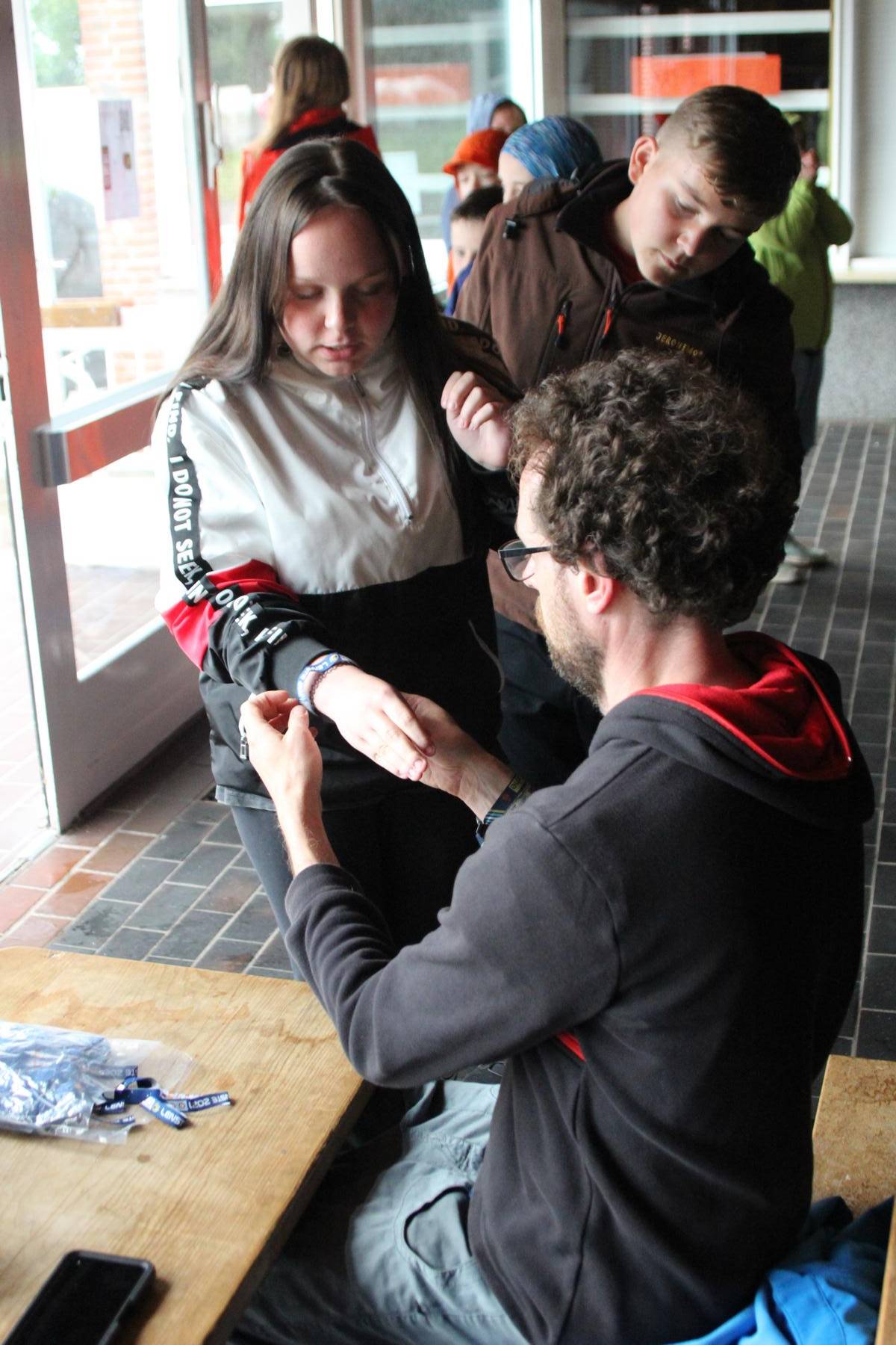 Obwohl es zwischenzeitlich etwas regnete, begann der Nachmittag mit vielen strahlenden Jungastronauten. Zu diesem Zeitpunkt wurden die Space-Armbänder ausgegeben, um allen Jungastronauten ein schönes Souvenir mit auf ihre zukünftigen Reisen zu geben.