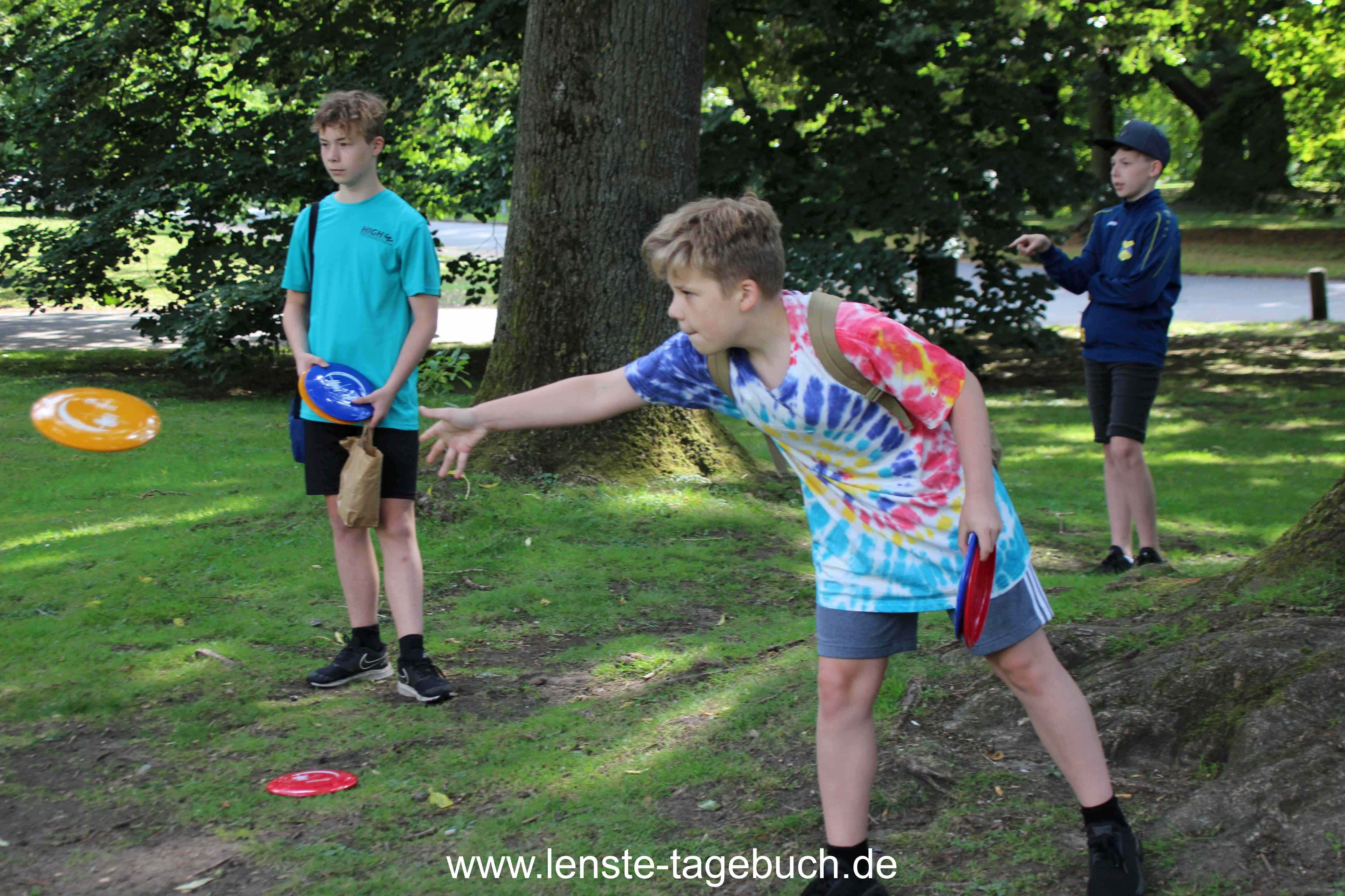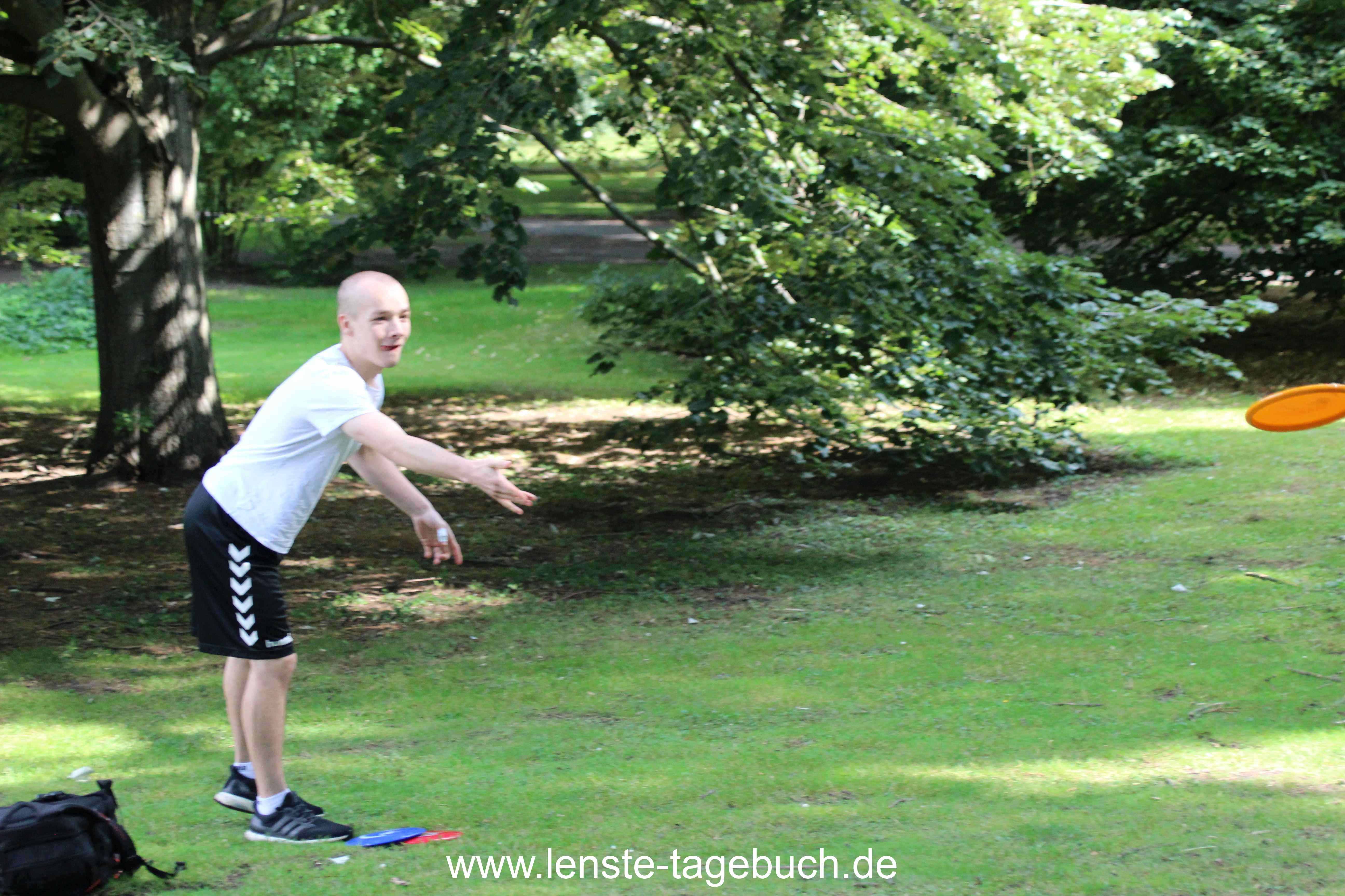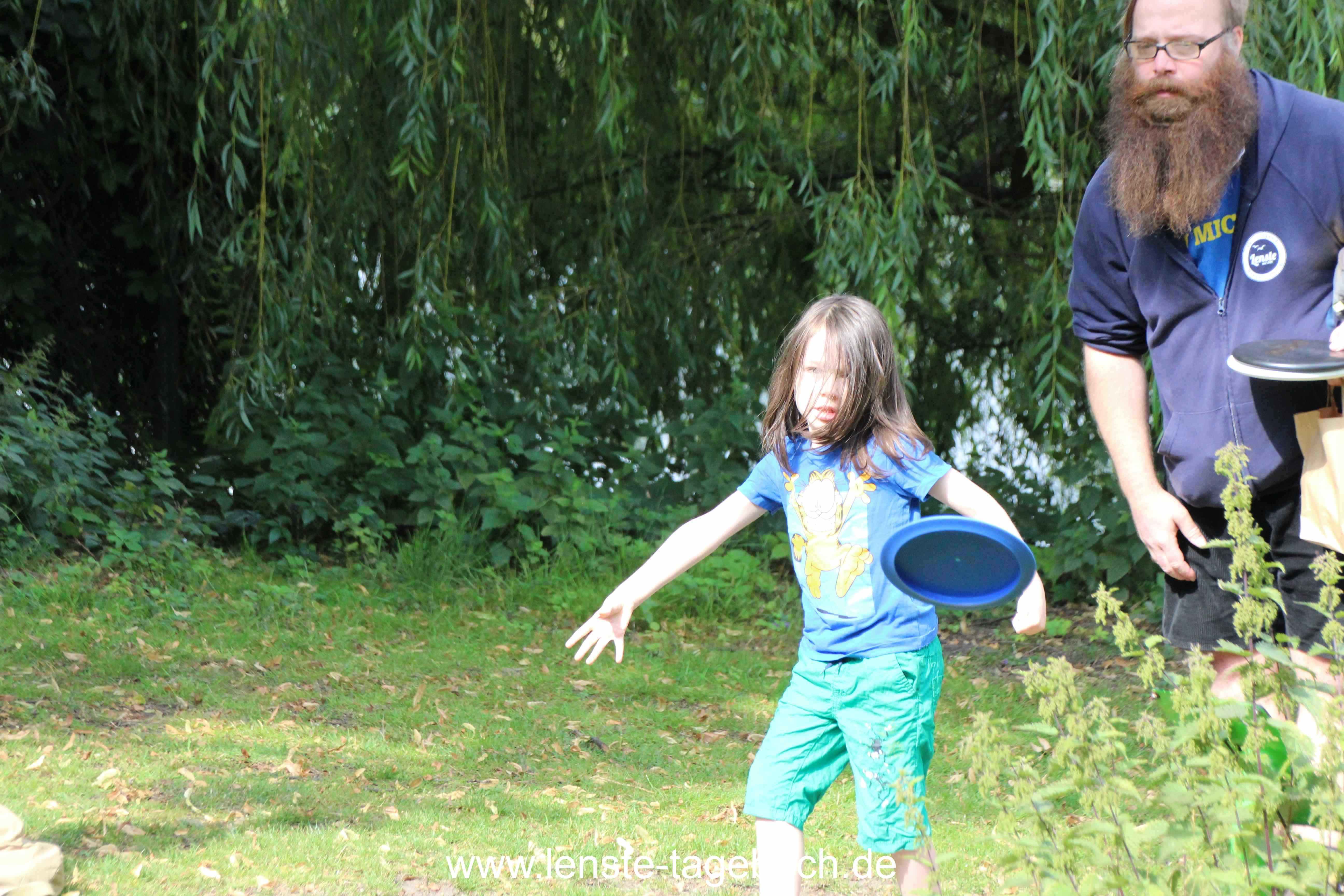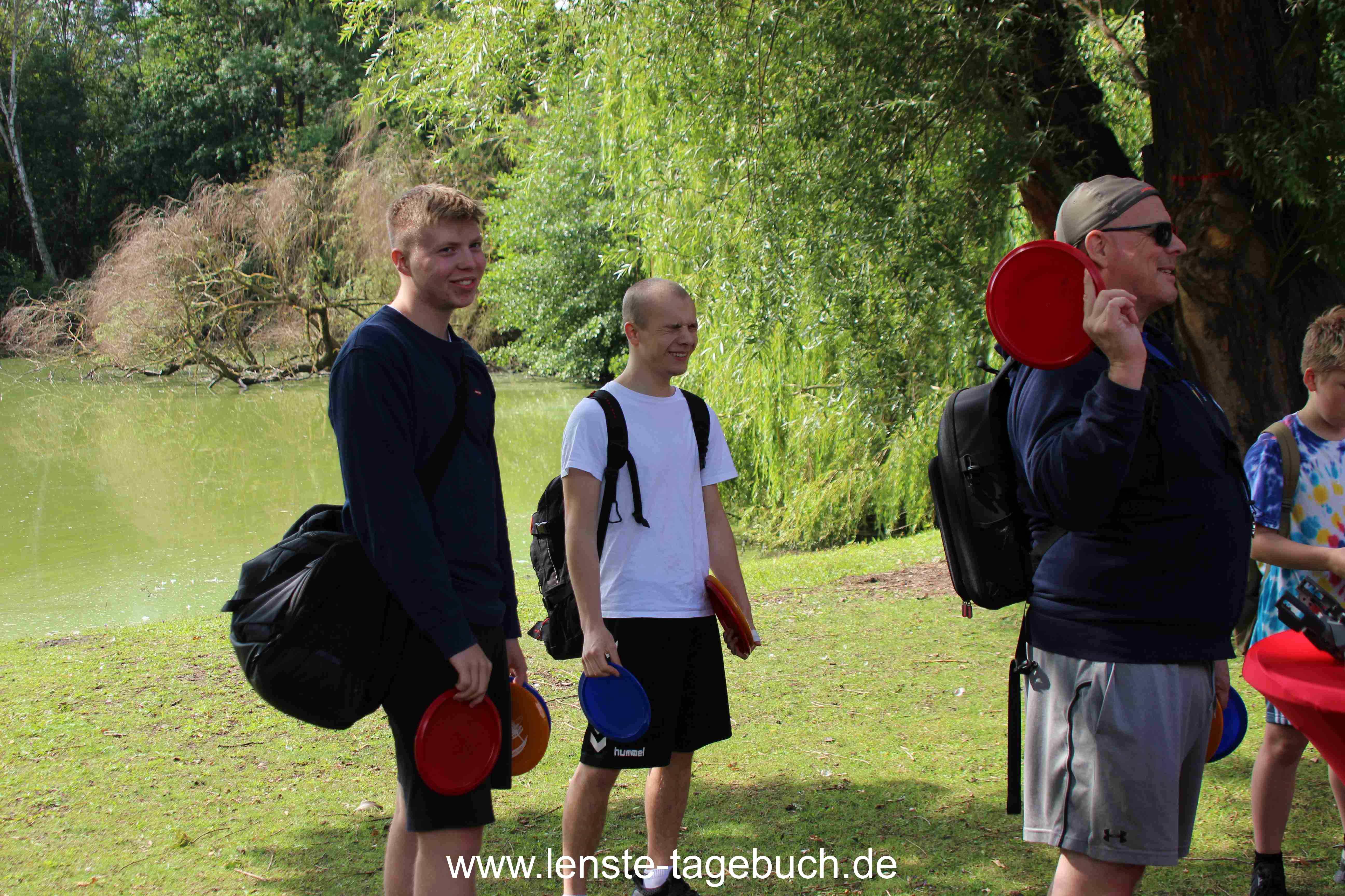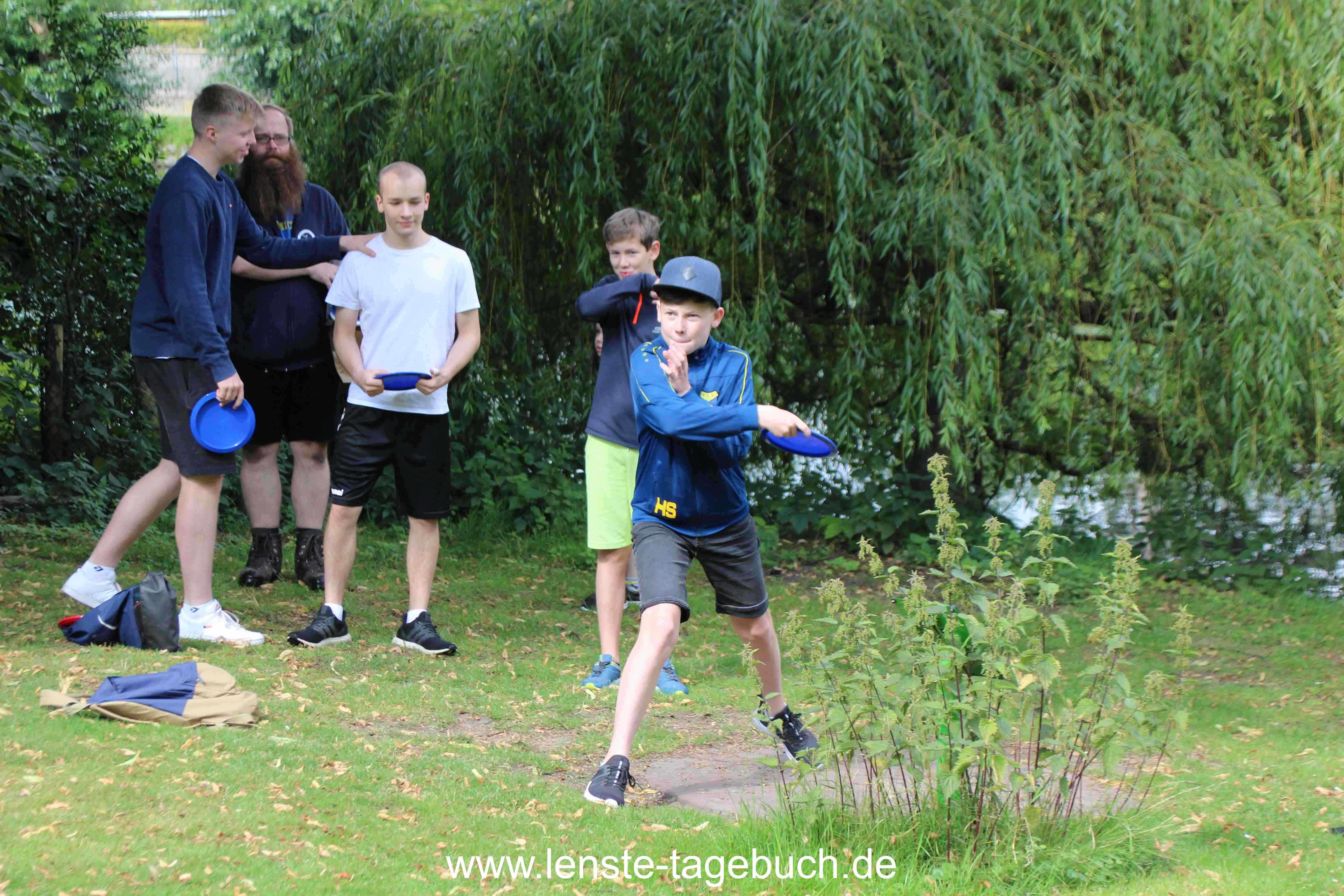 In den nächsten 2,5 Stunden flogen die Scheiben dann mal schnell, mal langsam in Richtung Korb und die eine oder andere Scheibe musste aus Brennesseln oder aus dem Wasser gerettet werden.