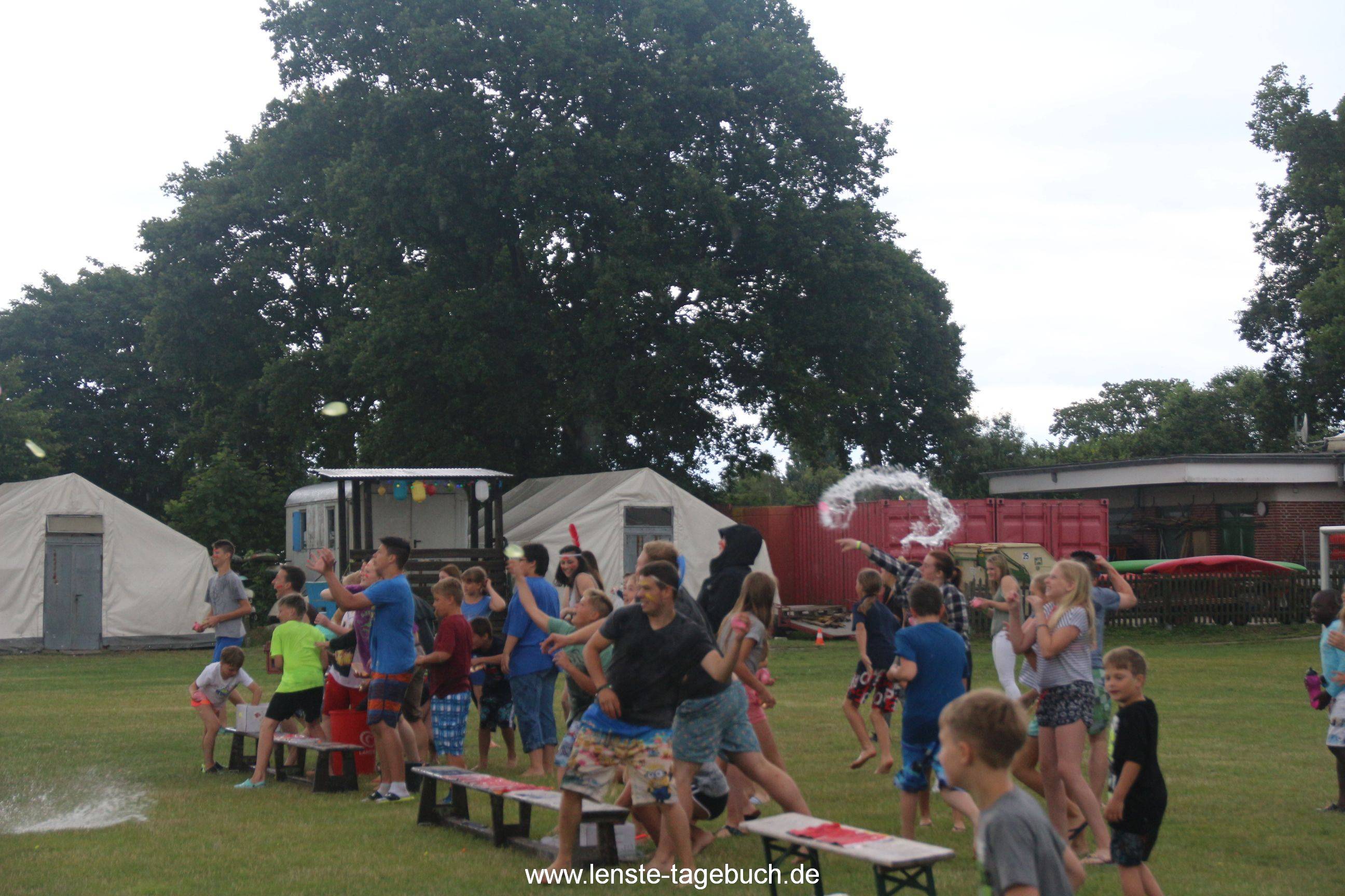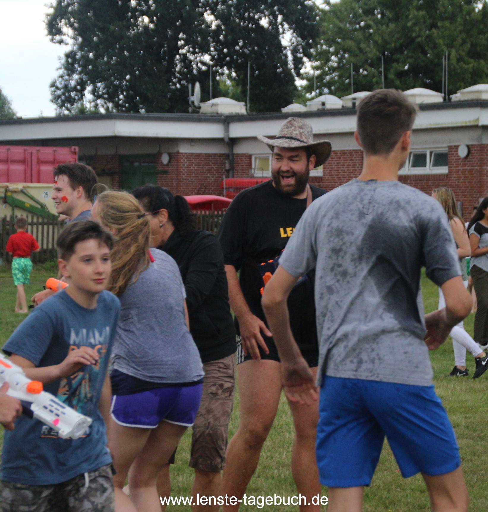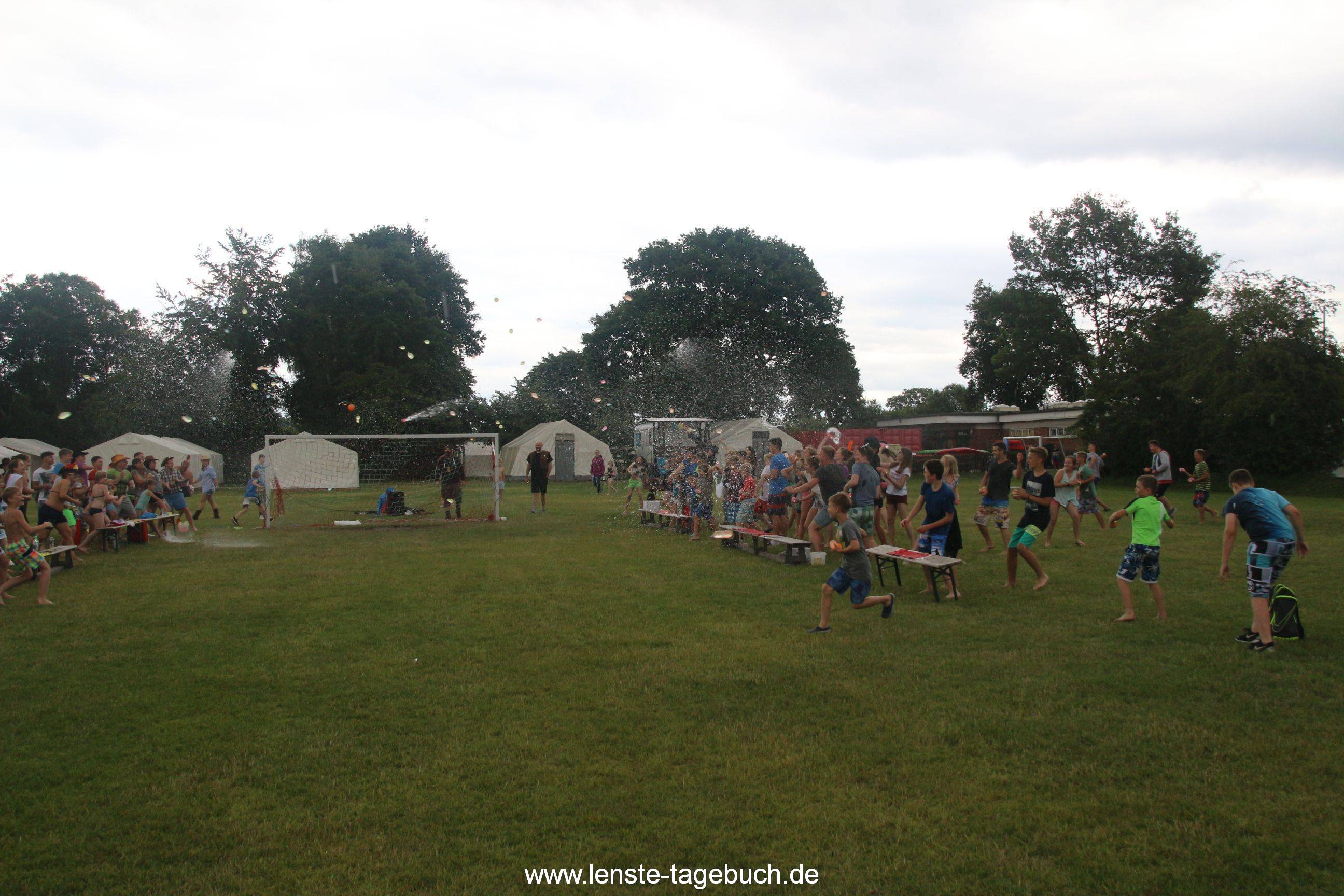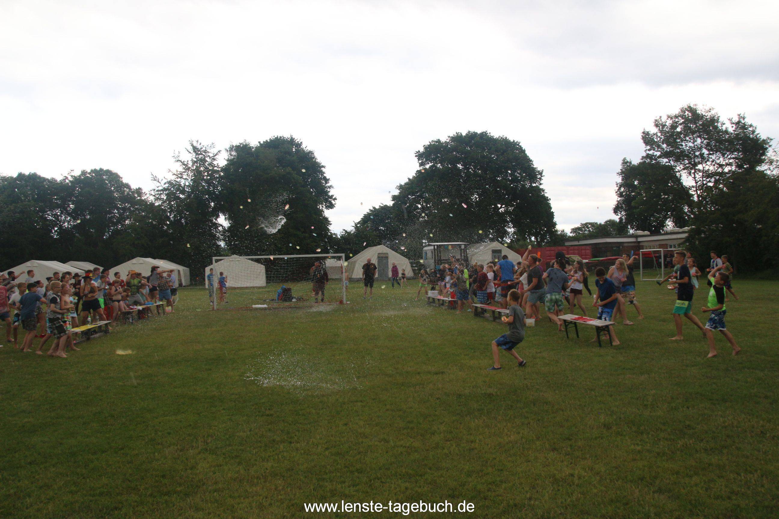 Später nach unserem Mittagessen spielen wir die (Wasser-) Schlacht am Little Big Fußballplatz nach: