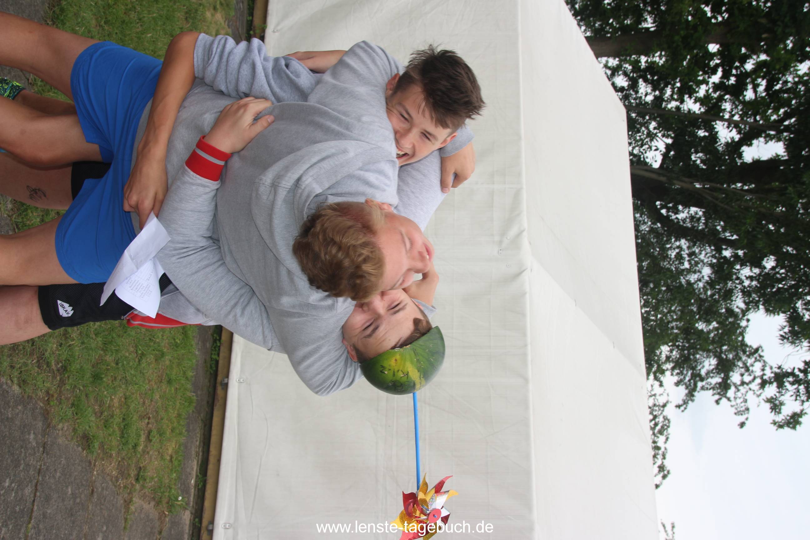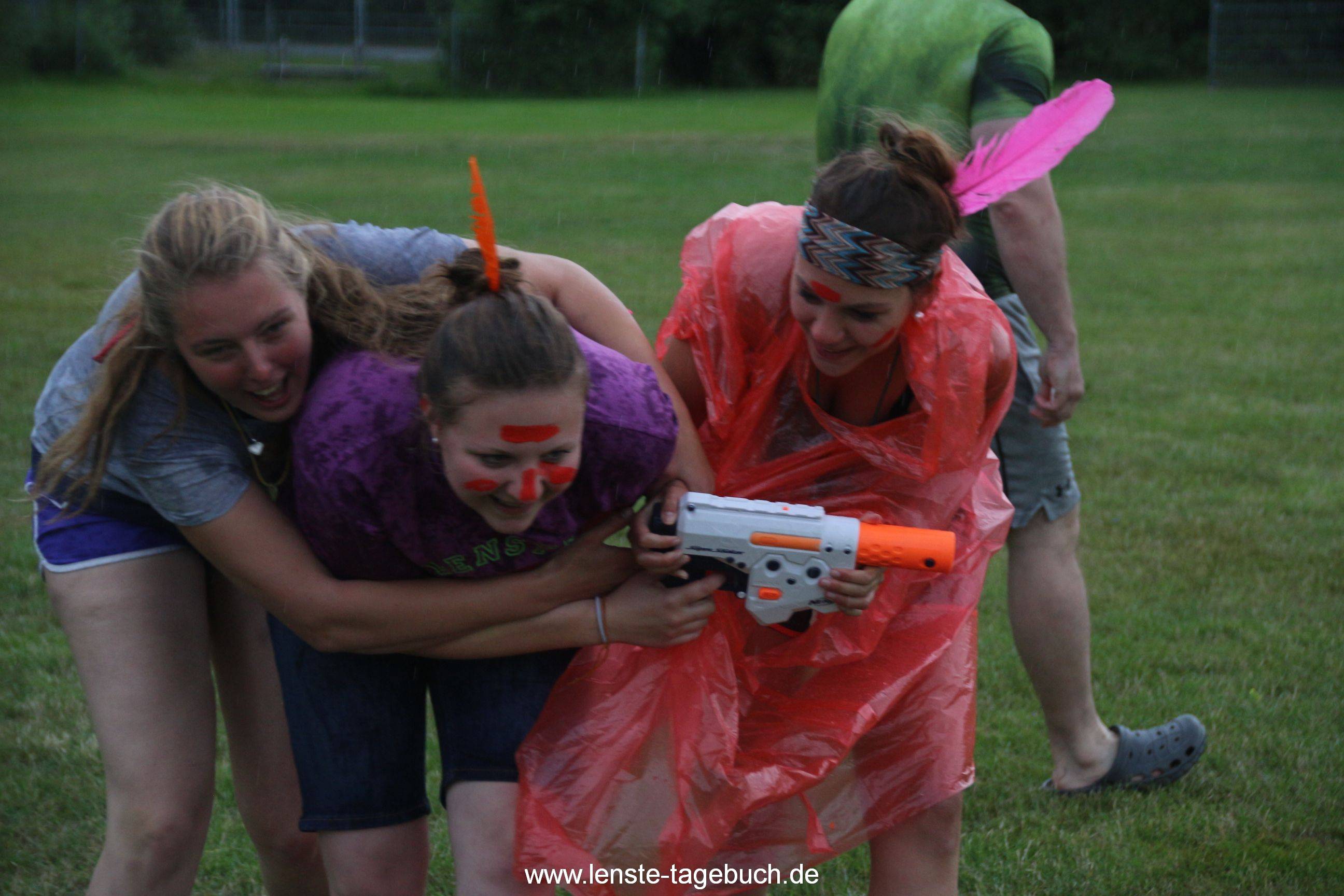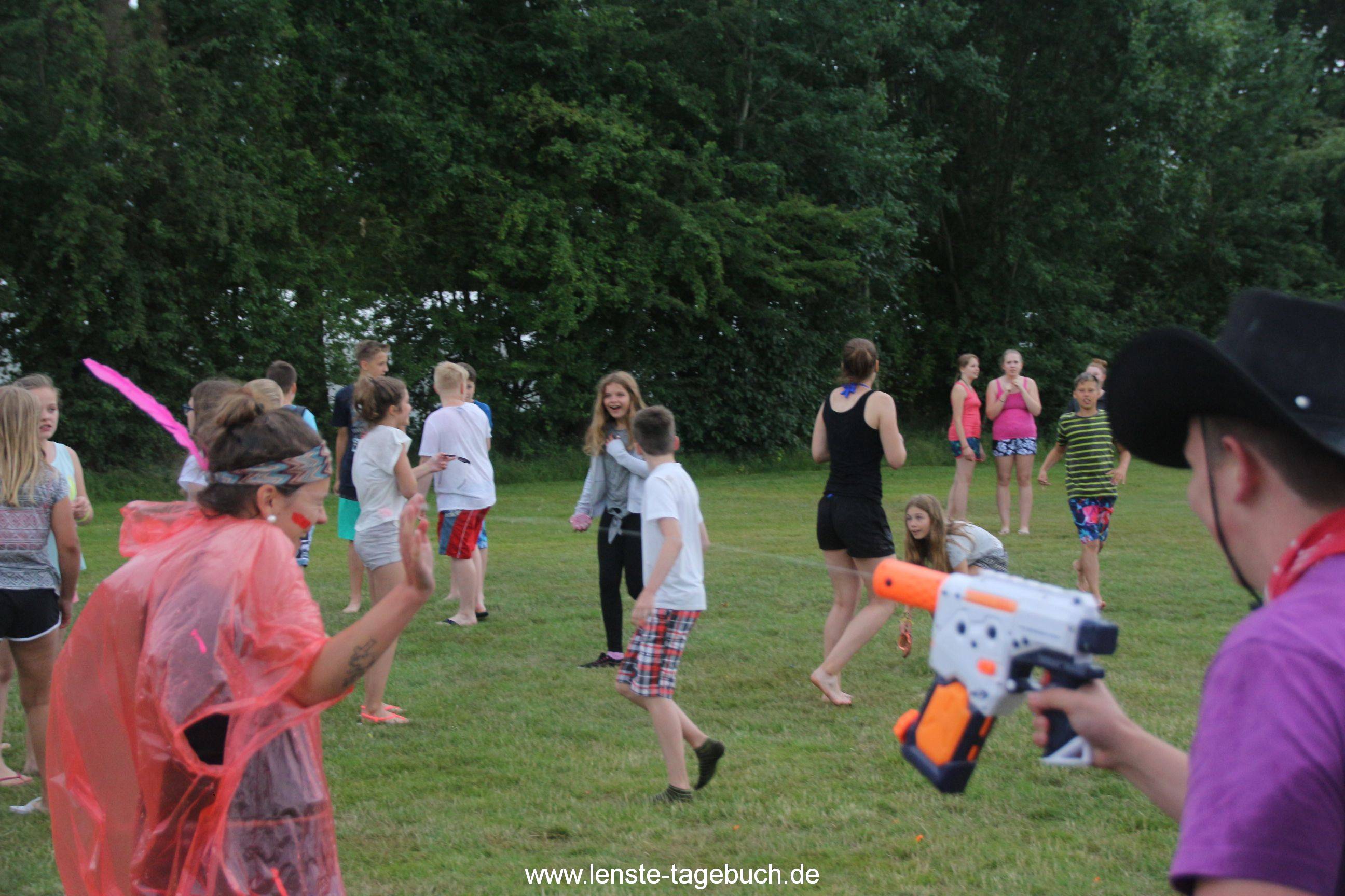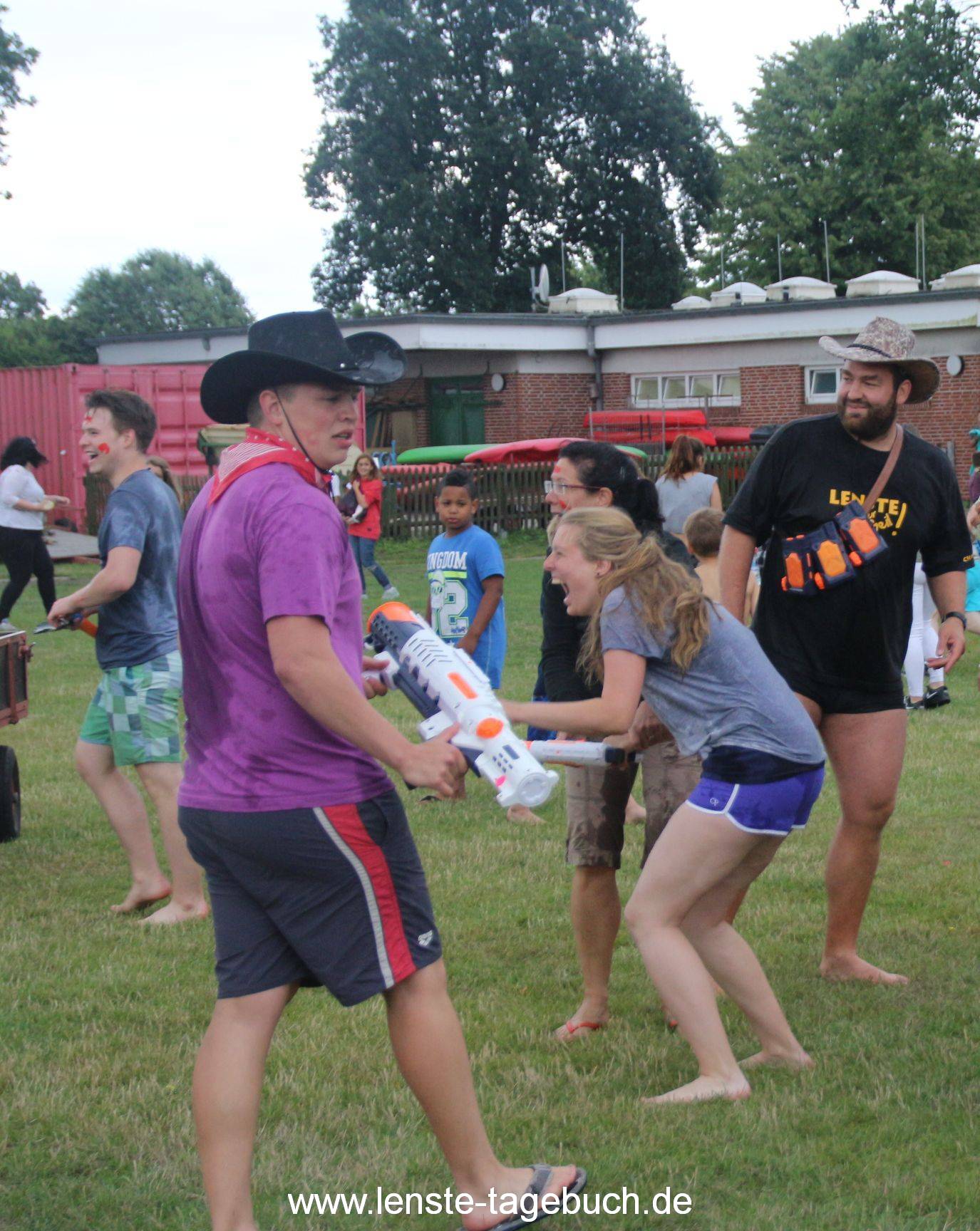 Später nach unserem Mittagessen spielen wir die (Wasser-) Schlacht am Little Big Fußballplatz nach: